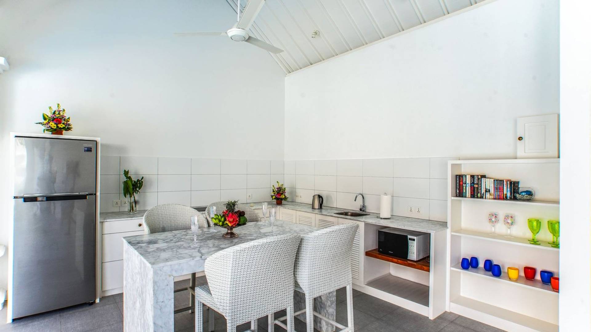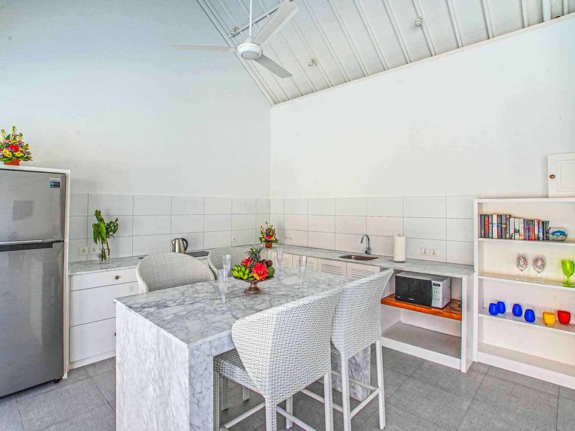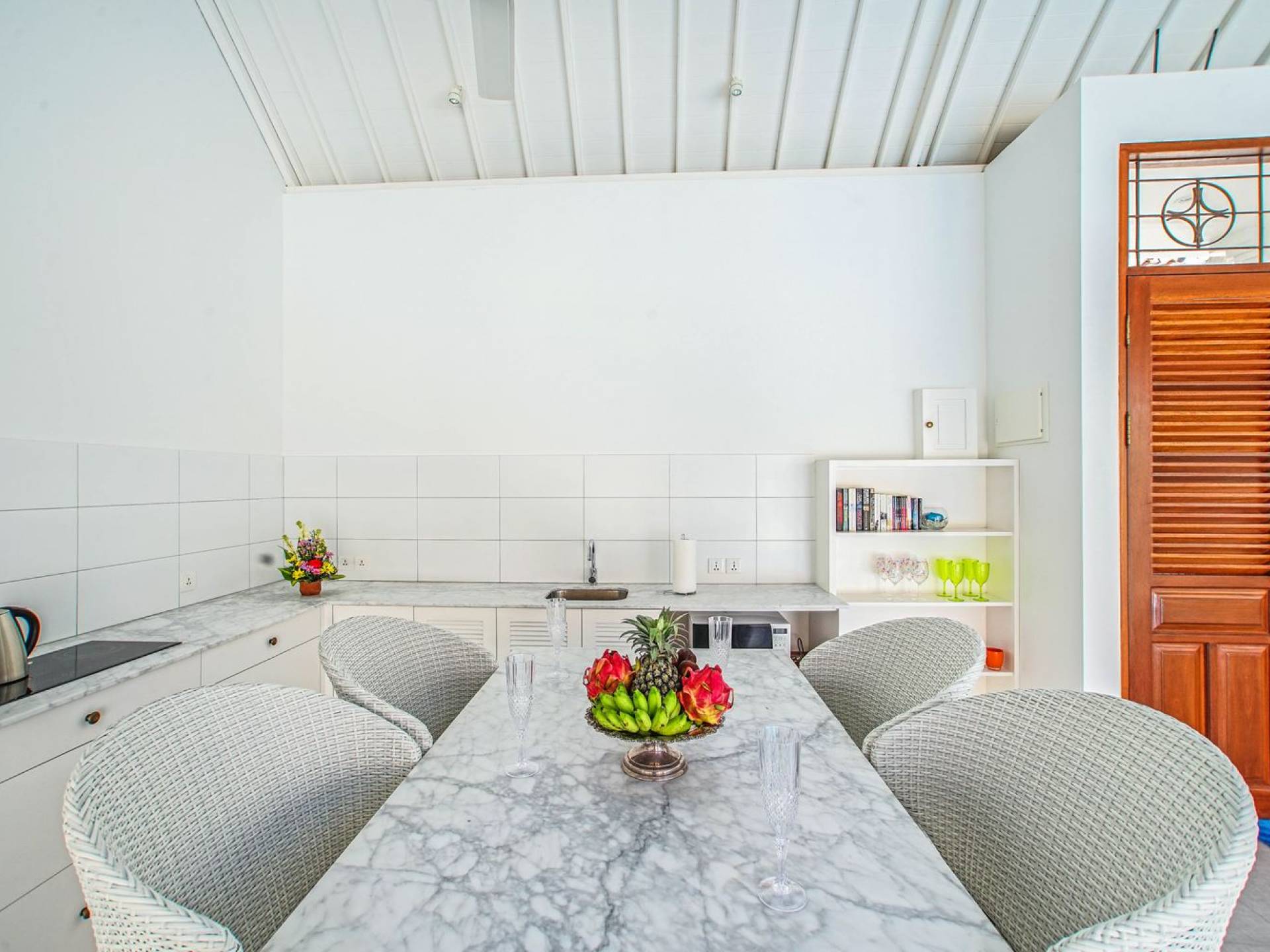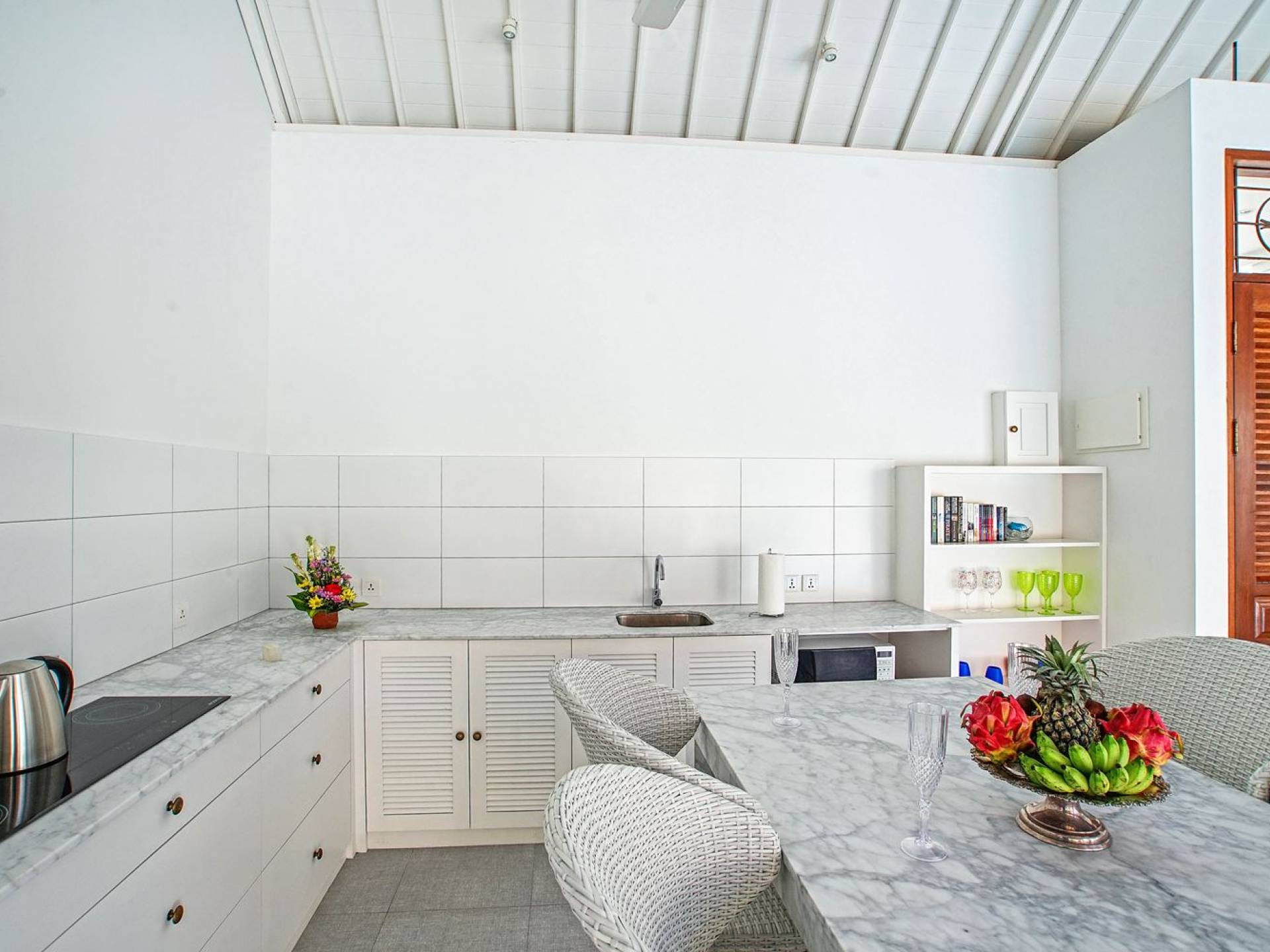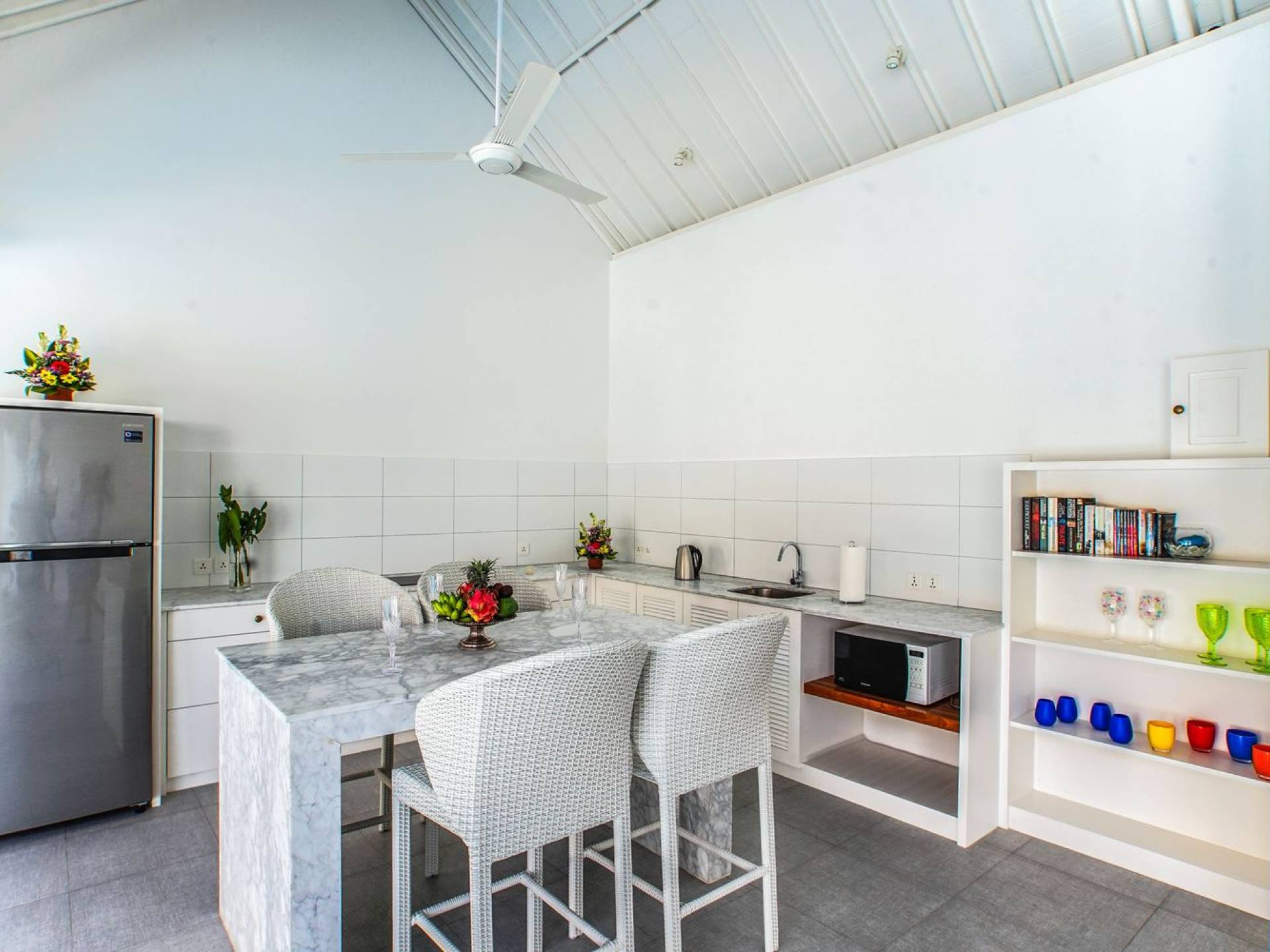 The hanging Wardrobe in the Villa contains a Safe large enough for your Laptop/Tablet/Phone etc. SONY TV's are located on the Wall in each Lounge area, with overhead fans. Each Bedroom also has Fans as well an Air conditioning Unit. A desk with seating is in each bedroom, alternating as a dressing table.