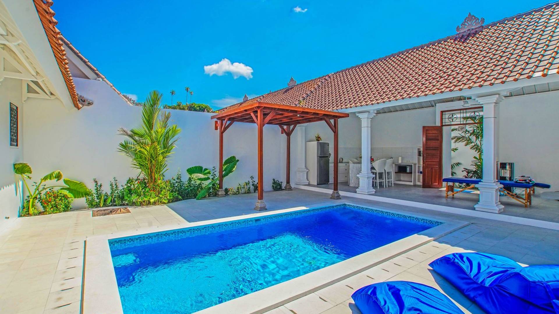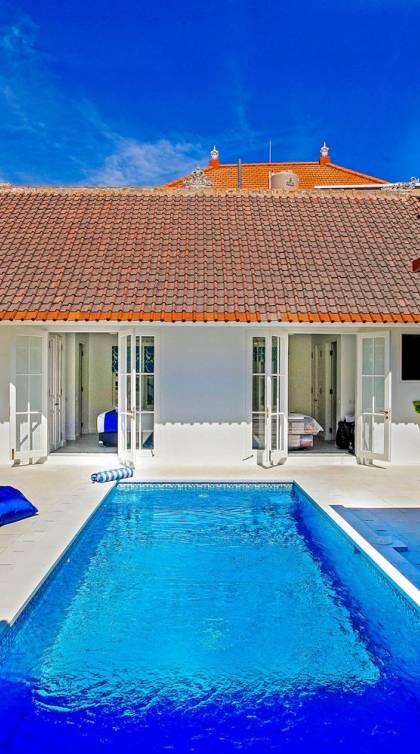 Designed in a contemporary Balinese style, the Villa features open‐plan living areas flowing to the private pool & sunbaking area. The kitchen & bathrooms are appointed to Western standards and feature quality appliances and granite bench tops. Outside the Village there is superb shopping and Restaurants on Double 6, and just a walk to the cool Beach Bars to watch the amazing Sunsets on Bali beach.
