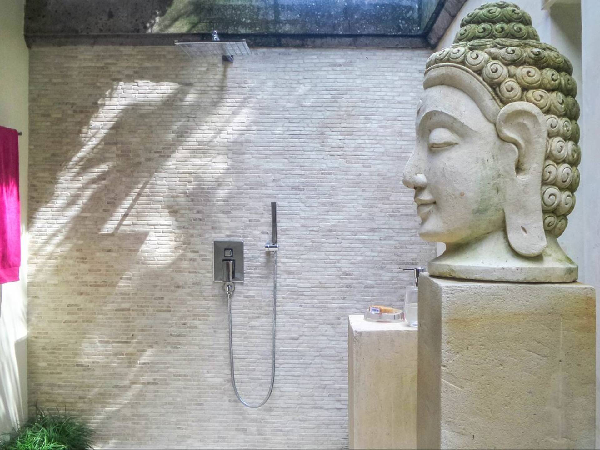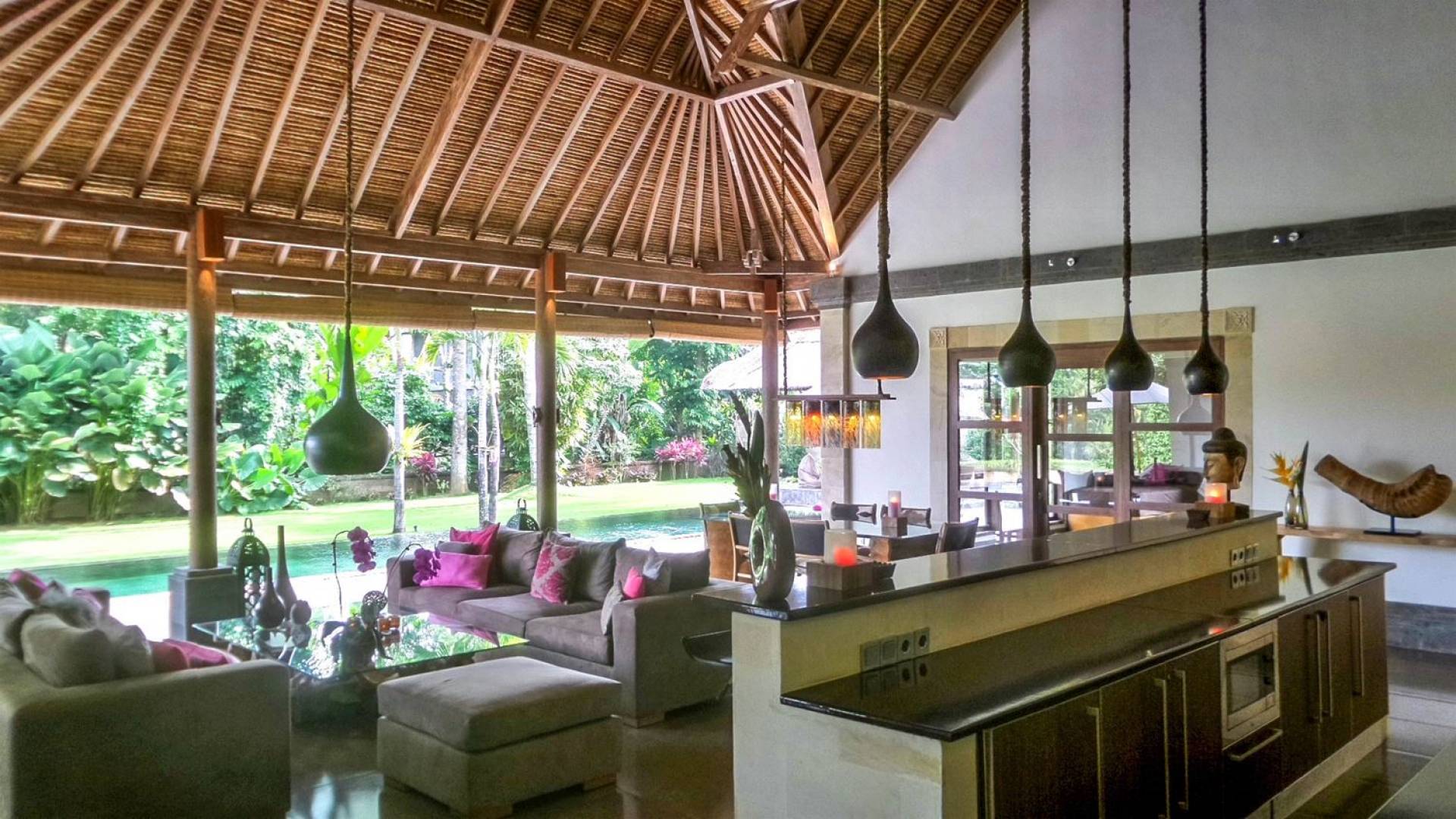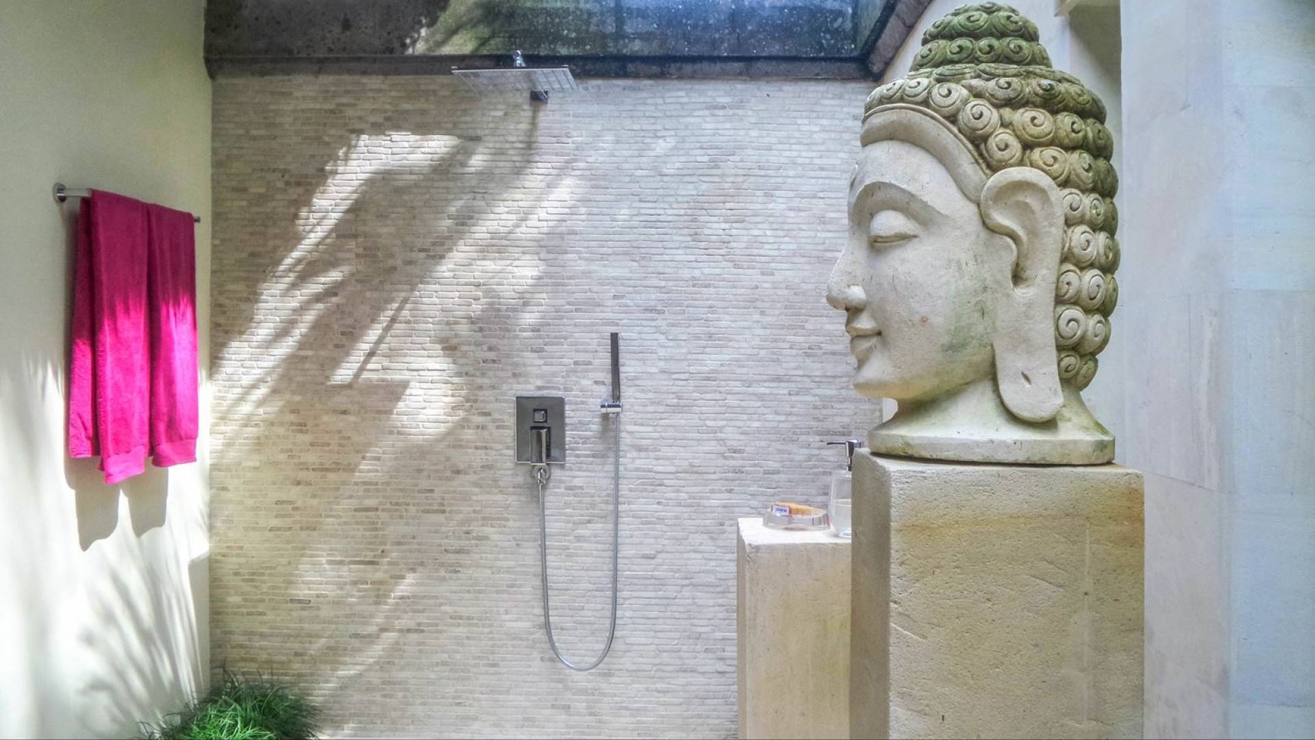 Located in the middle of the ricefields, the Villa Bamboo is a serene enchantment. The villa is 1h30 from the airport, 1 h from the seaside, and only 15 minutes from the center of UBUD, the artistic heart of the island and famous for its art galleries, museums, restaurants, and fashion shops. The villa can accommodate up to 4 guests in search of expatriation and calm, in a luxurious and refined setting. The villa is nestled in a beautiful traditional village and surrounded by terraced rice fields, coconut palms, and lush vegetation. Its position is central for all excursions and visits. Everything is planned to live a moment of pure happiness …. Villa Bamboo has a large terrasse, combining living room, dining room, bar, American kitchen, all surrounded by a huge infinity pool made with natural stone, in harmony with the environment.