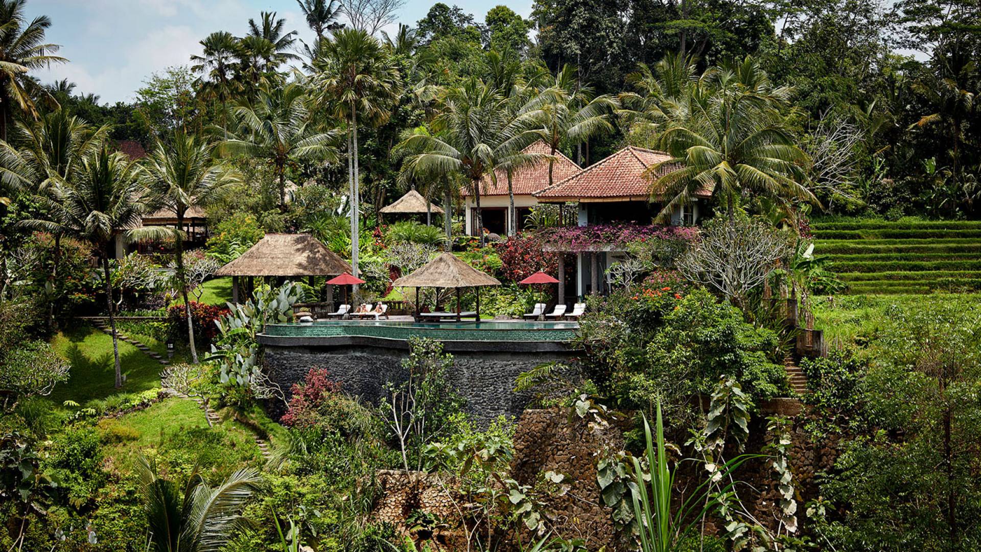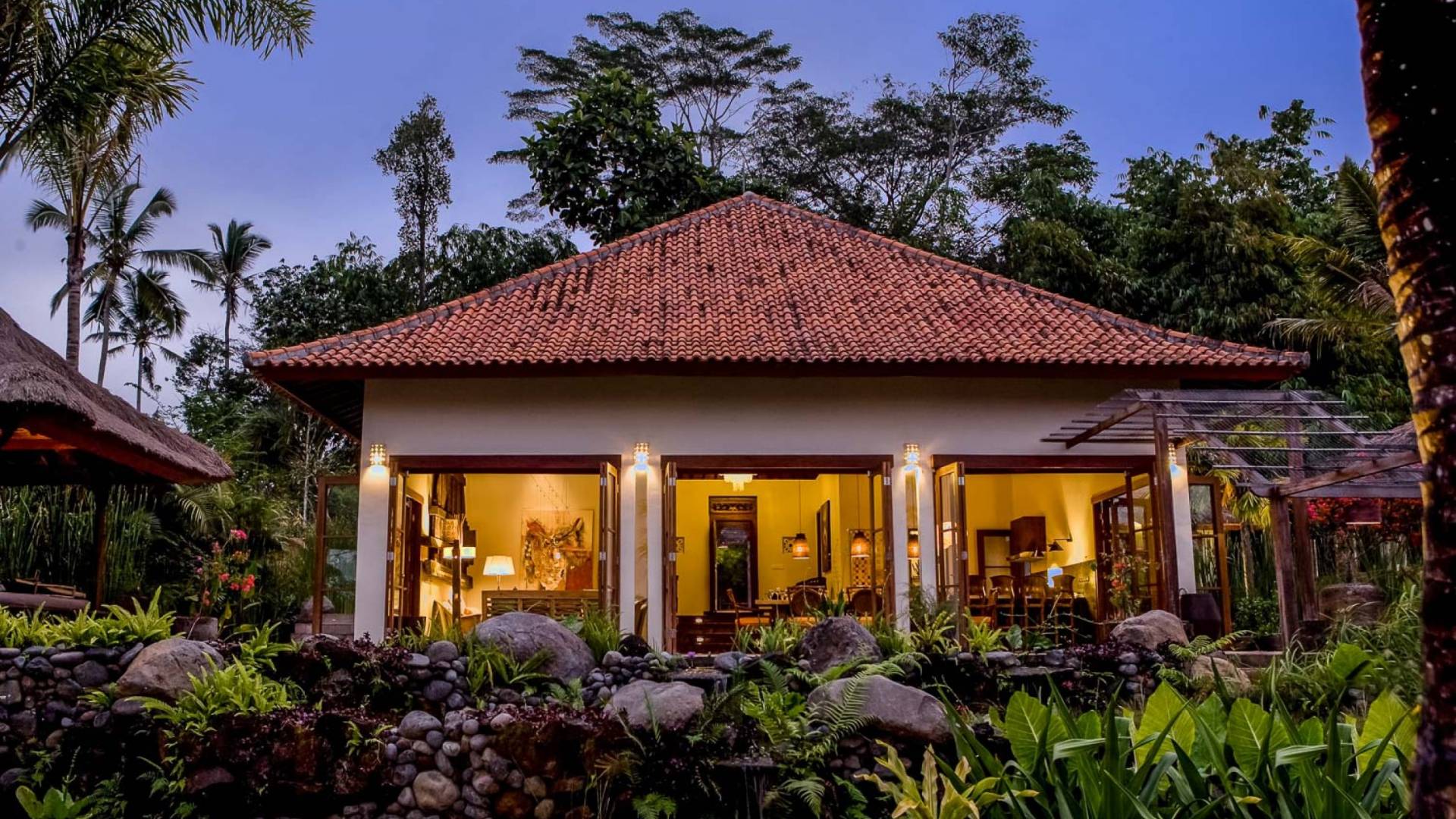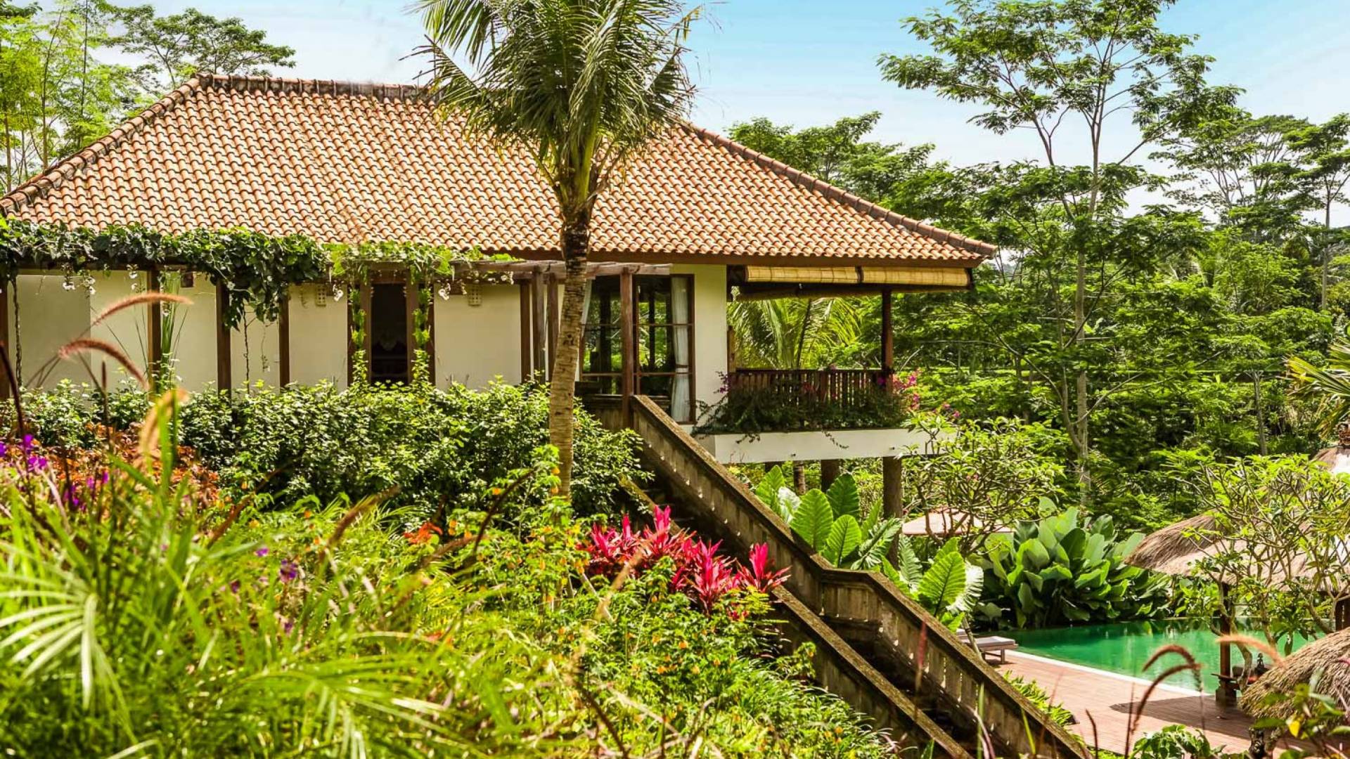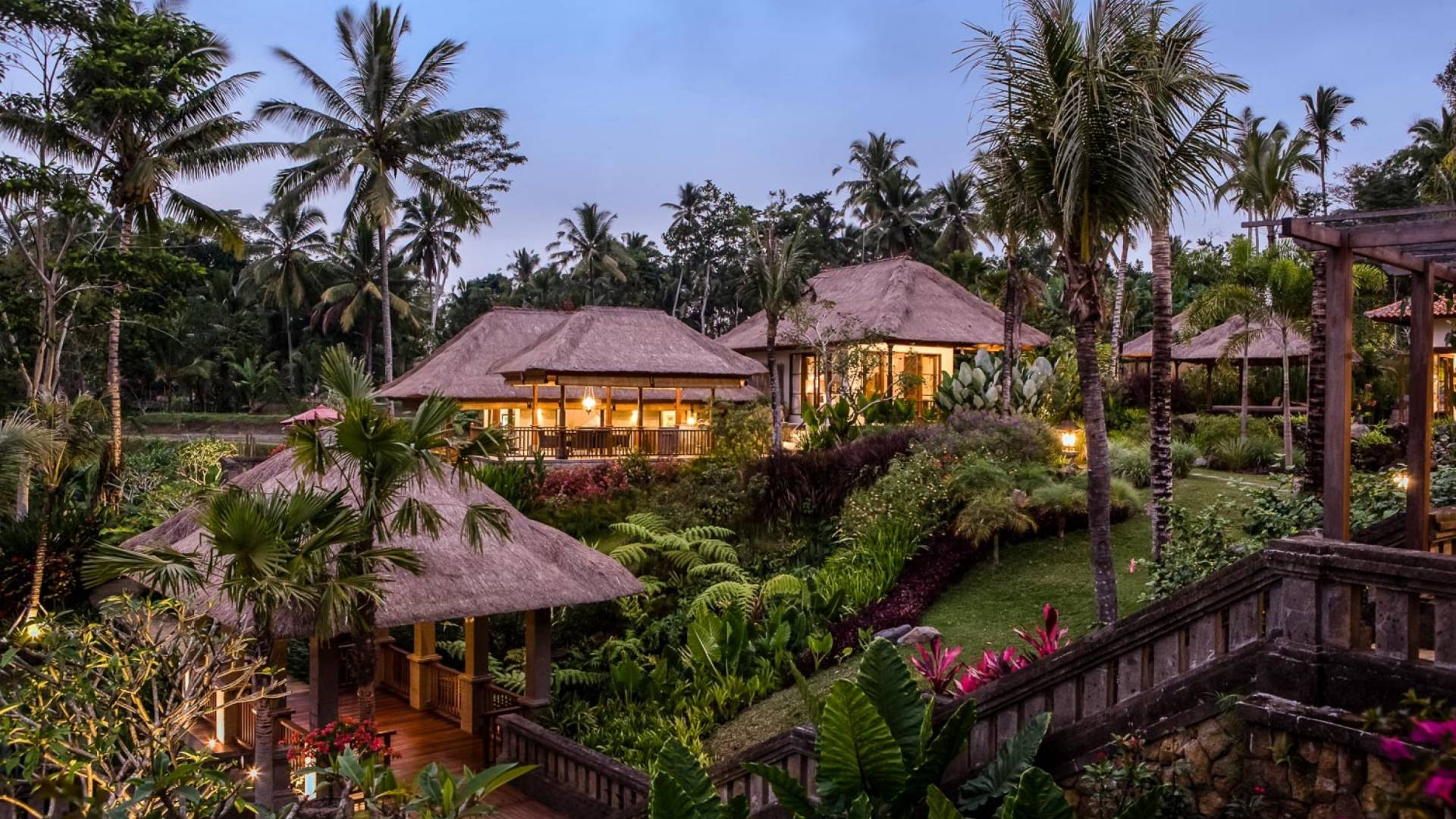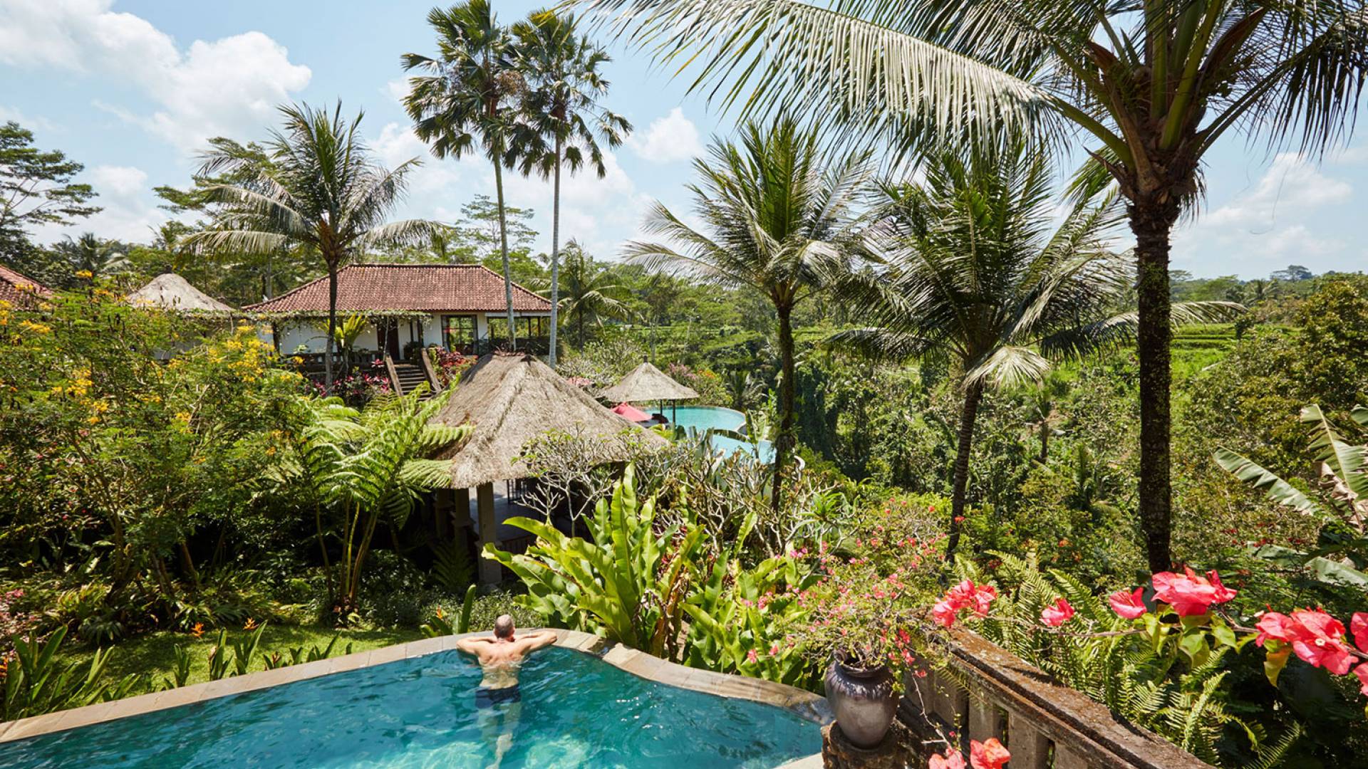 Fifteen minutes north of Ubud in the middle of lush green rice paddies, with a magnificent view of Bali’s mighty Mount Agung, lies Villa Bayad-a private luxurious 4 bedroom villa with two swimming pools, surrounded by an 8000 m2 garden of sweet-smelling flowers, lotus-ponds, and waterfalls. Staying here is your chance of experiencing the real Bali aesthetic from the inside and at the same time enjoying the tranquility of nature and the local countryside, while your friendly staff will be right there to cater to your every need. And with Ubud – Bali’s cultural center – just 15 minutes away, you will be conveniently close to shops, restaurants, and galleries.