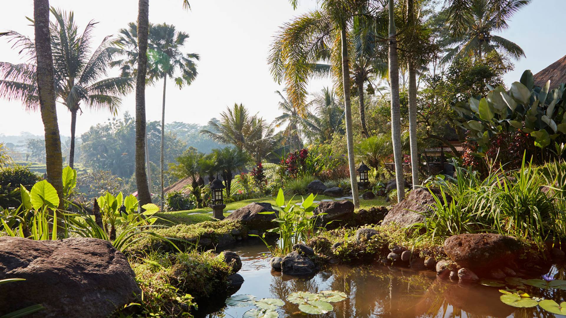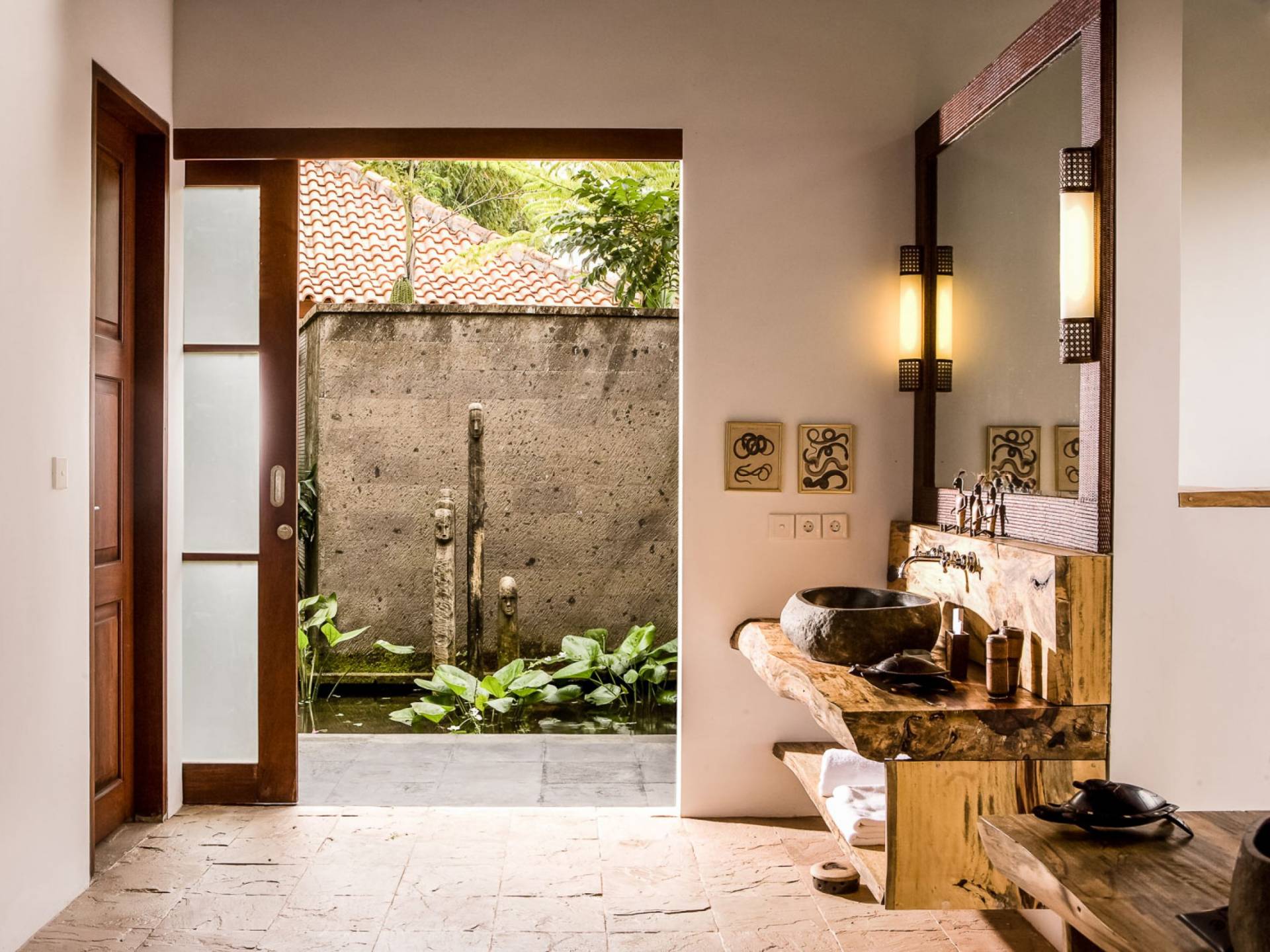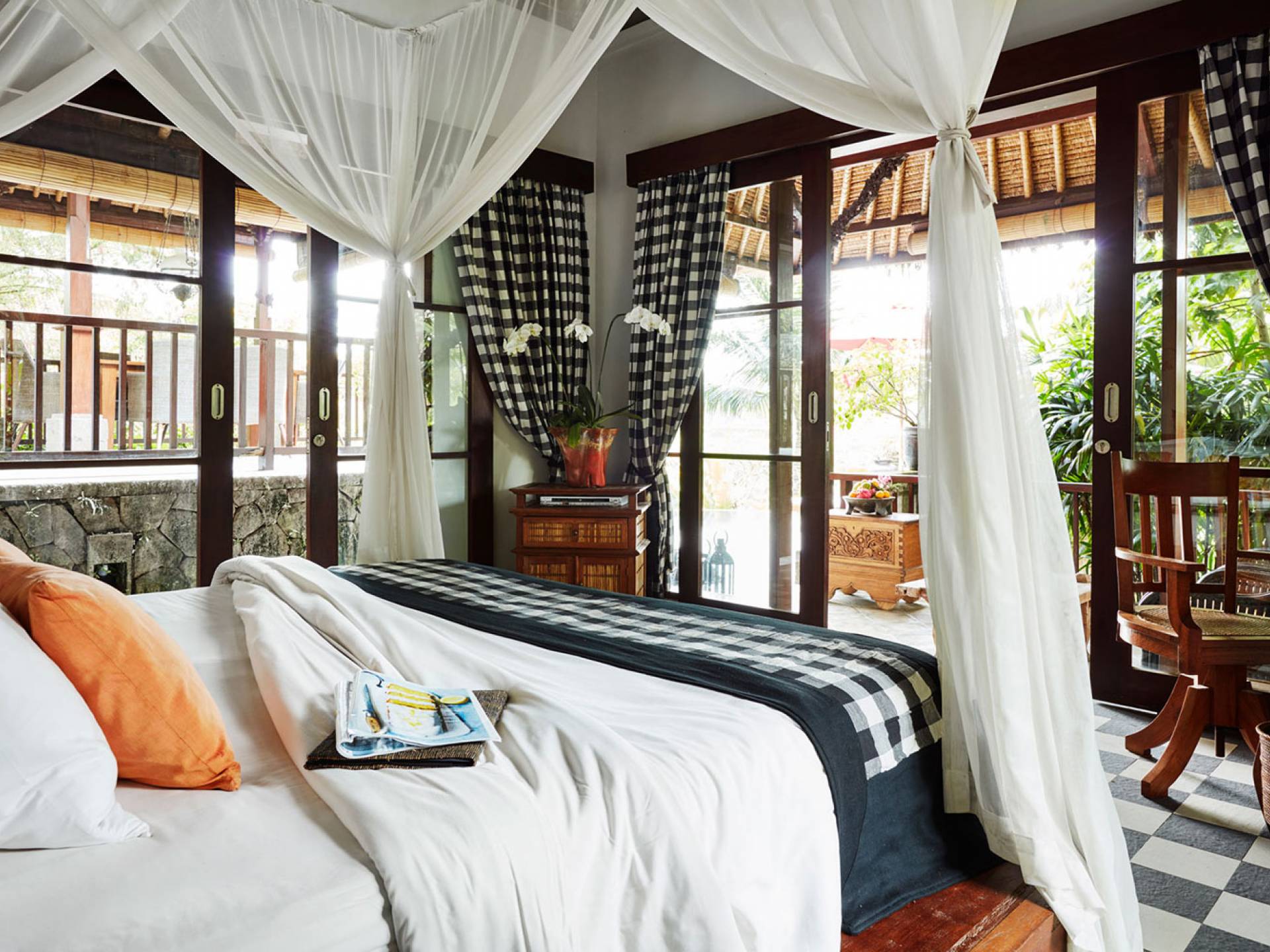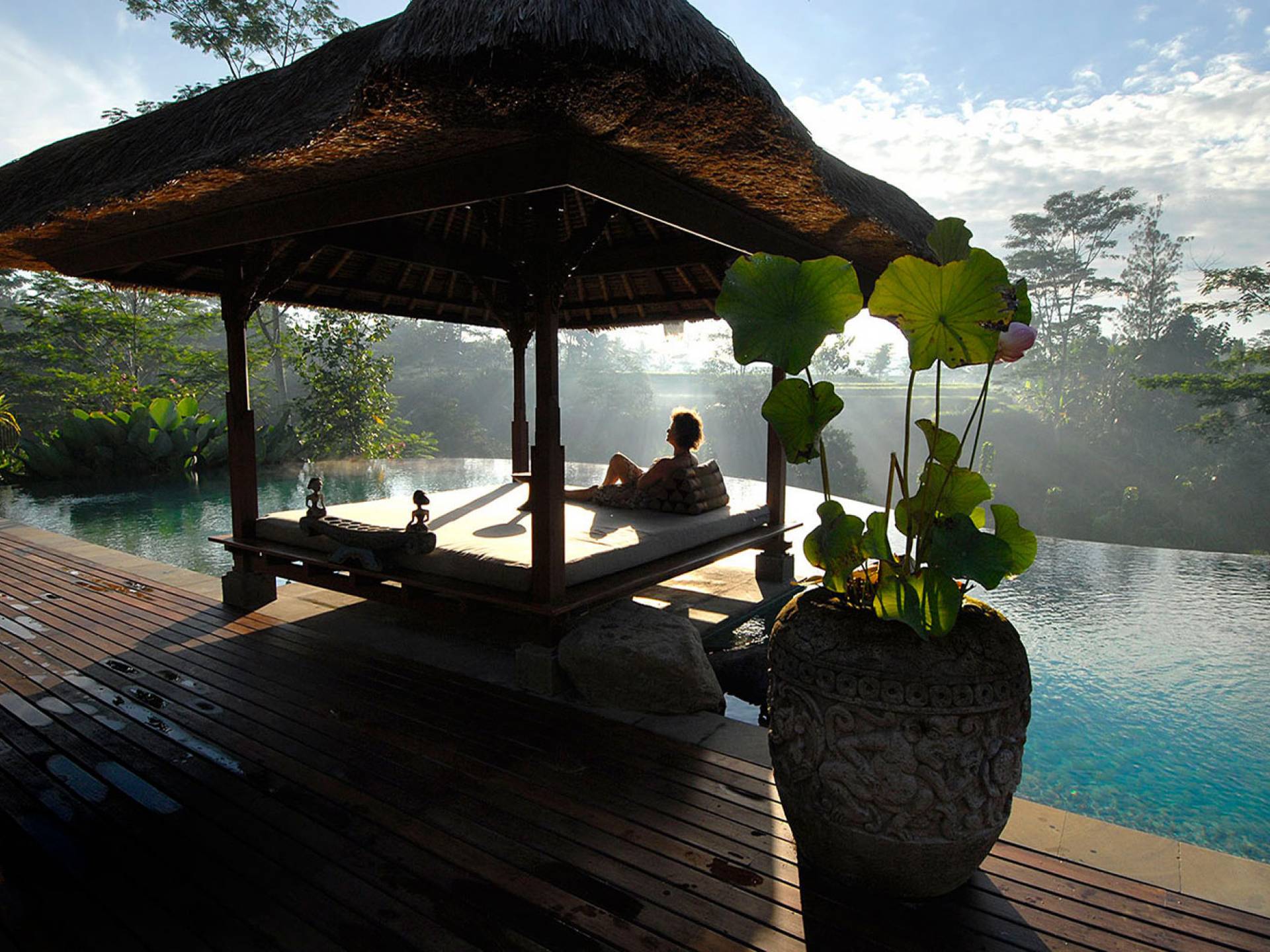 Fifteen minutes north of Ubud in the middle of lush green rice paddies, with a magnificent view of Bali’s mighty Mount Agung, lies Villa Bayad-a private luxurious 4 bedroom villa with two swimming pools, surrounded by an 8000 m2 garden of sweet-smelling flowers, lotus-ponds, and waterfalls. Staying here is your chance of experiencing the real Bali aesthetic from the inside and at the same time enjoying the tranquility of nature and the local countryside, while your friendly staff will be right there to cater to your every need. And with Ubud – Bali’s cultural center – just 15 minutes away, you will be conveniently close to shops, restaurants, and galleries.