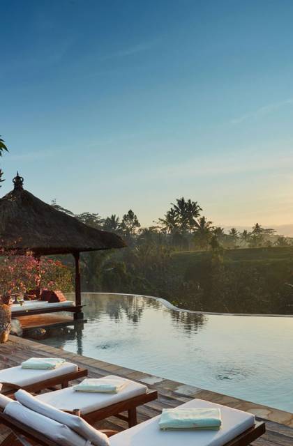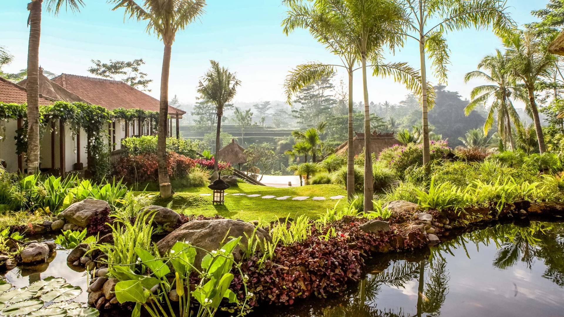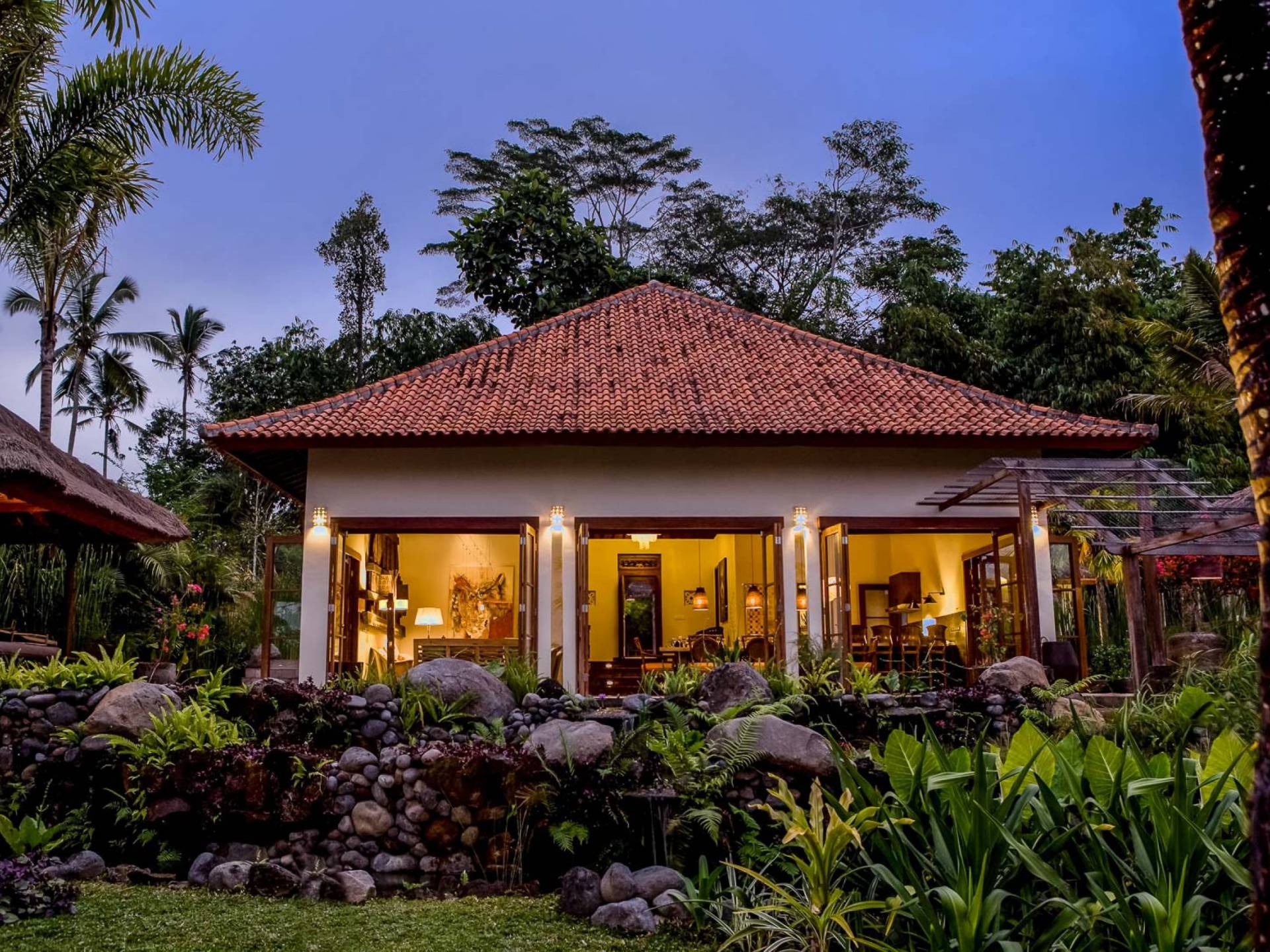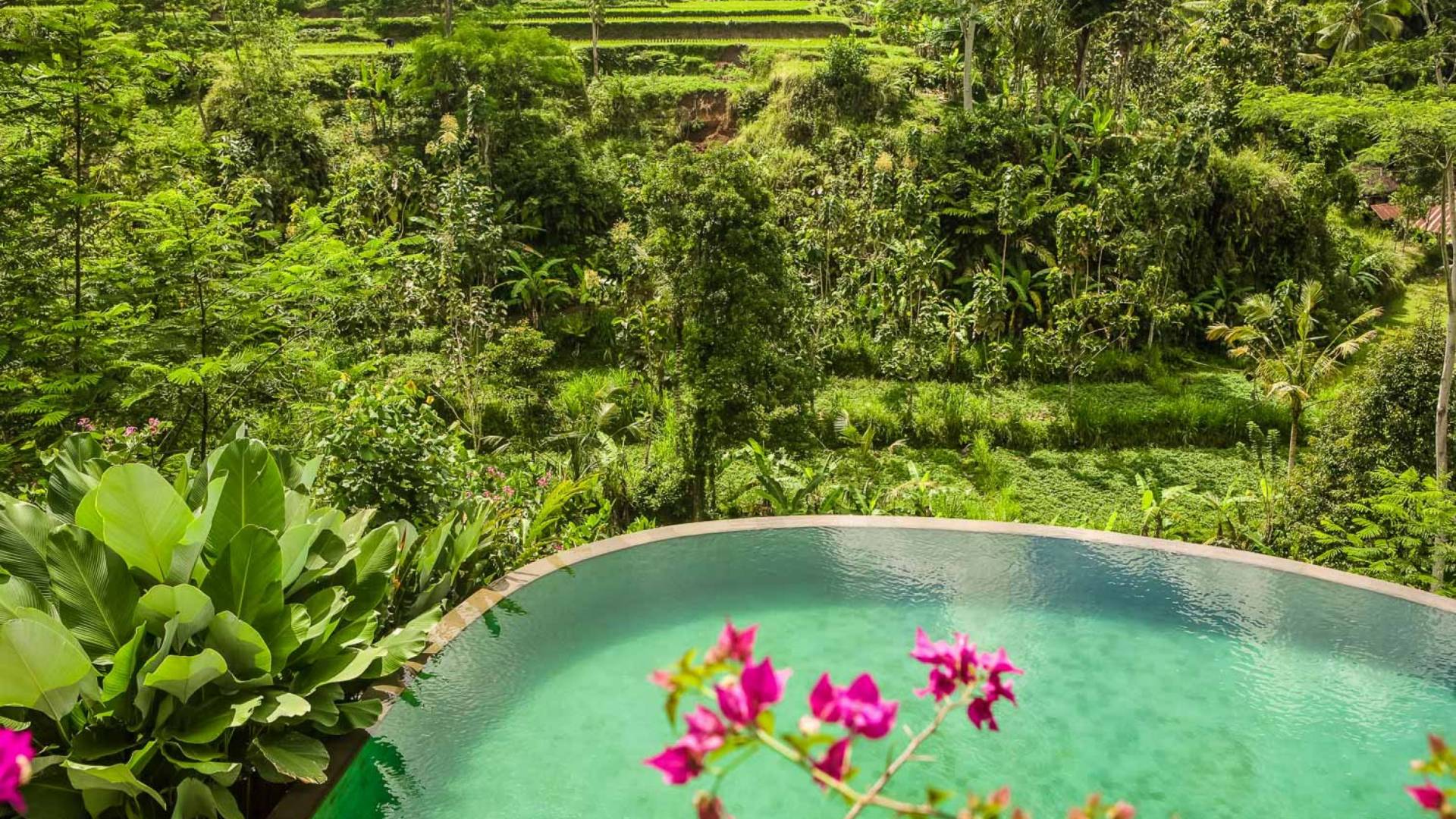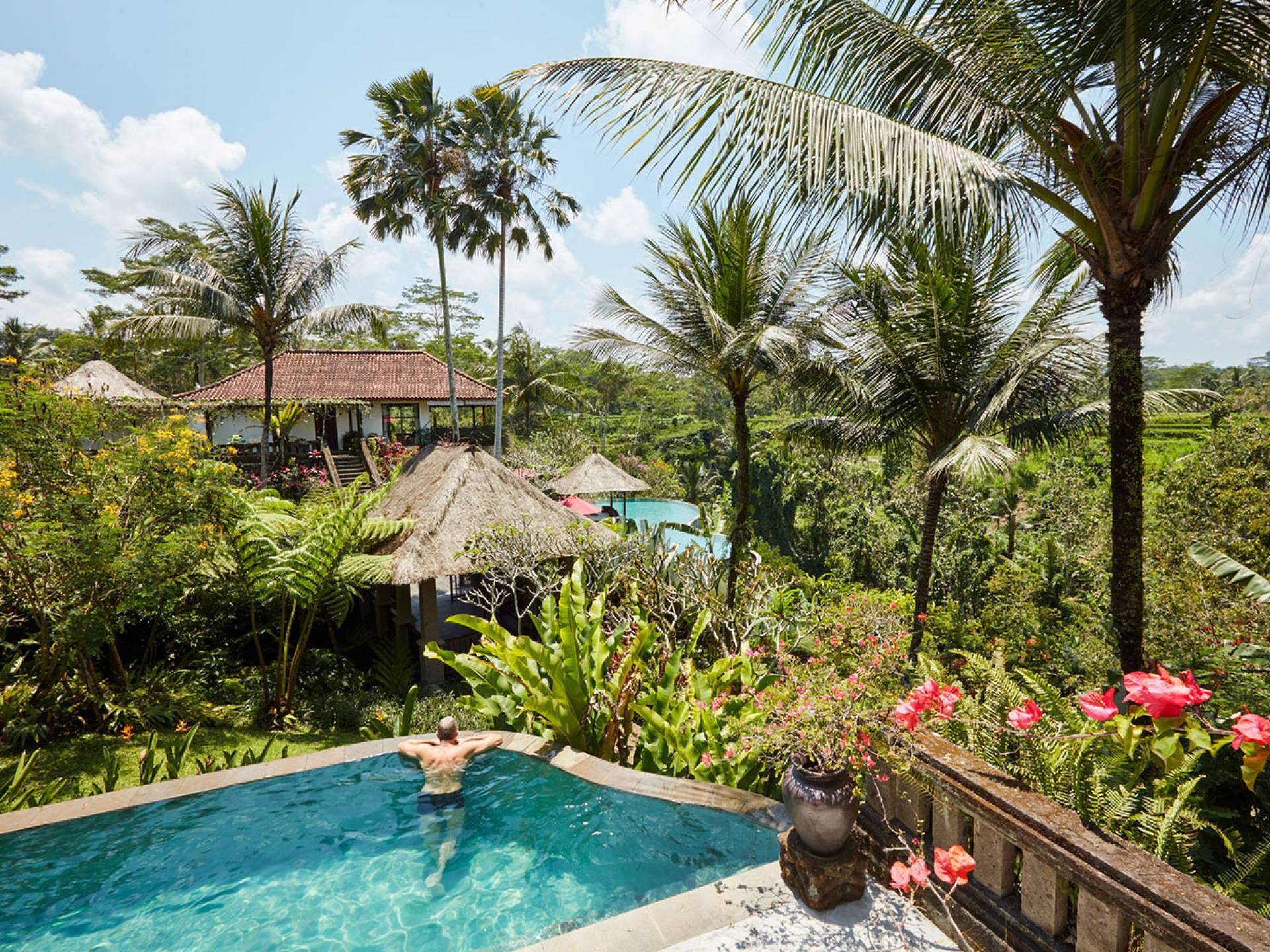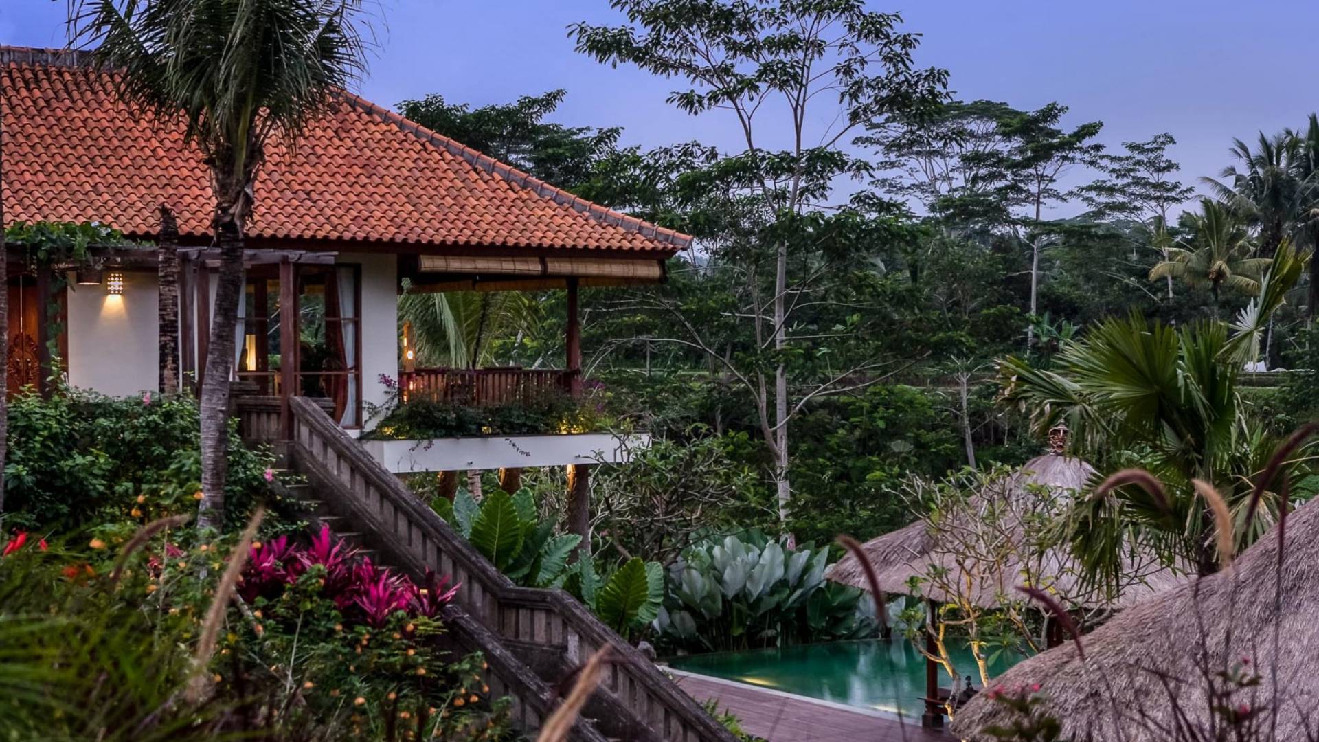 Fifteen minutes north of Ubud in the middle of lush green rice paddies, with a magnificent view of Bali’s mighty Mount Agung, lies Villa Bayad-a private luxurious 4 bedroom villa with two swimming pools, surrounded by an 8000 m2 garden of sweet-smelling flowers, lotus-ponds, and waterfalls. Staying here is your chance of experiencing the real Bali aesthetic from the inside and at the same time enjoying the tranquility of nature and the local countryside, while your friendly staff will be right there to cater to your every need. And with Ubud – Bali’s cultural center – just 15 minutes away, you will be conveniently close to shops, restaurants, and galleries.