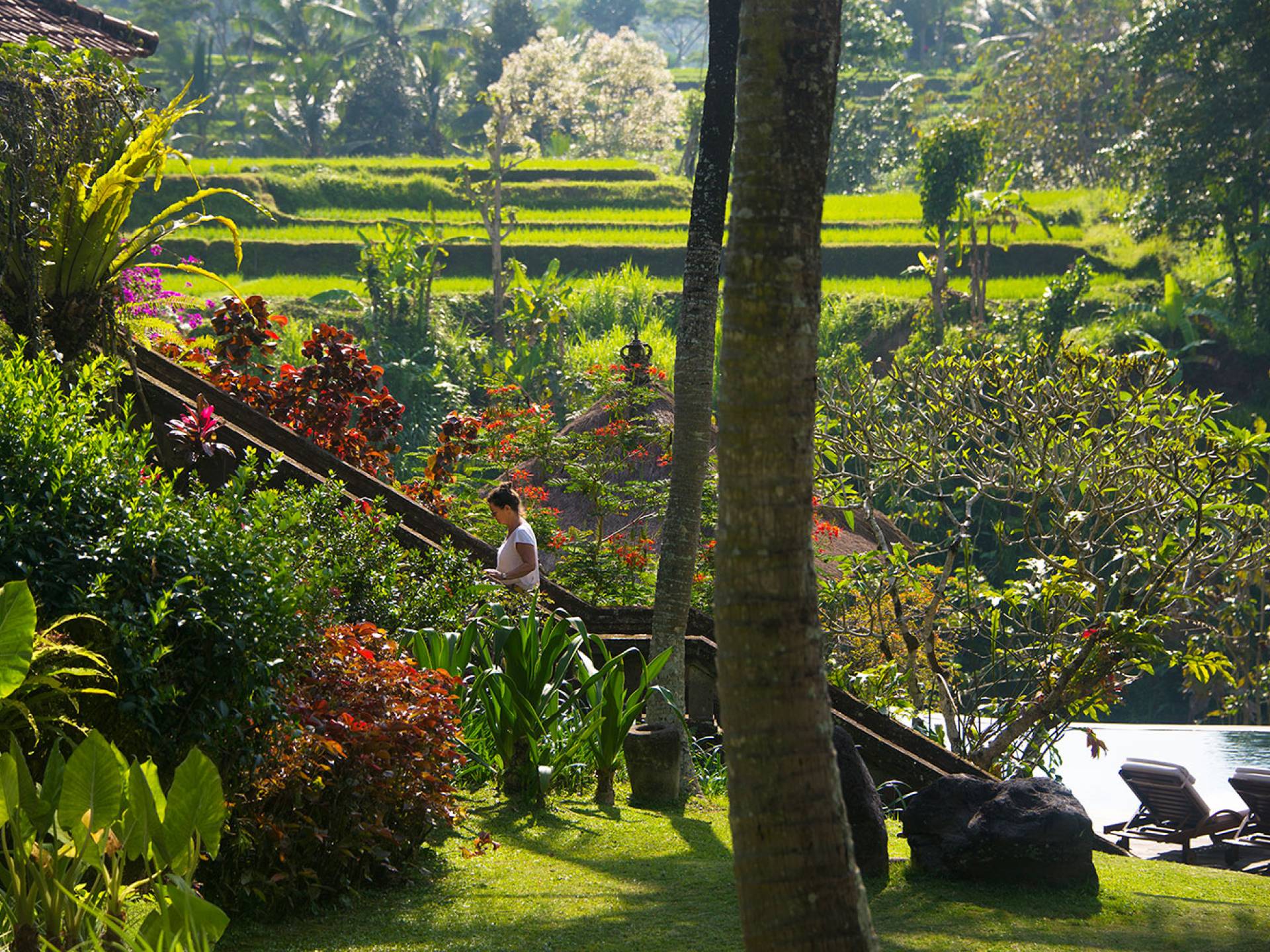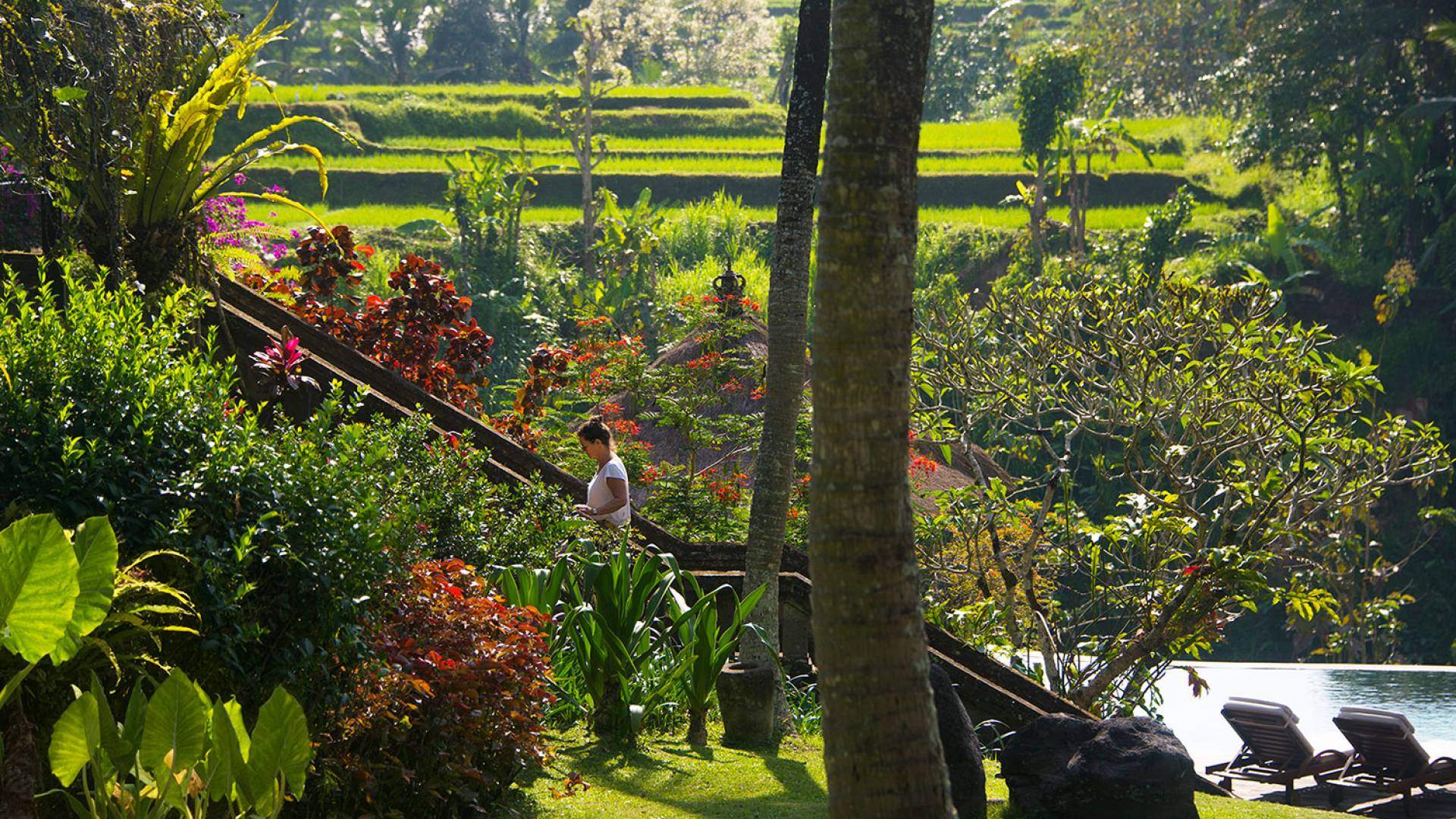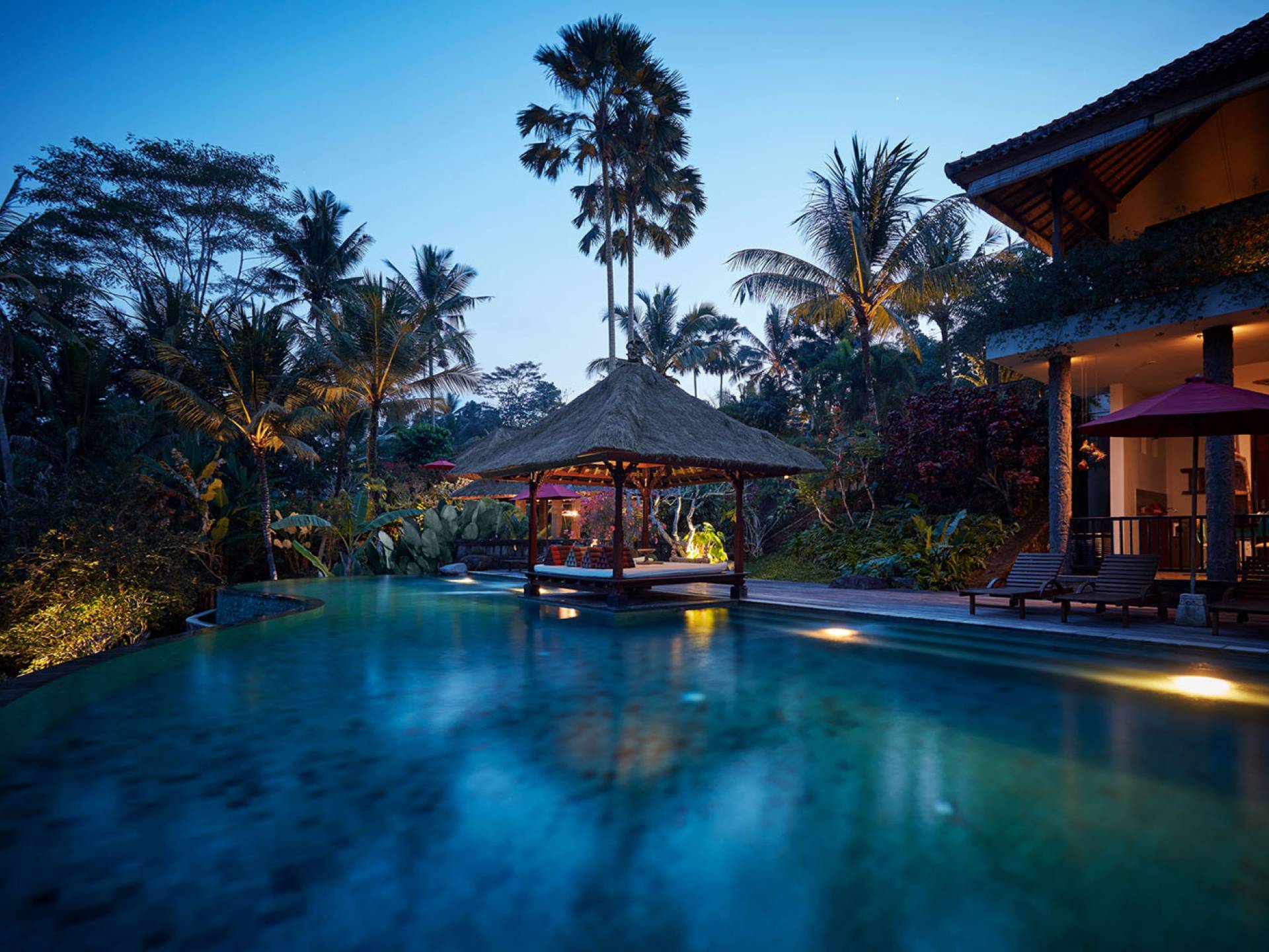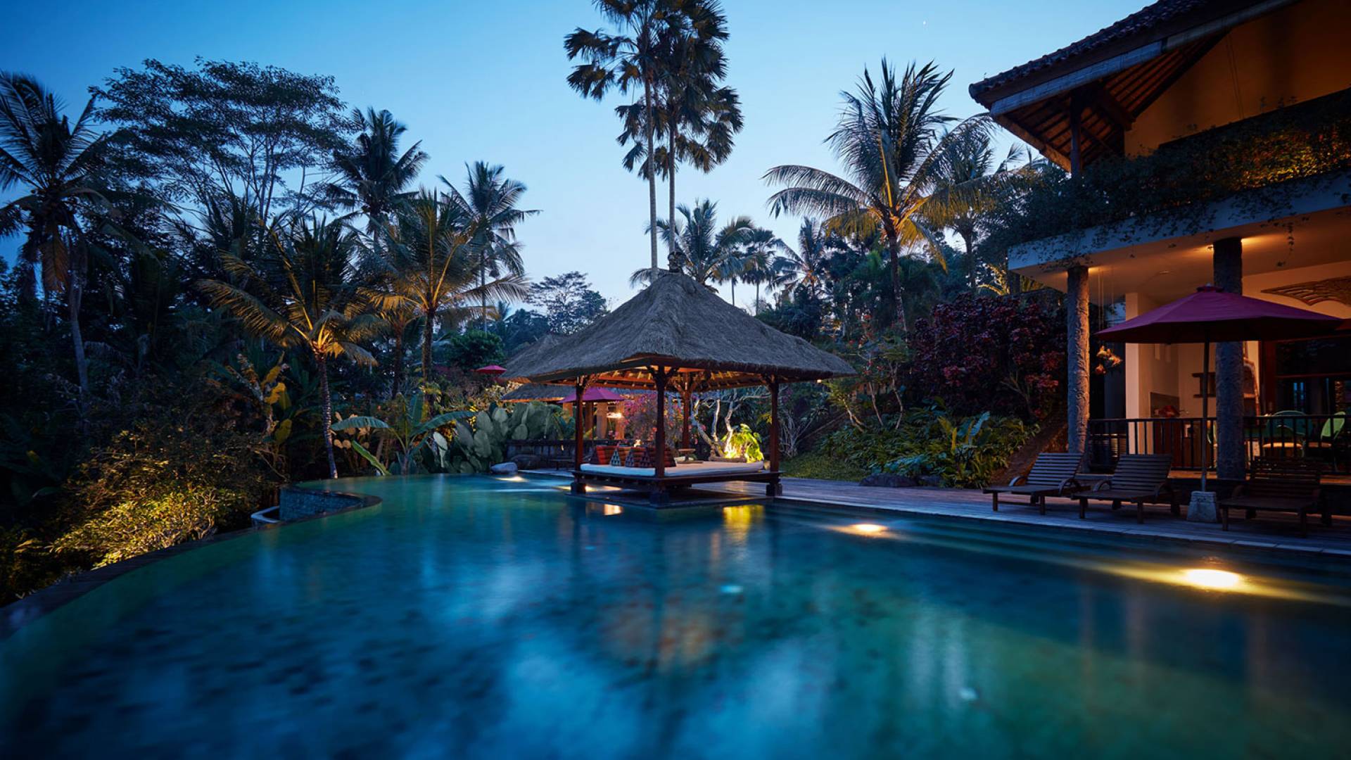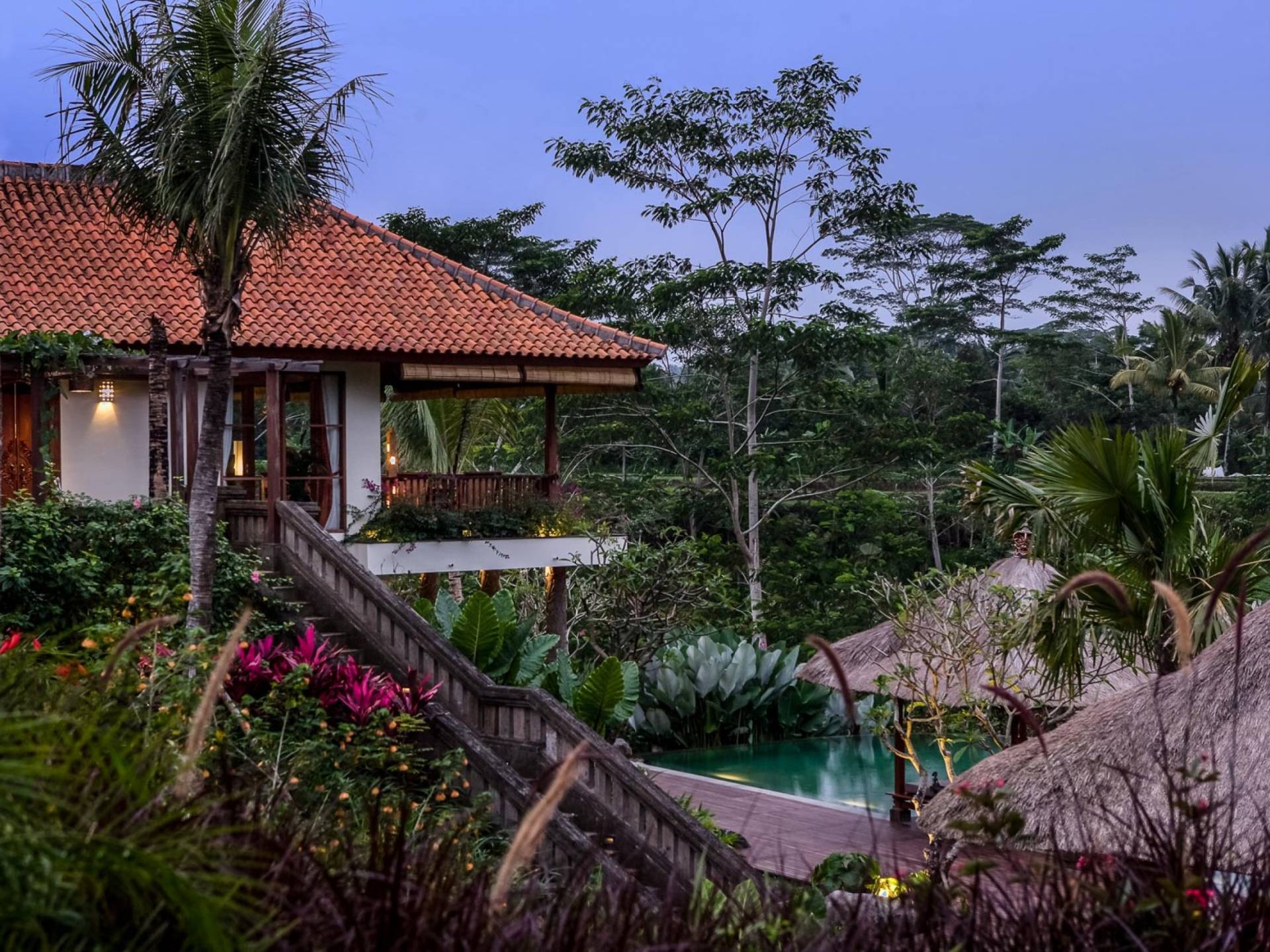 Fifteen minutes north of Ubud in the middle of lush green rice paddies, with a magnificent view of Bali’s mighty Mount Agung, lies Villa Bayad-a private luxurious 4 bedroom villa with two swimming pools, surrounded by an 8000 m2 garden of sweet-smelling flowers, lotus-ponds, and waterfalls. Staying here is your chance of experiencing the real Bali aesthetic from the inside and at the same time enjoying the tranquility of nature and the local countryside, while your friendly staff will be right there to cater to your every need. And with Ubud – Bali’s cultural center – just 15 minutes away, you will be conveniently close to shops, restaurants, and galleries.