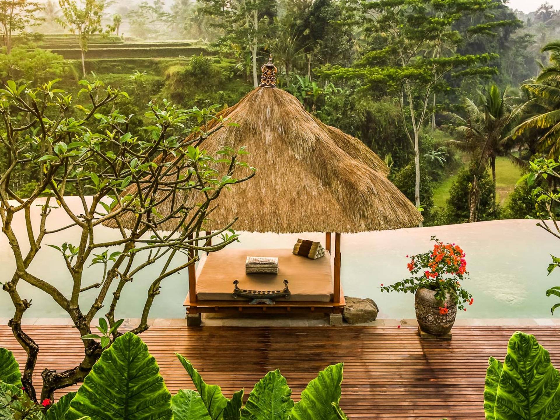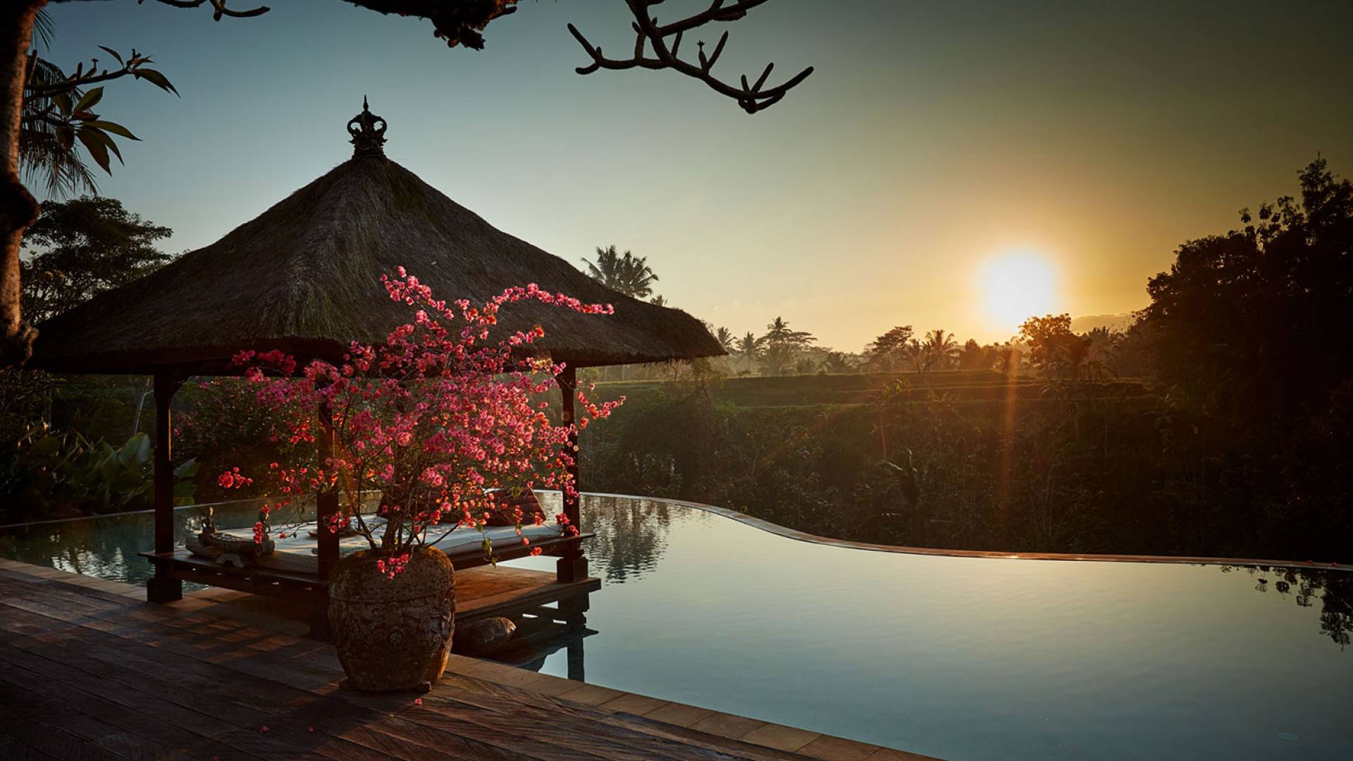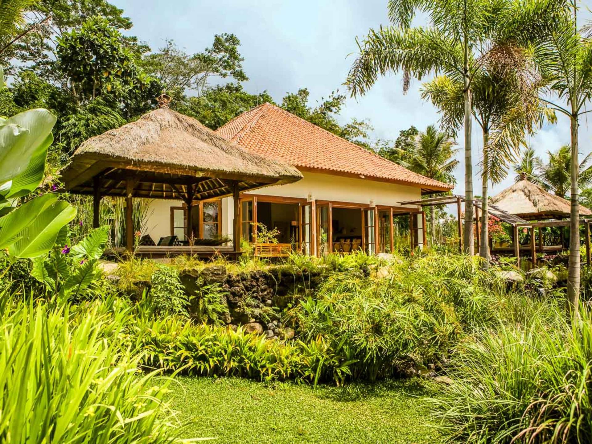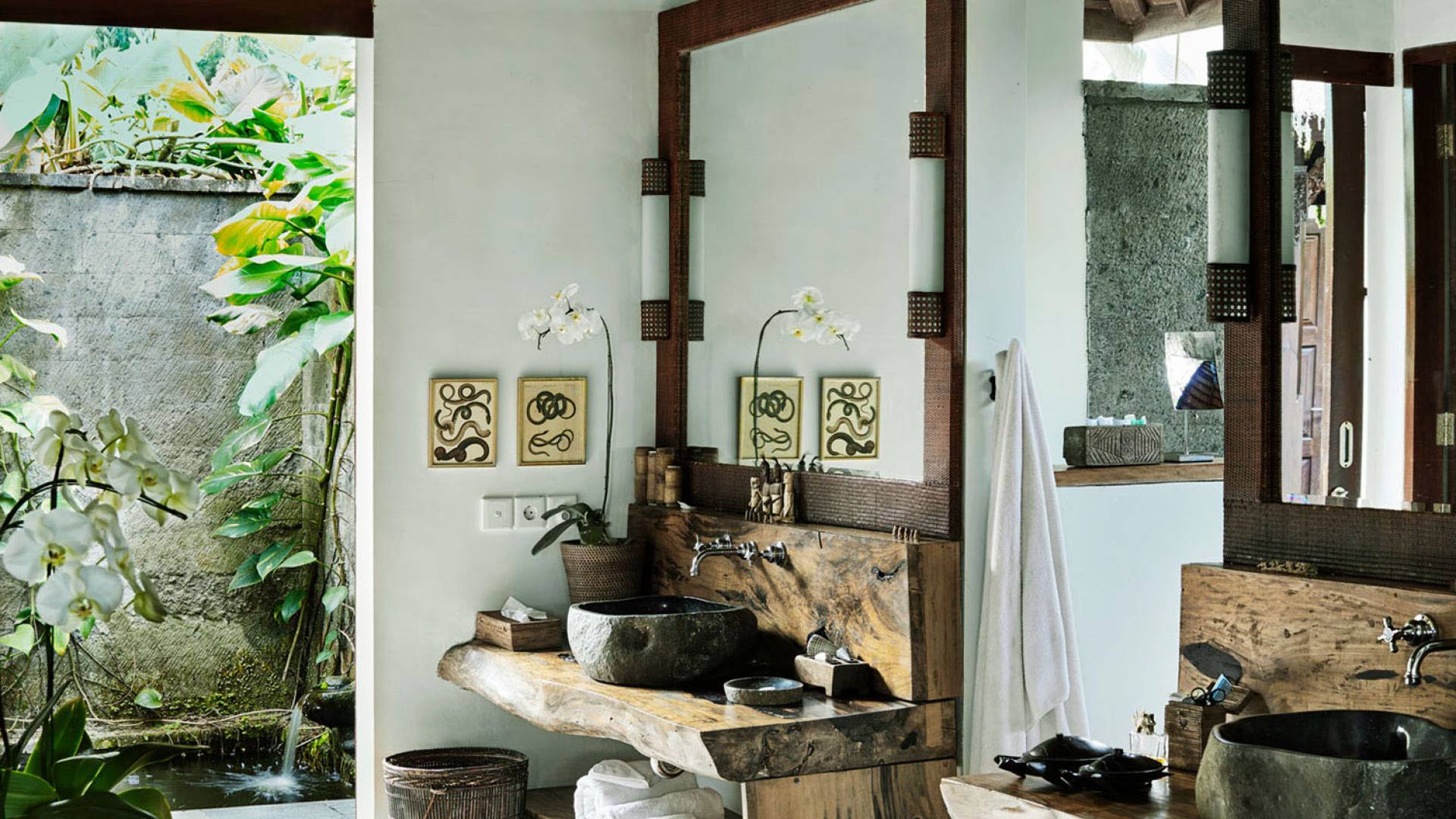 Fifteen minutes north of Ubud in the middle of lush green rice paddies, with a magnificent view of Bali’s mighty Mount Agung, lies Villa Bayad-a private luxurious 4 bedroom villa with two swimming pools, surrounded by an 8000 m2 garden of sweet-smelling flowers, lotus-ponds, and waterfalls. Staying here is your chance of experiencing the real Bali aesthetic from the inside and at the same time enjoying the tranquility of nature and the local countryside, while your friendly staff will be right there to cater to your every need. And with Ubud – Bali’s cultural center – just 15 minutes away, you will be conveniently close to shops, restaurants, and galleries.