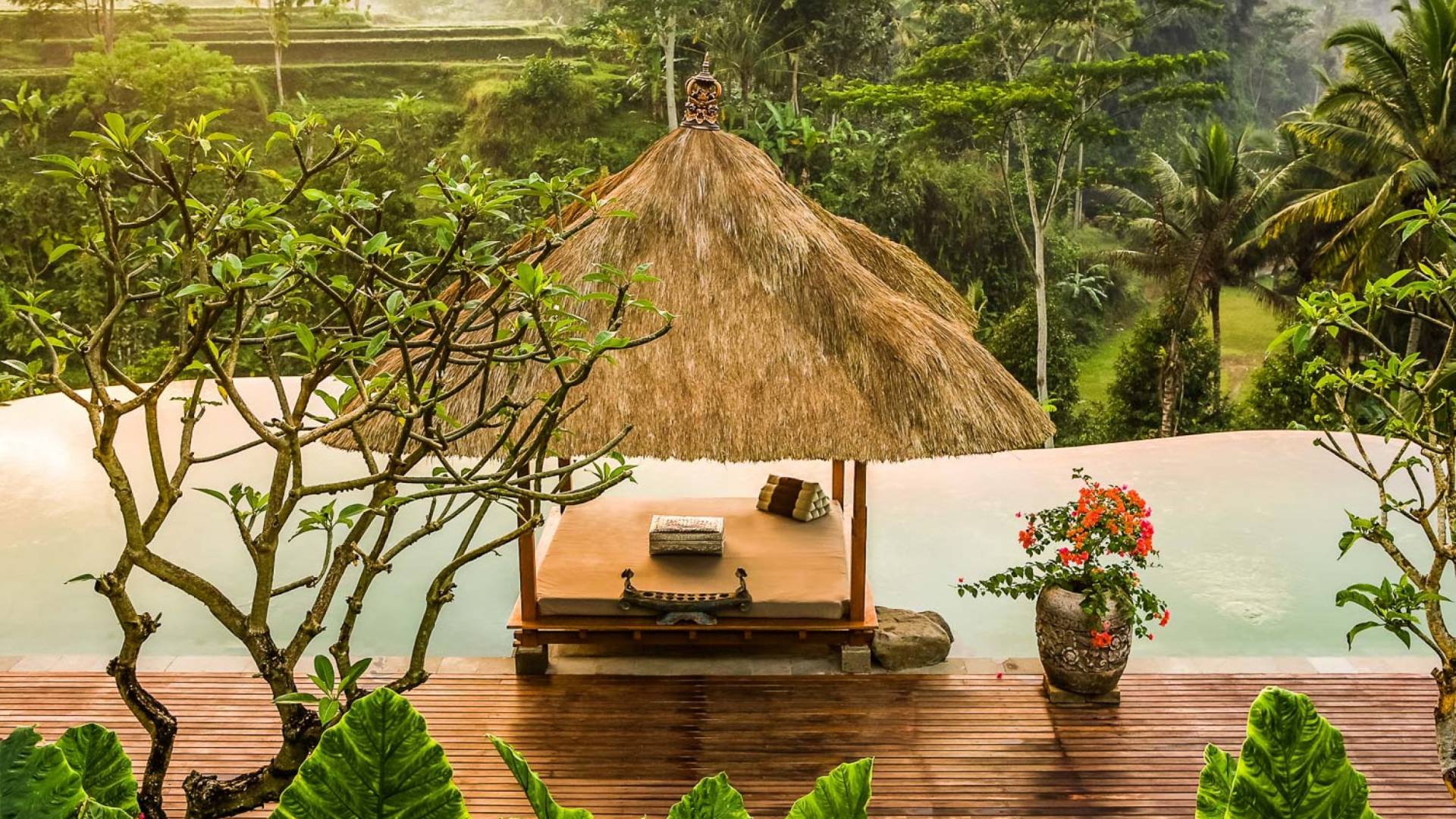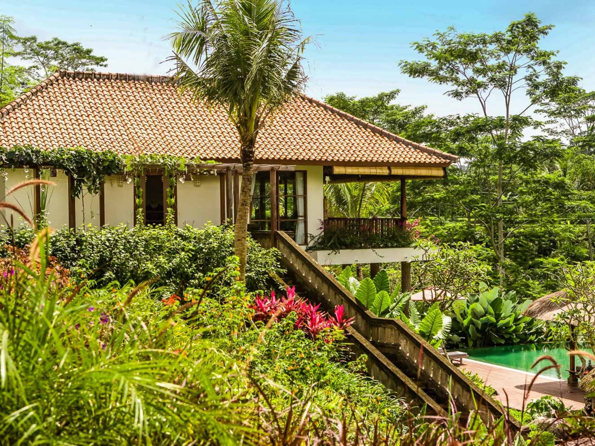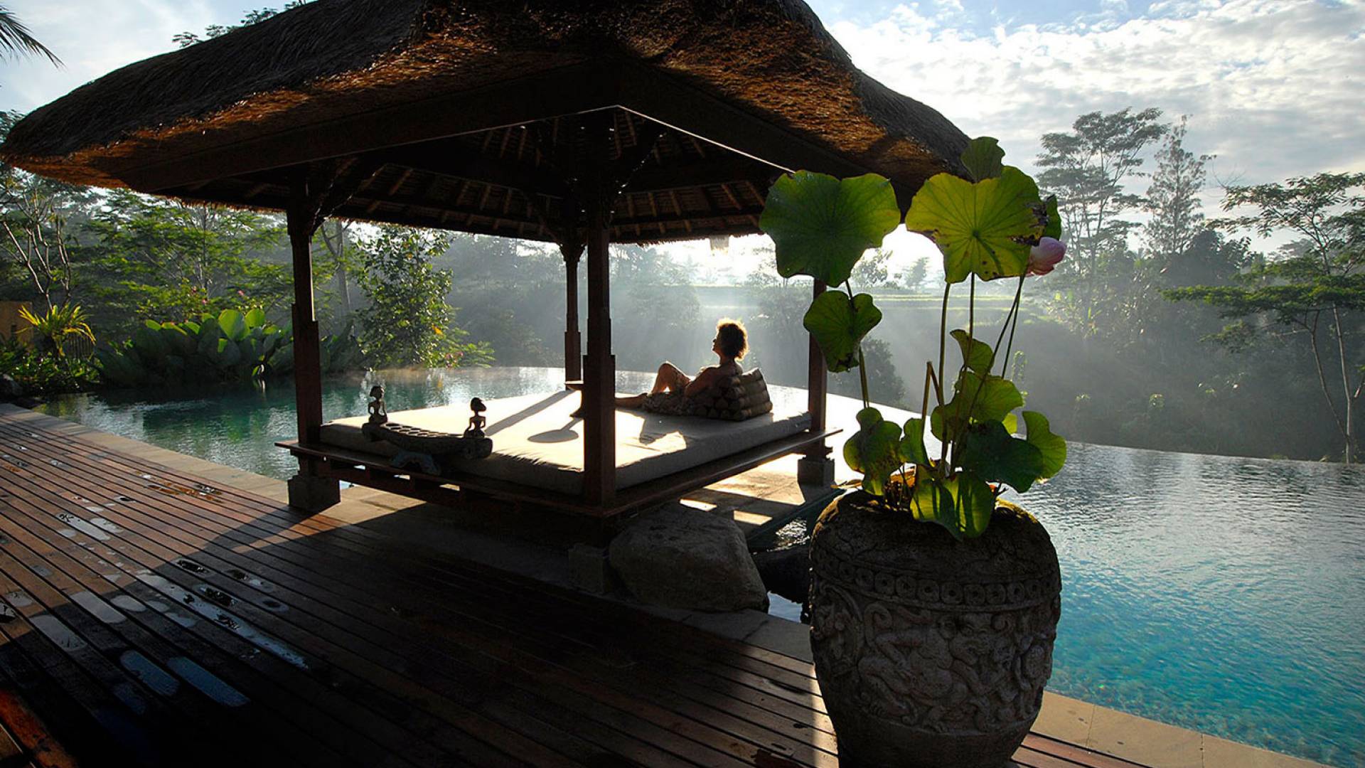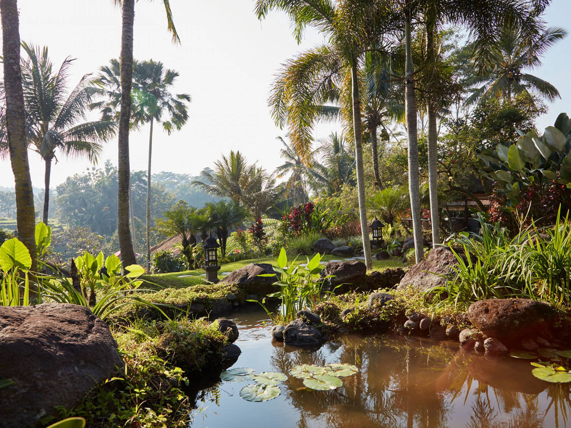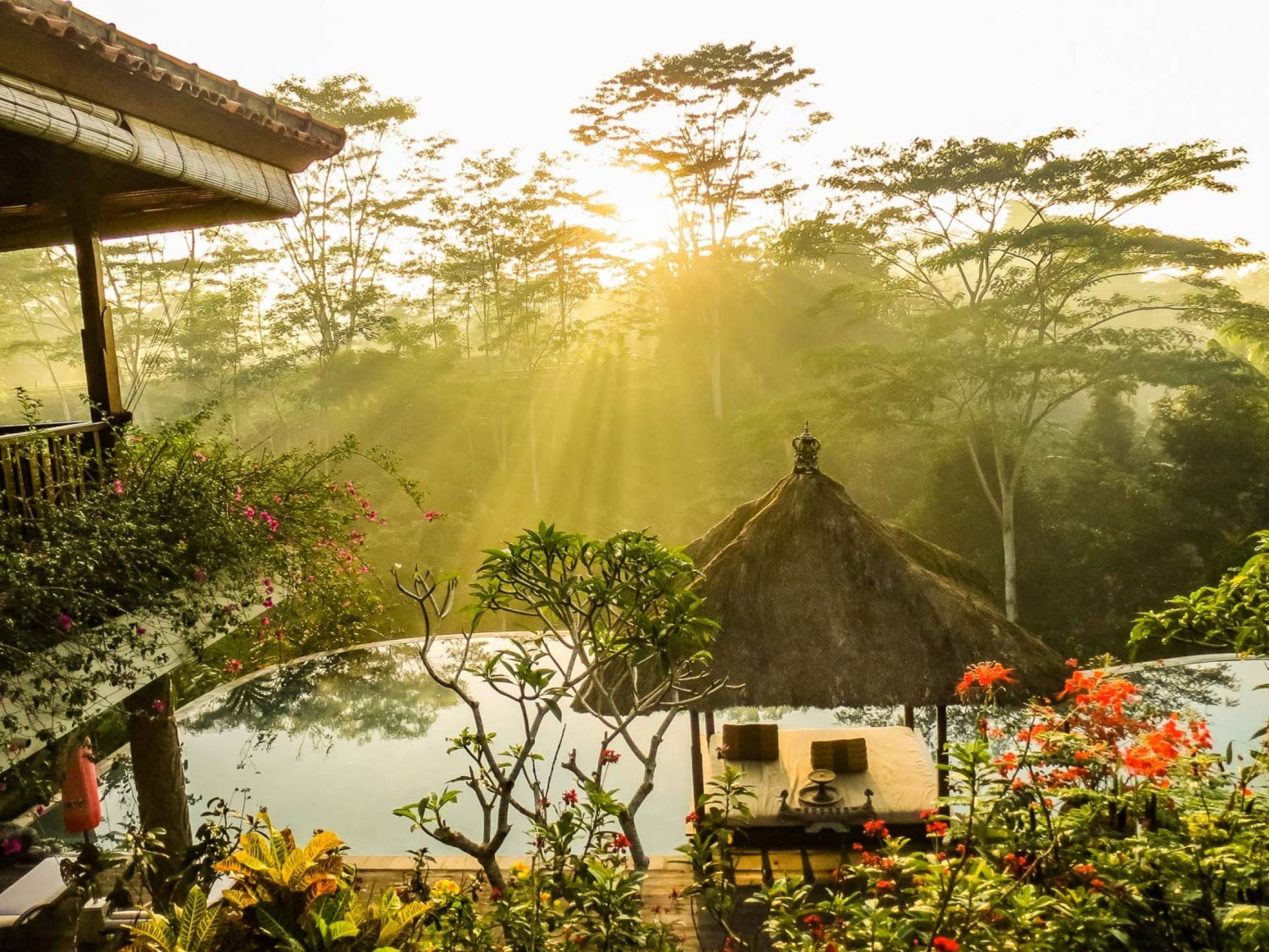 Fifteen minutes north of Ubud in the middle of lush green rice paddies, with a magnificent view of Bali’s mighty Mount Agung, lies Villa Bayad-a private luxurious 4 bedroom villa with two swimming pools, surrounded by an 8000 m2 garden of sweet-smelling flowers, lotus-ponds, and waterfalls. Staying here is your chance of experiencing the real Bali aesthetic from the inside and at the same time enjoying the tranquility of nature and the local countryside, while your friendly staff will be right there to cater to your every need. And with Ubud – Bali’s cultural center – just 15 minutes away, you will be conveniently close to shops, restaurants, and galleries.