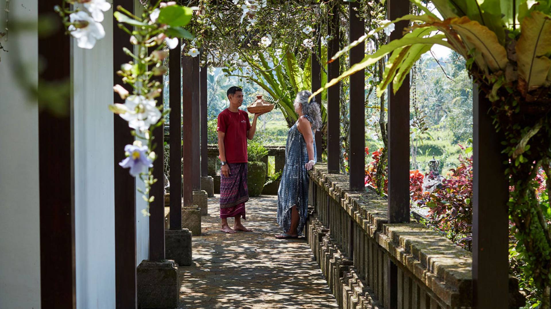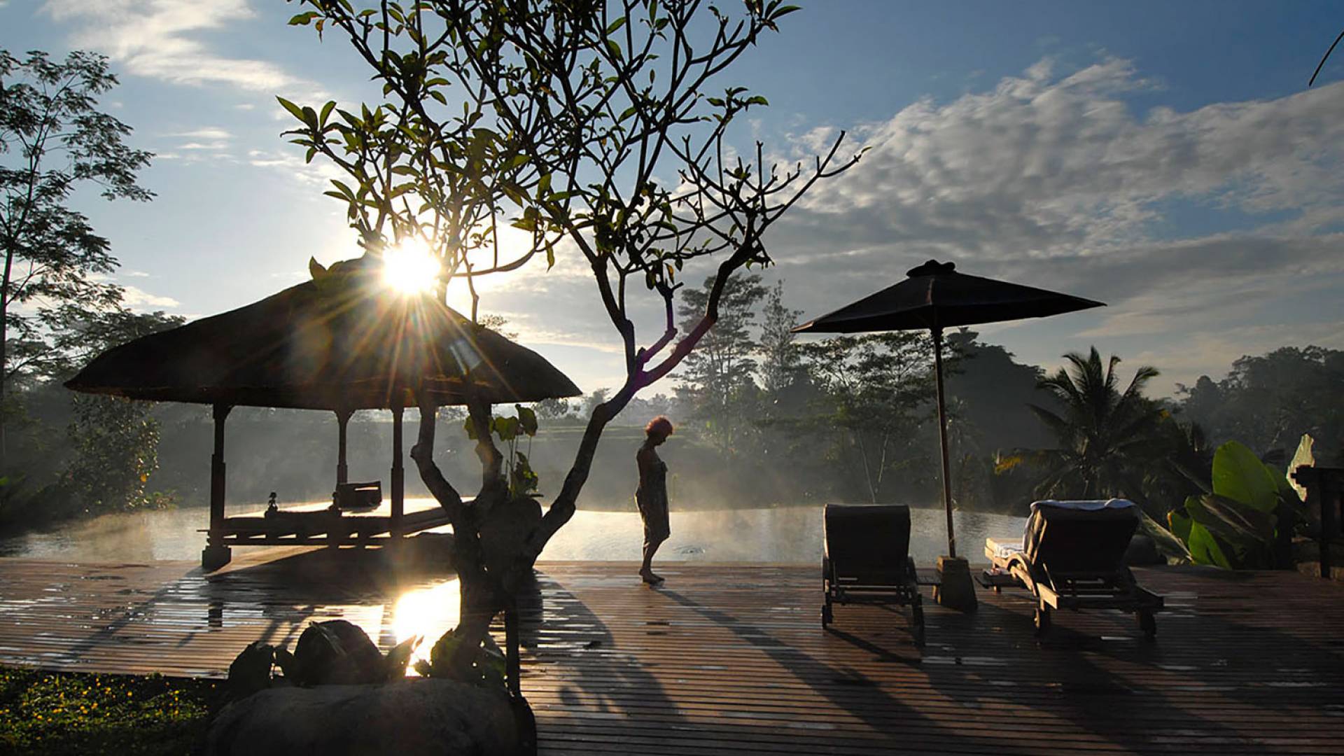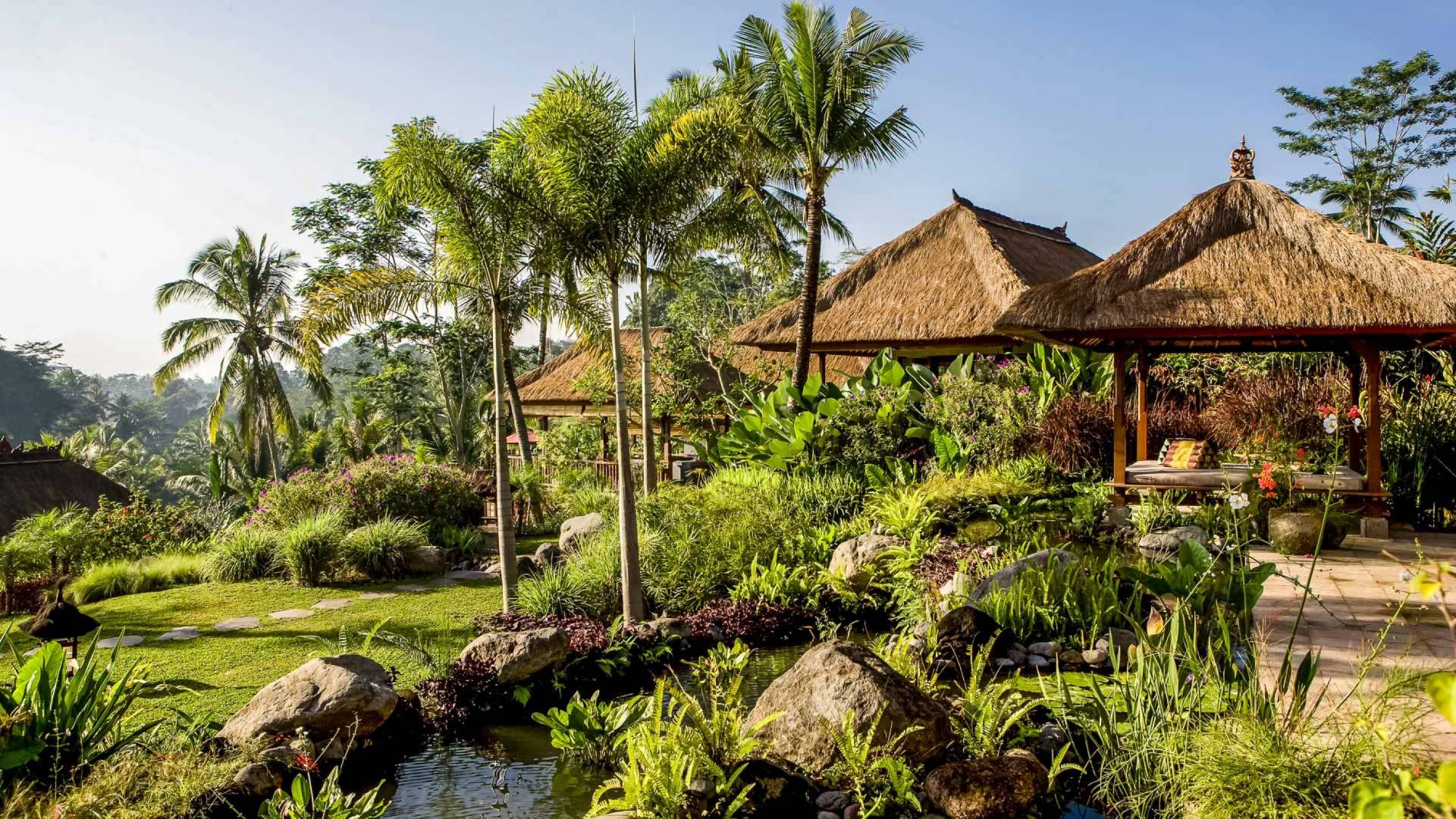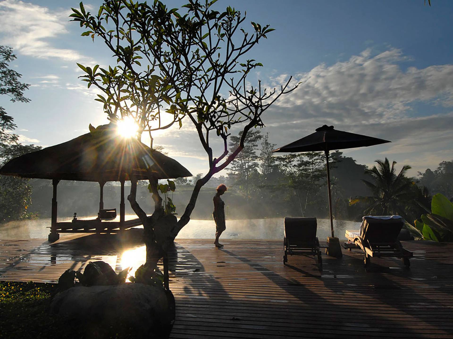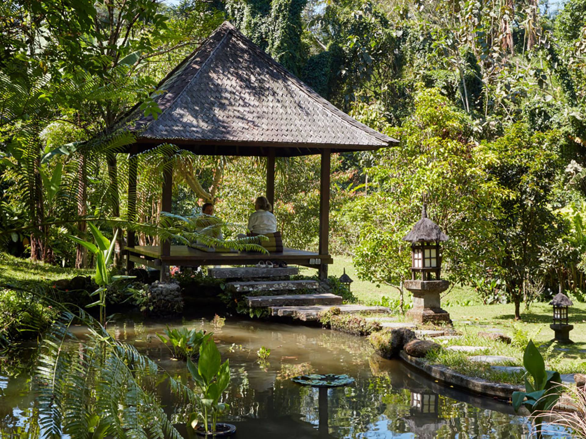 Fifteen minutes north of Ubud in the middle of lush green rice paddies, with a magnificent view of Bali’s mighty Mount Agung, lies Villa Bayad-a private luxurious 4 bedroom villa with two swimming pools, surrounded by an 8000 m2 garden of sweet-smelling flowers, lotus-ponds, and waterfalls. Staying here is your chance of experiencing the real Bali aesthetic from the inside and at the same time enjoying the tranquility of nature and the local countryside, while your friendly staff will be right there to cater to your every need. And with Ubud – Bali’s cultural center – just 15 minutes away, you will be conveniently close to shops, restaurants, and galleries.