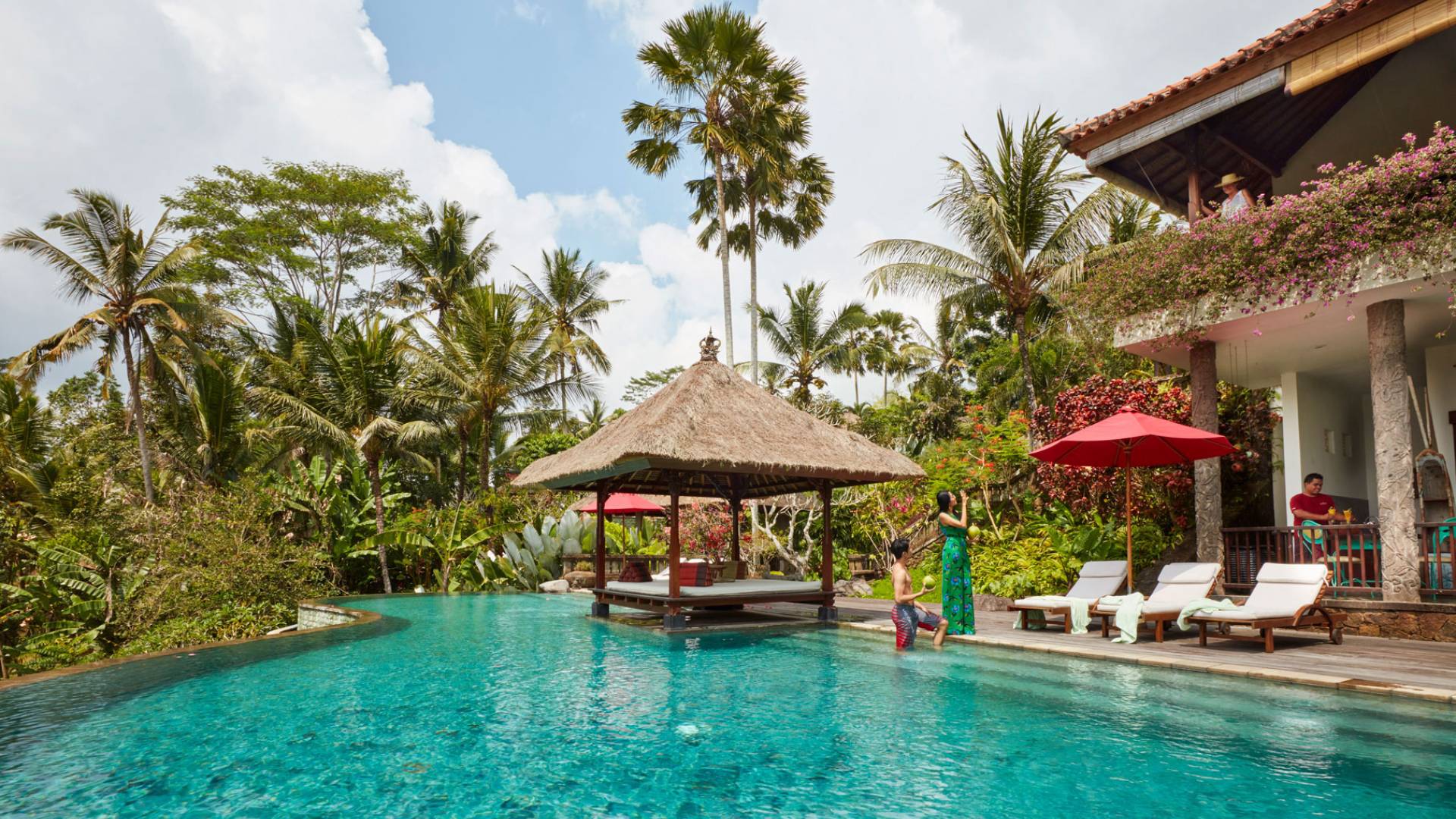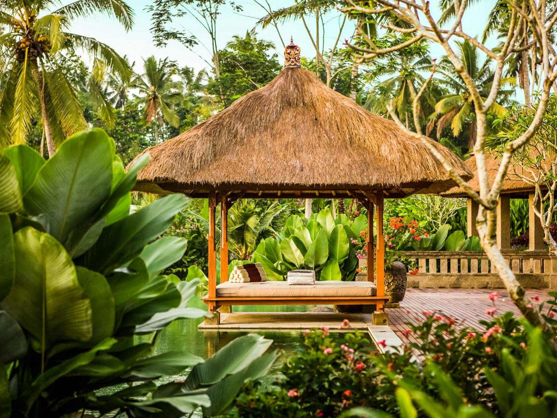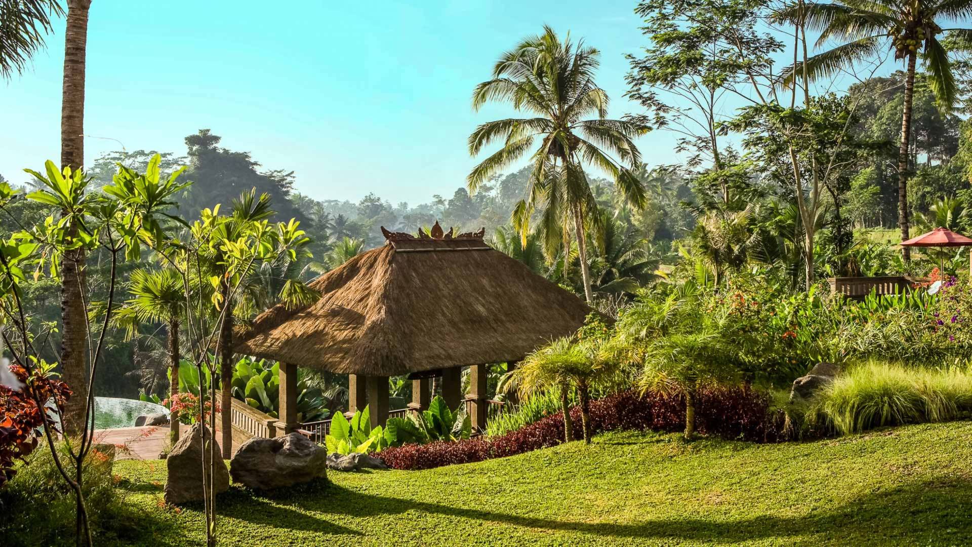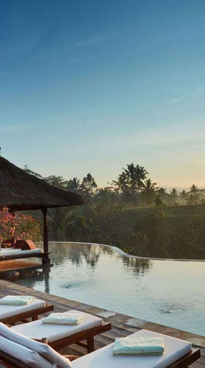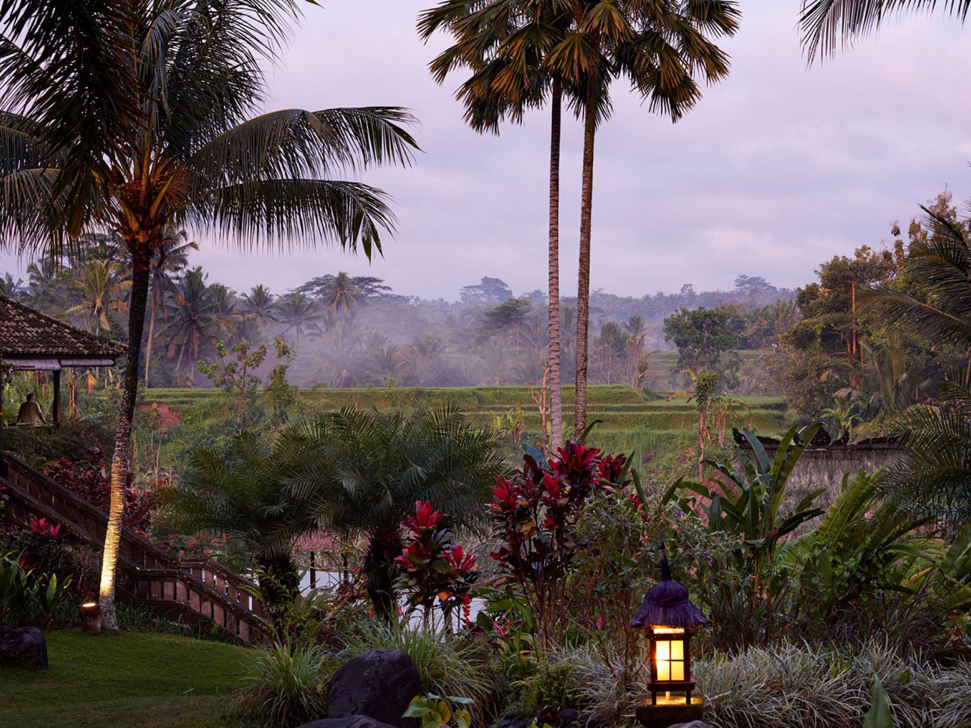 Fifteen minutes north of Ubud in the middle of lush green rice paddies, with a magnificent view of Bali’s mighty Mount Agung, lies Villa Bayad-a private luxurious 4 bedroom villa with two swimming pools, surrounded by an 8000 m2 garden of sweet-smelling flowers, lotus-ponds, and waterfalls. Staying here is your chance of experiencing the real Bali aesthetic from the inside and at the same time enjoying the tranquility of nature and the local countryside, while your friendly staff will be right there to cater to your every need. And with Ubud – Bali’s cultural center – just 15 minutes away, you will be conveniently close to shops, restaurants, and galleries.