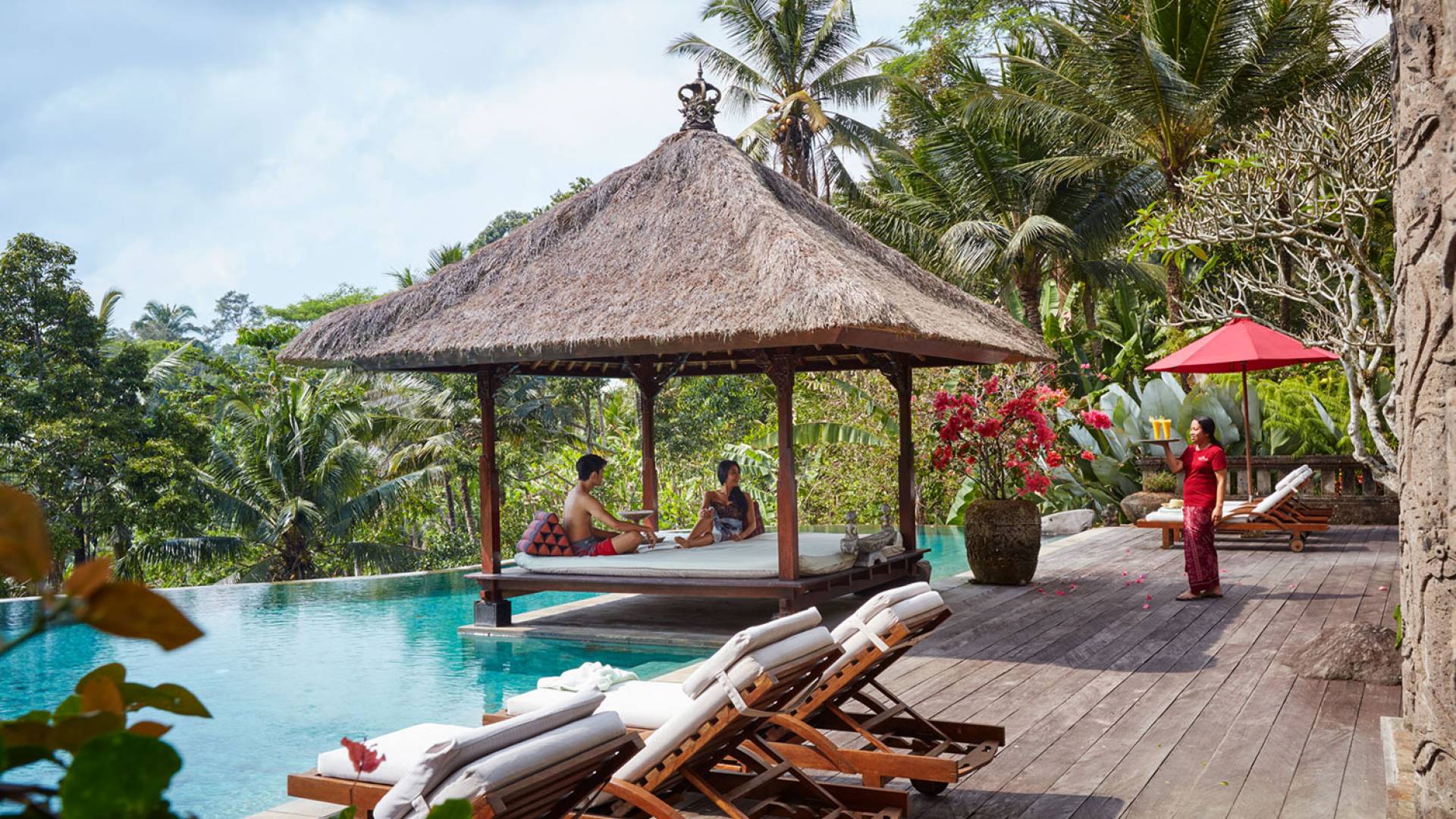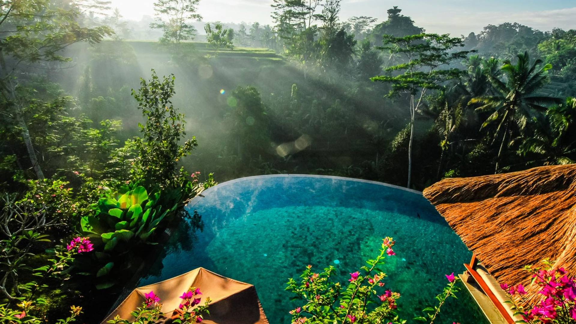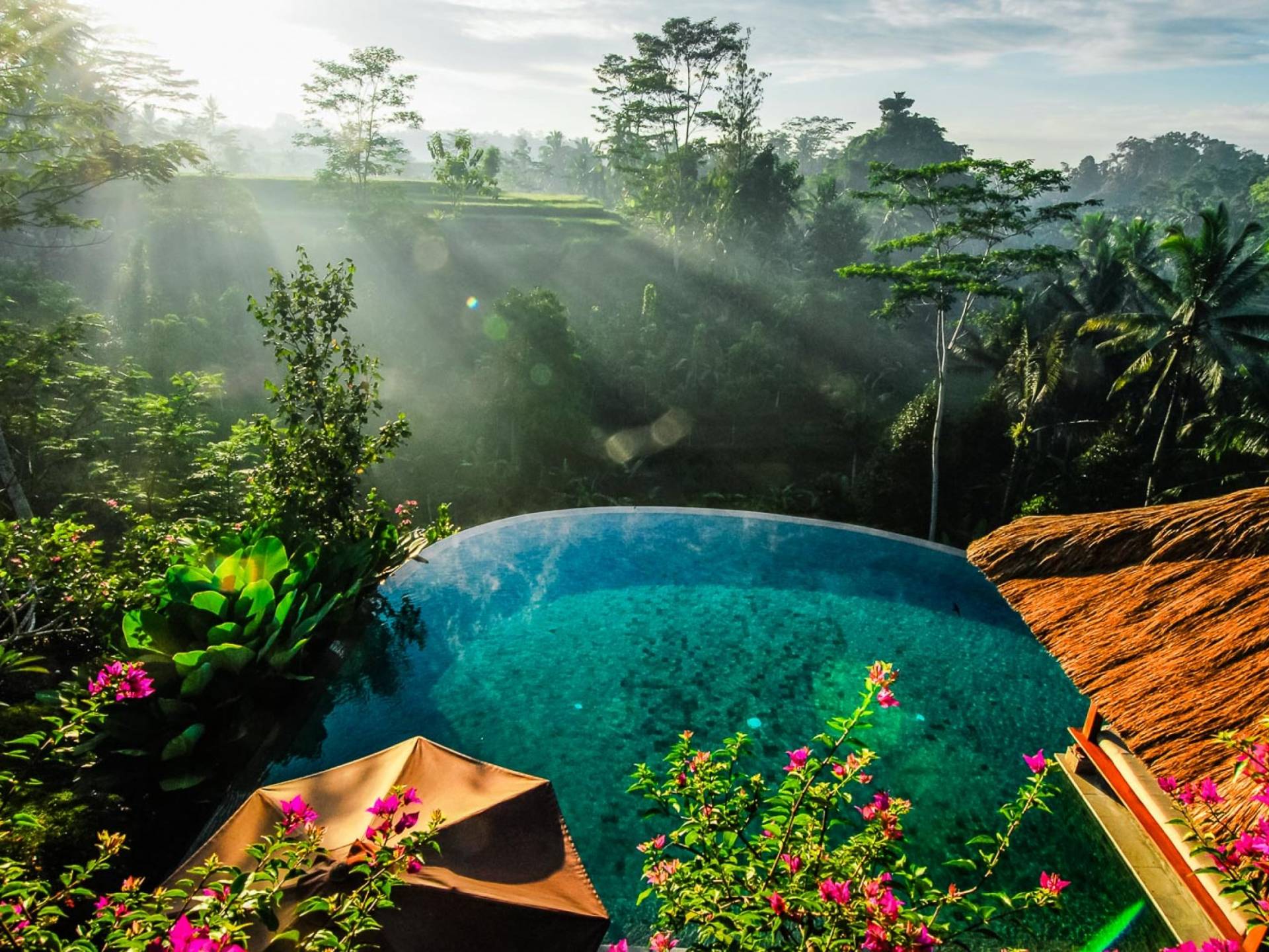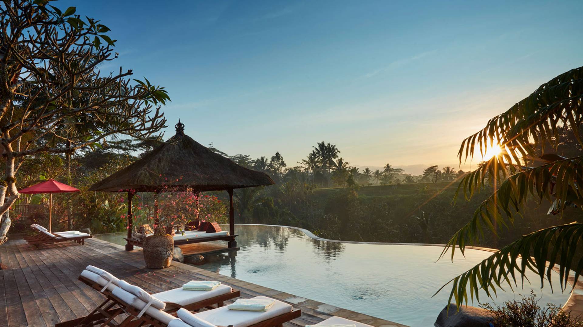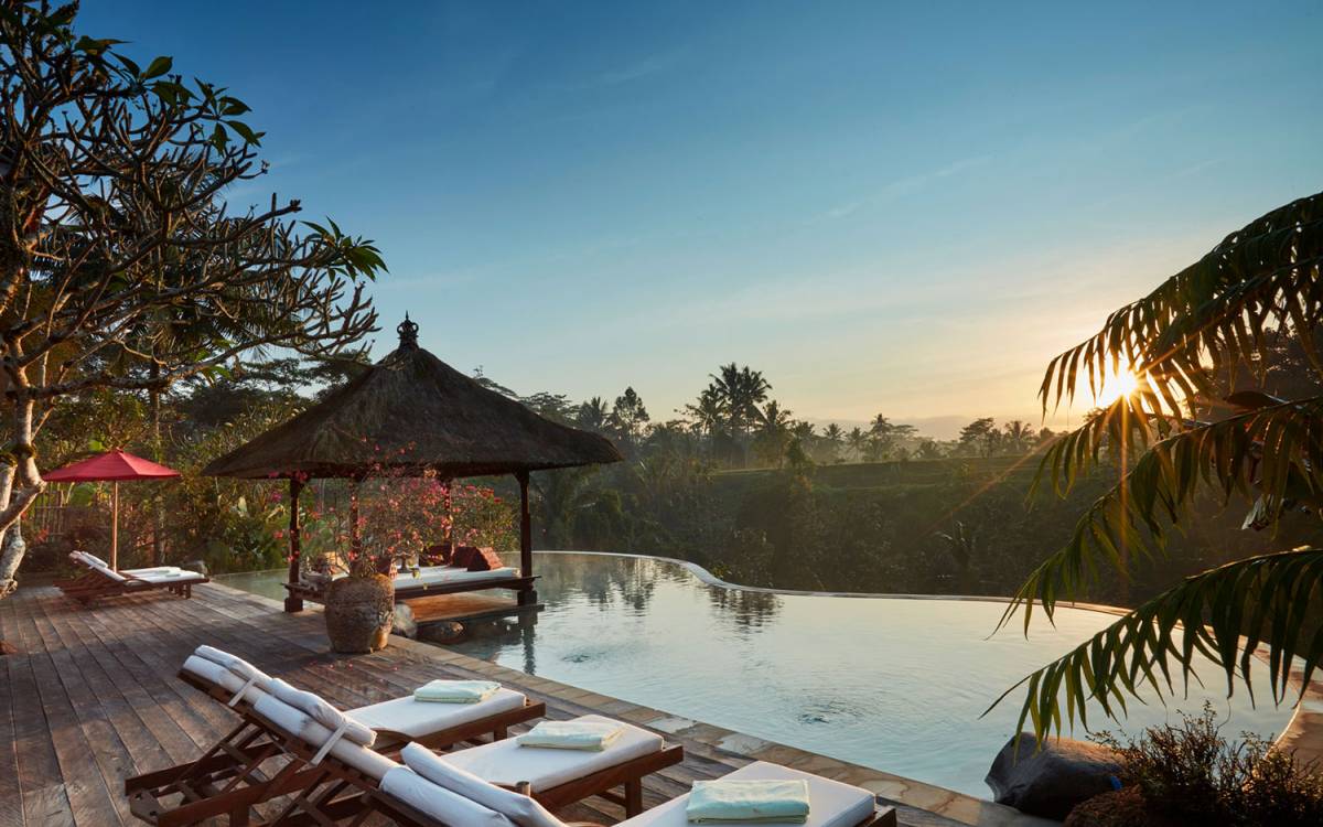 Fifteen minutes north of Ubud in the middle of lush green rice paddies, with a magnificent view of Bali’s mighty Mount Agung, lies Villa Bayad-a private luxurious 4 bedroom villa with two swimming pools, surrounded by an 8000 m2 garden of sweet-smelling flowers, lotus-ponds, and waterfalls. Staying here is your chance of experiencing the real Bali aesthetic from the inside and at the same time enjoying the tranquility of nature and the local countryside, while your friendly staff will be right there to cater to your every need. And with Ubud – Bali’s cultural center – just 15 minutes away, you will be conveniently close to shops, restaurants, and galleries.