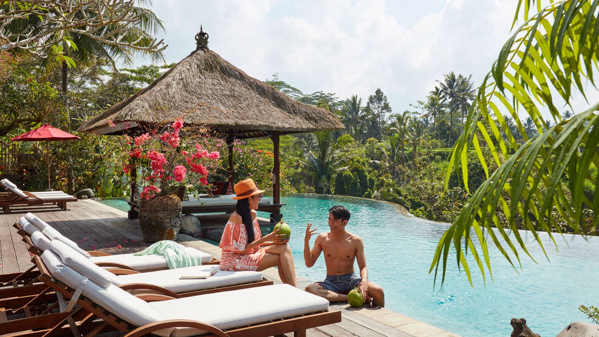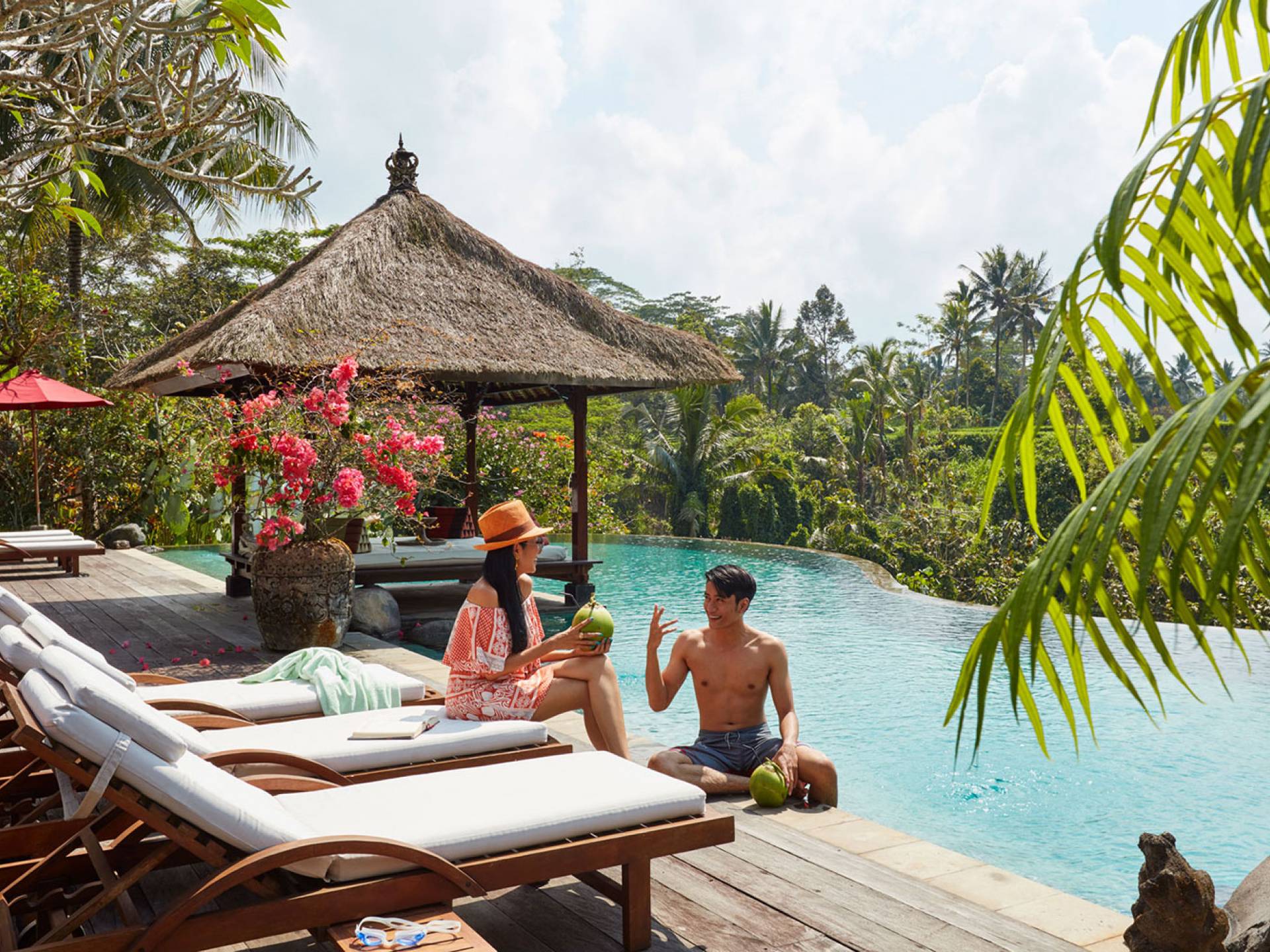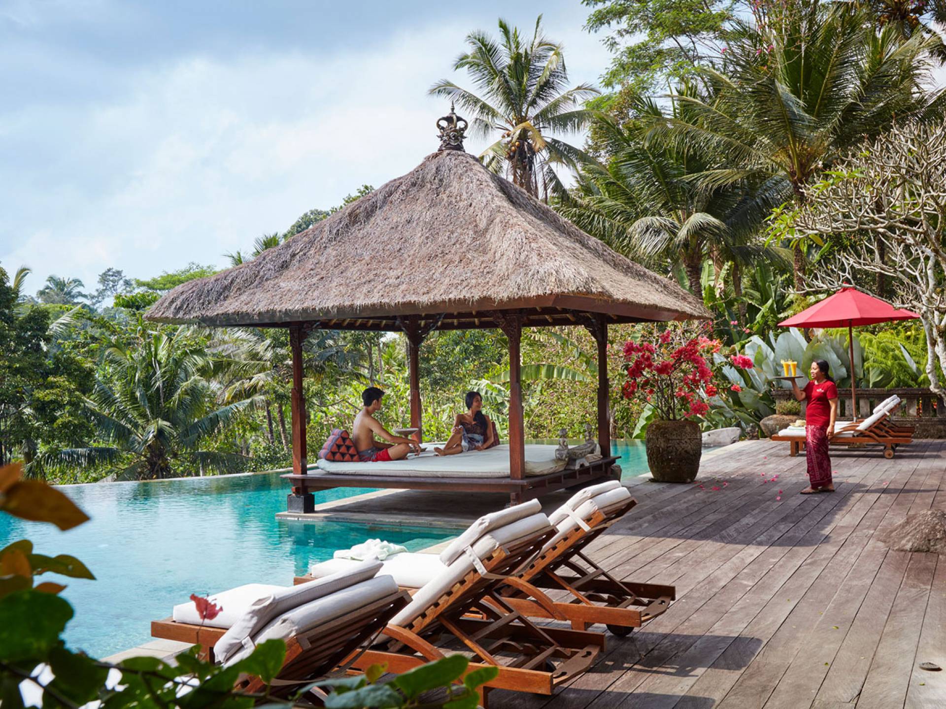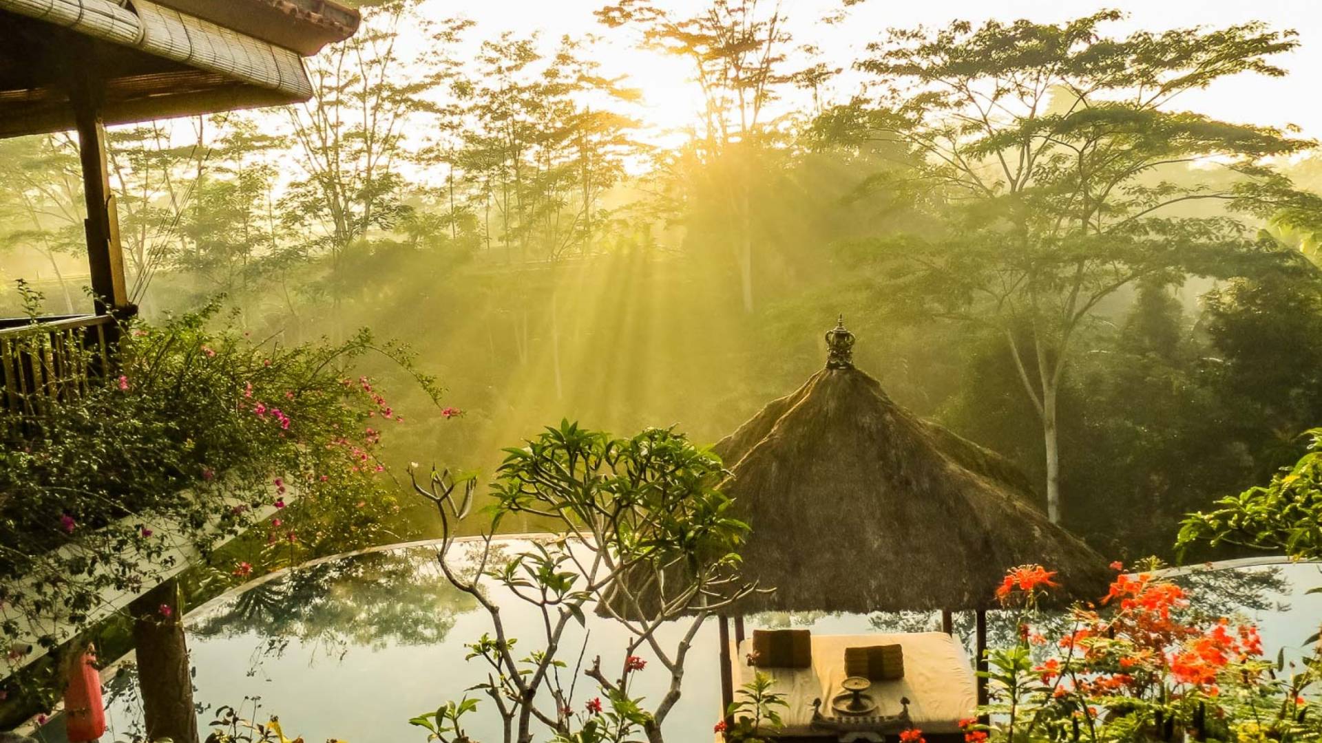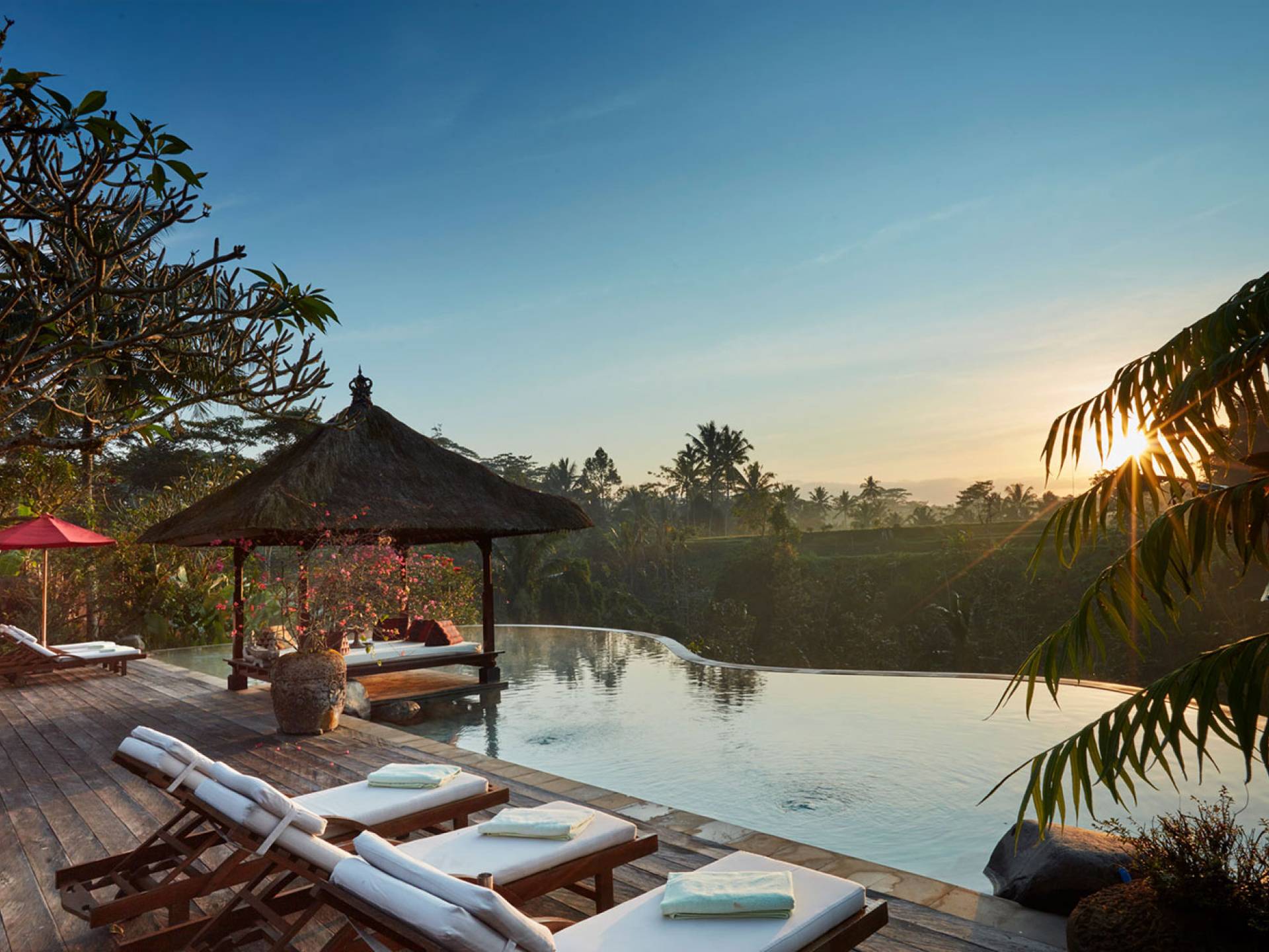Fifteen minutes north of Ubud in the middle of lush green rice paddies, with a magnificent view of Bali’s mighty Mount Agung, lies Villa Bayad-a private luxurious 4 bedroom villa with two swimming pools, surrounded by an 8000 m2 garden of sweet-smelling flowers, lotus-ponds, and waterfalls. Staying here is your chance of experiencing the real Bali aesthetic from the inside and at the same time enjoying the tranquility of nature and the local countryside, while your friendly staff will be right there to cater to your every need. And with Ubud – Bali’s cultural center – just 15 minutes away, you will be conveniently close to shops, restaurants, and galleries.