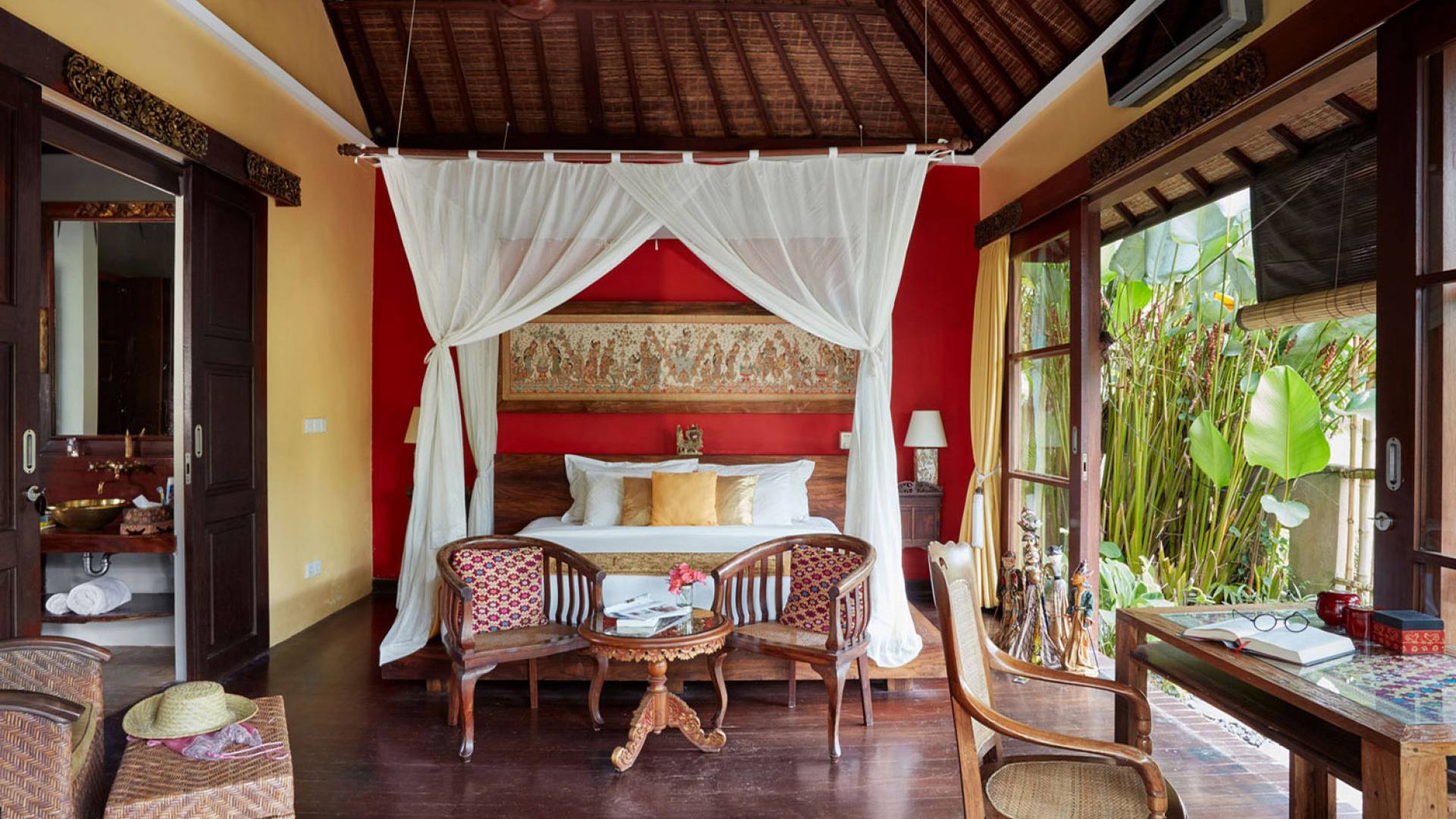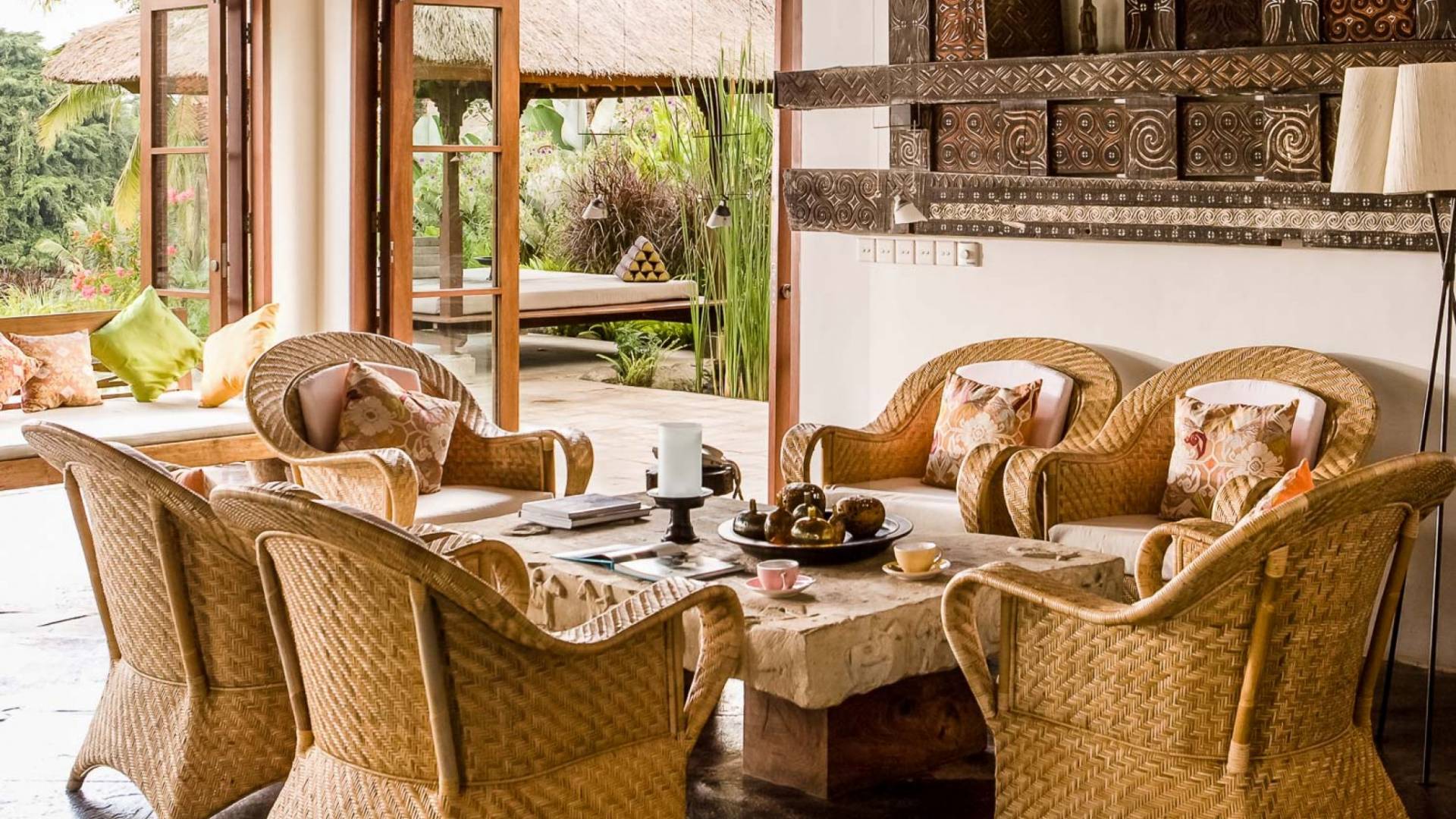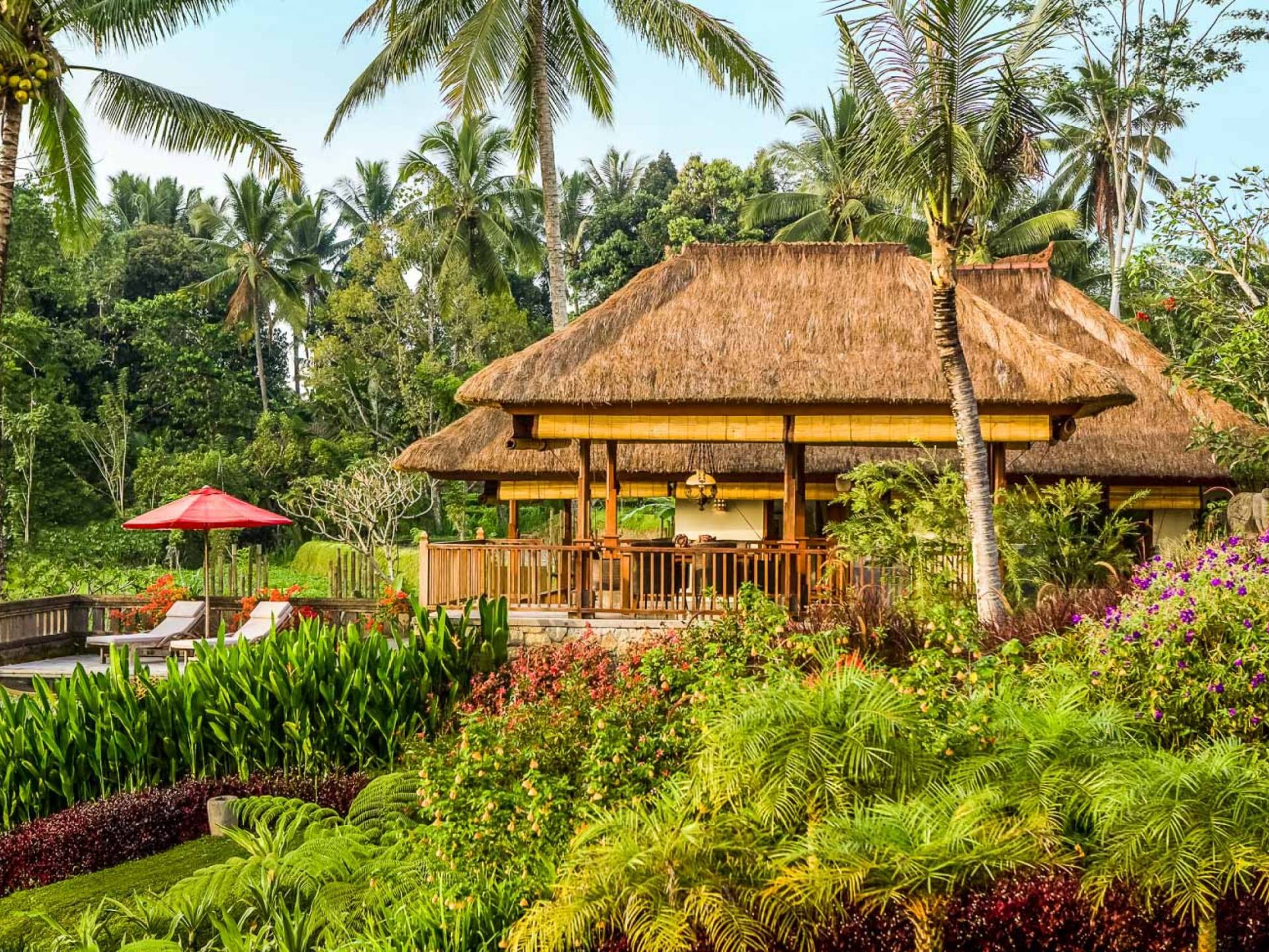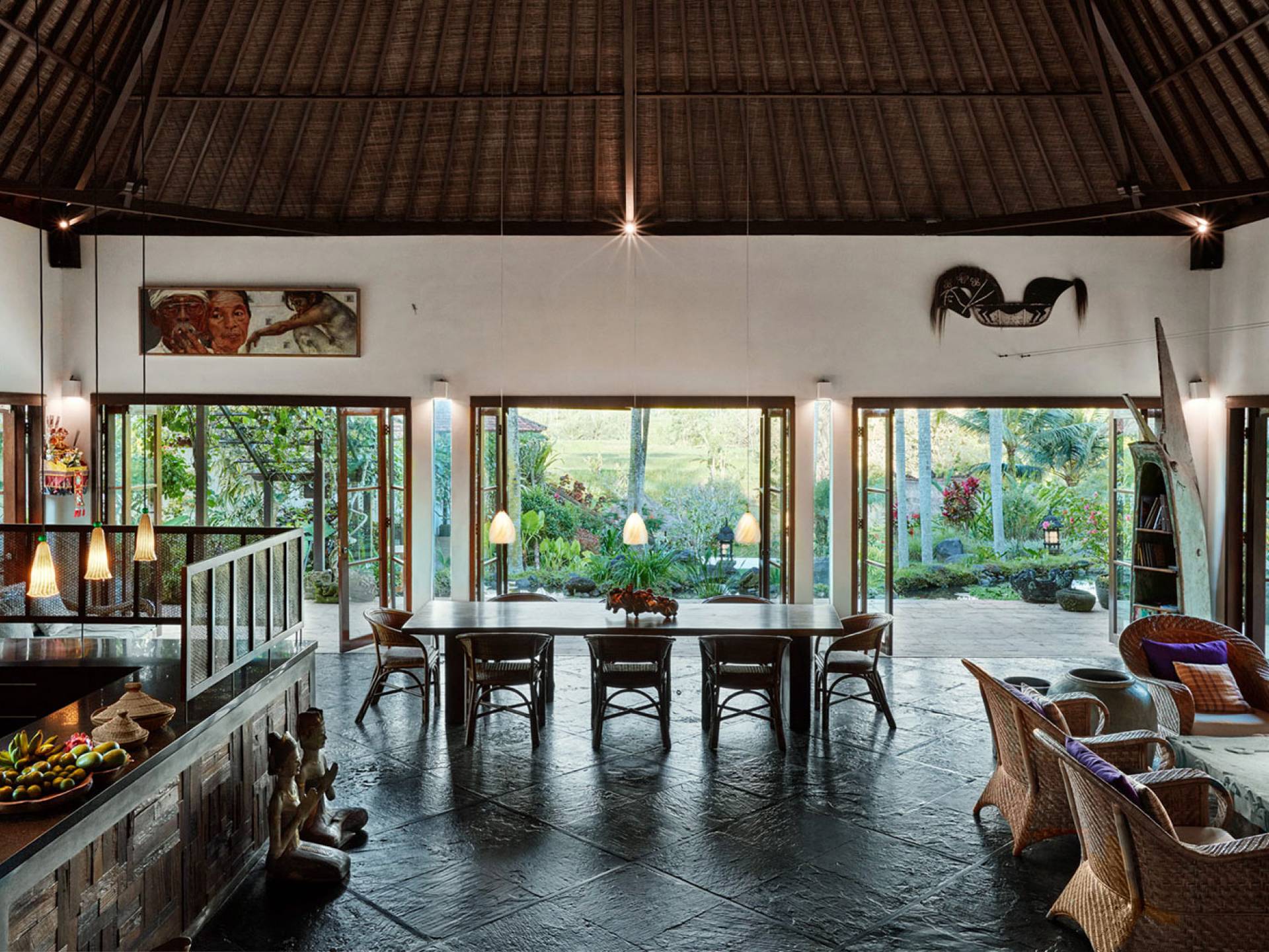 Villa Bayad is a spacious, luxurious 4 bedroom villa, designed by Popo Danes, one of the most renowned architects in Southeast Asia. The villa is traditionally laid out as a compound, the 4 bedrooms being separate houses beside the main house, all connected by flower-covered pergolas. From every room, there is a beautiful view across the surrounding rice tresses to Bali’s sacred volcano on the horizon.