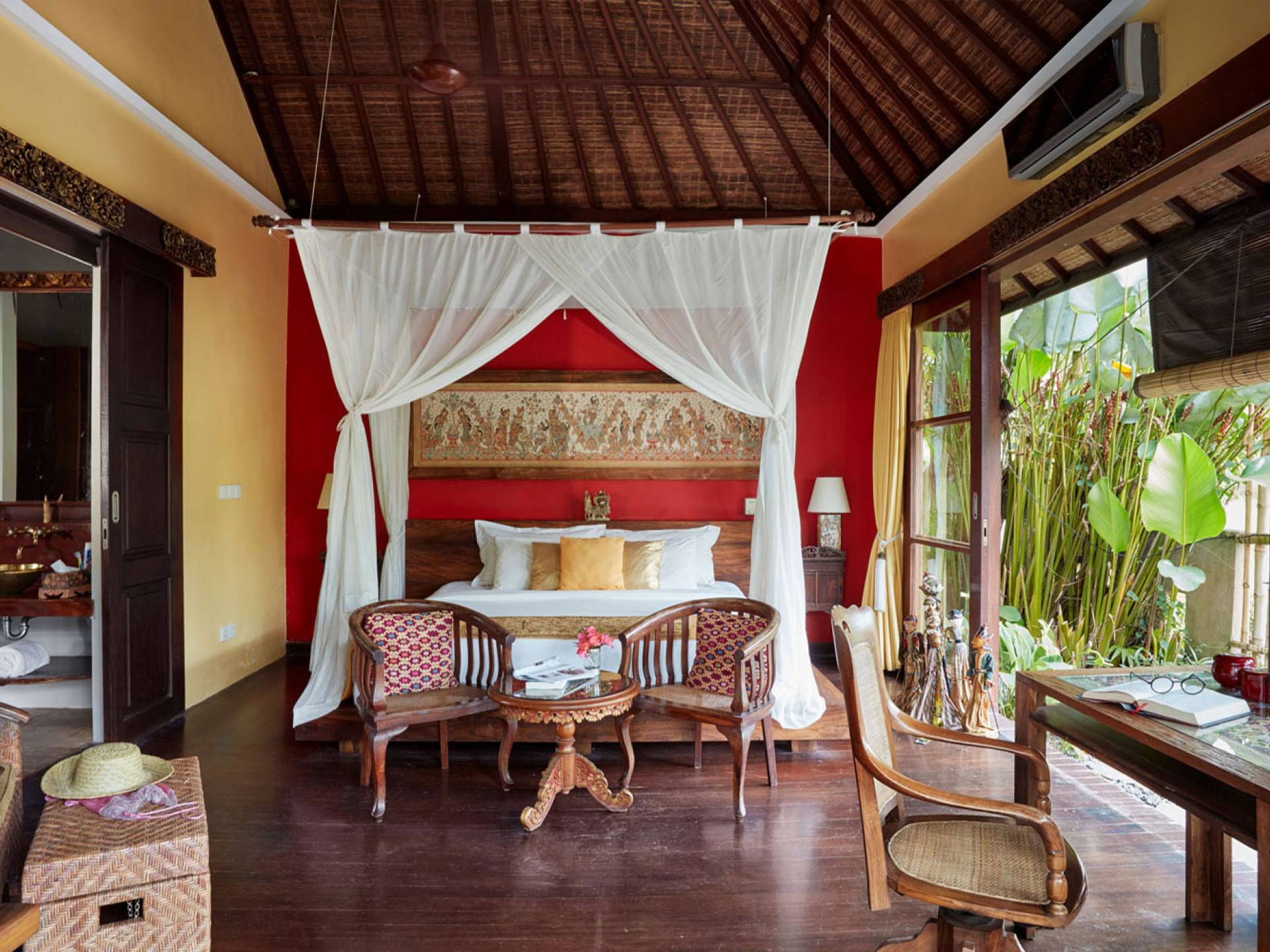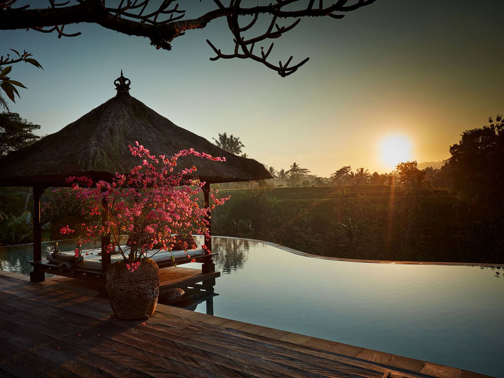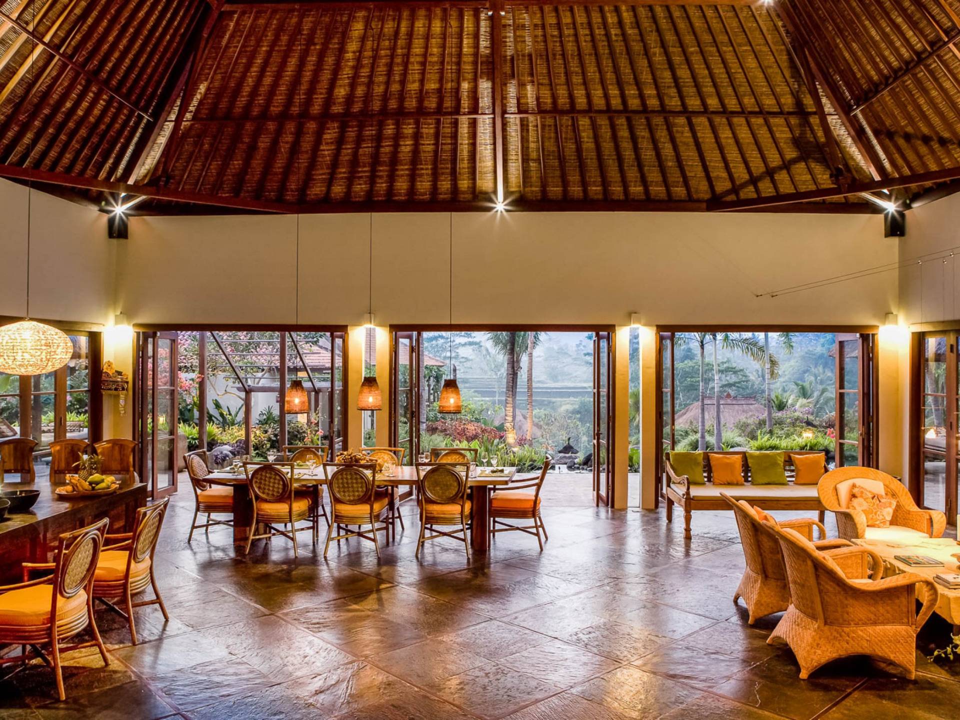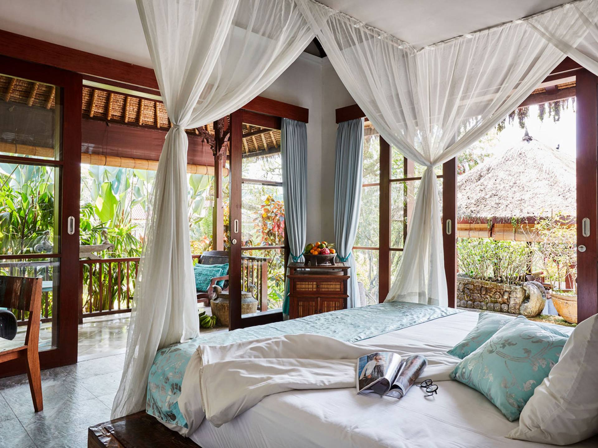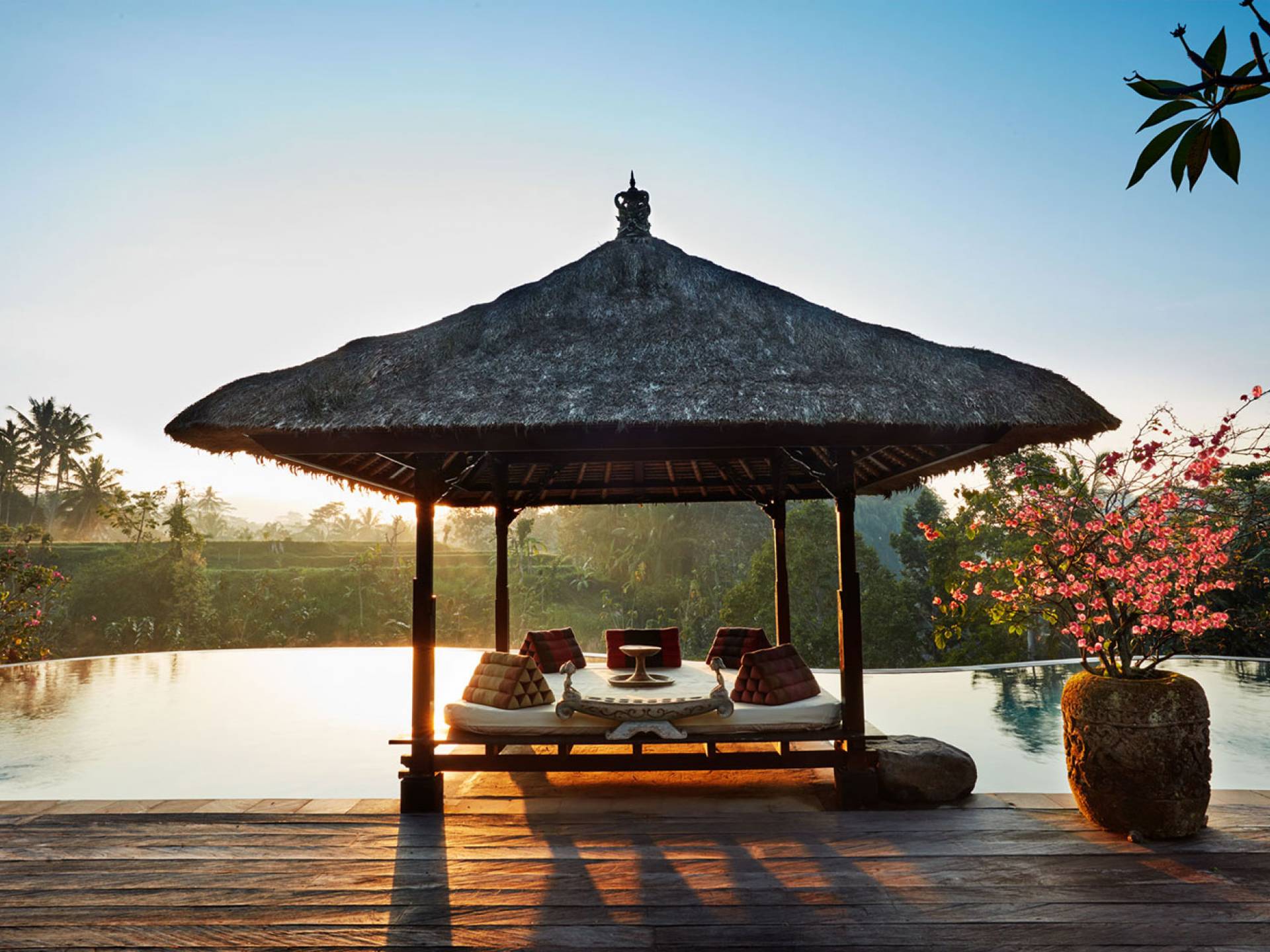 Villa Bayad is a spacious, luxurious 4 bedroom villa, designed by Popo Danes, one of the most renowned architects in Southeast Asia. The villa is traditionally laid out as a compound, the 4 bedrooms being separate houses beside the main house, all connected by flower-covered pergolas. From every room, there is a beautiful view across the surrounding rice tresses to Bali’s sacred volcano on the horizon.