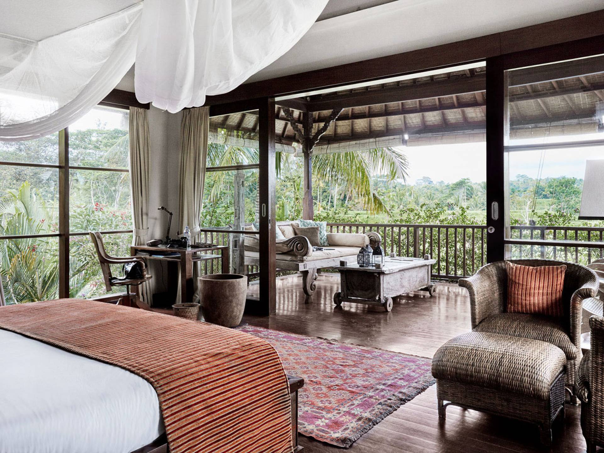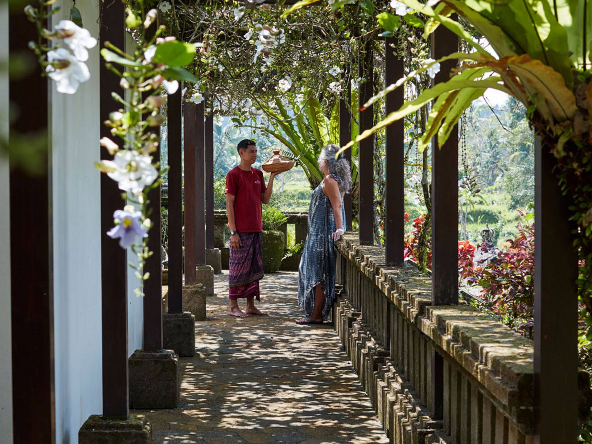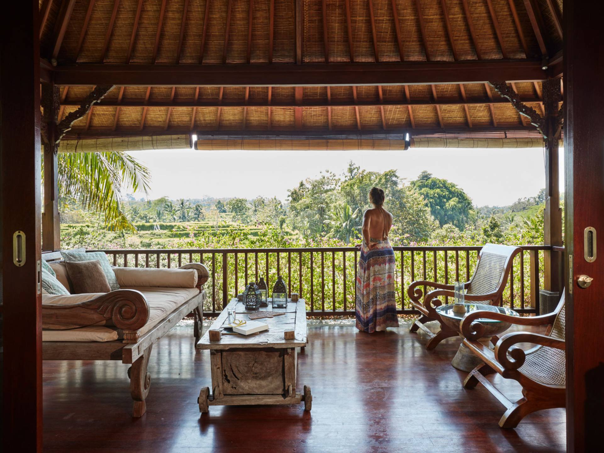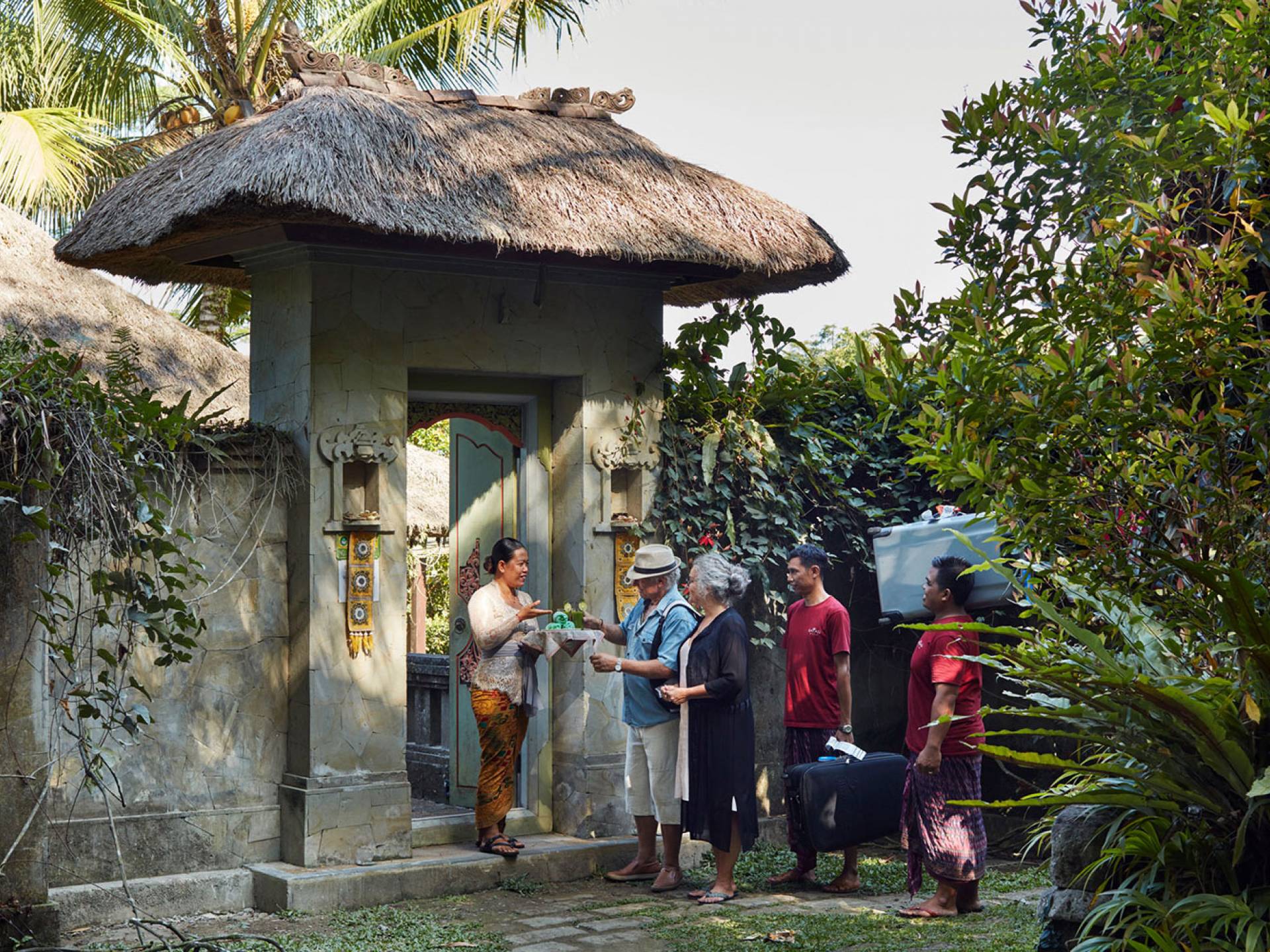 Villa Bayad is a spacious, luxurious 4 bedroom villa, designed by Popo Danes, one of the most renowned architects in Southeast Asia. The villa is traditionally laid out as a compound, the 4 bedrooms being separate houses beside the main house, all connected by flower-covered pergolas. From every room, there is a beautiful view across the surrounding rice tresses to Bali’s sacred volcano on the horizon.