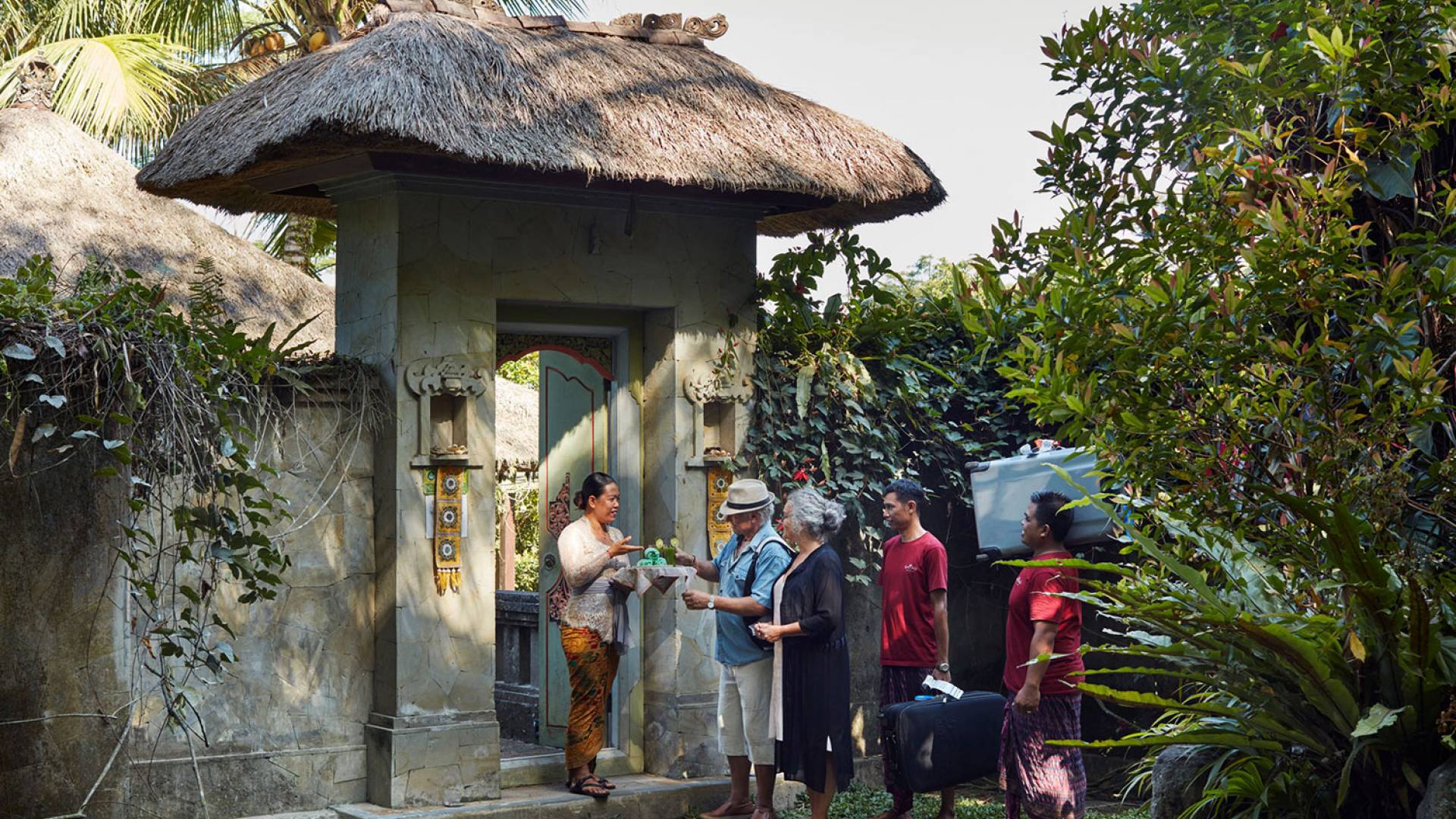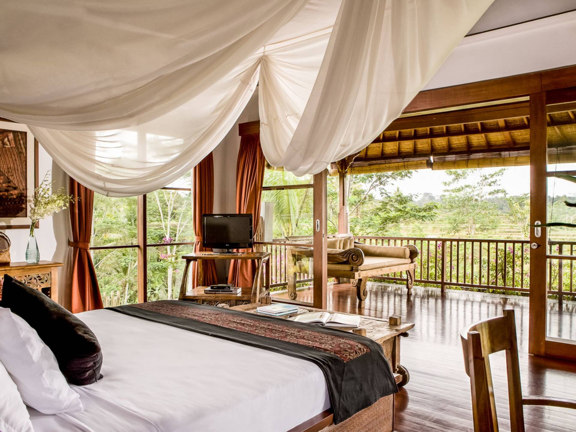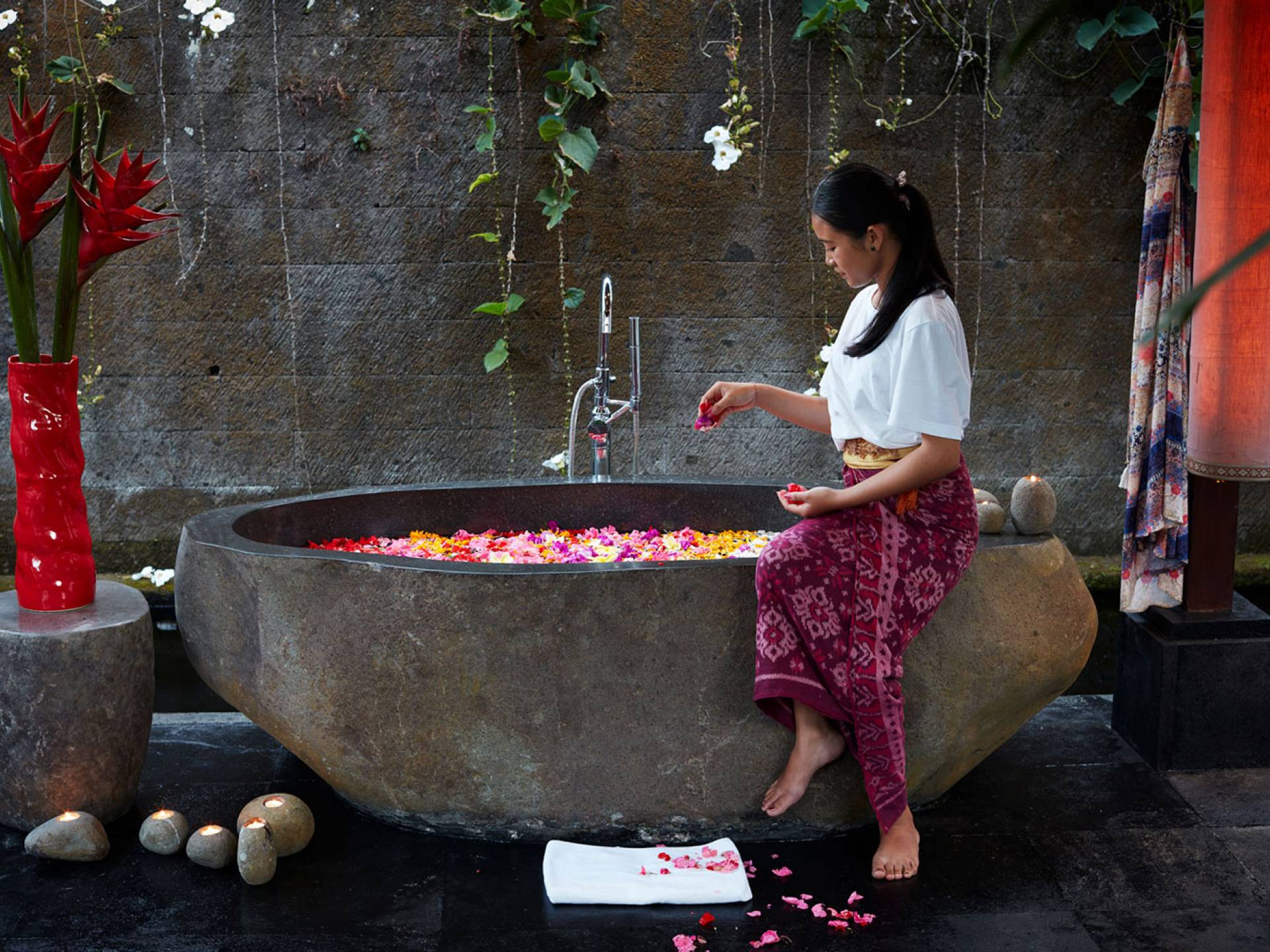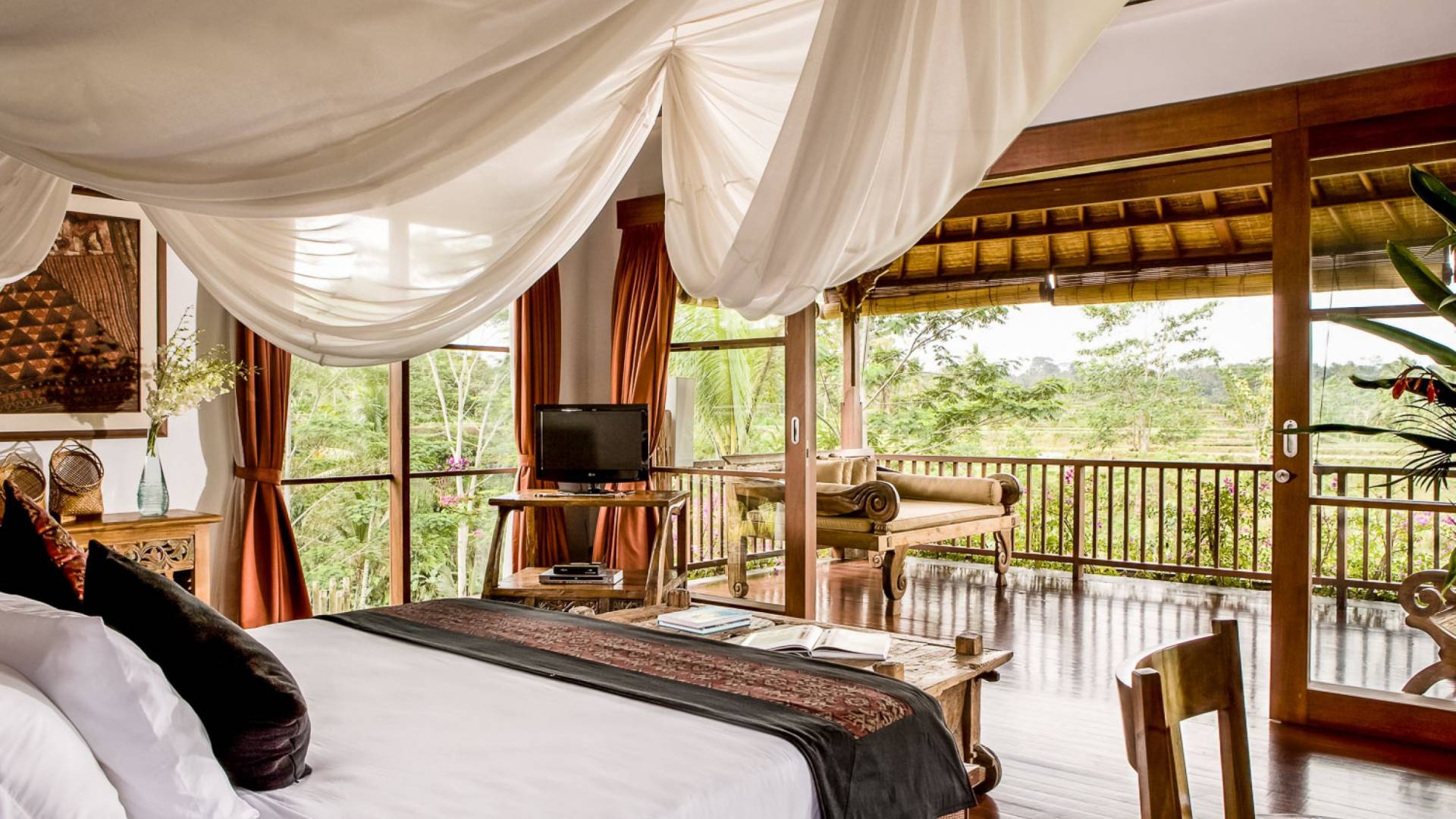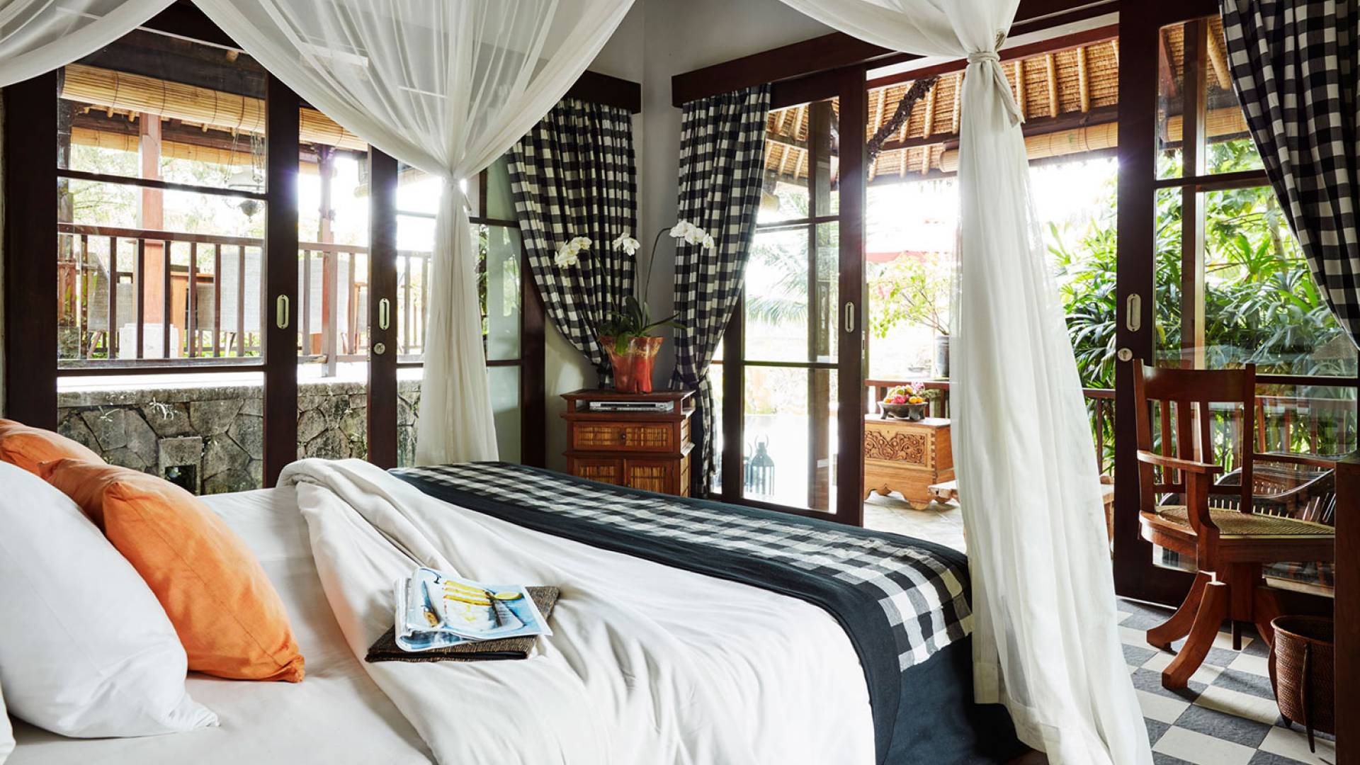 Villa Bayad is a spacious, luxurious 4 bedroom villa, designed by Popo Danes, one of the most renowned architects in Southeast Asia. The villa is traditionally laid out as a compound, the 4 bedrooms being separate houses beside the main house, all connected by flower-covered pergolas. From every room, there is a beautiful view across the surrounding rice tresses to Bali’s sacred volcano on the horizon.