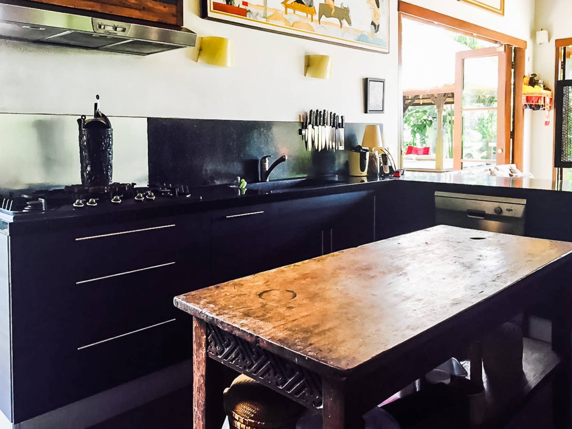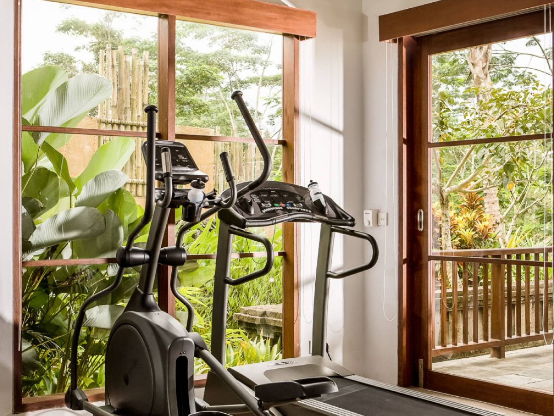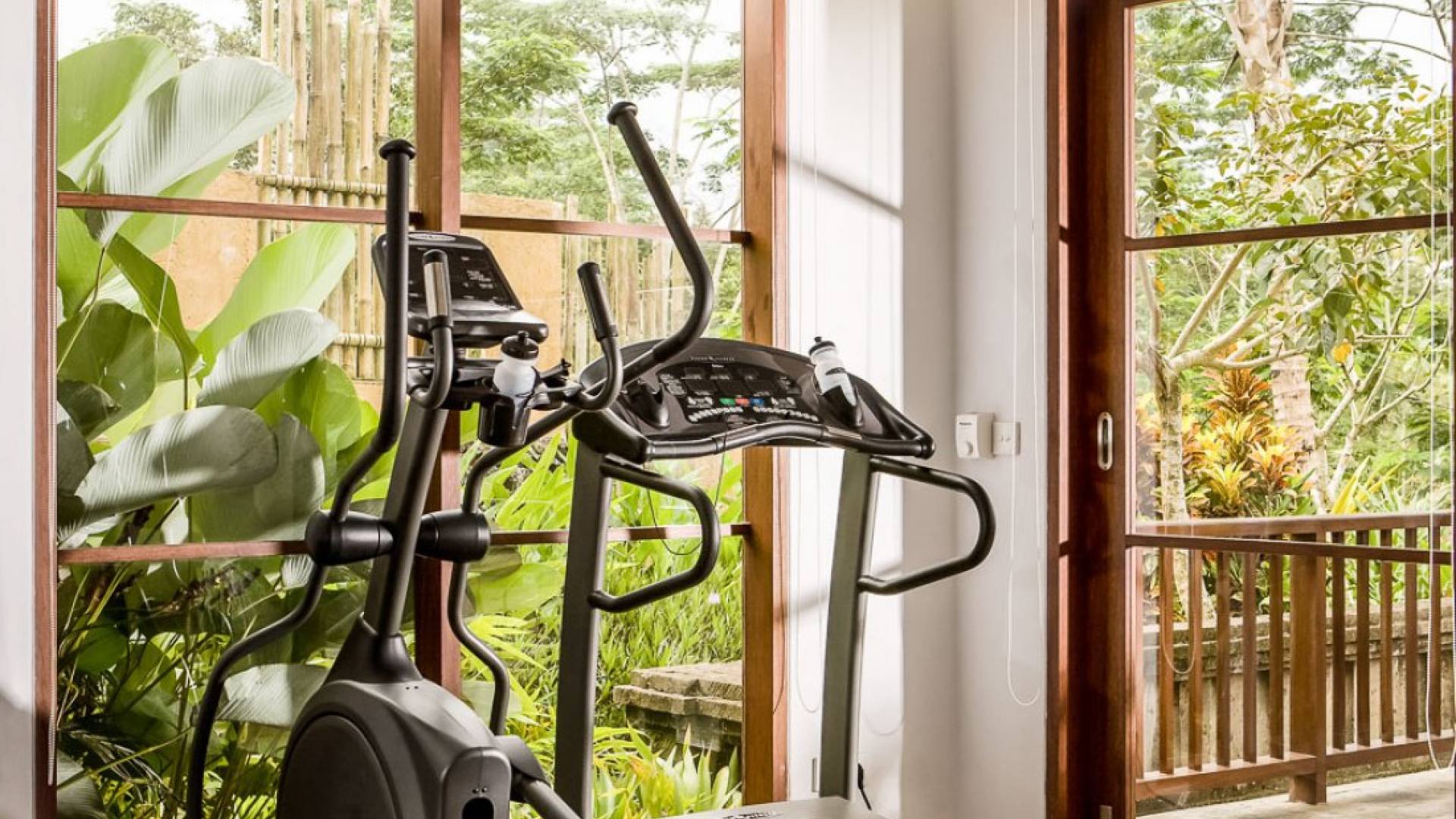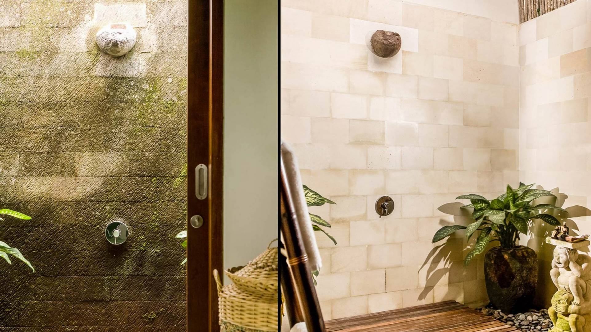The 4 spacious air-conditioned bedrooms are all separate houses, two of which are sharing a private open kitchen- and dining-bale as well as a private spring water-fed plunge-pool and a pool deck. More, each house offers a furnished veranda and bathroom with complete sanitary, shower-cabin, and a small walled garden with an outdoor shower.