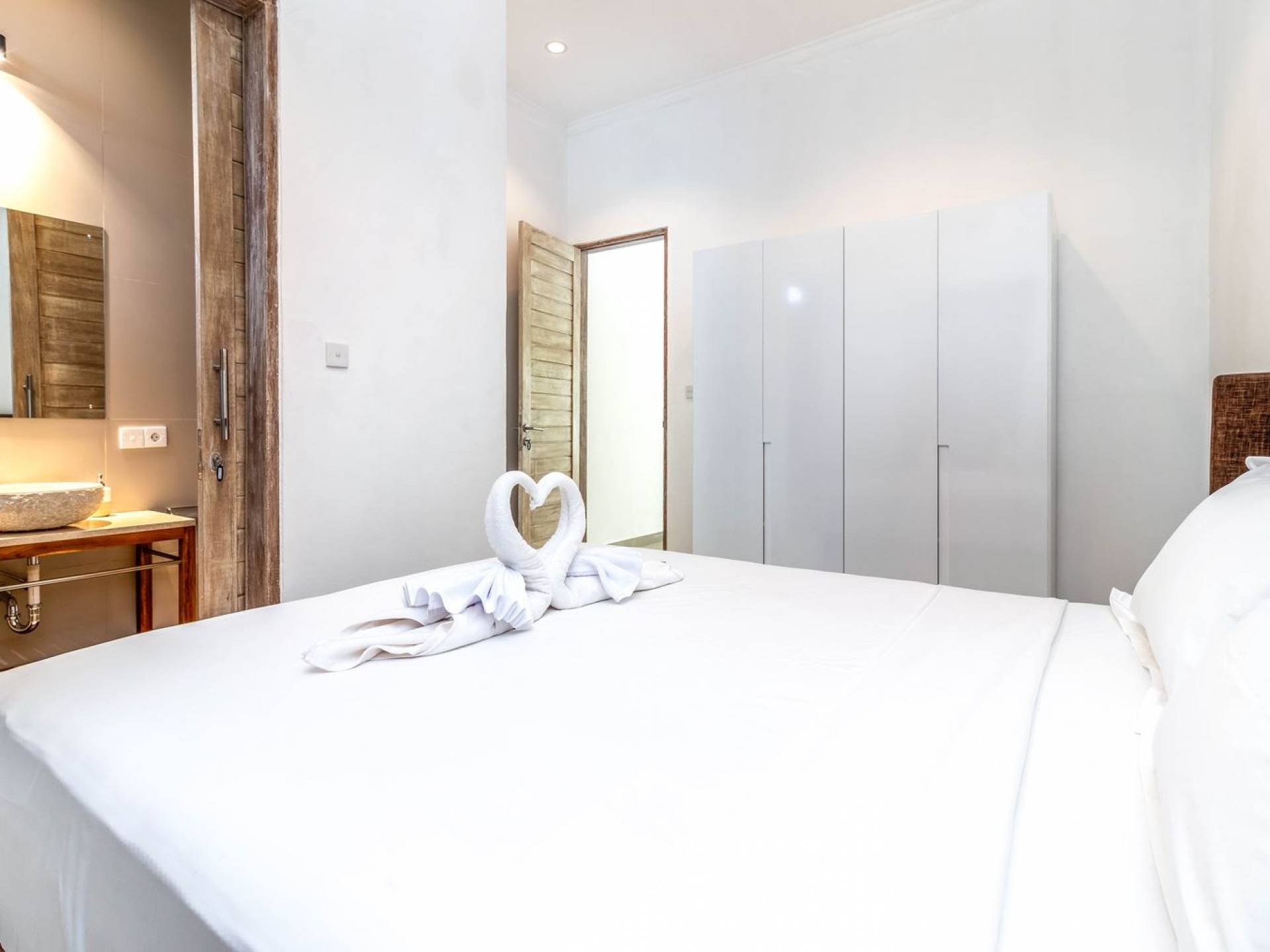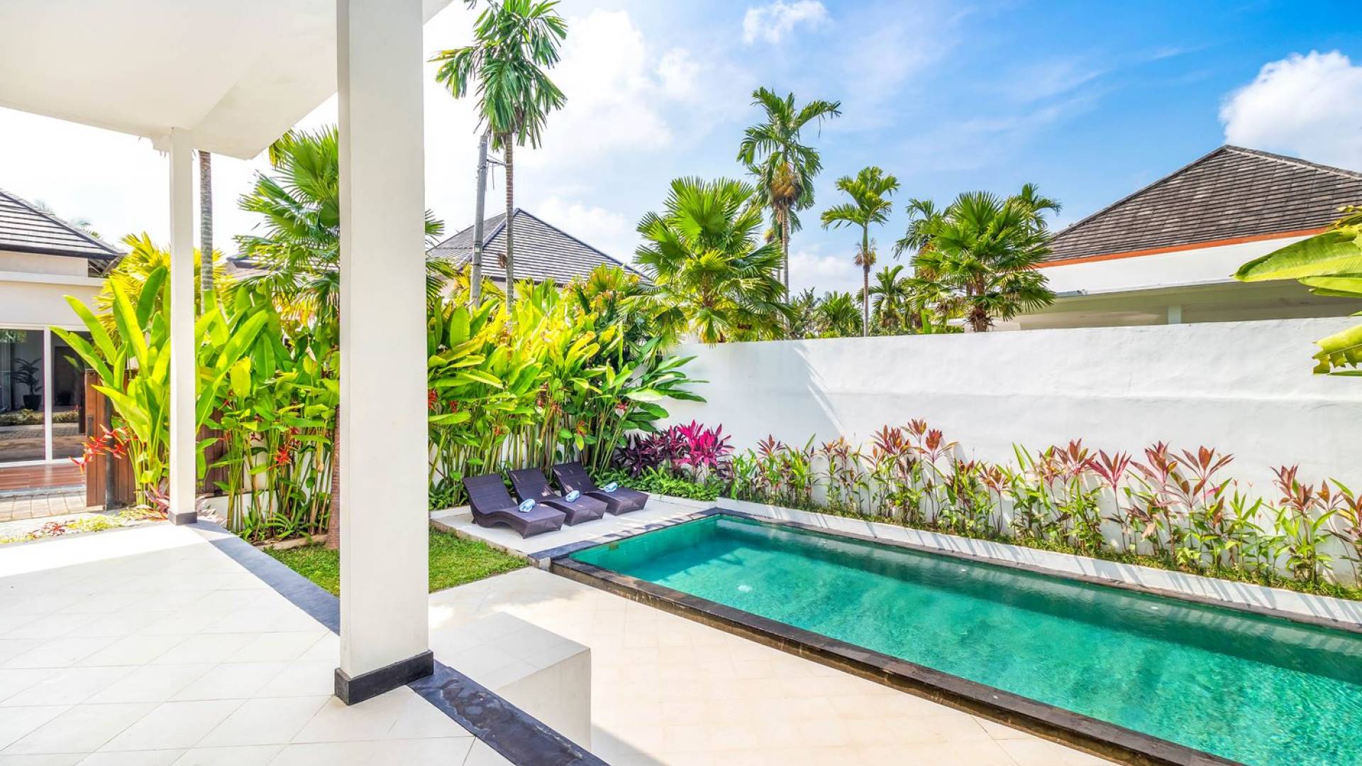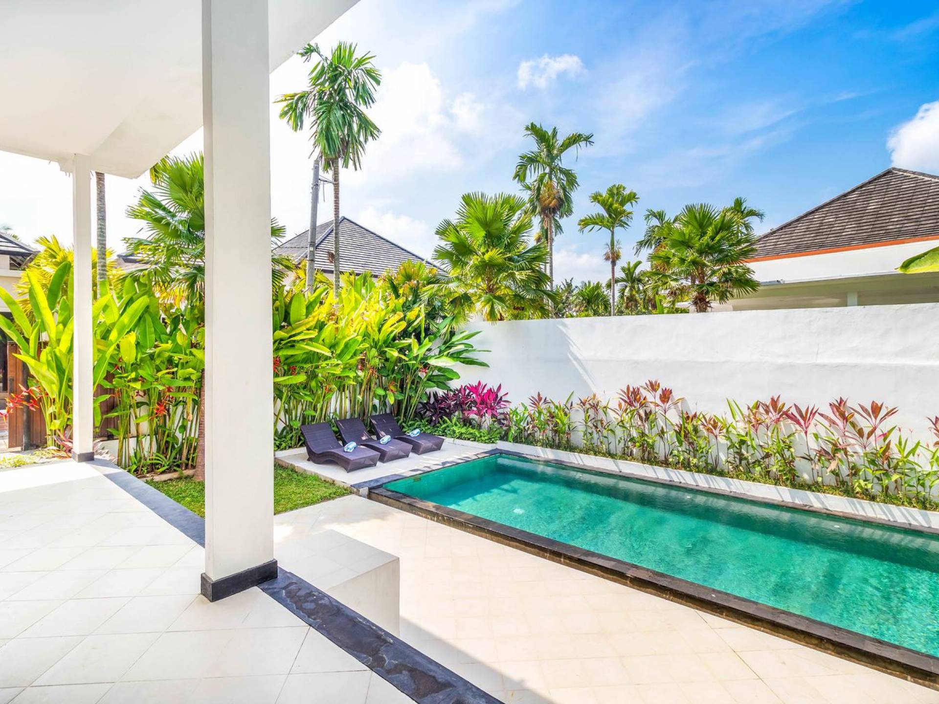 Far away from the crowds and traffic, hidden away in a traditional Balinese artisan village, you will find Villa Mas Atman. This 3-bedroom vacation home makes up for a perfect Bali getaway with friends and family. The location is superb to experience the real, authentic Balinese life while cultural Ubud, one of the major tourist destination towns on the island, is just a 15-minute drive away. Villa Mas Atman is a modern luxury villa with a swimming pool, TV, stylish, minimalist furnishings and air-conditioning. Everything you need is there and the loving staff will answer your questions and arrange everything you need. The villa has got 2 villa sisters with very similar designs but all are completely private. It does, however, give opportunities for larger travelling groups wanting to spend time together and do lots of things without having to give up on privacy and personal space. Villa Mas Atman can be rented out individually or together with Villa Mas Anga, Villa Mas Citta or both.