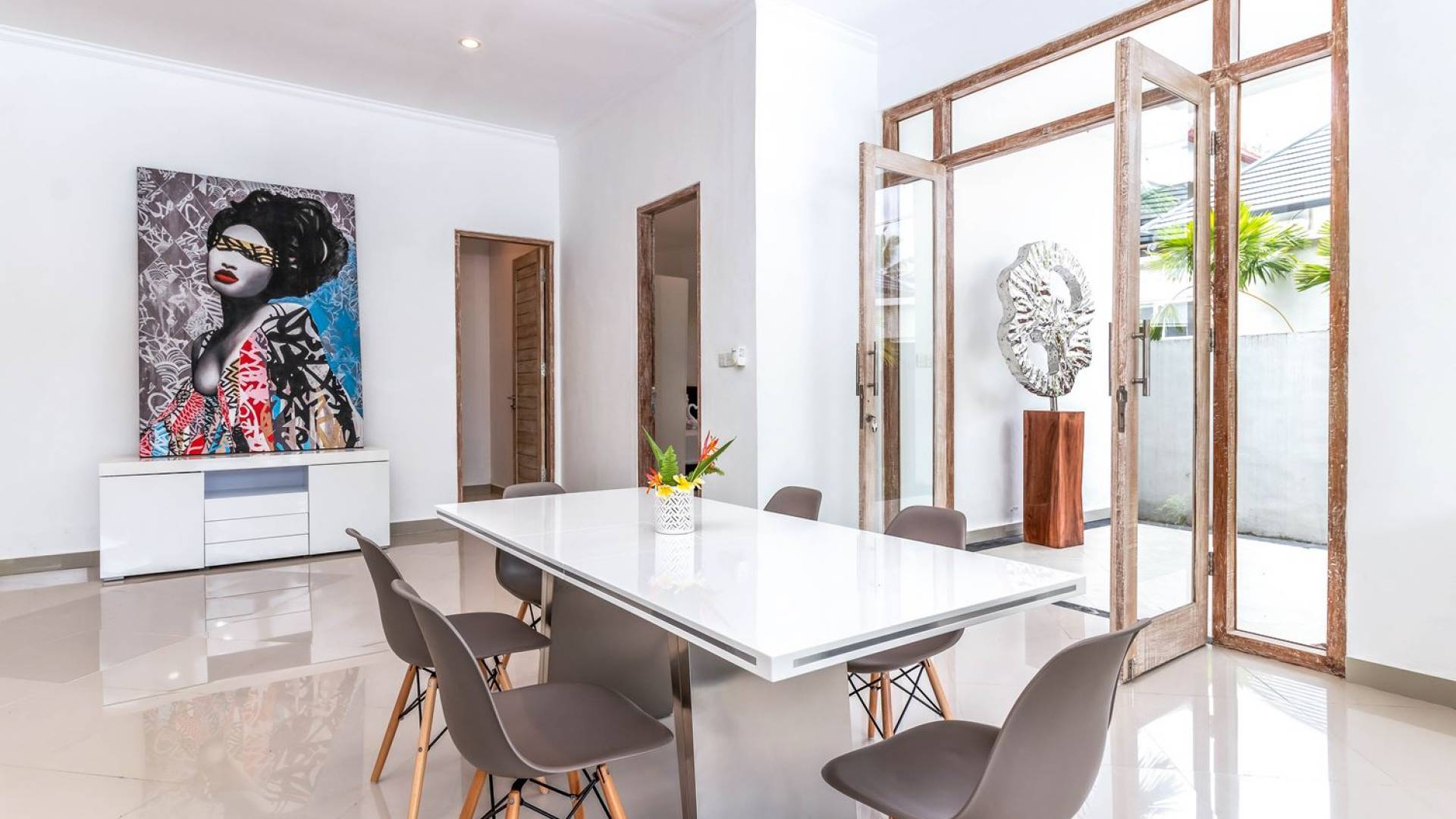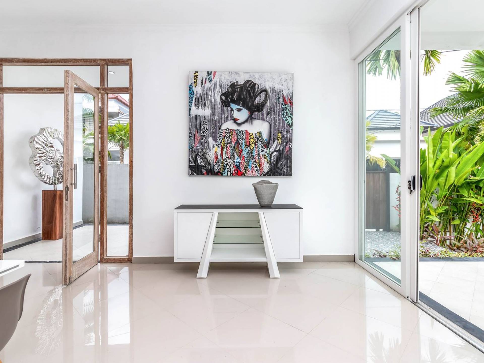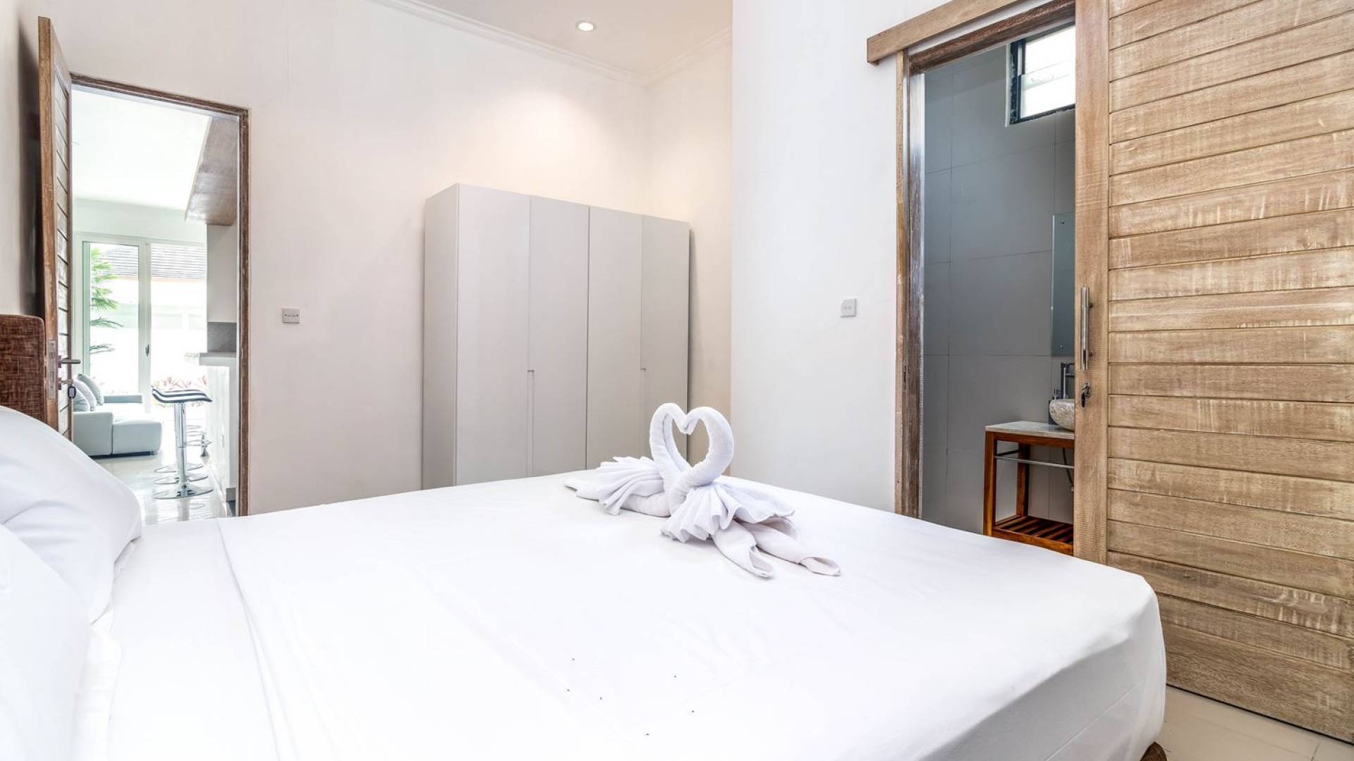 Far away from the crowds and traffic, hidden away in a traditional Balinese artisan village, you will find Villa Mas Atman. This 3-bedroom vacation home makes up for a perfect Bali getaway with friends and family. The location is superb to experience the real, authentic Balinese life while cultural Ubud, one of the major tourist destination towns on the island, is just a 15-minute drive away. Villa Mas Atman is a modern luxury villa with a swimming pool, TV, stylish, minimalist furnishings and air-conditioning. Everything you need is there and the loving staff will answer your questions and arrange everything you need. The villa has got 2 villa sisters with very similar designs but all are completely private. It does, however, give opportunities for larger travelling groups wanting to spend time together and do lots of things without having to give up on privacy and personal space. Villa Mas Atman can be rented out individually or together with Villa Mas Anga, Villa Mas Citta or both.