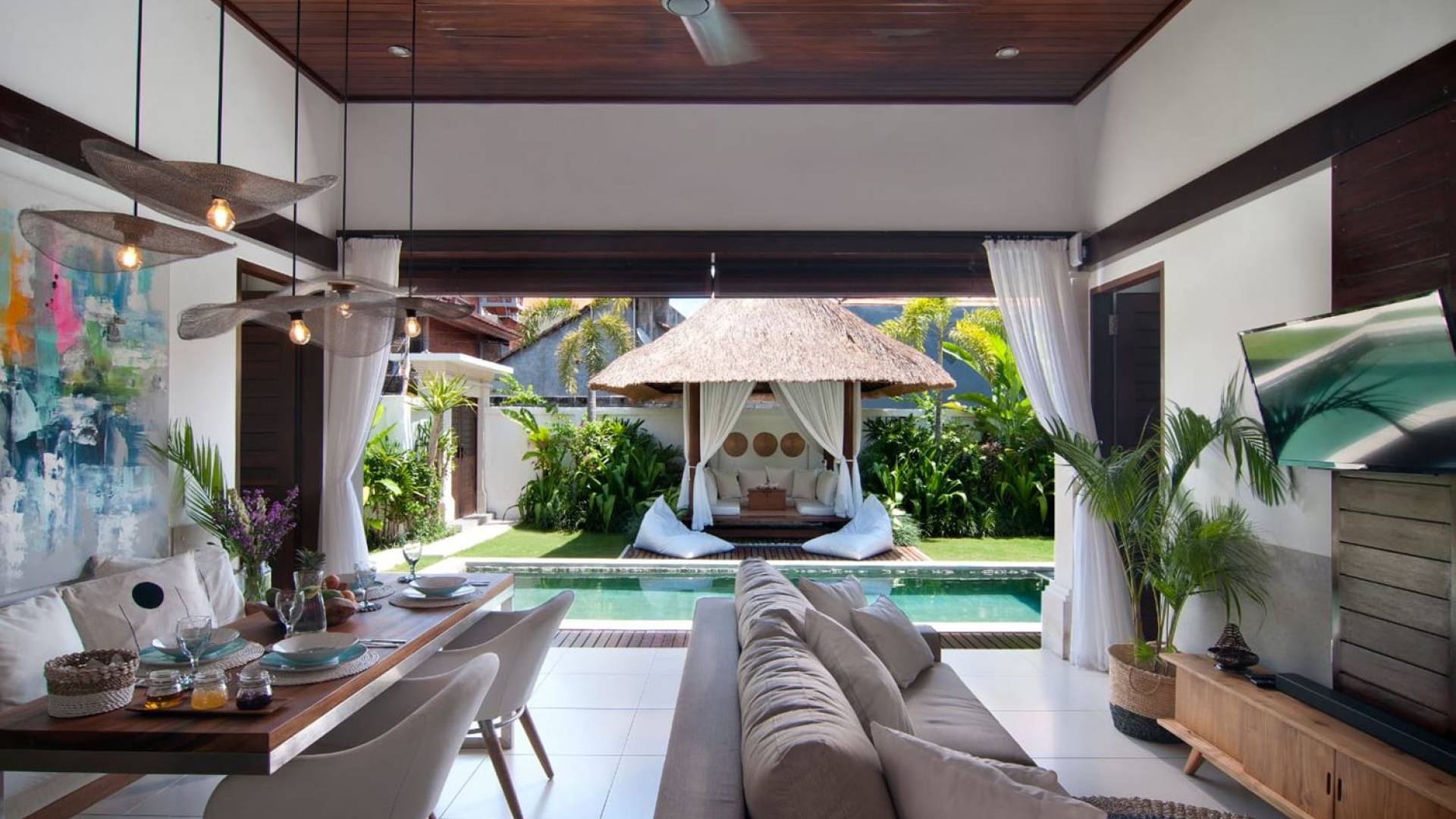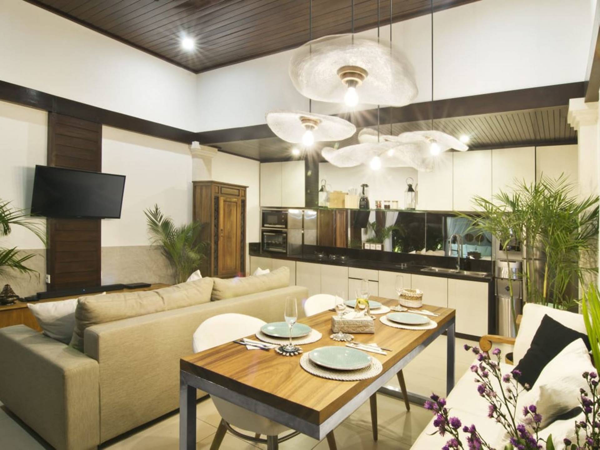 Villa Mason is a brand-new, utterly charming, clean, and affordable holiday home with a great location in the heart of Kerobokan, just a short drive from the chic and trendy Petitenget area of Seminyak. Everything about Villa Mason exudes tropical charm infused with Balinese elegance and modern comforts. Guests get to experience the best of tropical living, lounging, and dining in the Balinese open-plan living room that overlooks the greenery of the garden and the sparkling private swimming pool.