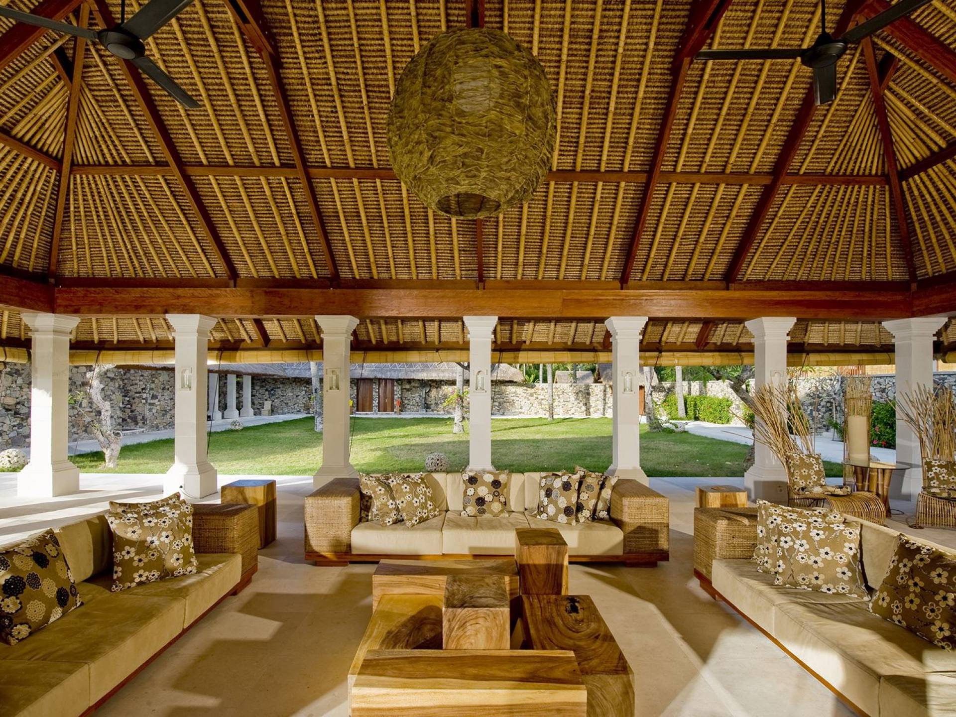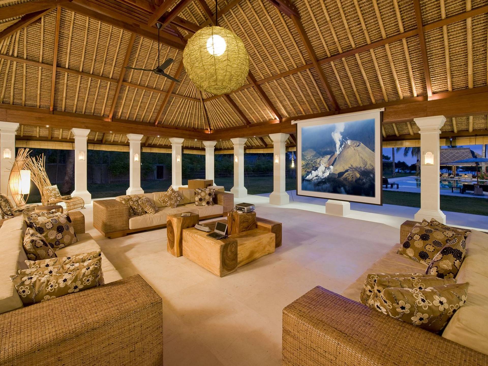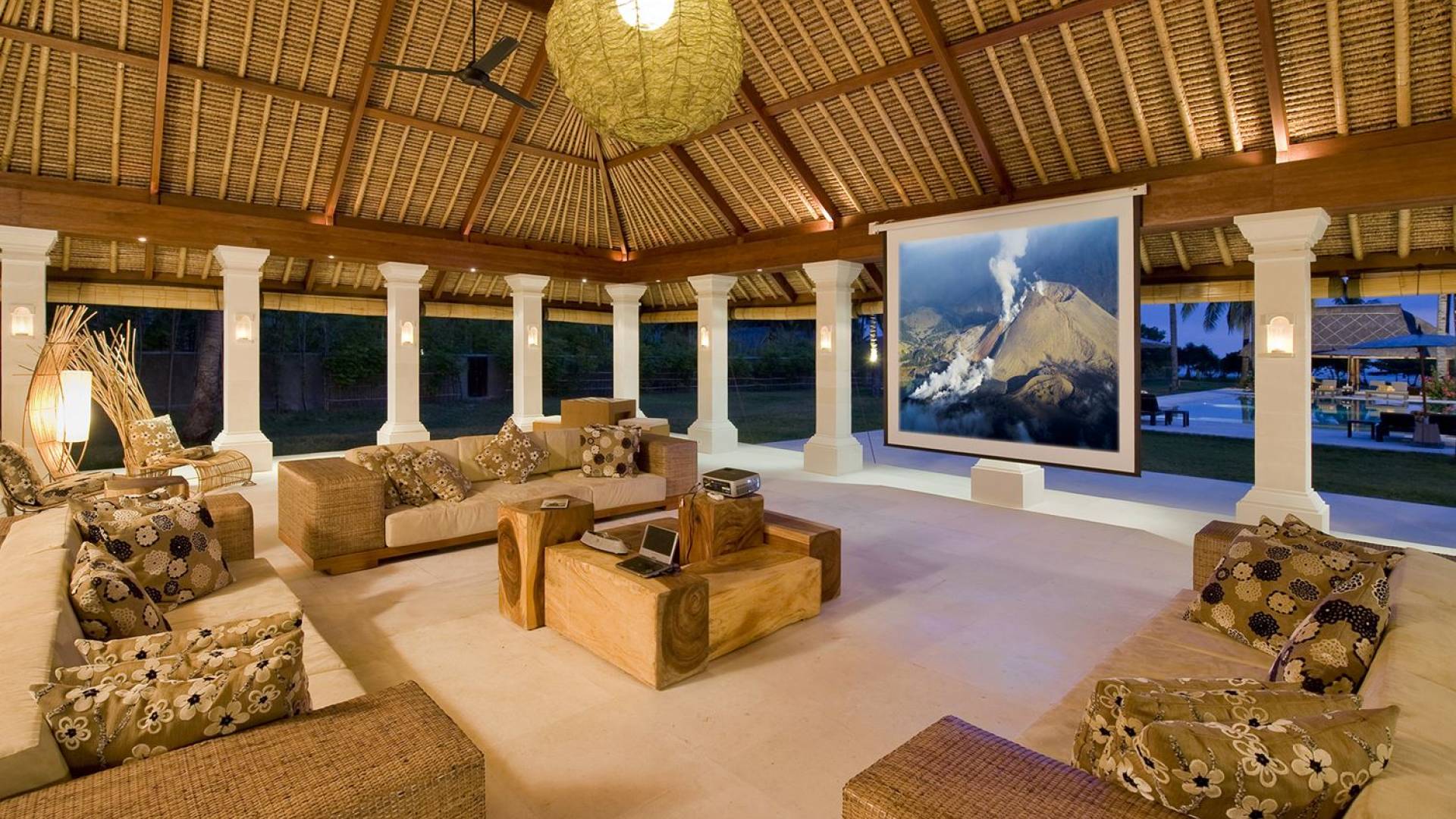 Bordering the captivating beautiful and unspoiled white-sanded Sira Beach in Lombok, 6-bedroom Villa Sepoi Sepoi is a tropical dream home set within 4.5 acres of coconut groves and gardens. The beyond words fabulously luxurious villa rental consists of enormous, bright, and airy living spaces, with traditional, yet, contemporary design. High-quality furniture and materials and modern entertainment facilities, such as Nintendo Wii, iPod docks, satellite TVs, a DVD player, and a projector screen define the interiors of Villa Sepoi Sepoi. Some of the outdoor facilities included are a 20-meter long private pool, a cabana bar, and table tennis. Every request of yours is met with a big smile by the villa’s efficient staff team, including an executive chef, a manager, housekeeping, and security. A car with a driver is also available at an extra charge. Guests can dive into the Gili Islands, trek Mount Rinjani, visit the local craft workshops and markets, or relax at this secluded, luxurious beach retreat.