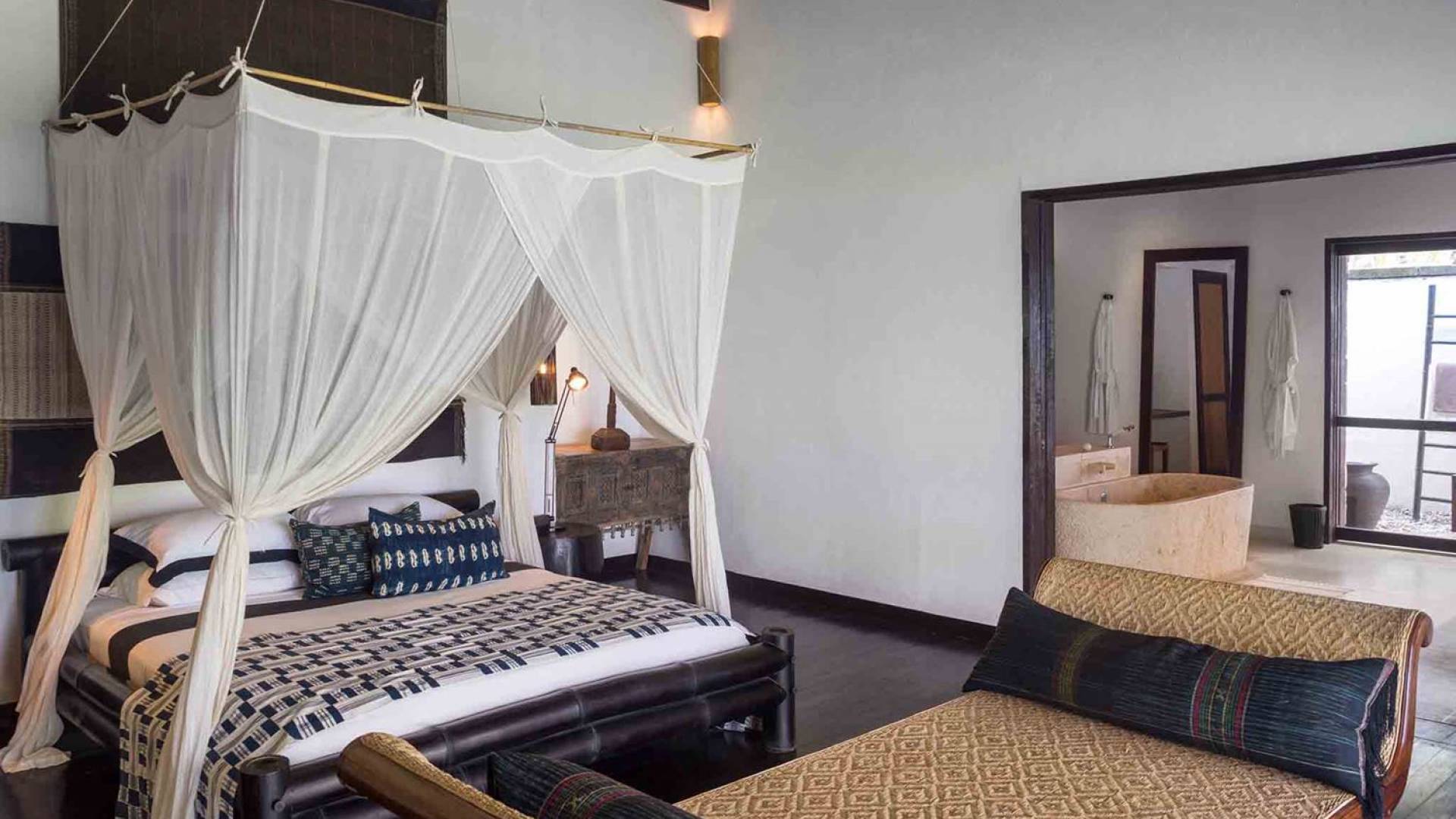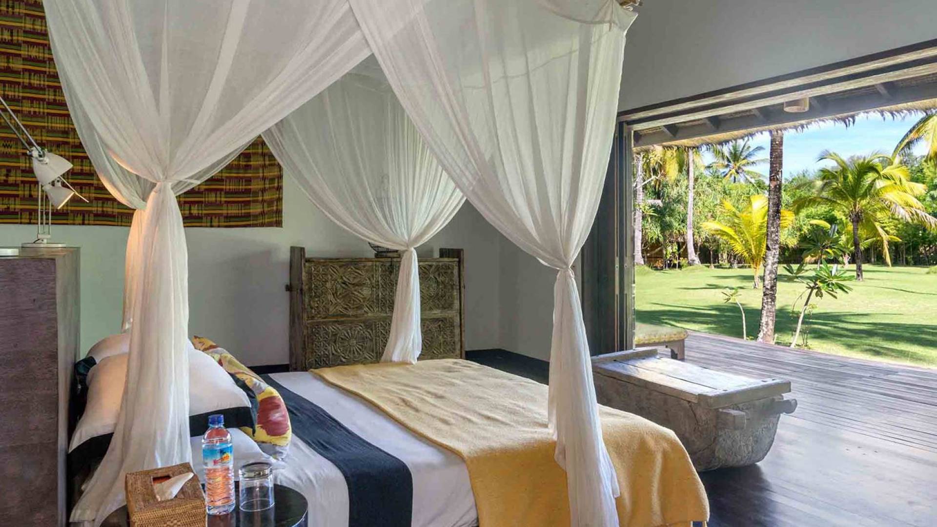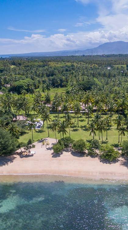 Sira Beach House is a sublime, 6-bedroom beachfront villa in Lombok, placed within six acres of coconut groves facing the white warm sands and turquoise translucent waters of the pristine Sira Beach. Uniquely crafted from the finest local materials and embellished with fascinating art and antiques, this eco-friendly villa makes full use of environmental technologies to create a low impact, yet authentic Lombok experience. The grand and highly impressive bedrooms and the marble bathrooms decorated with fine furniture, and Asian artifacts, equipped with branded toiletries will immerse you in the absolute luxury and tranquility to help you relax and clear your thoughts.