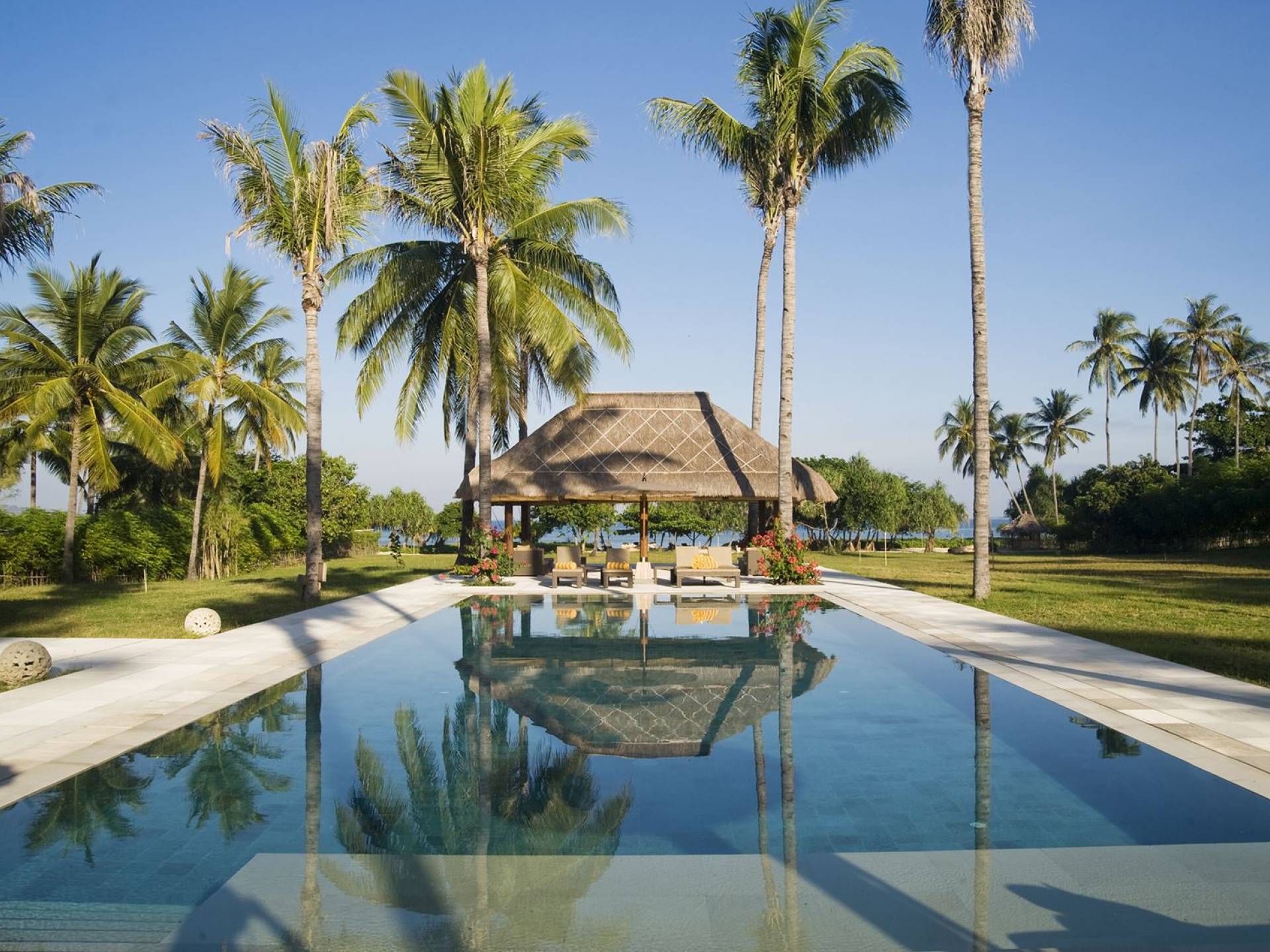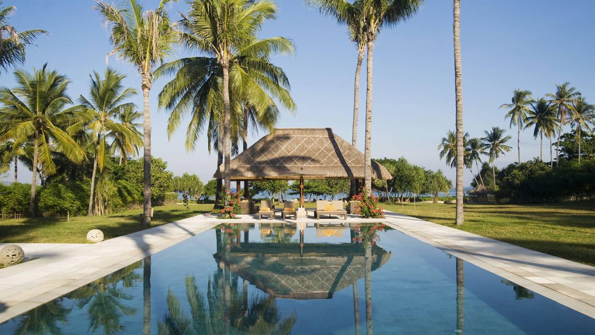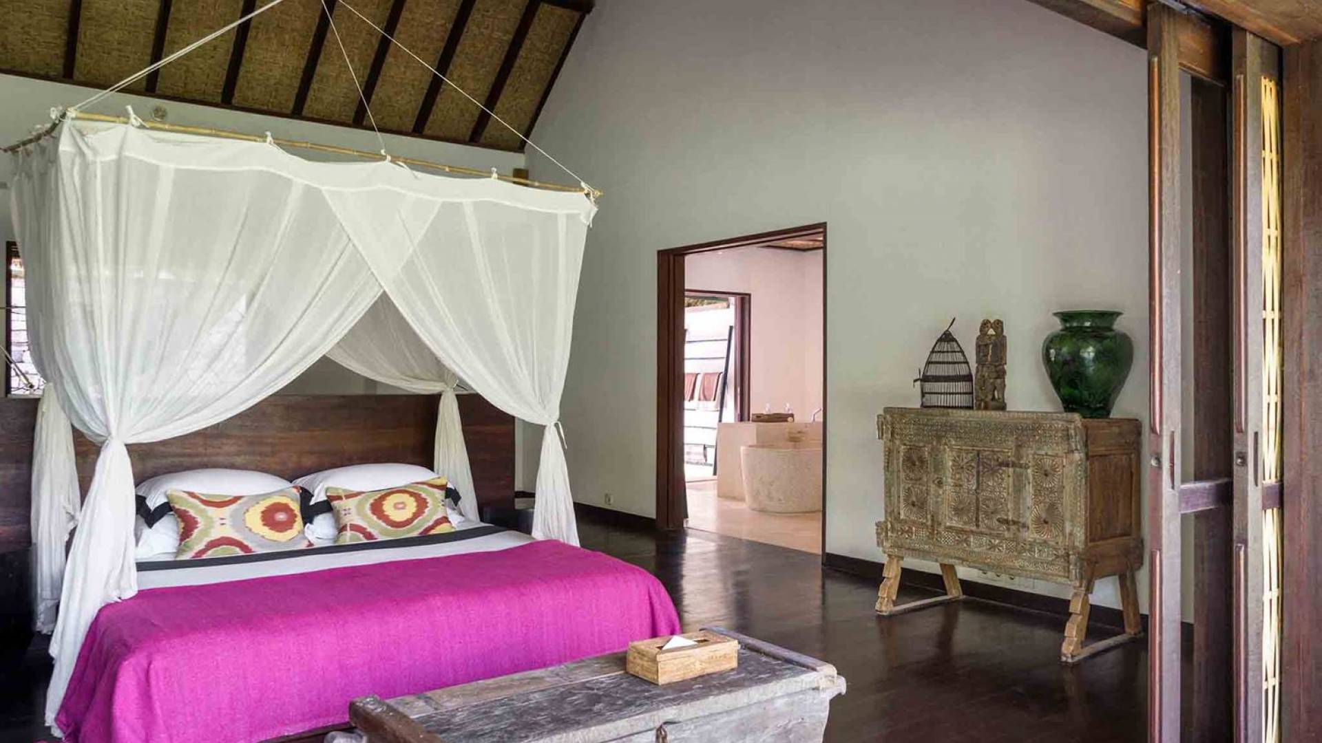 Sira Beach House is a sublime, 6-bedroom beachfront villa in Lombok, placed within six acres of coconut groves facing the white warm sands and turquoise translucent waters of the pristine Sira Beach. Uniquely crafted from the finest local materials and embellished with fascinating art and antiques, this eco-friendly villa makes full use of environmental technologies to create a low impact, yet authentic Lombok experience. The grand and highly impressive bedrooms and the marble bathrooms decorated with fine furniture, and Asian artifacts, equipped with branded toiletries will immerse you in the absolute luxury and tranquility to help you relax and clear your thoughts.