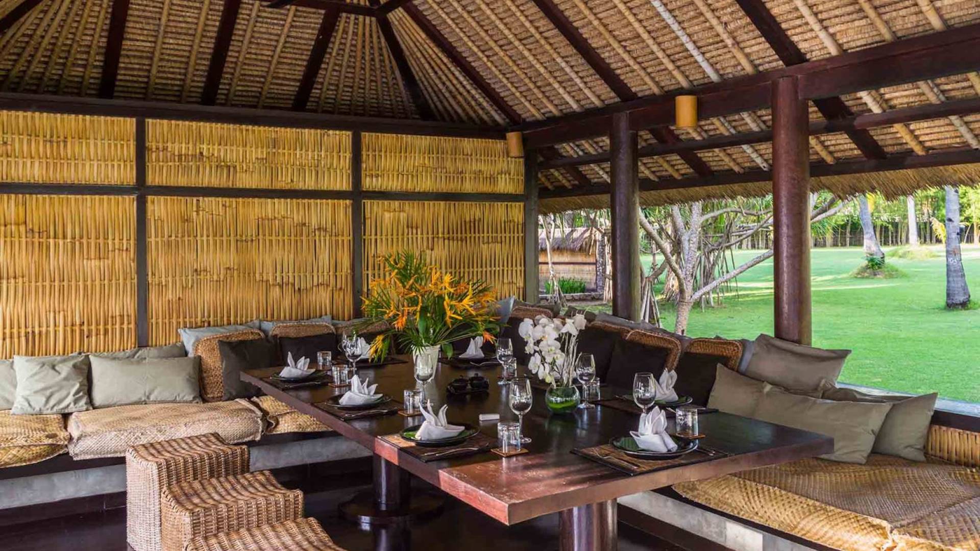 With an 18-meter long pool, a private tennis court, bicycles, water sports equipment, a media room and a projector screen with home cinema on site, and the fabulous Lombok Kosaido golf course just a few minutes away, families and groups of friends will find numerous activities to keep themselves amused in this fully-staffed tropical island escape.