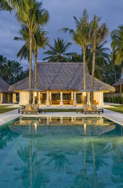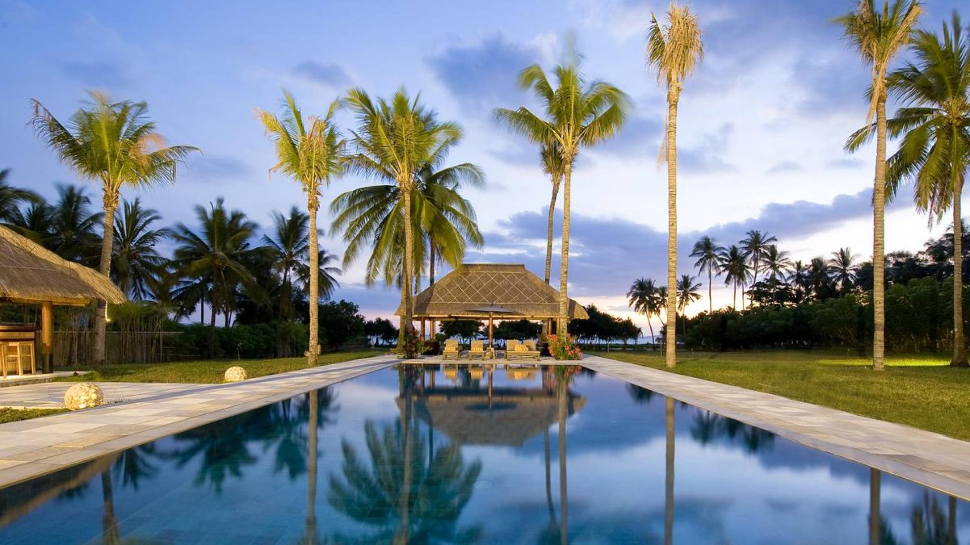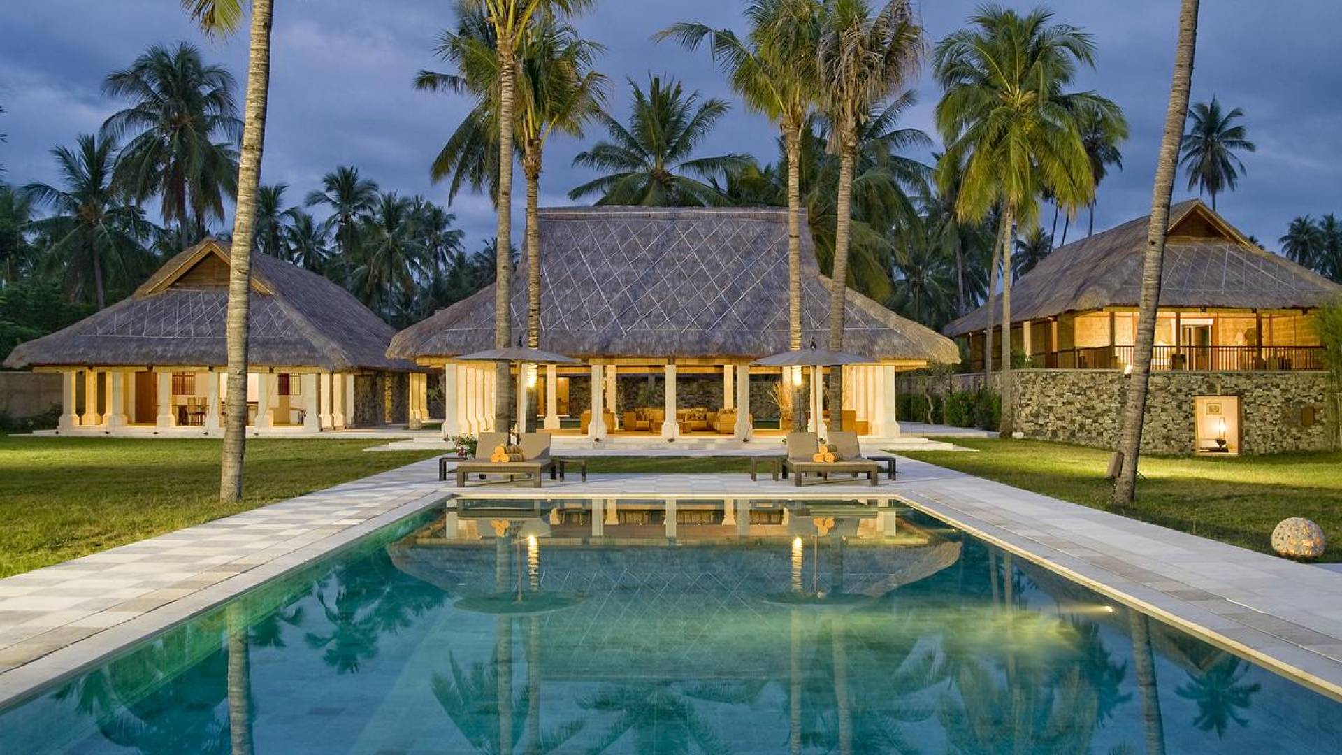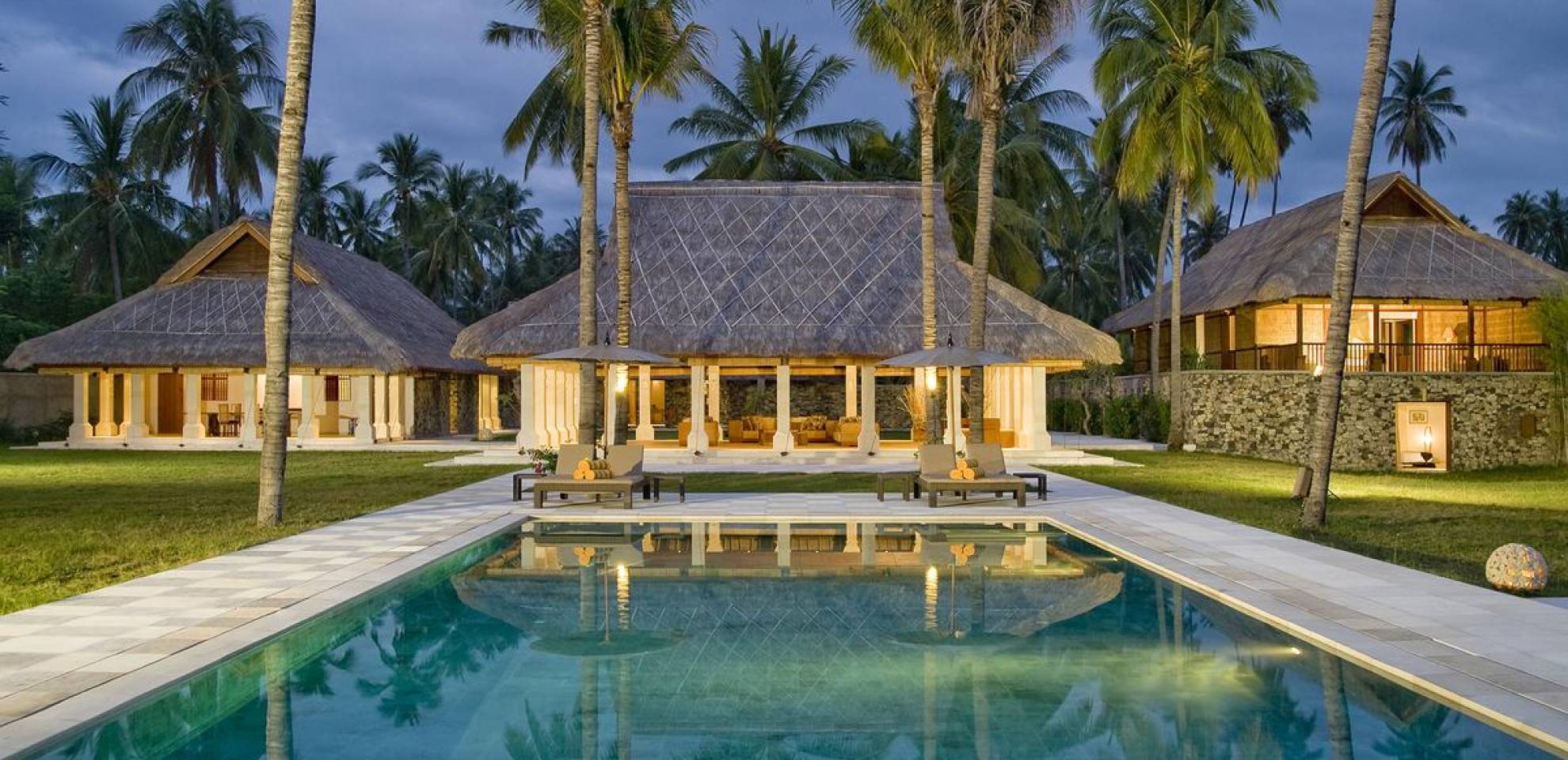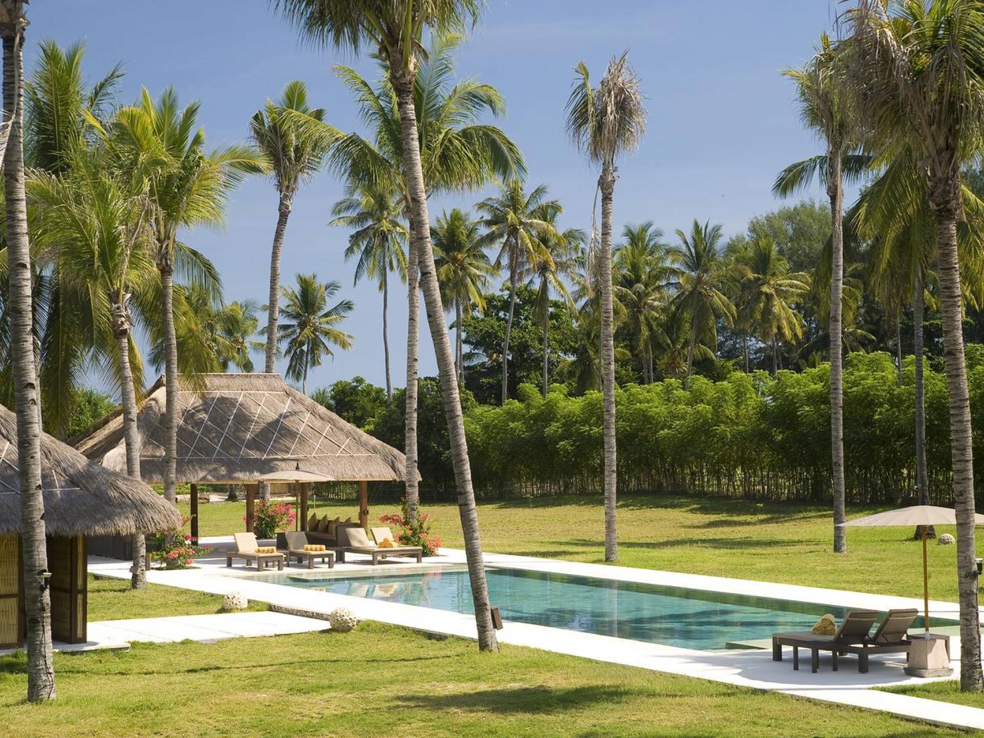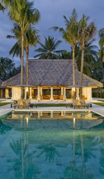 Villa Sepoi Sepoi Lombok is a luxury villa rental with 6 bedrooms and a private pool. Bordering the beautiful and unspoiled white-sand Sira Beach in Lombok, 6-bedroom Villa Sepoi Sepoi is a tropical dream home set within 4.5 acres of coconut grove and gardens. Facilities include 20-metre pool, cabana bar, table tennis, Nintendo Wii, iPod docks, Satellite TV/DVD player, projector screen, and WiFi. Every need is met with a smile by the villa’s efficient staff team, including a chef, manager, housekeeping, and security. A car and driver are also available at extra charge. Guests can dive into the Gili Islands, trek Mount Rinjani, visit local craft workshops and markets, or relax at this secluded, luxurious beach retreat.