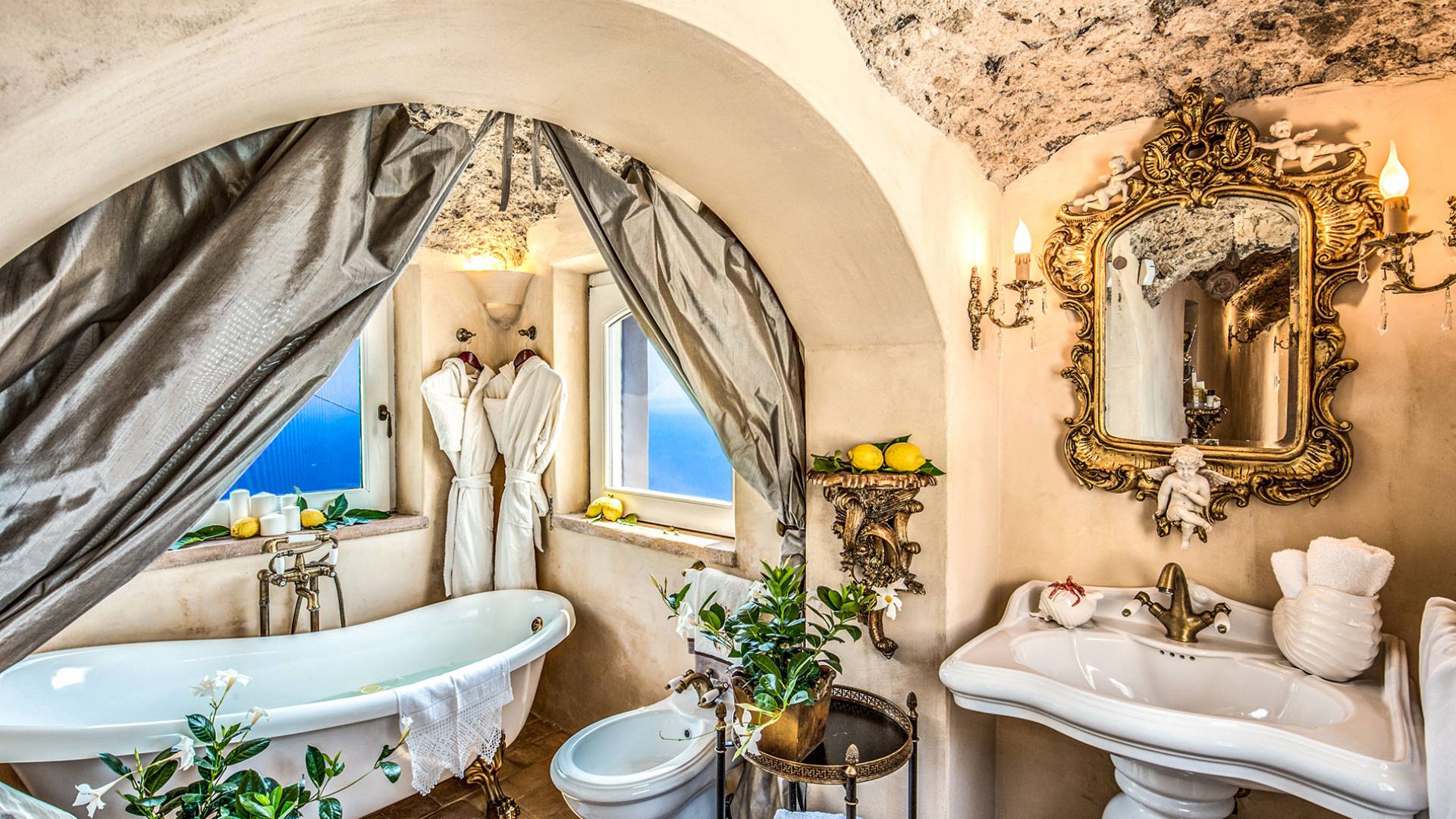 Precious materials, solariums, a wooden pizza oven, and a cooking station on the terrace compose a property that is born to make its guests happy. Massimiliano and his wife have chosen the best furnishing and materials and mixed them together. Villa Barocca Amalfi Coast is composed of two areas, the main villa and the annex, called limonaia (lemon house); the first features three double bedrooms with king-size beds each with a private bathroom, one with a stunning private sun terrace and solarium boasting a breath-taking panoramic view, all of them offering sea view.