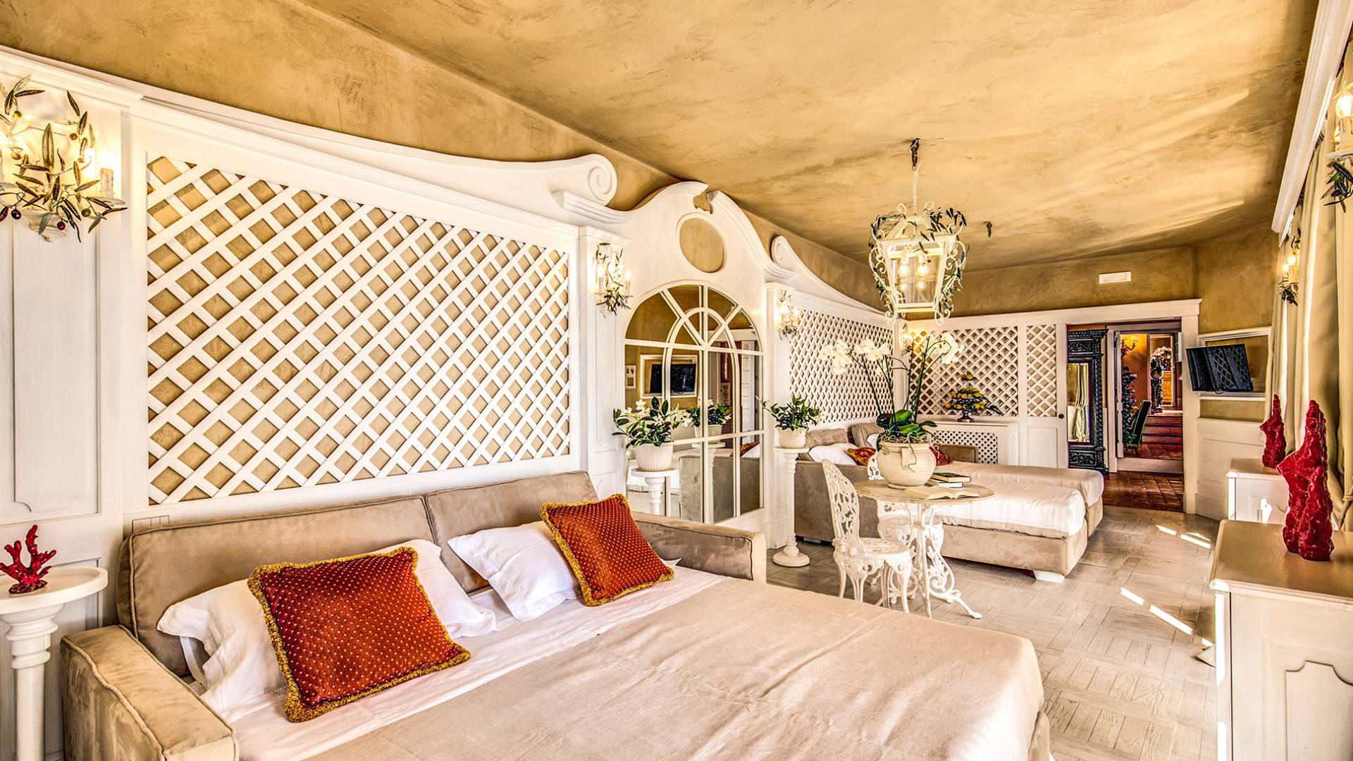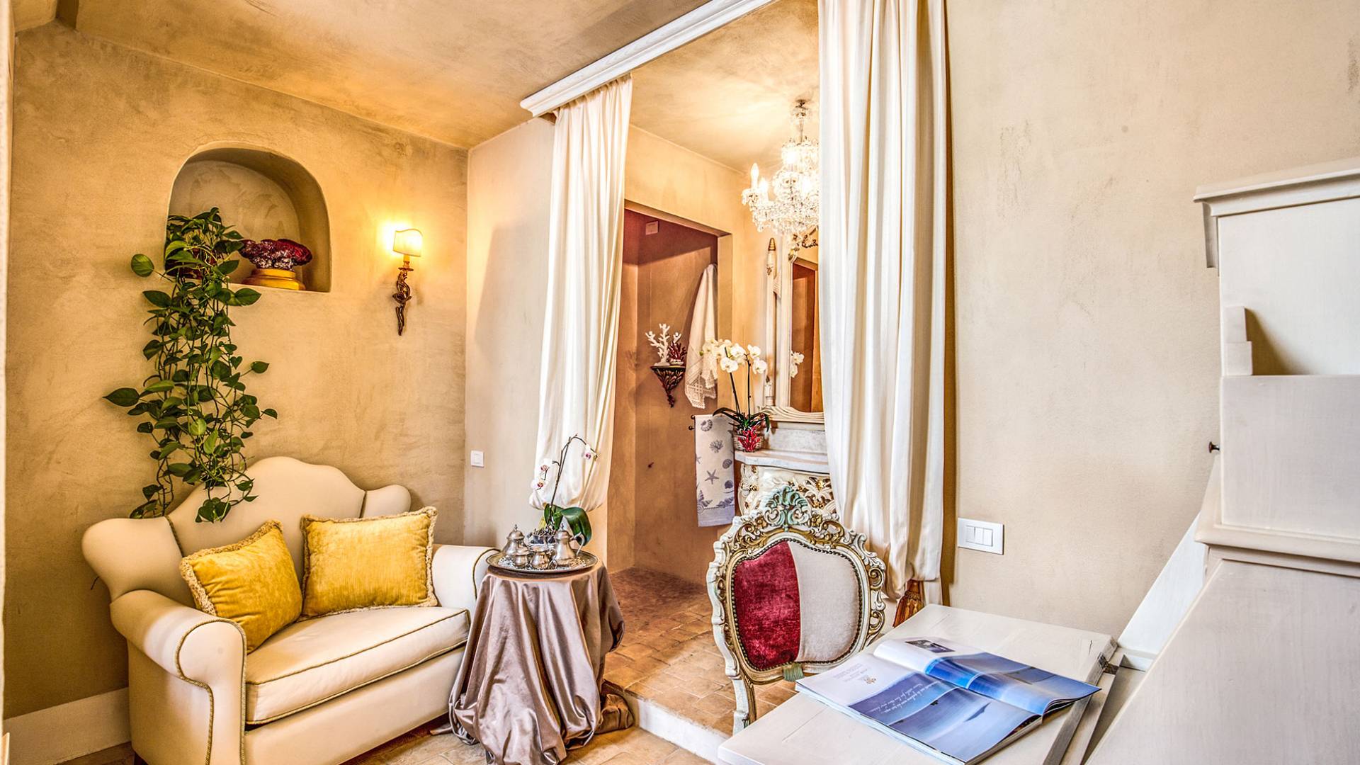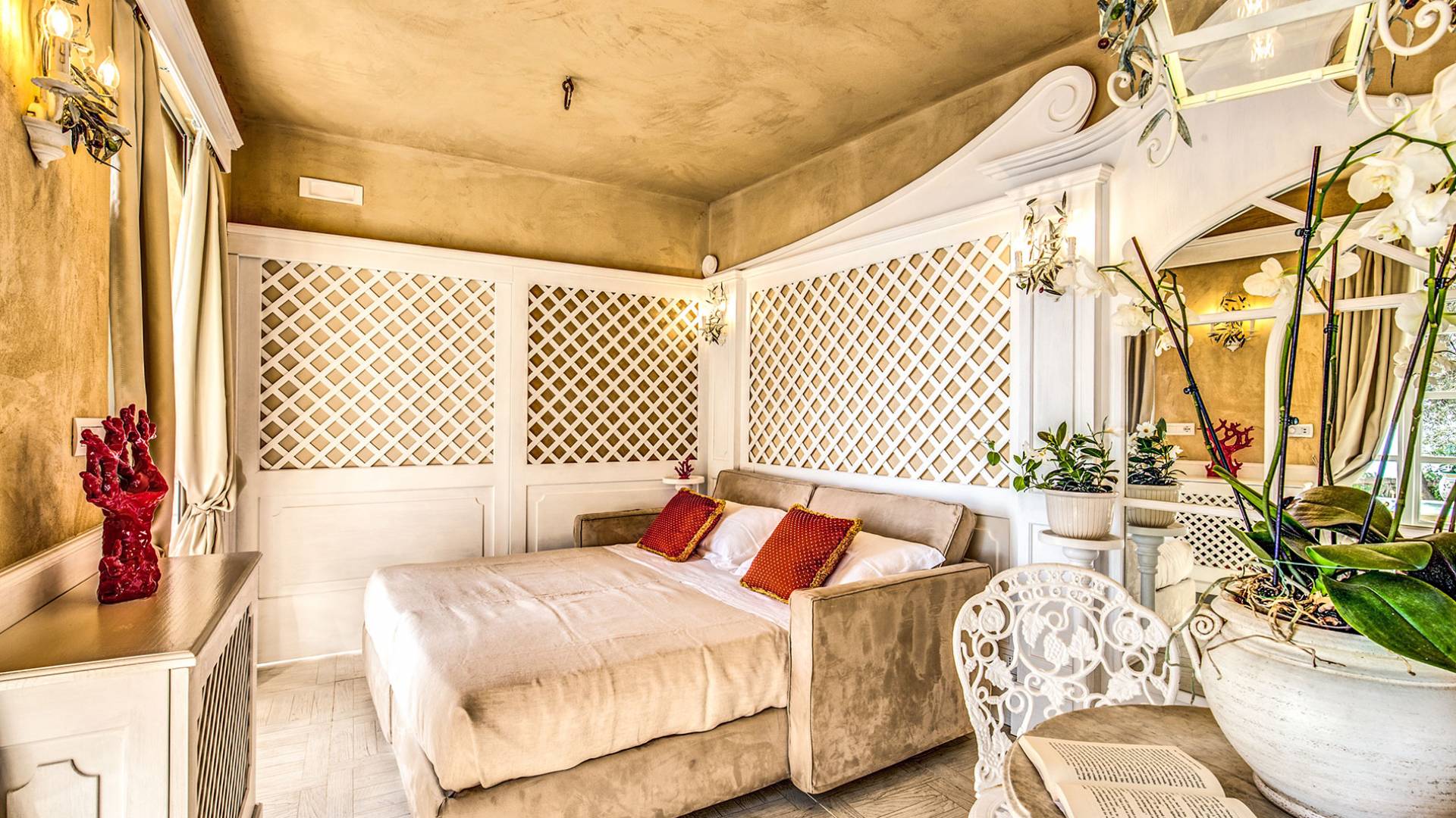 The limonaia offers a double bedroomed suite for 4 people with a private bathroom, making this villa perfect for families. The property overlooks a garden with ancient olive trees and a unique view of the sea, together with a sea-salt infinity swimming pool which is one of the ten bests of the entire Amalfi Coast. The garden surrounding the villa is spread across several terraces facing the sea and it’s planted with old olive trees and maritime pines.