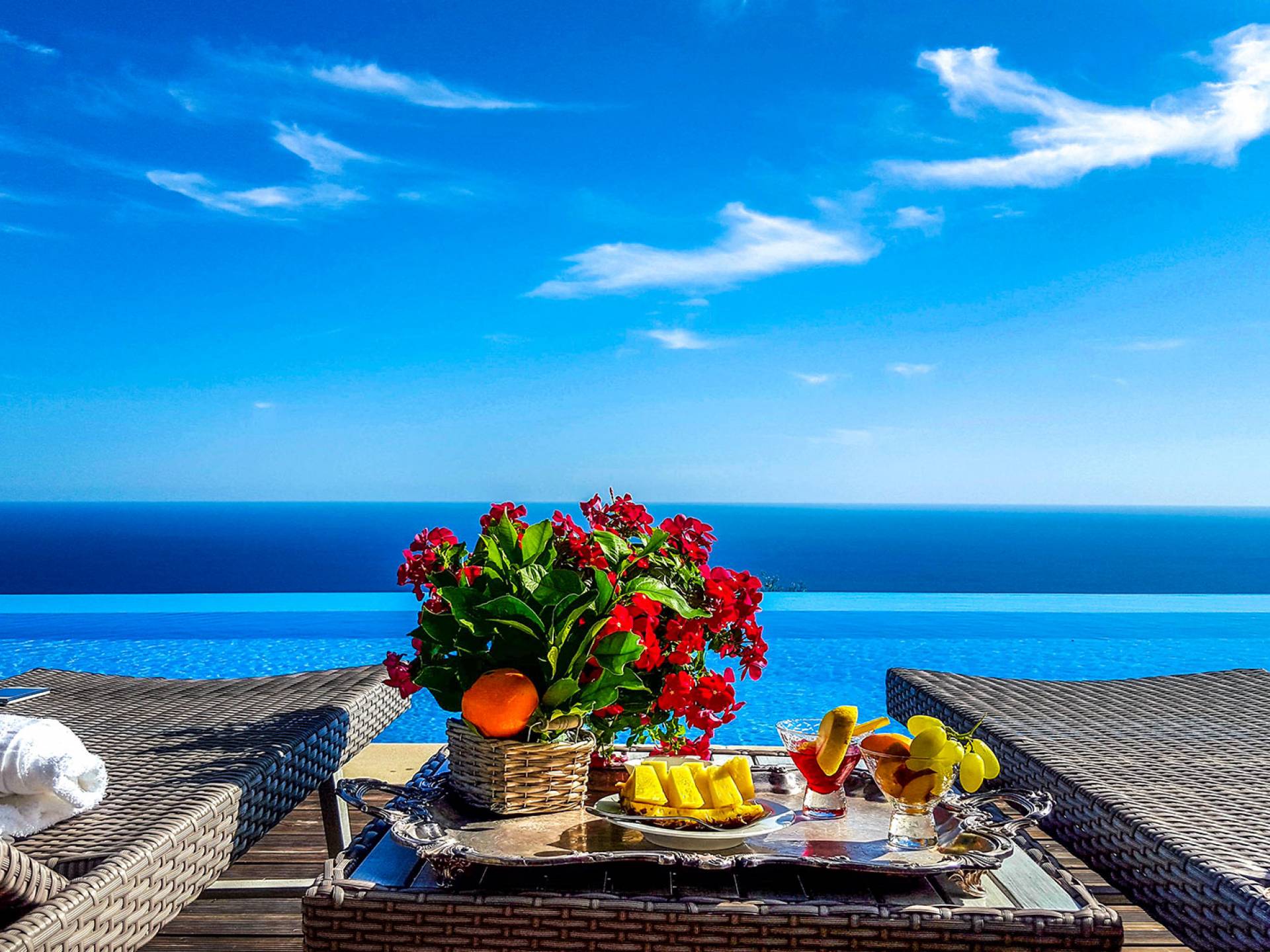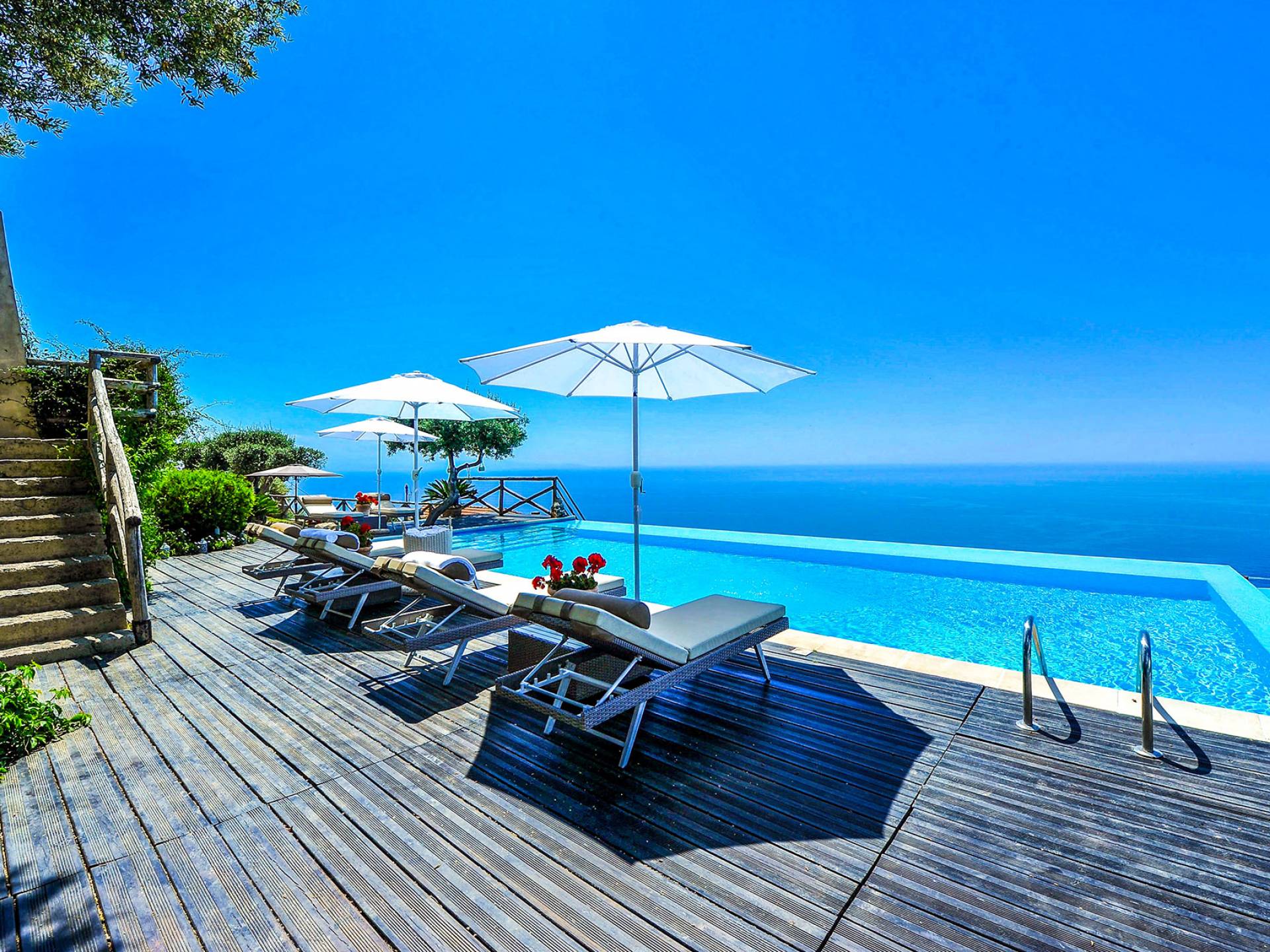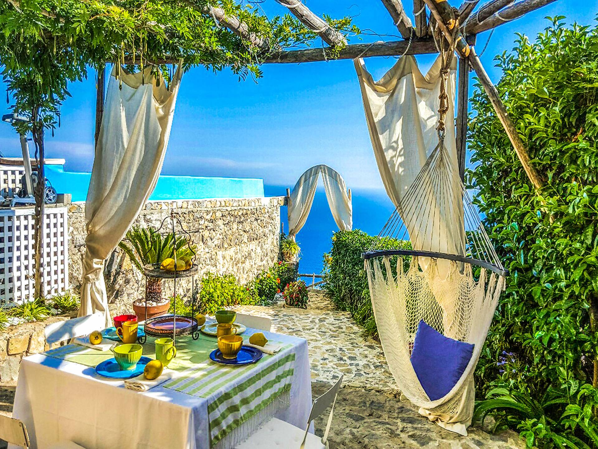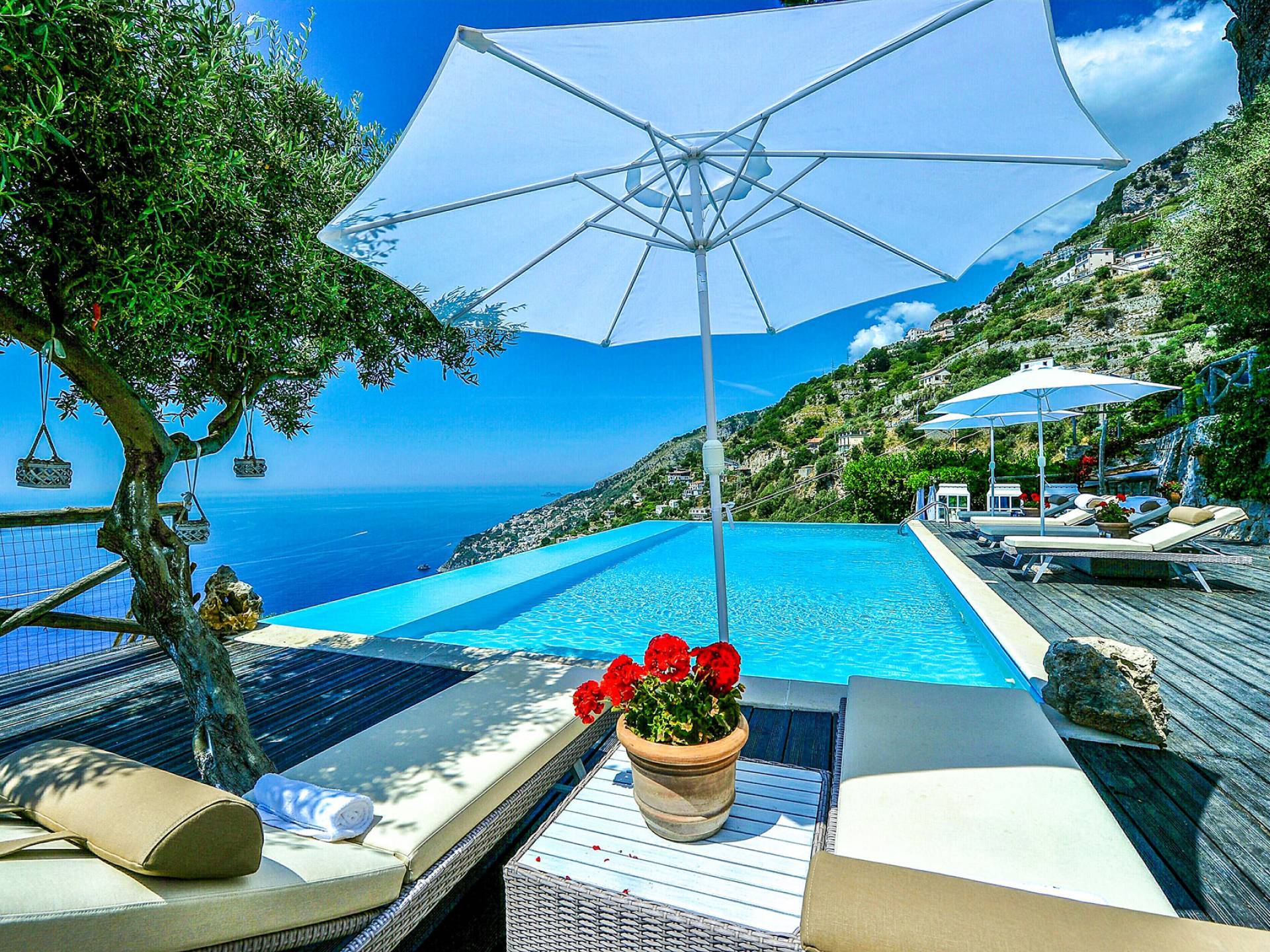 Santa Elia Terrace is characterized by aromatic plants useful for cooking, a lemon tree lies on Santo Iaco Terrace, while Santa Barbara Terrace boasts a fantastic swimming pool with an infinity edge, surrounded by typical Mediterranean vegetation. The organic garden is located on Santa Caterina’s terrace. The property is reached through 80 stairs and it's not suitable for people with restricted mobility. A porter is available on arrival and departure to help with luggage.