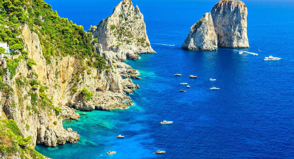 At night Capri sparkles like a star in the seaside all around, marking a strategic mid-point between some of the most incredible locations of the Mediterranean: this spot can be seen from a distance, all decorated by the gentle lights of the houses, its fashionable beach clubs, and yachts.
