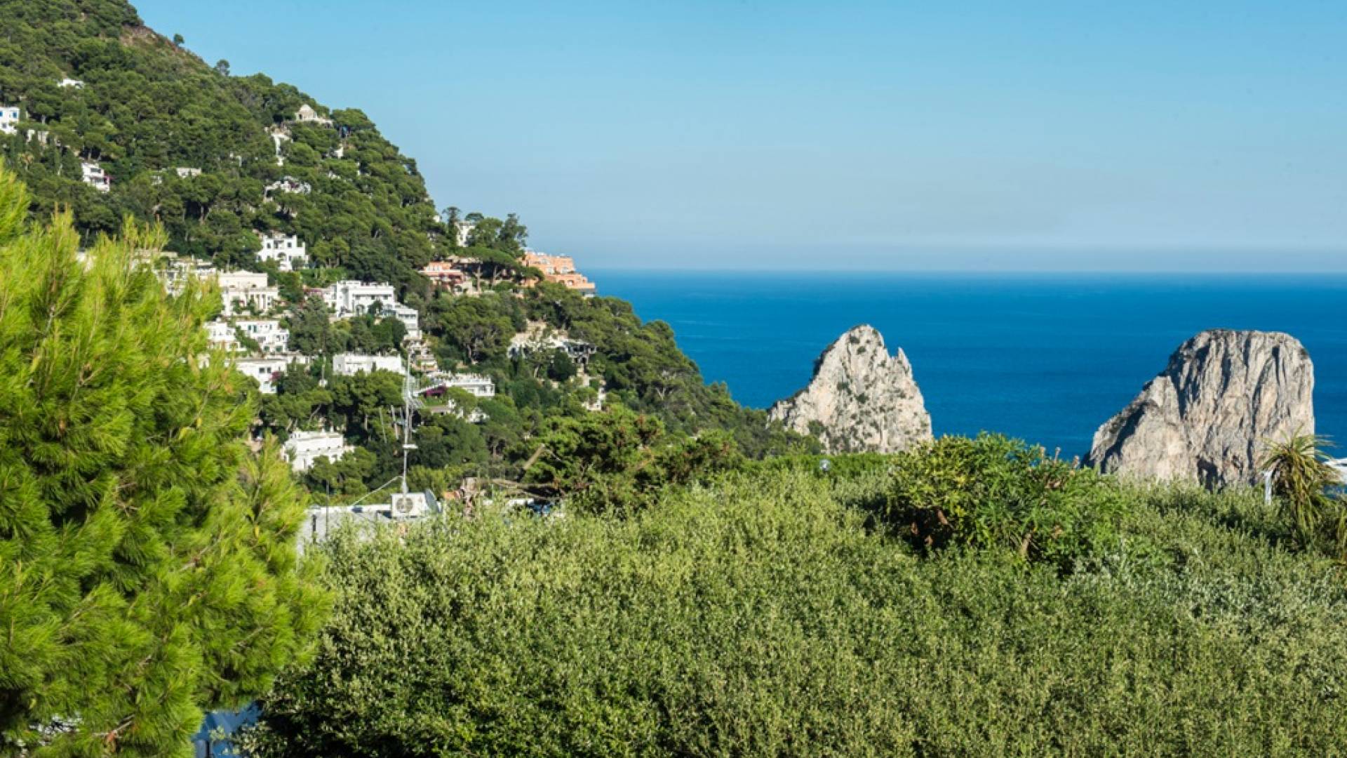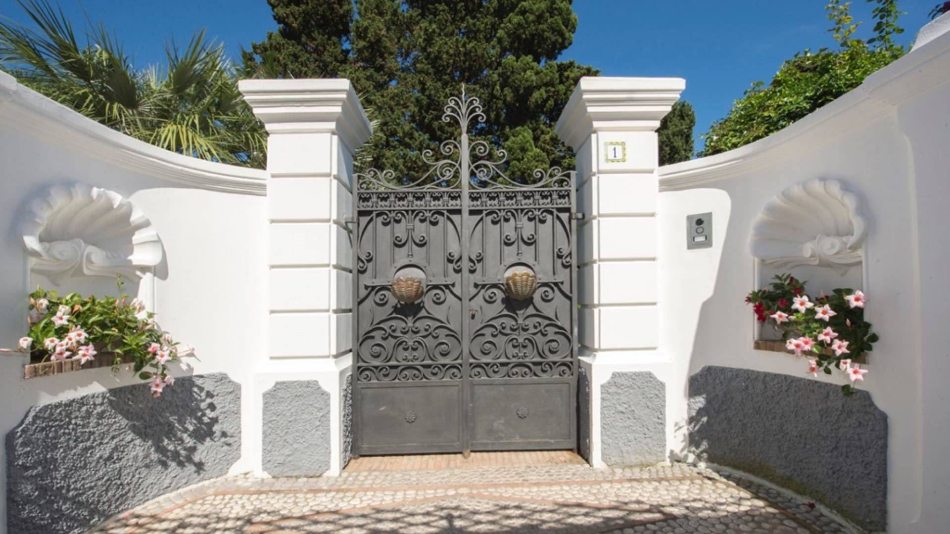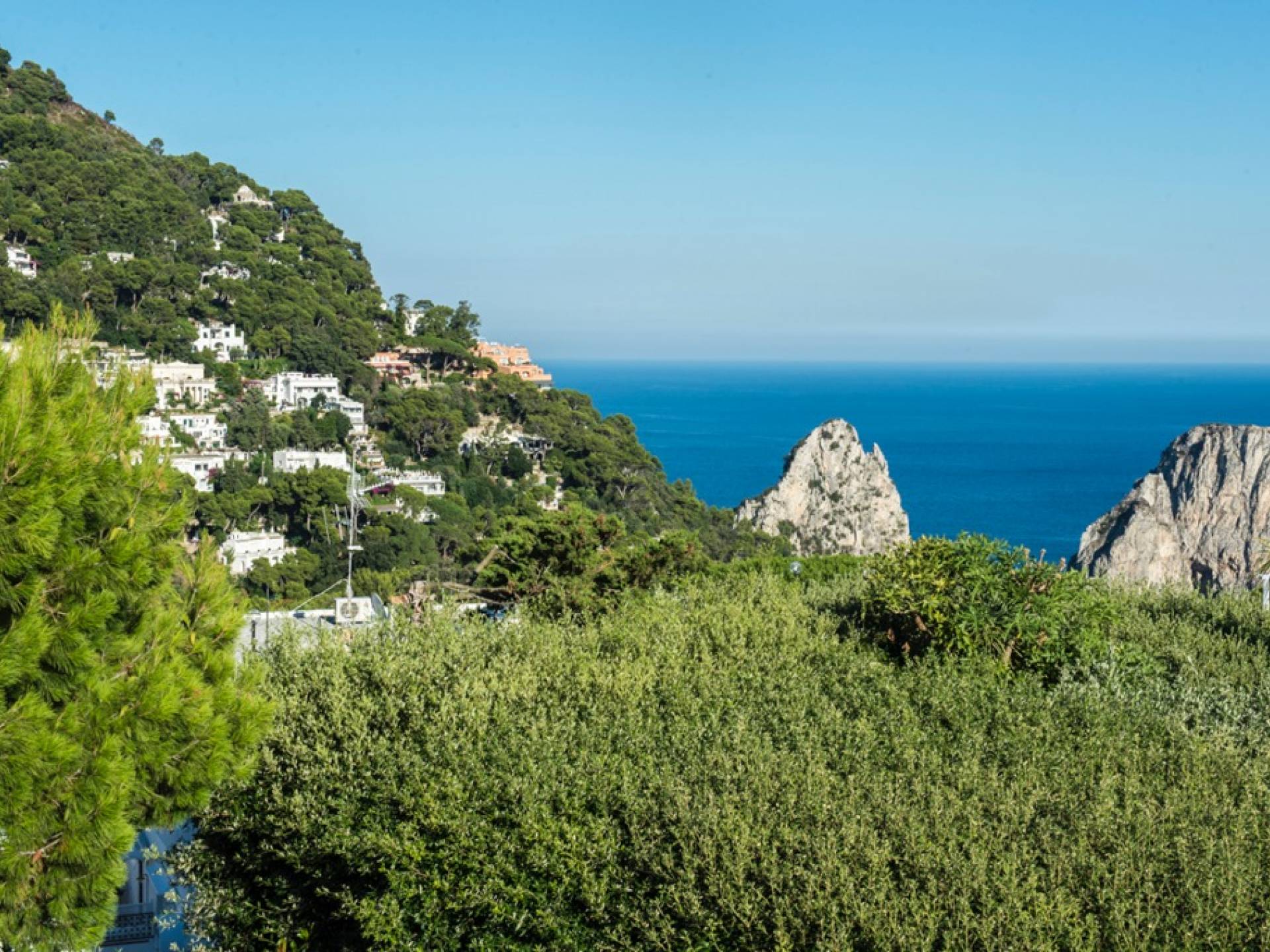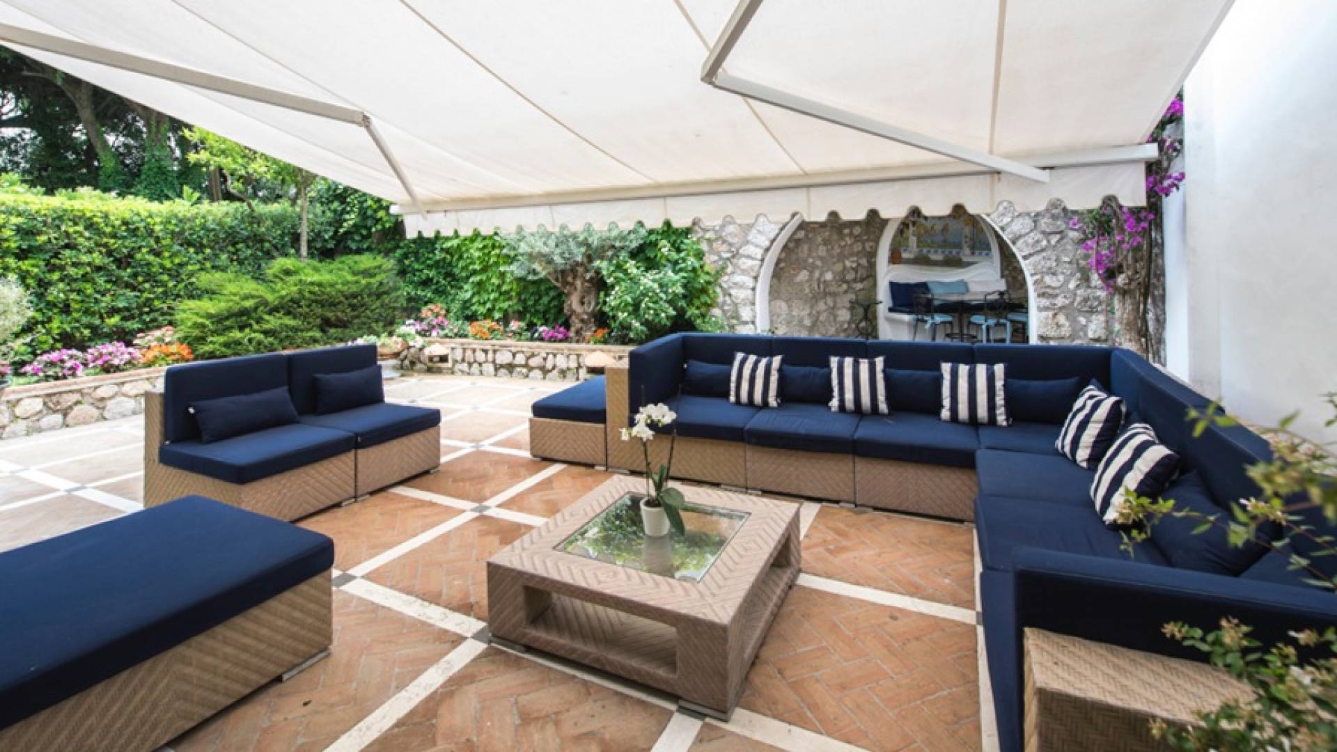 It hosts a maximum of ten adults in five bedrooms and six bathrooms, this is one of the very few properties with direct access to the square: this villa is conveniently located off of the main square of Capri and thanks to its position in the residential area of Capri, it enjoys fantastic views over the Faraglioni and the Mediterranean Sea. Access to the property is easy and stair-free through a small alleyway leading off of the main square, through a private gate leading through 8 steps down to the villa.
