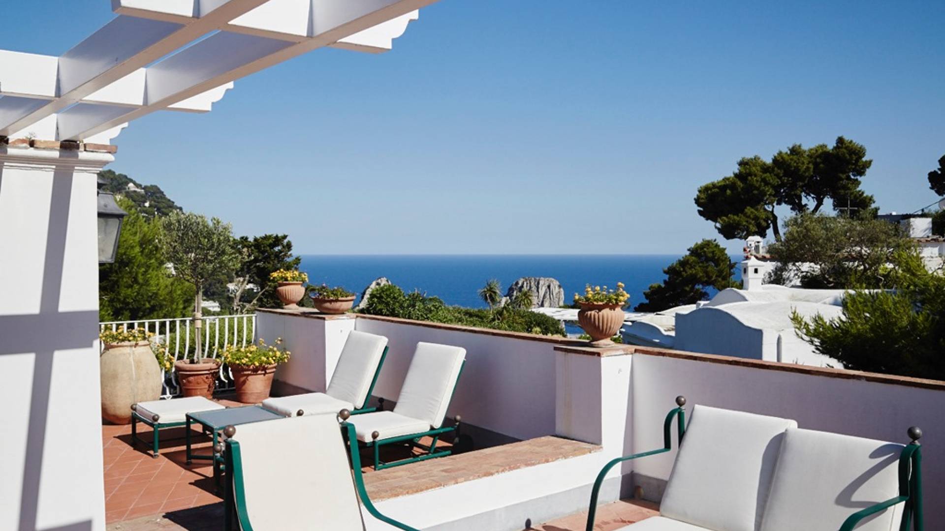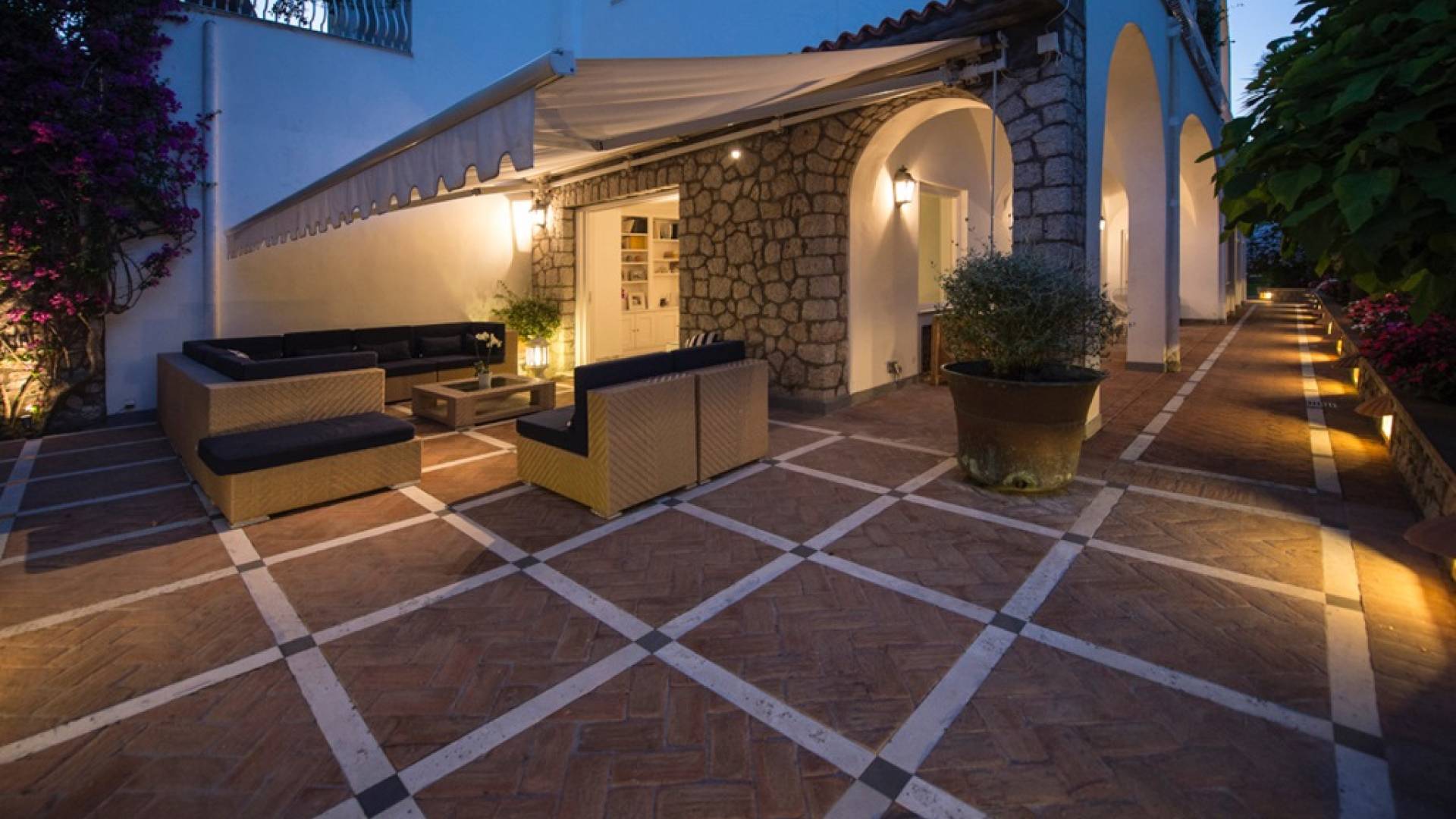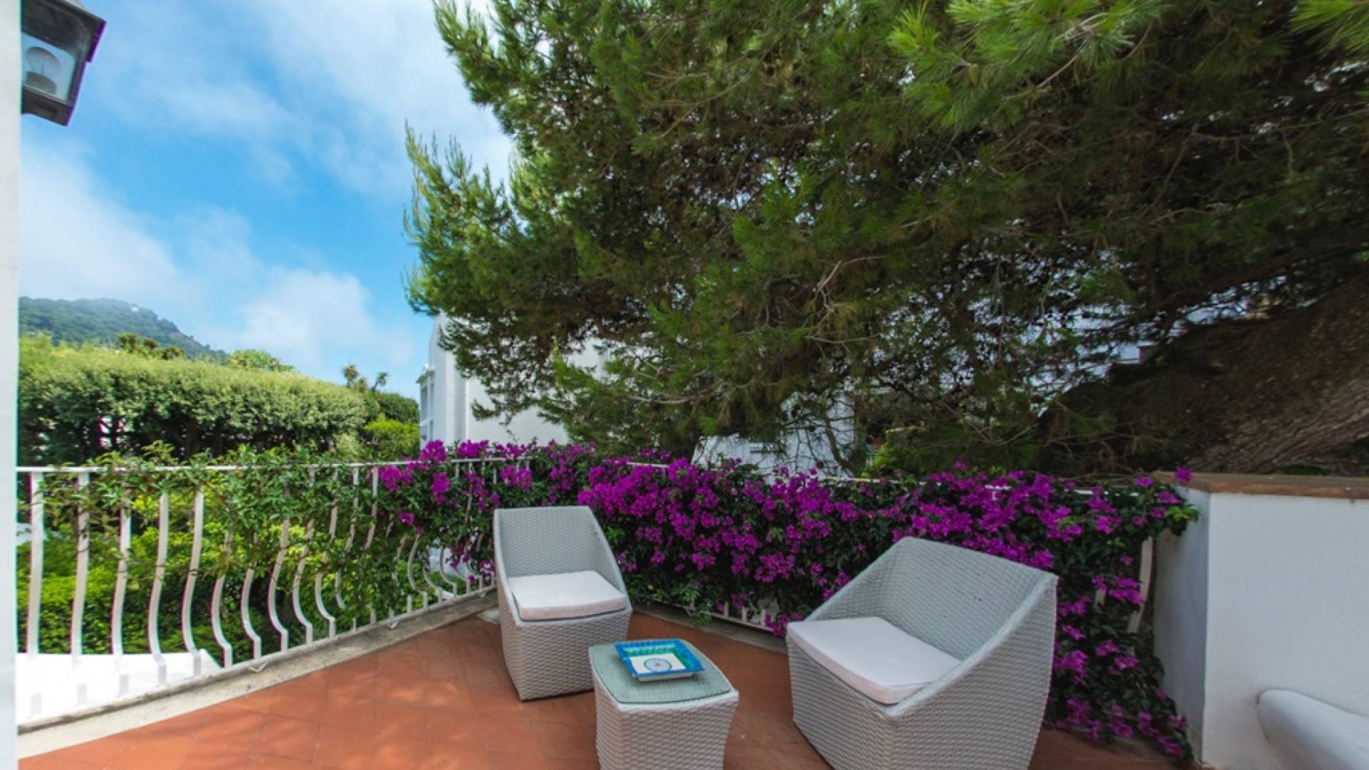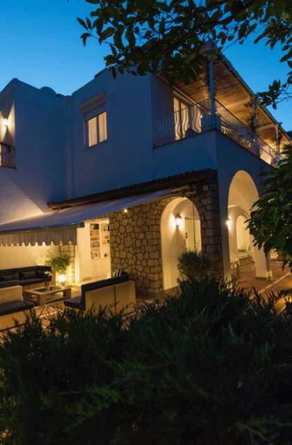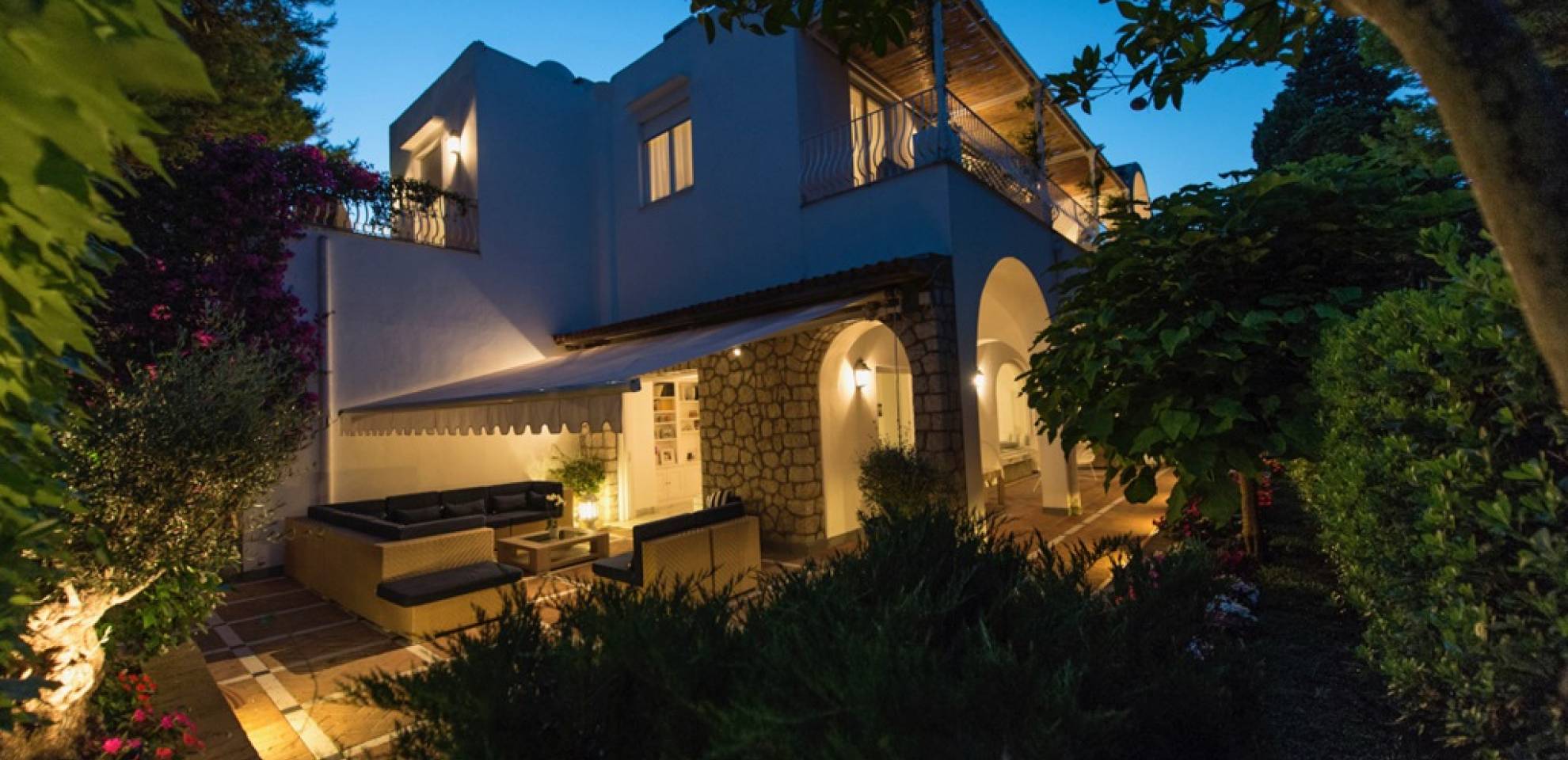 It hosts a maximum of ten adults in five bedrooms and six bathrooms, this is one of the very few properties with direct access to the square: this villa is conveniently located off of the main square of Capri and thanks to its position in the residential area of Capri, it enjoys fantastic views over the Faraglioni and the Mediterranean Sea. Access to the property is easy and stair-free through a small alleyway leading off of the main square, through a private gate leading through 8 steps down to the villa.