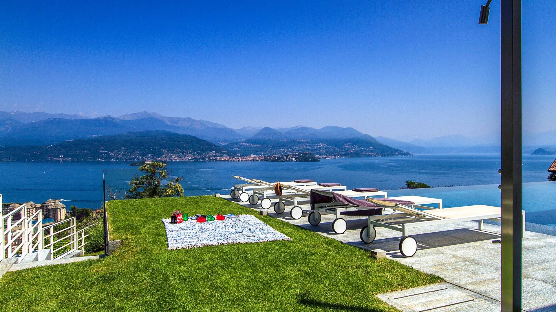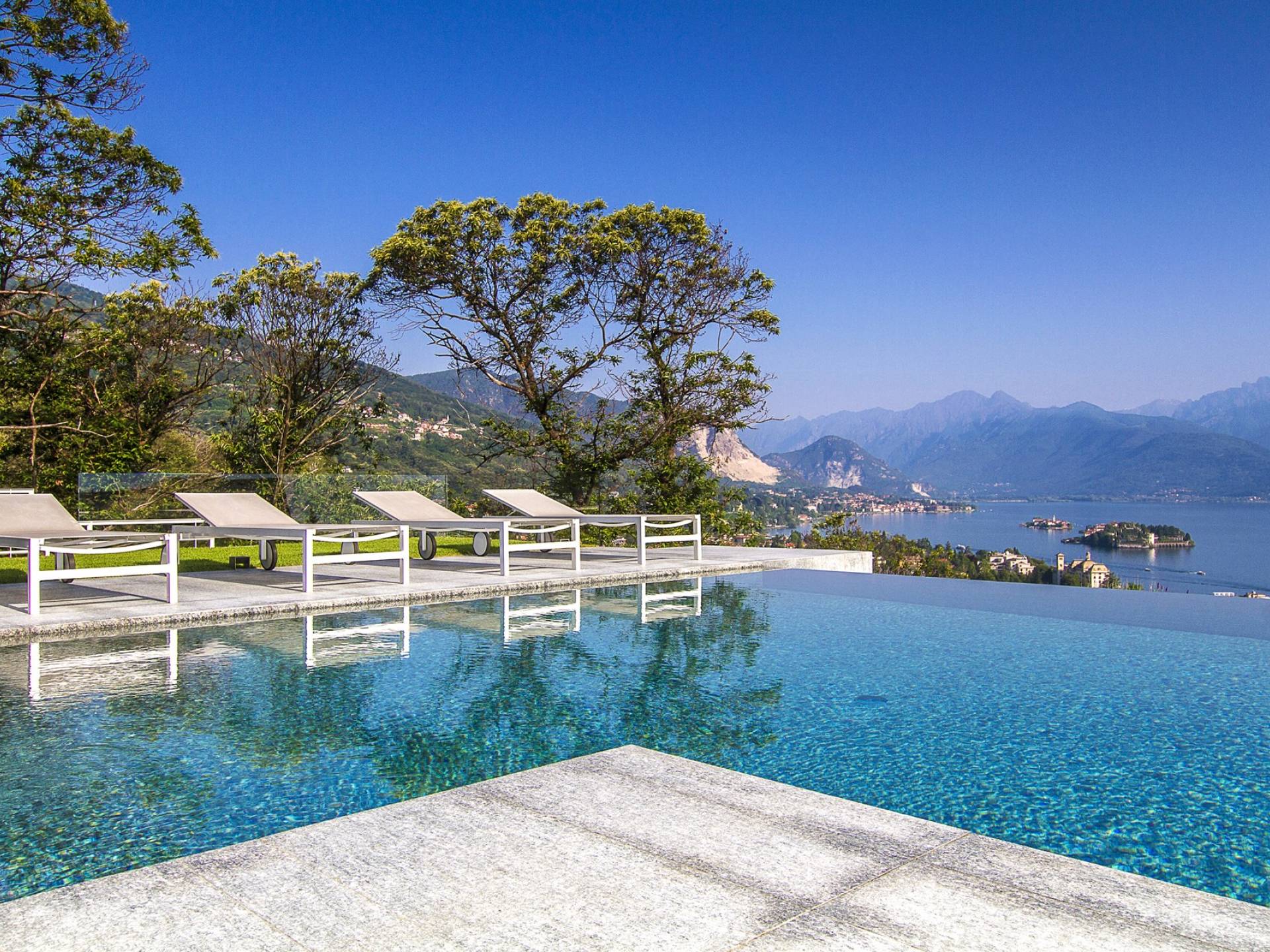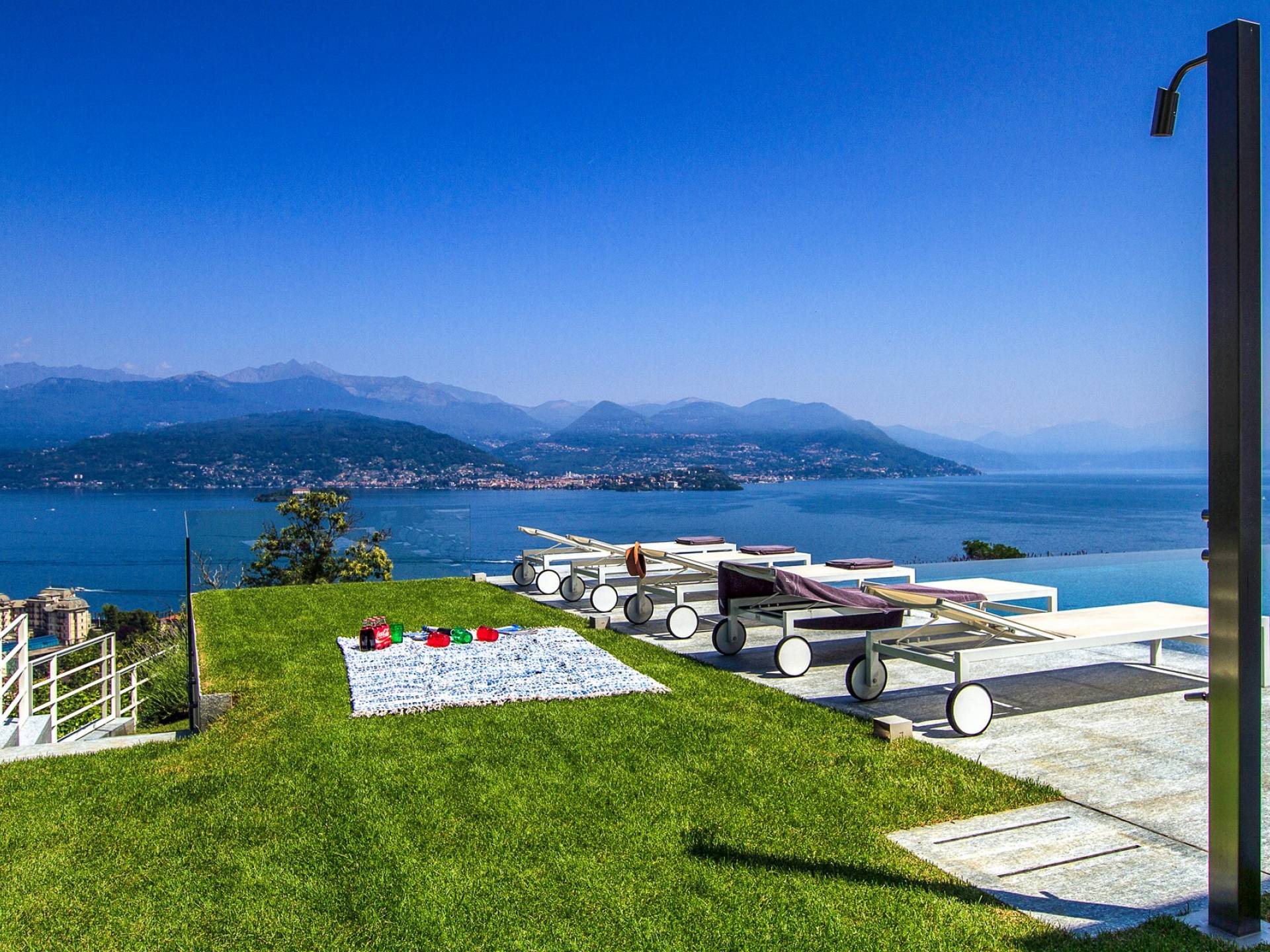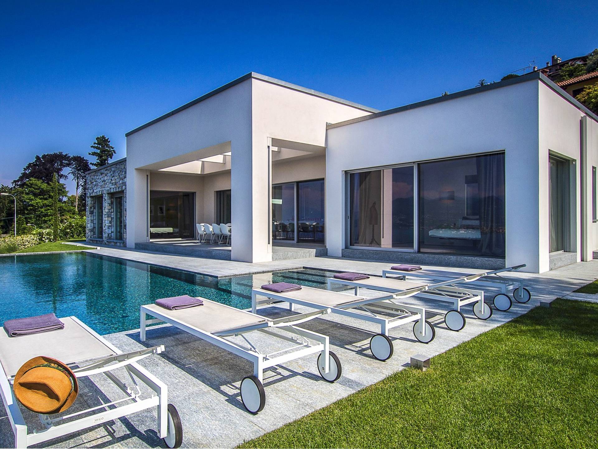Villa Camilla Lake Maggiore is a newly built villa at Lake Maggiore offering a luxurious blend of design, space, and style, with a private pool and magnificent views over Lake Maggiore, Italy. Set in a peaceful residential area on the hillside just above Stresa overlooking the three Borromeo Islands (Isola Bella, Isola Madre, and Isola Pescatori).