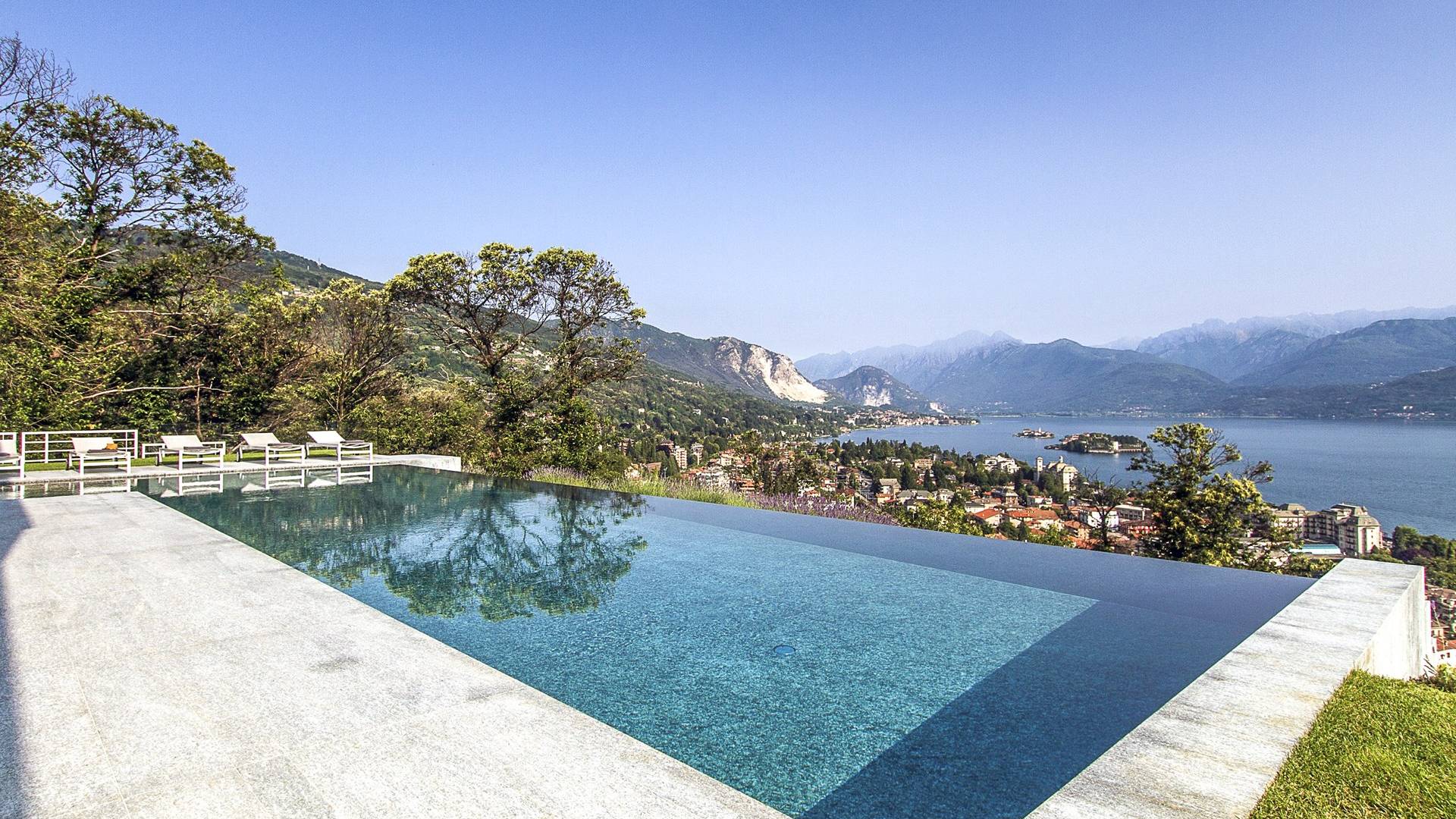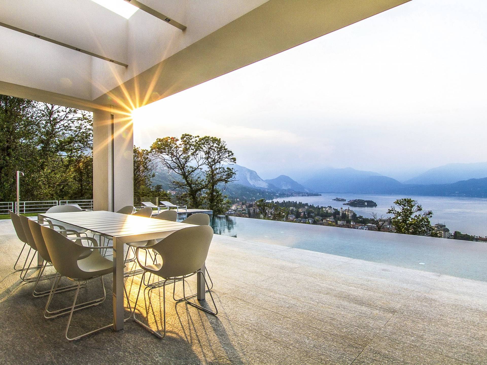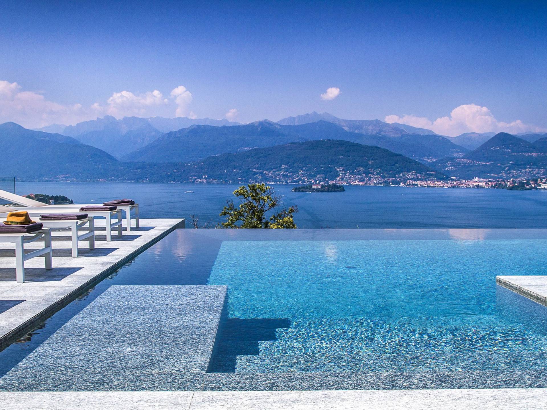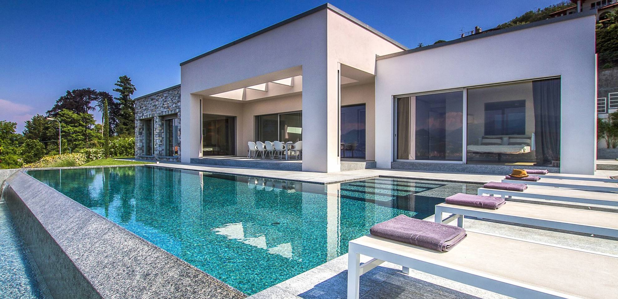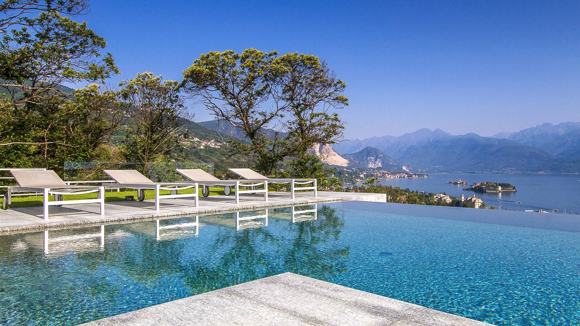 Villa Camilla Lake Maggiore is a newly built villa at Lake Maggiore offering a luxurious blend of design, space, and style, with a private pool and magnificent views over Lake Maggiore, Italy. Set in a peaceful residential area on the hillside just above Stresa overlooking the three Borromeo Islands (Isola Bella, Isola Madre, and Isola Pescatori).