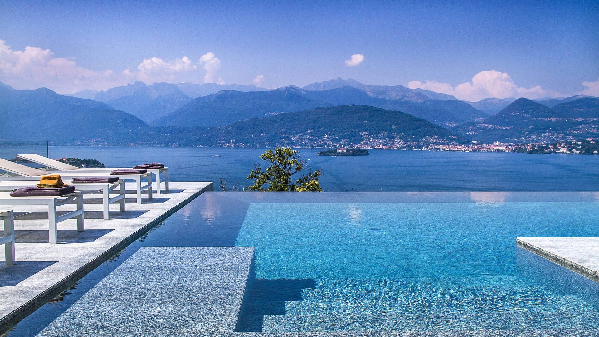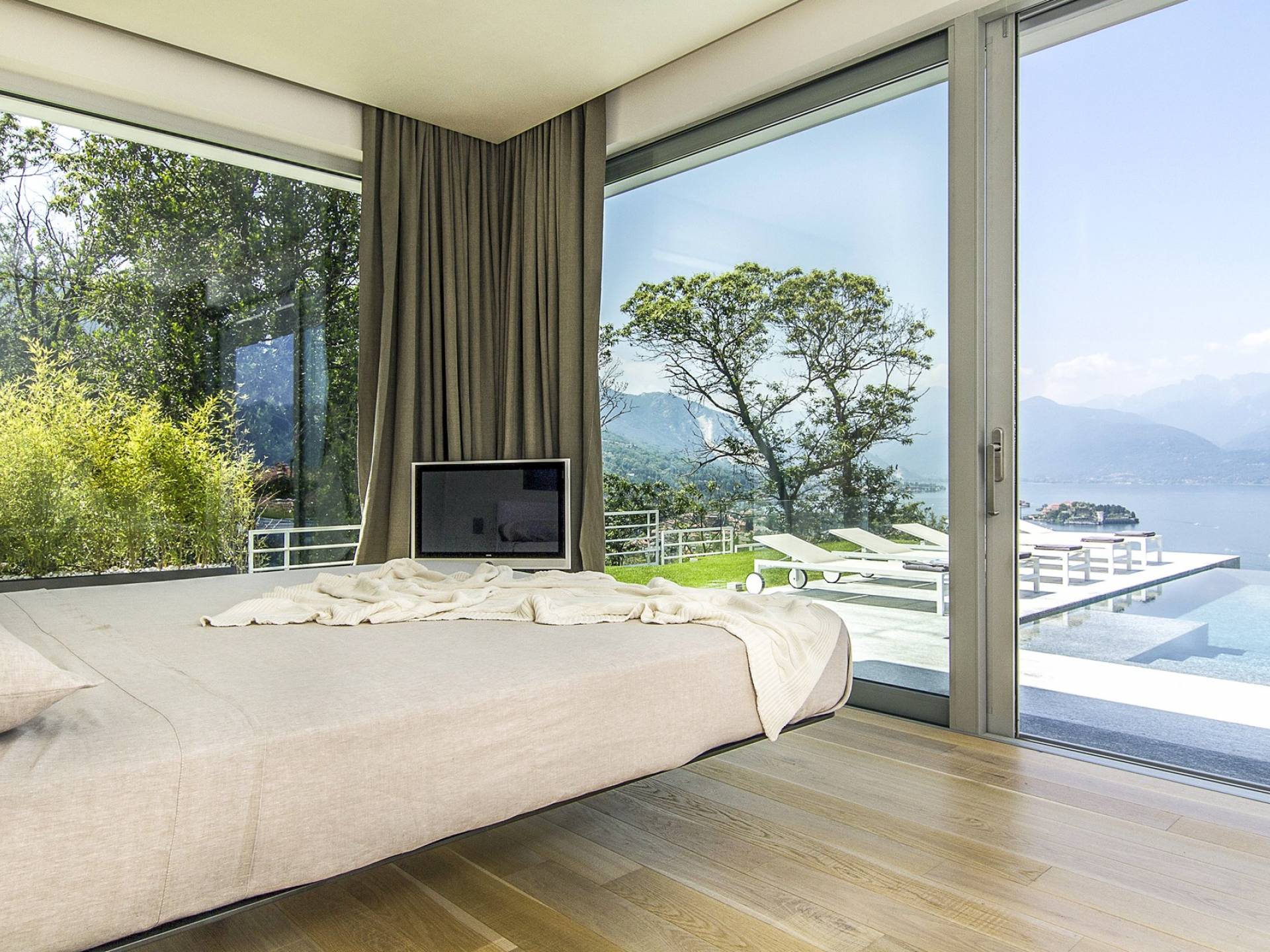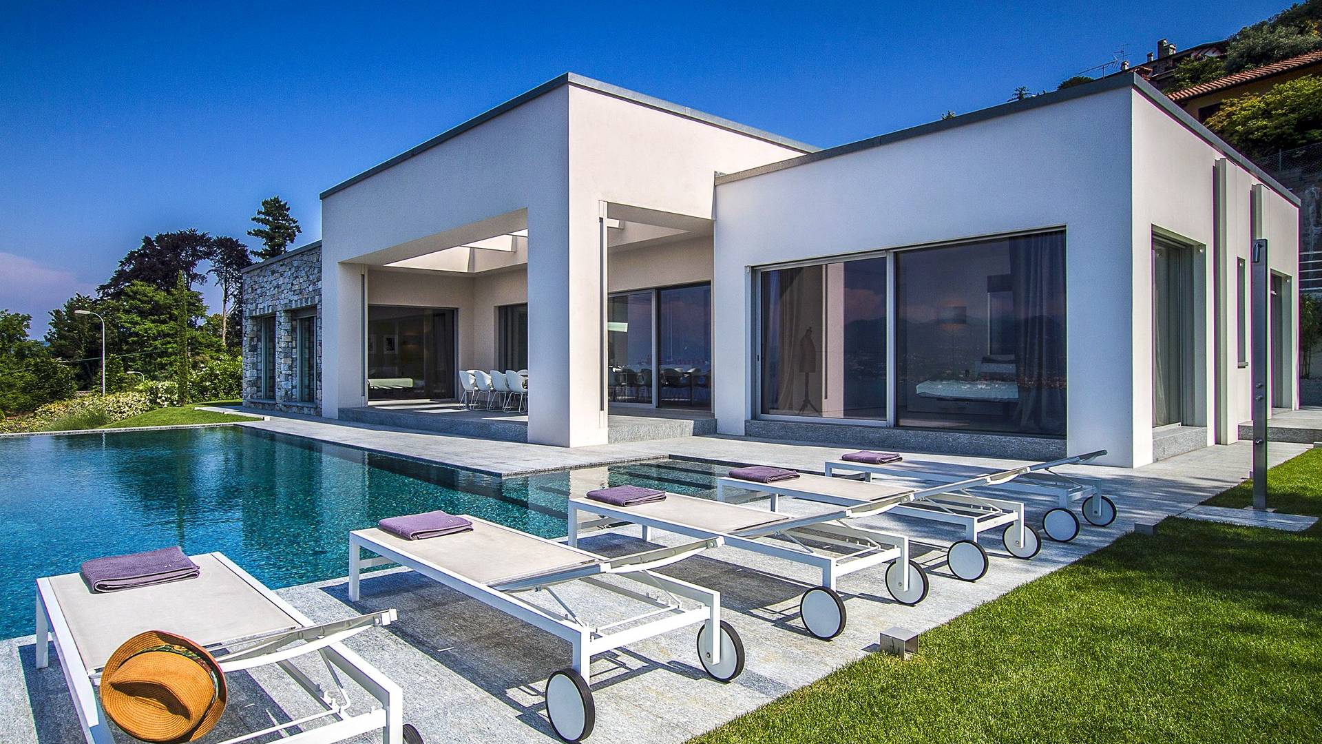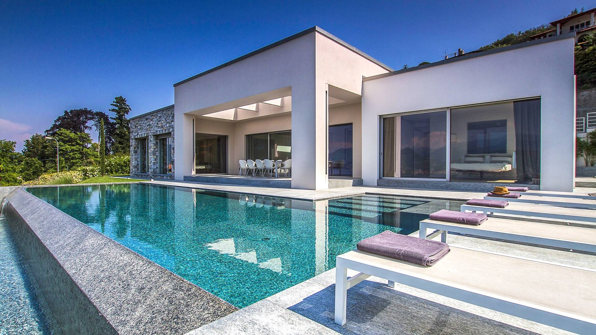 Villa Camilla Lake Maggiore is a newly built villa at Lake Maggiore offering a luxurious blend of design, space, and style, with a private pool and magnificent views over Lake Maggiore, Italy. Set in a peaceful residential area on the hillside just above Stresa overlooking the three Borromeo Islands (Isola Bella, Isola Madre, and Isola Pescatori).