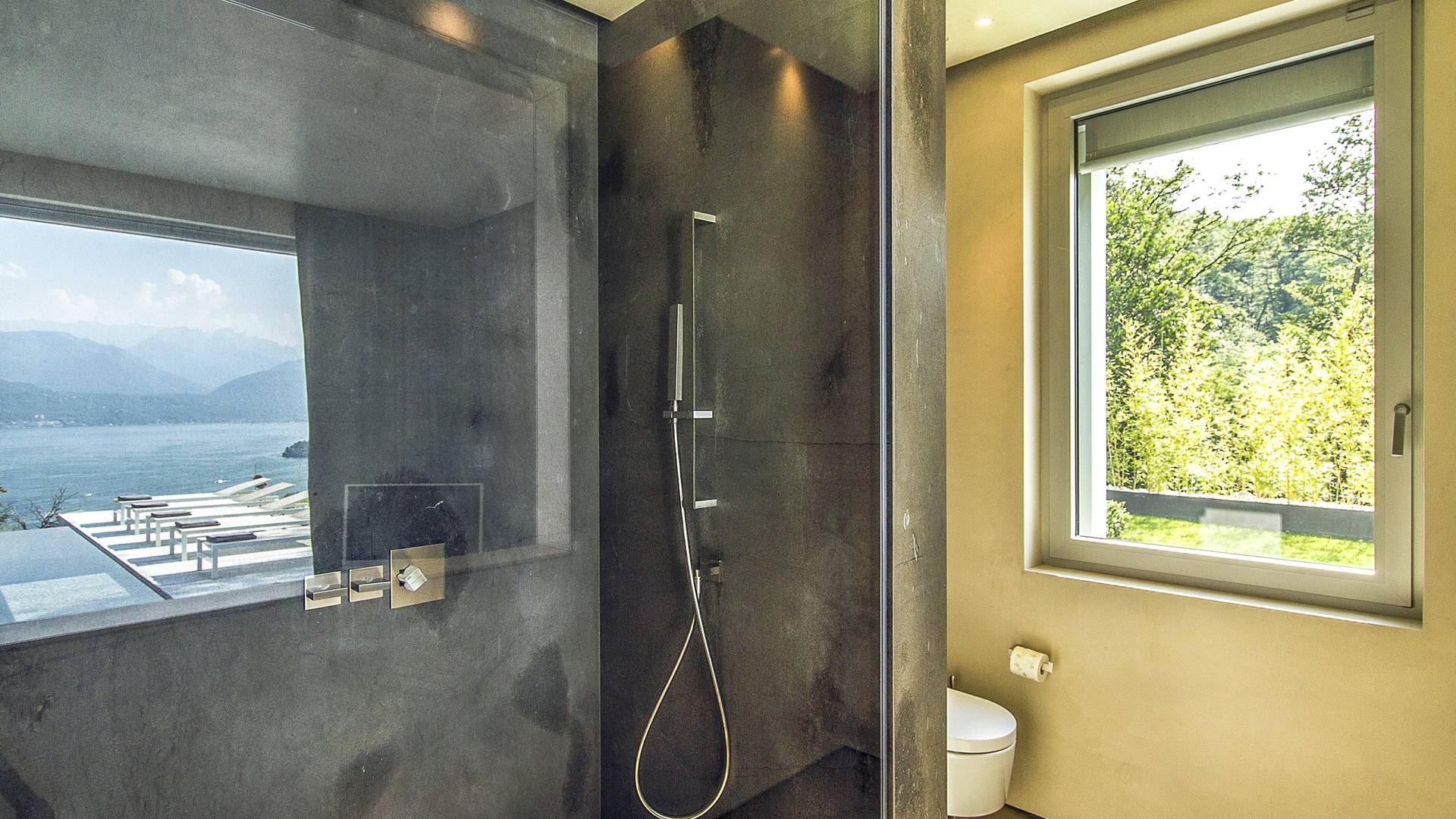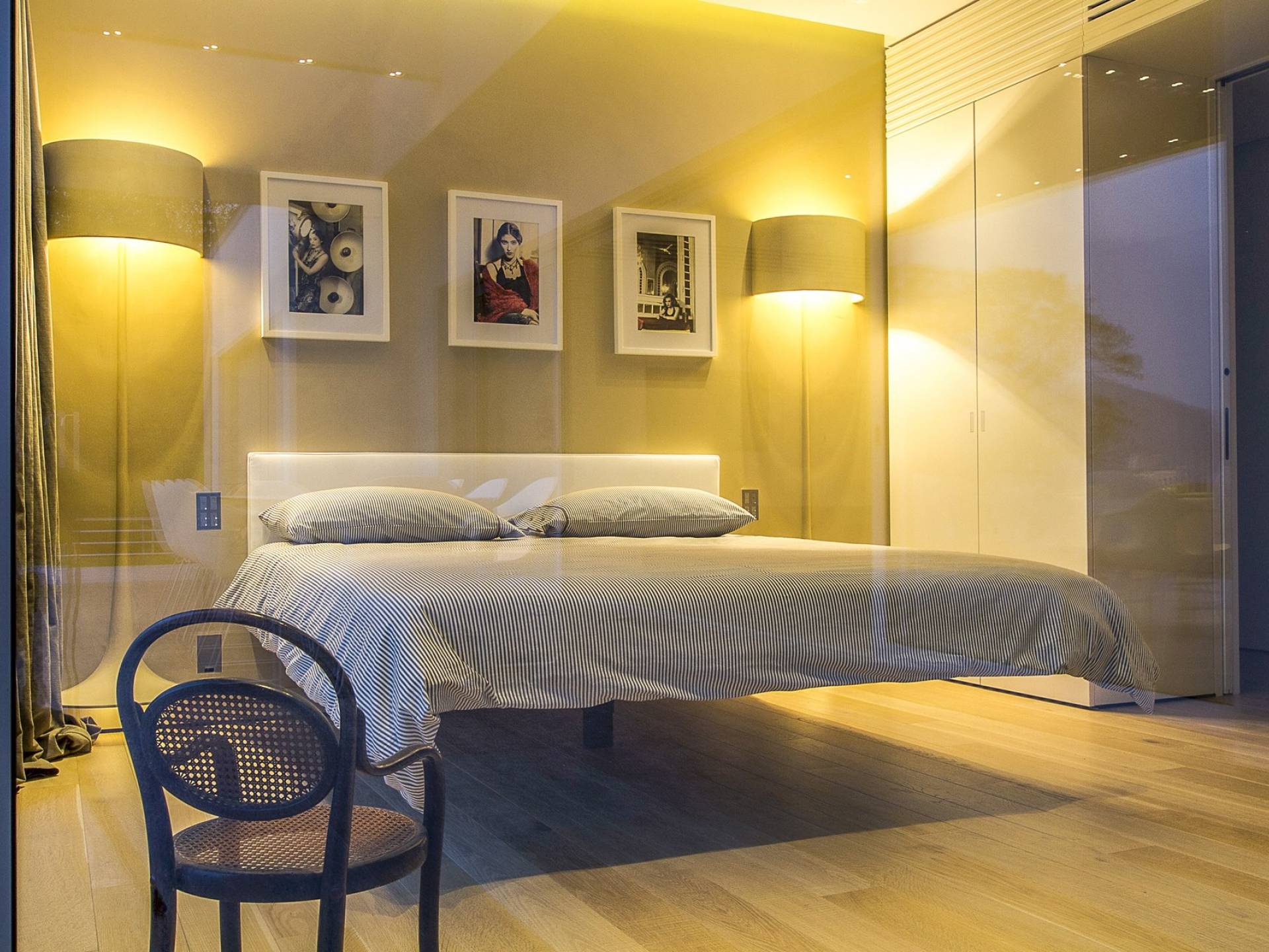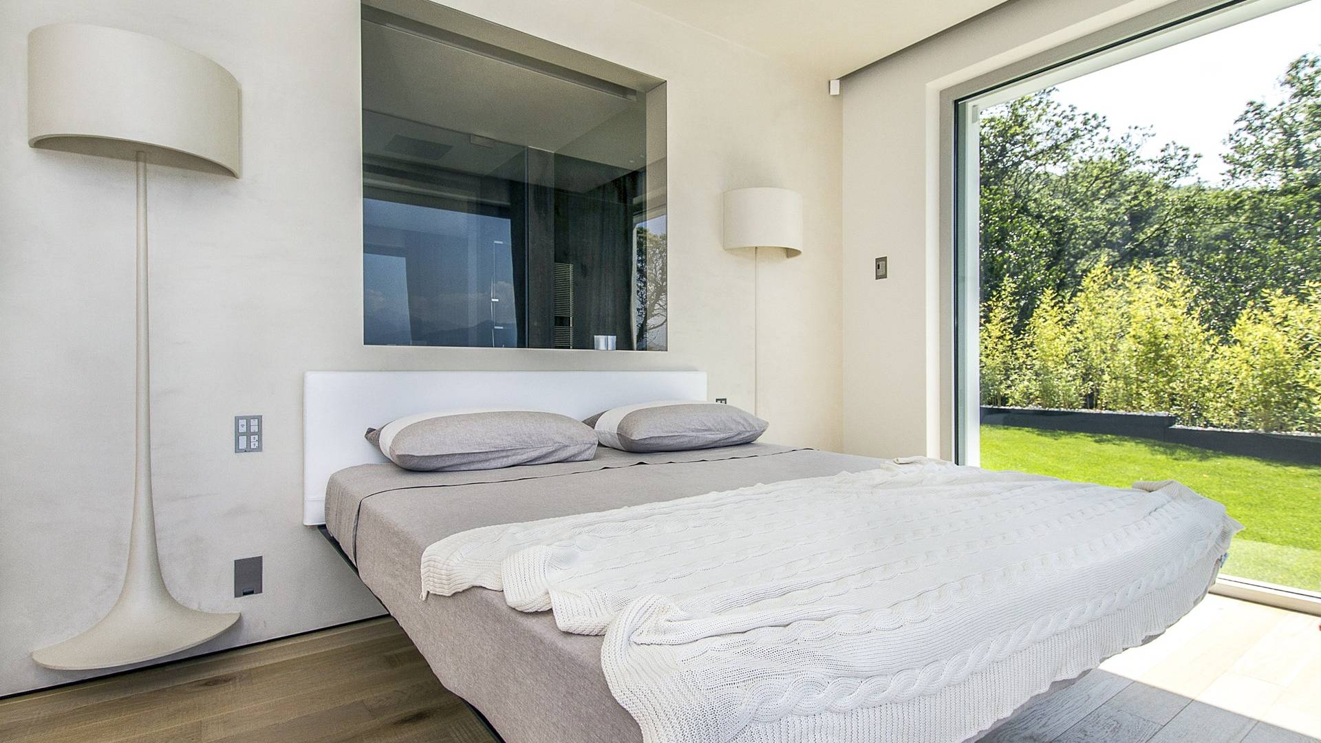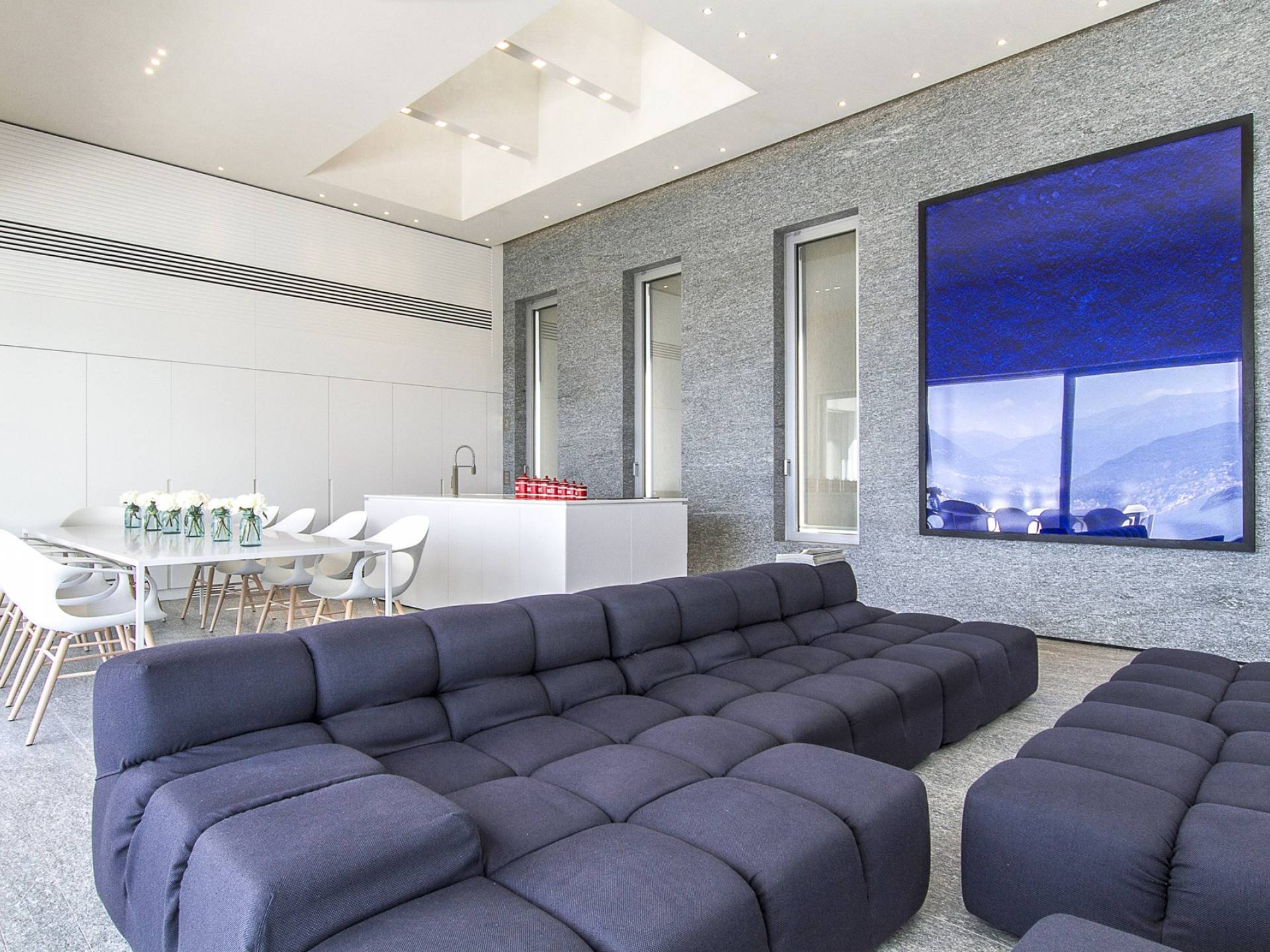 Villa Camilla Lake Maggiore has flat roofs planted with greenery and is built over two floors (each 200m²). The side of the villa facing the road is covered in local stone giving it a traditional appearance. The other sides are painted in soft pastel colors to blend with the surrounding landscape. The villa is designed in a modern and minimalist concept but at the same time creates a comfortable atmosphere that will make you feel completely at home.