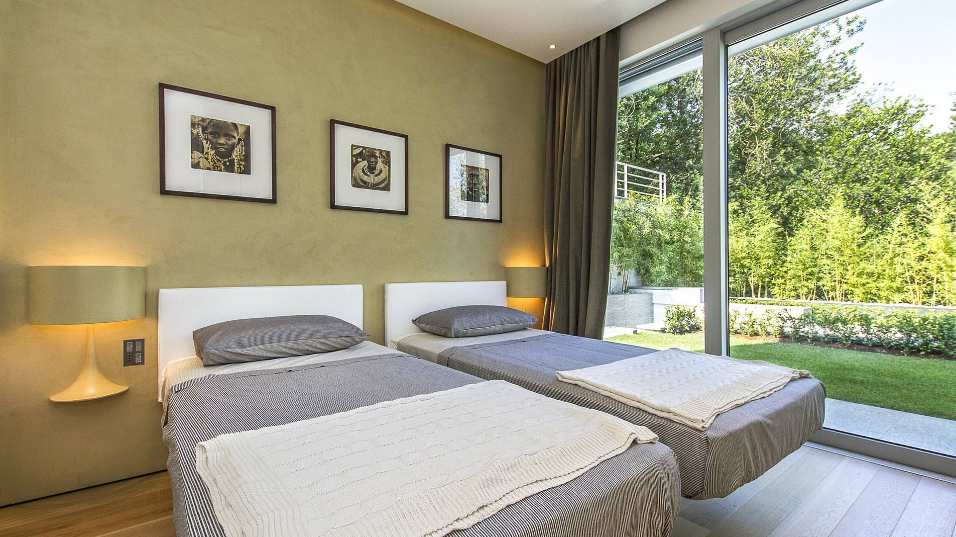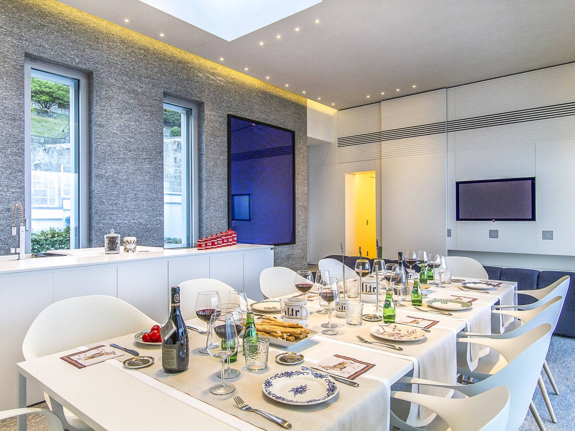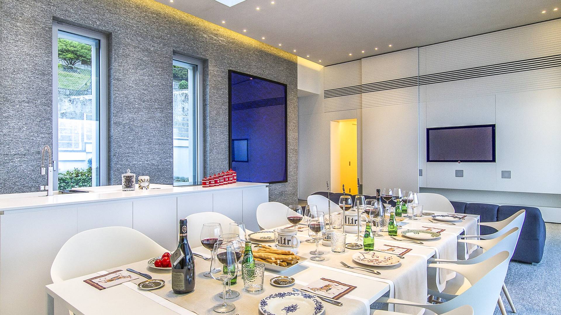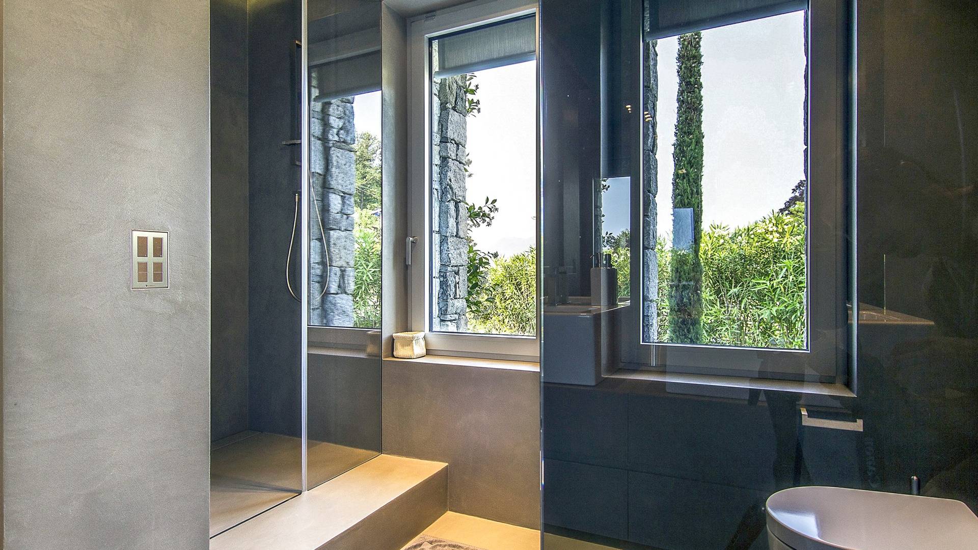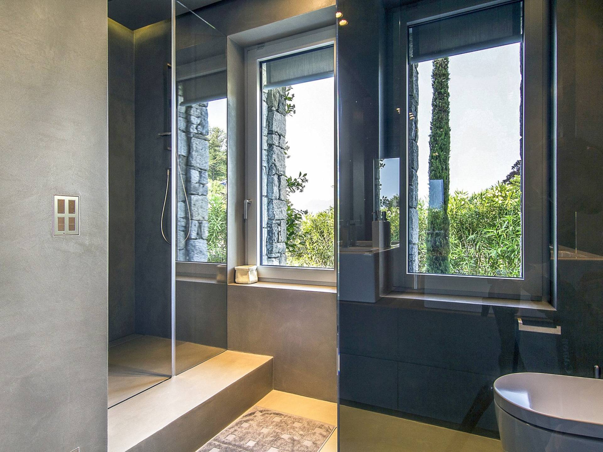 Villa Camilla Lake Maggiore has flat roofs planted with greenery and is built over two floors (each 200m²). The side of the villa facing the road is covered in local stone giving it a traditional appearance. The other sides are painted in soft pastel colors to blend with the surrounding landscape. The villa is designed in a modern and minimalist concept but at the same time creates a comfortable atmosphere that will make you feel completely at home.