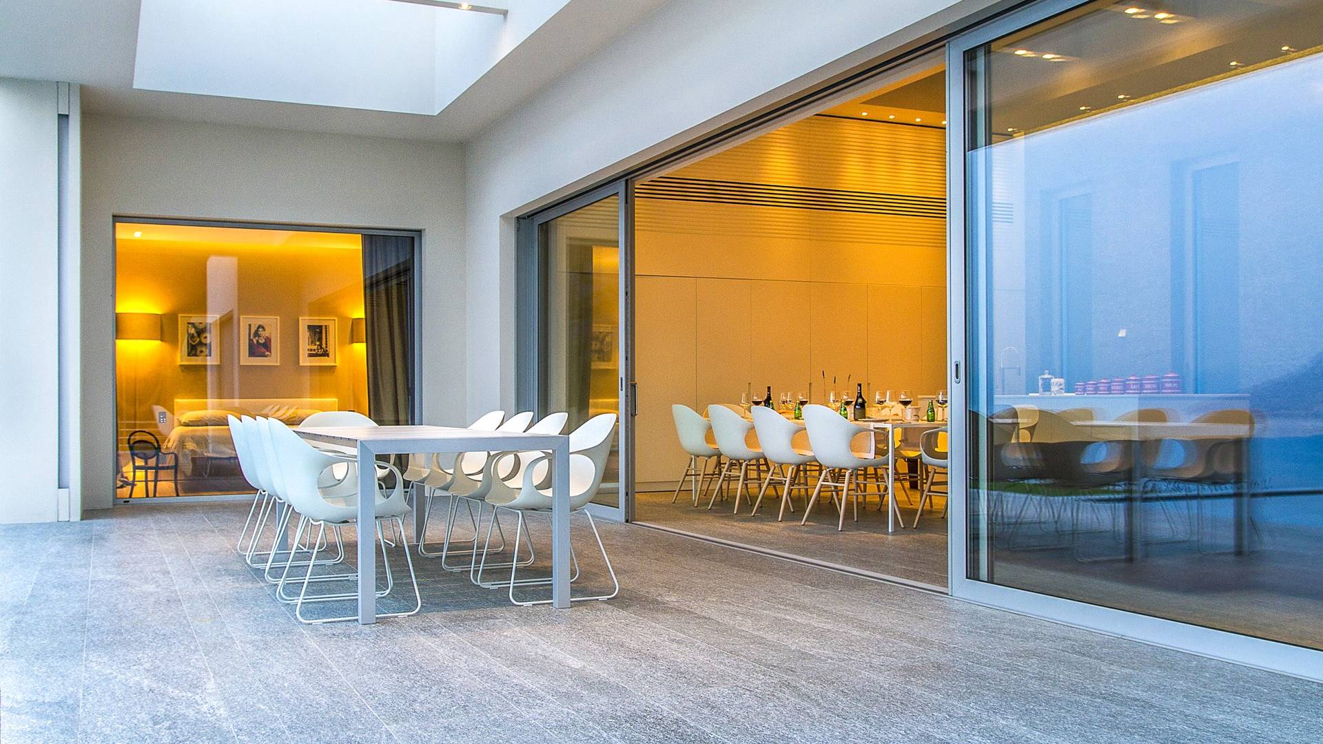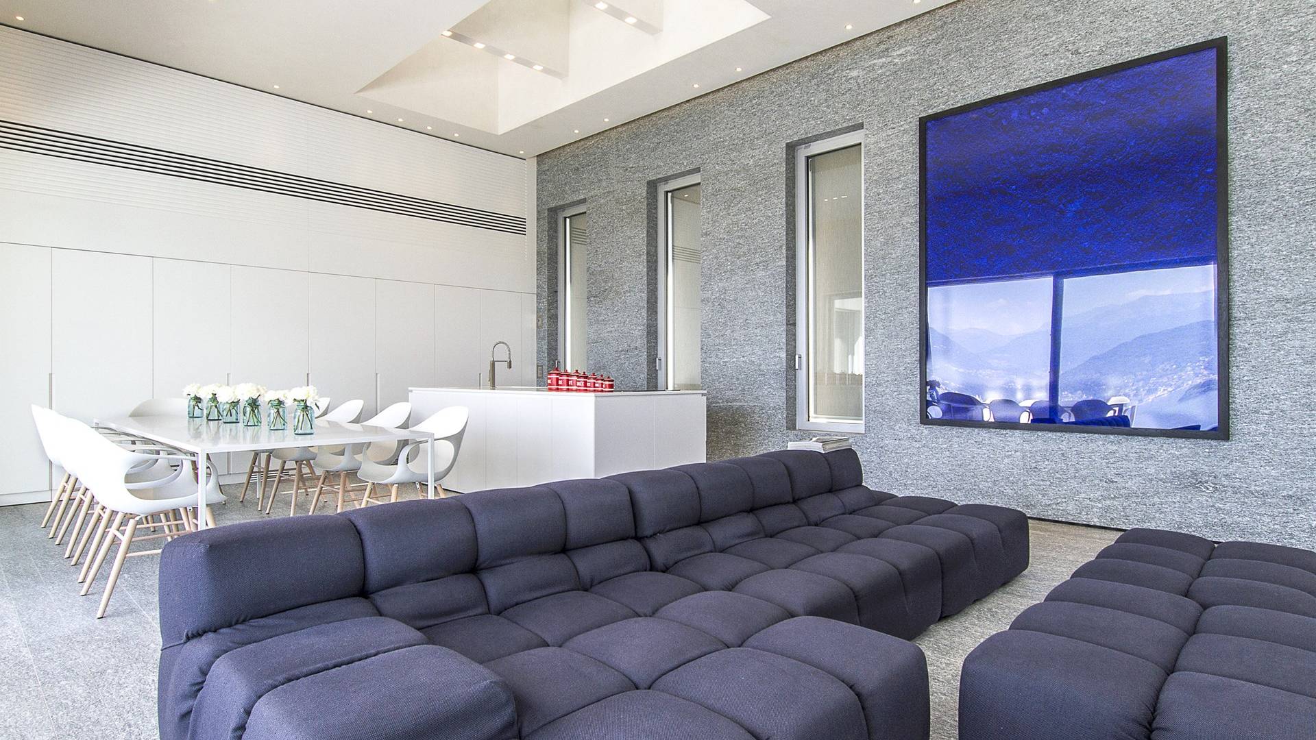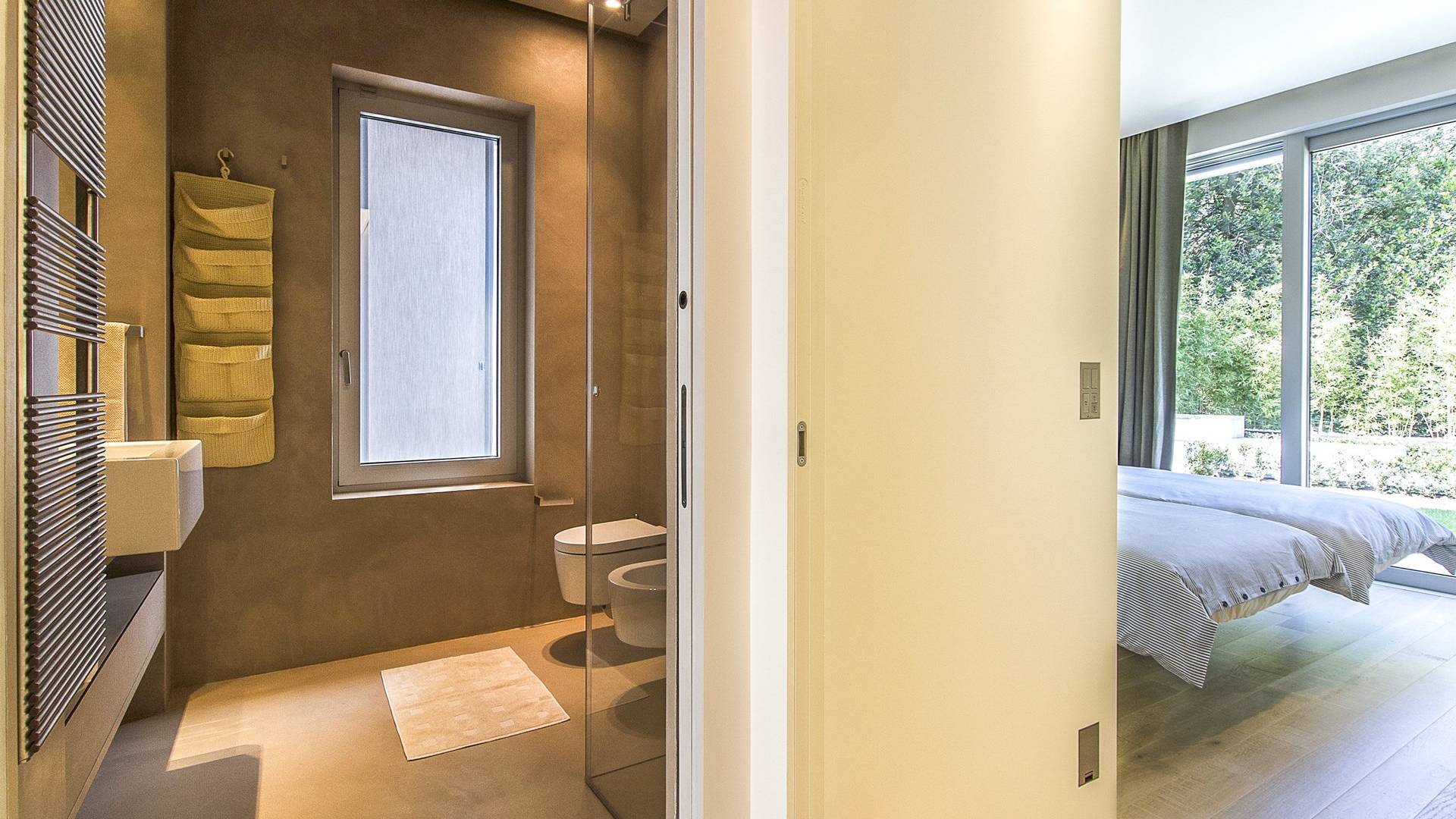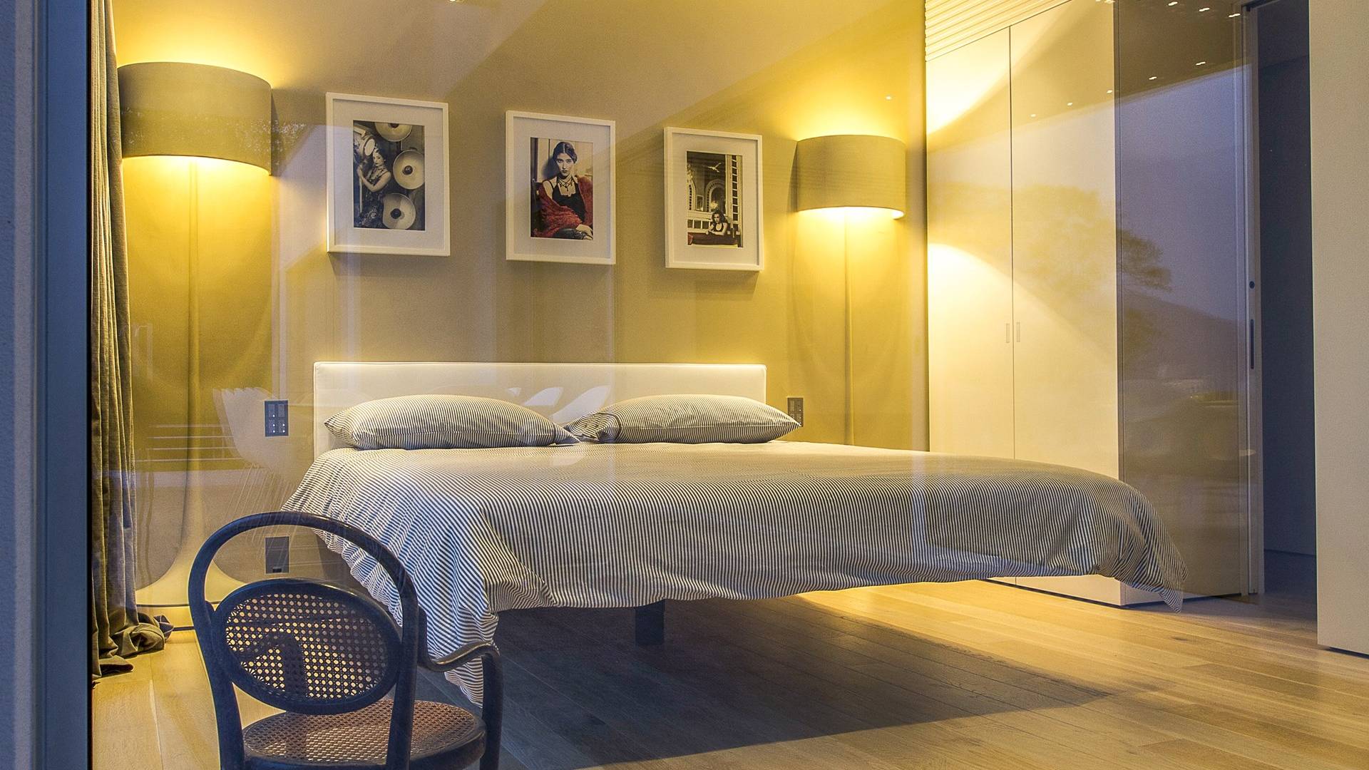 Villa Camilla Lake Maggiore has flat roofs planted with greenery and is built over two floors (each 200m²). The side of the villa facing the road is covered in local stone giving it a traditional appearance. The other sides are painted in soft pastel colors to blend with the surrounding landscape. The villa is designed in a modern and minimalist concept but at the same time creates a comfortable atmosphere that will make you feel completely at home.