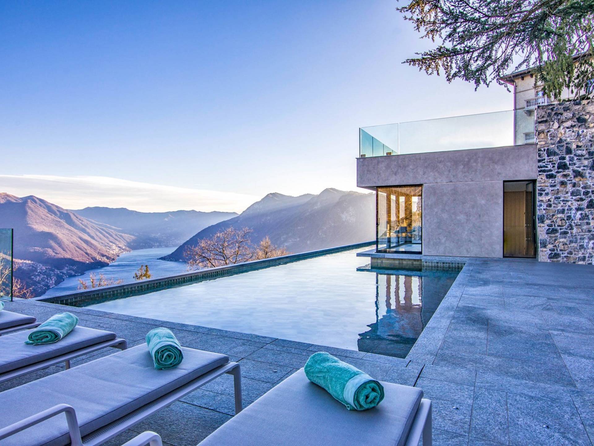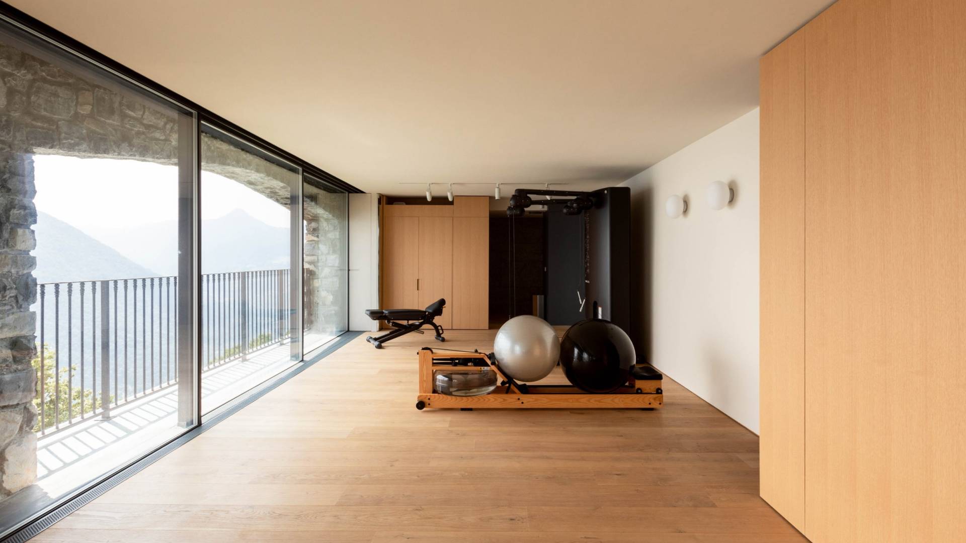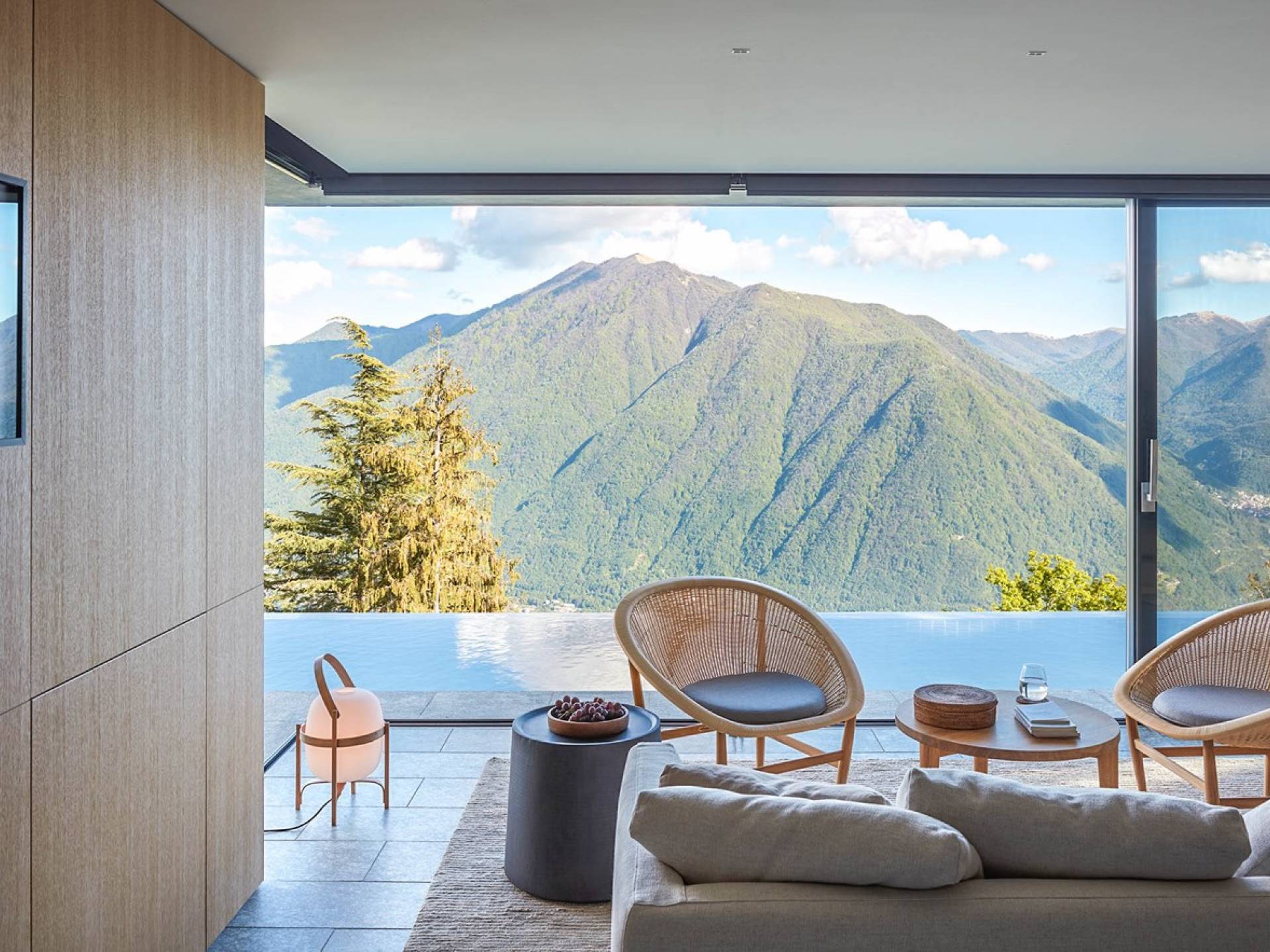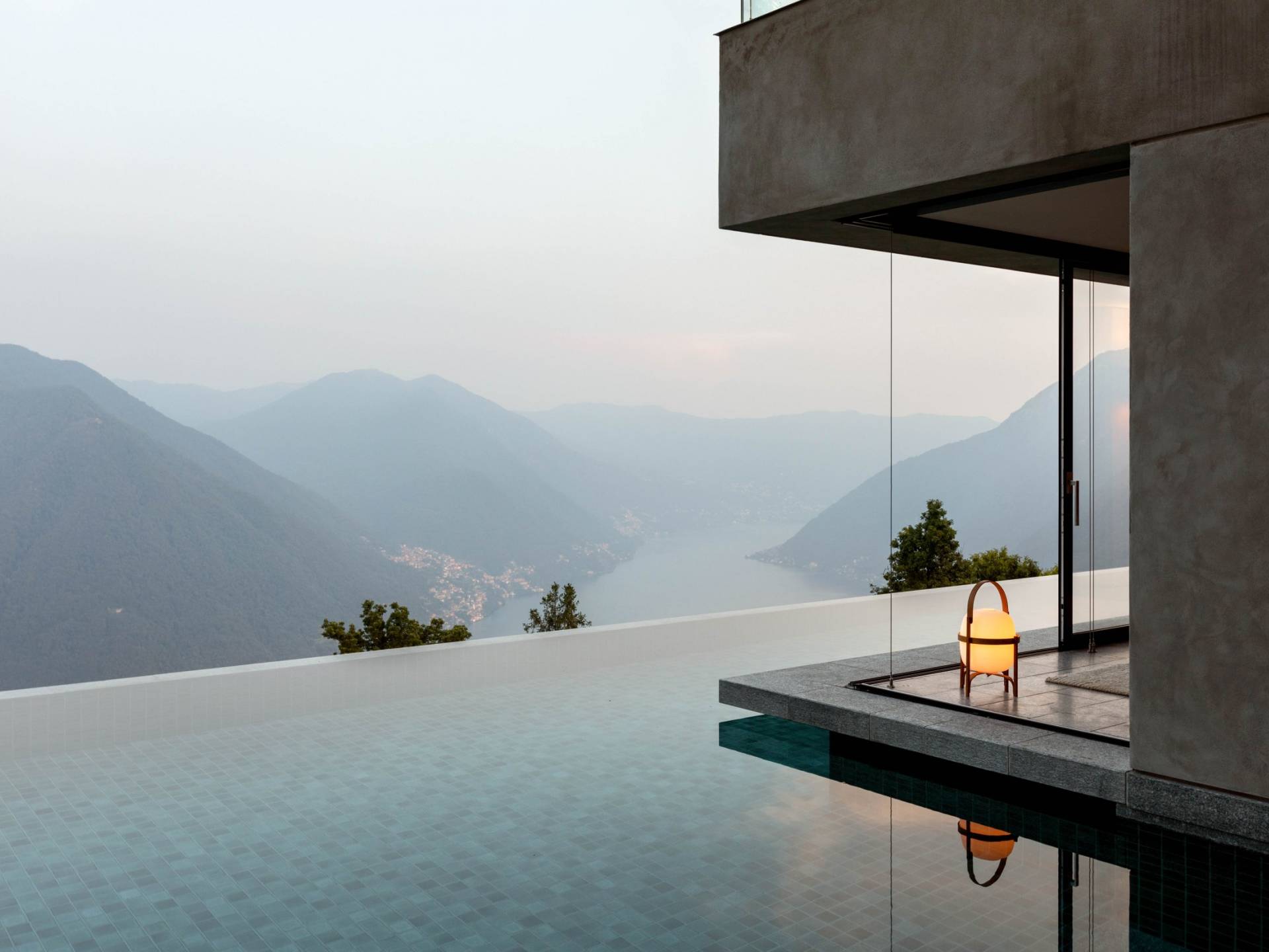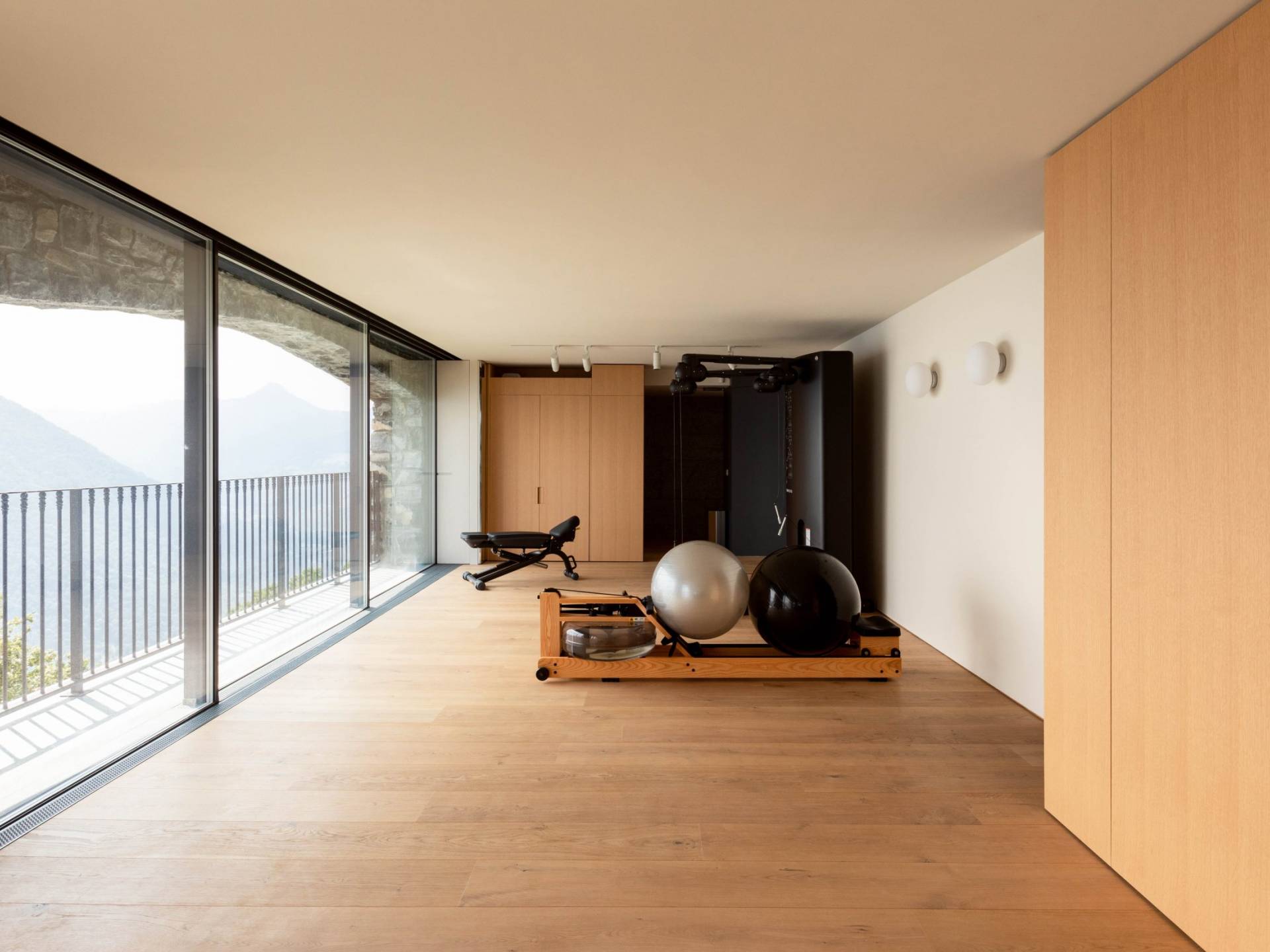 The views from south facing Villa Peduzzi are truly stunning – a combination of a wide blue lake and green mountain vistas rounded off with glorious golden sunsets. These can be enjoyed from the balconies off every bedroom, the villa’s main surrounding terrace, and the extraordinary pool house with its green roof and infinity pool. Also making the most of this aspect are an exceptional yoga/wellness room that has been carved out of the cliff face and the rooftop terraces, bar, and entertainment area.