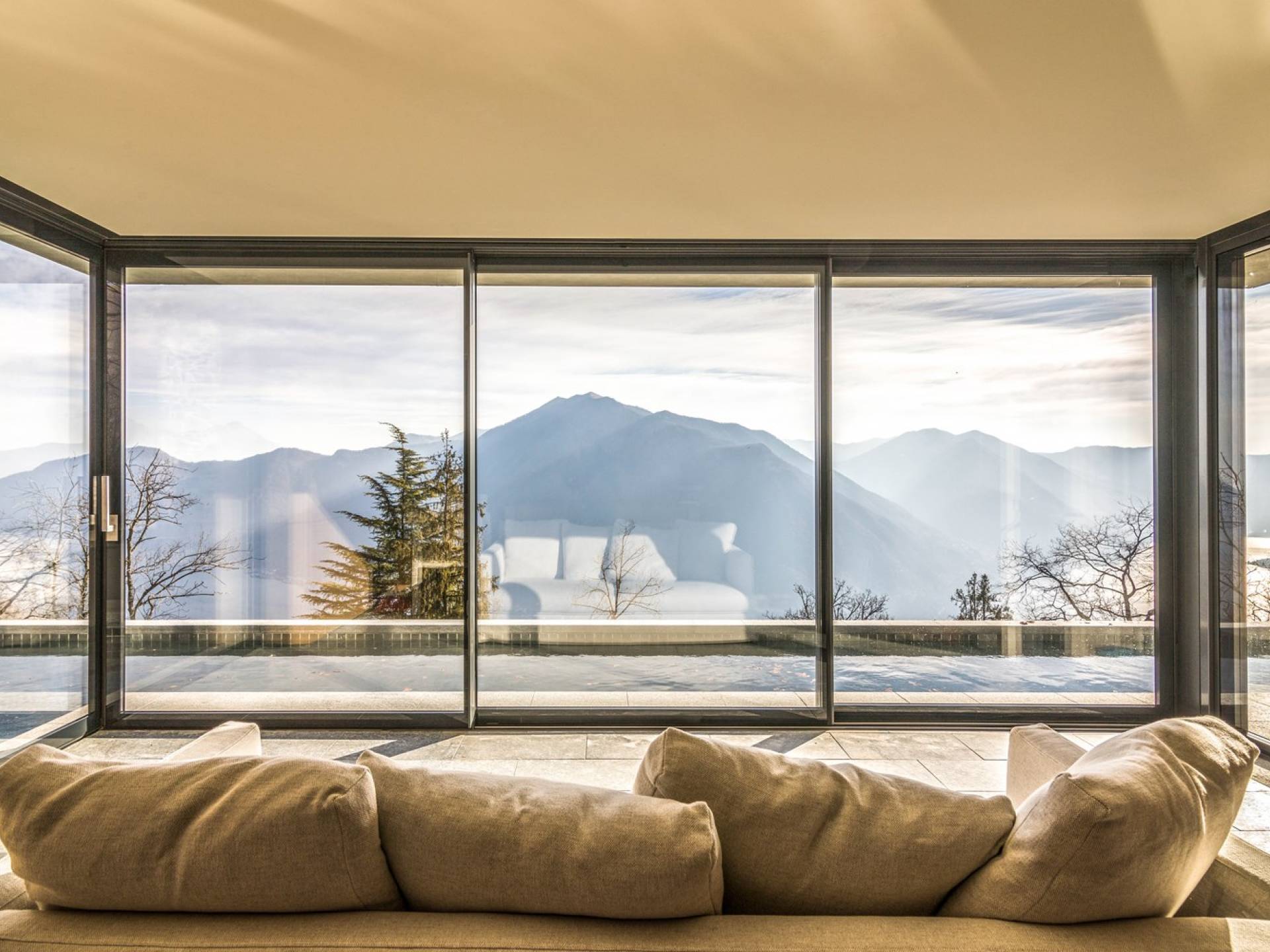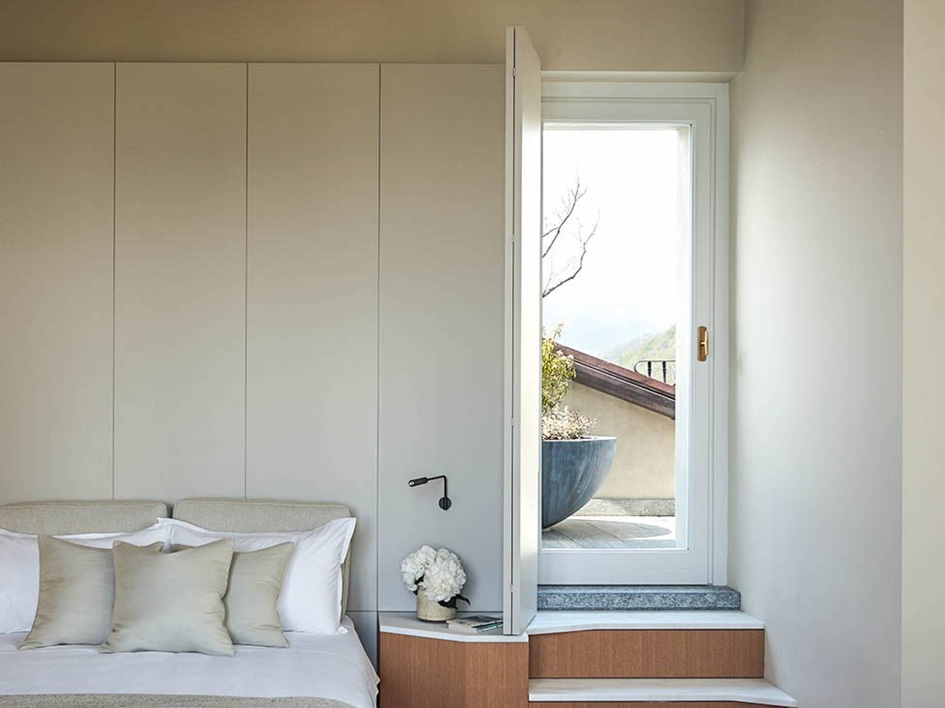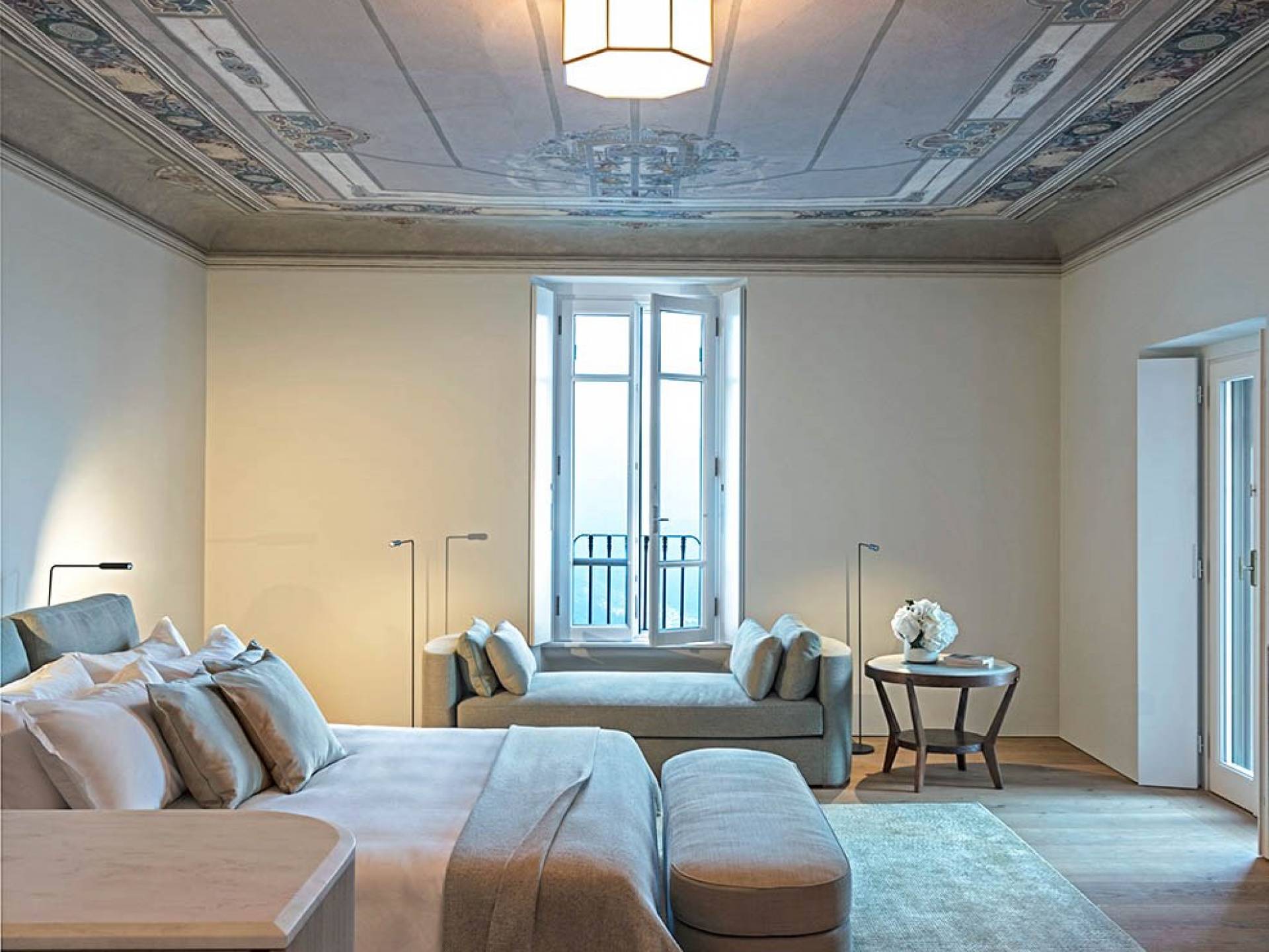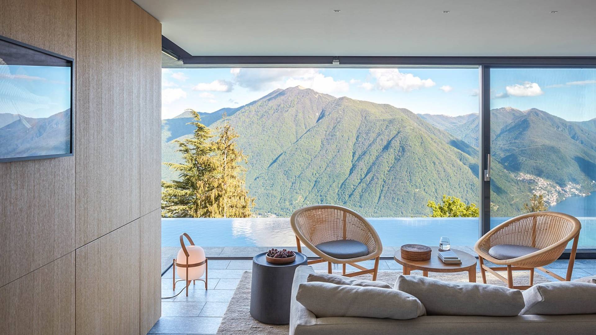 The views from south facing Villa Peduzzi are truly stunning – a combination of a wide blue lake and green mountain vistas rounded off with glorious golden sunsets. These can be enjoyed from the balconies off every bedroom, the villa’s main surrounding terrace, and the extraordinary pool house with its green roof and infinity pool. Also making the most of this aspect are an exceptional yoga/wellness room that has been carved out of the cliff face and the rooftop terraces, bar, and entertainment area.