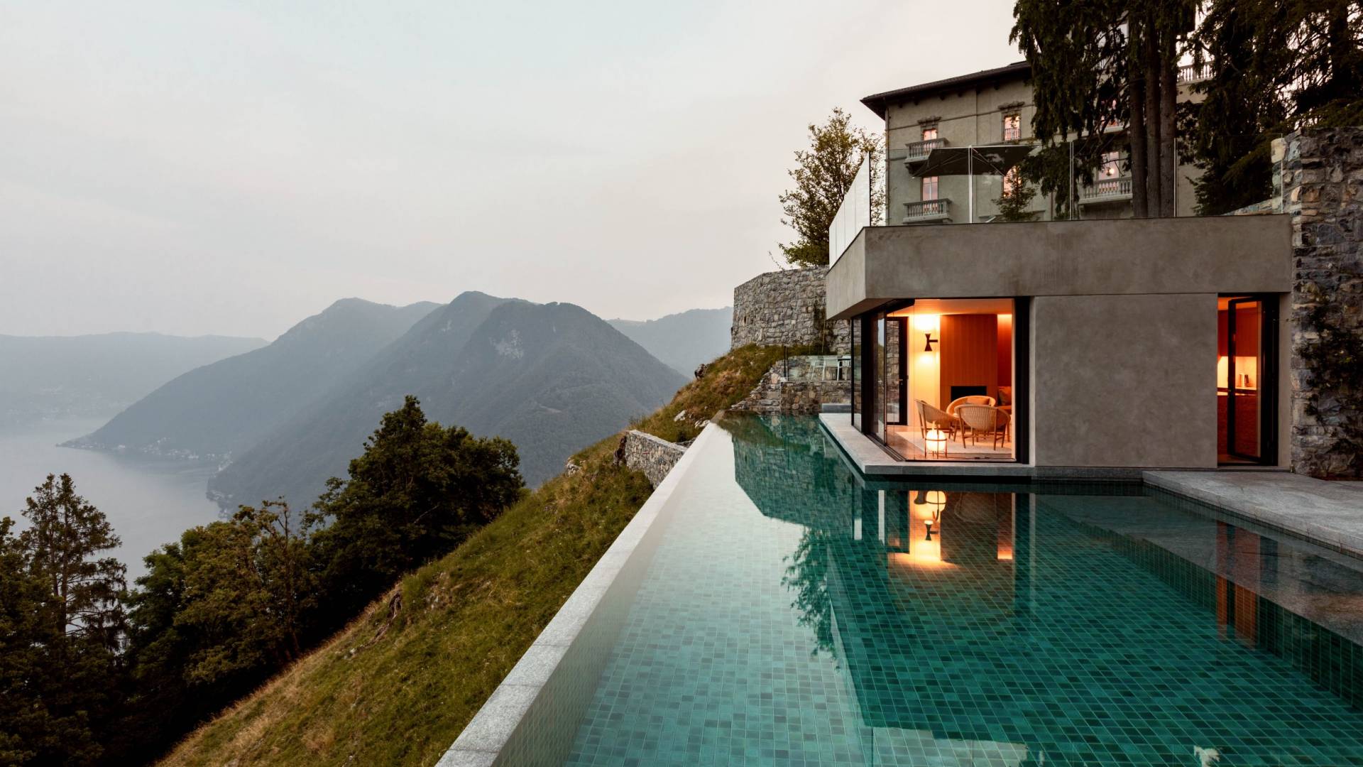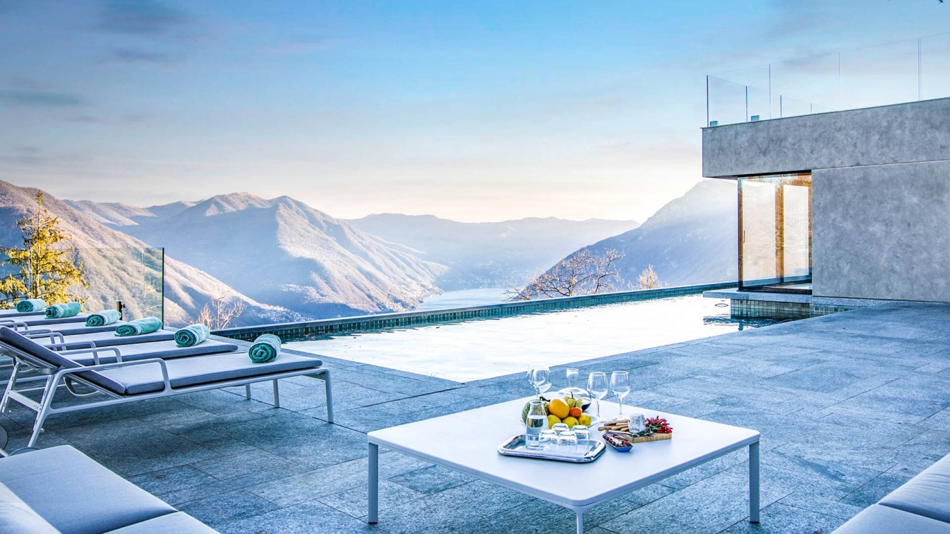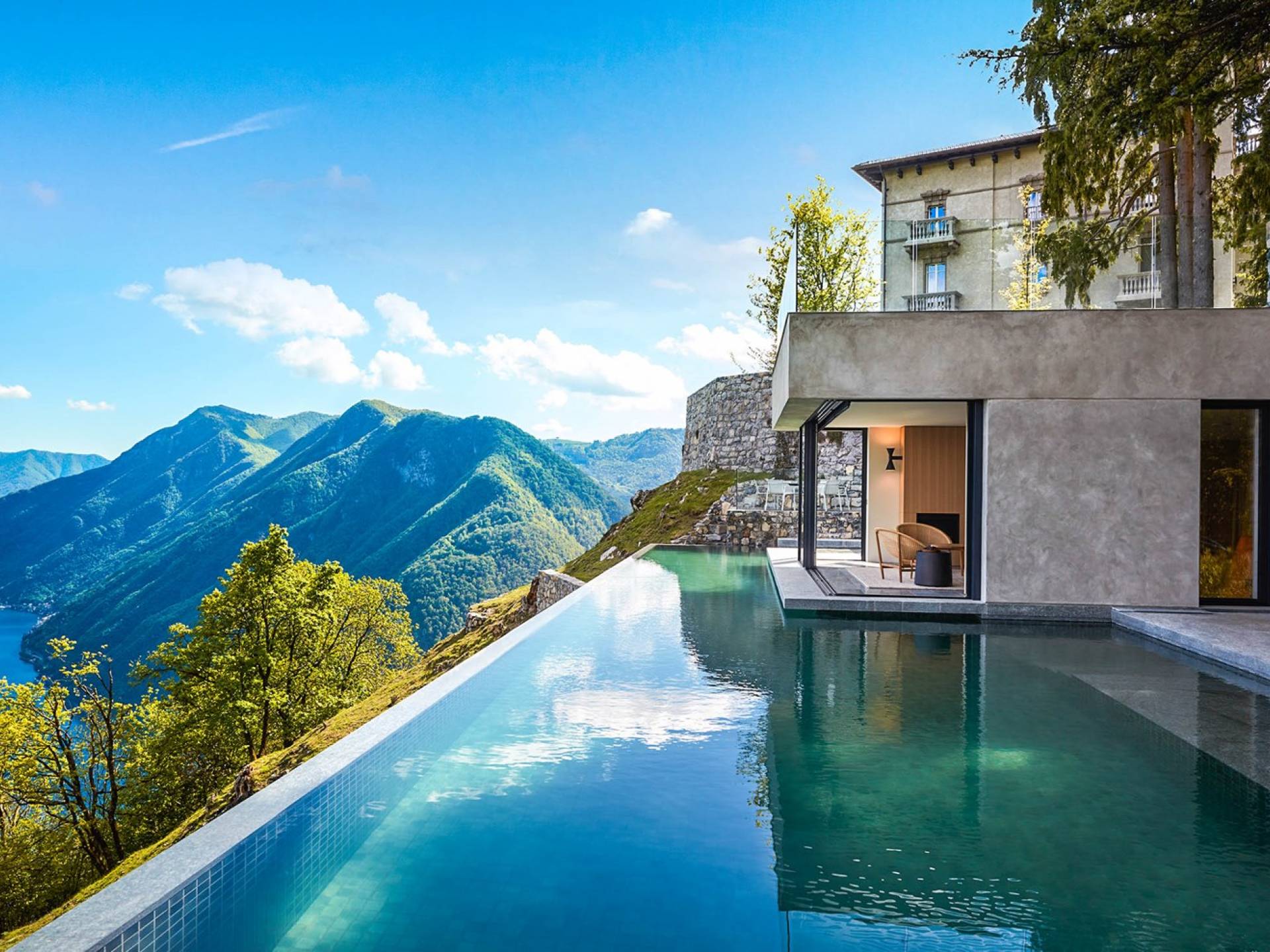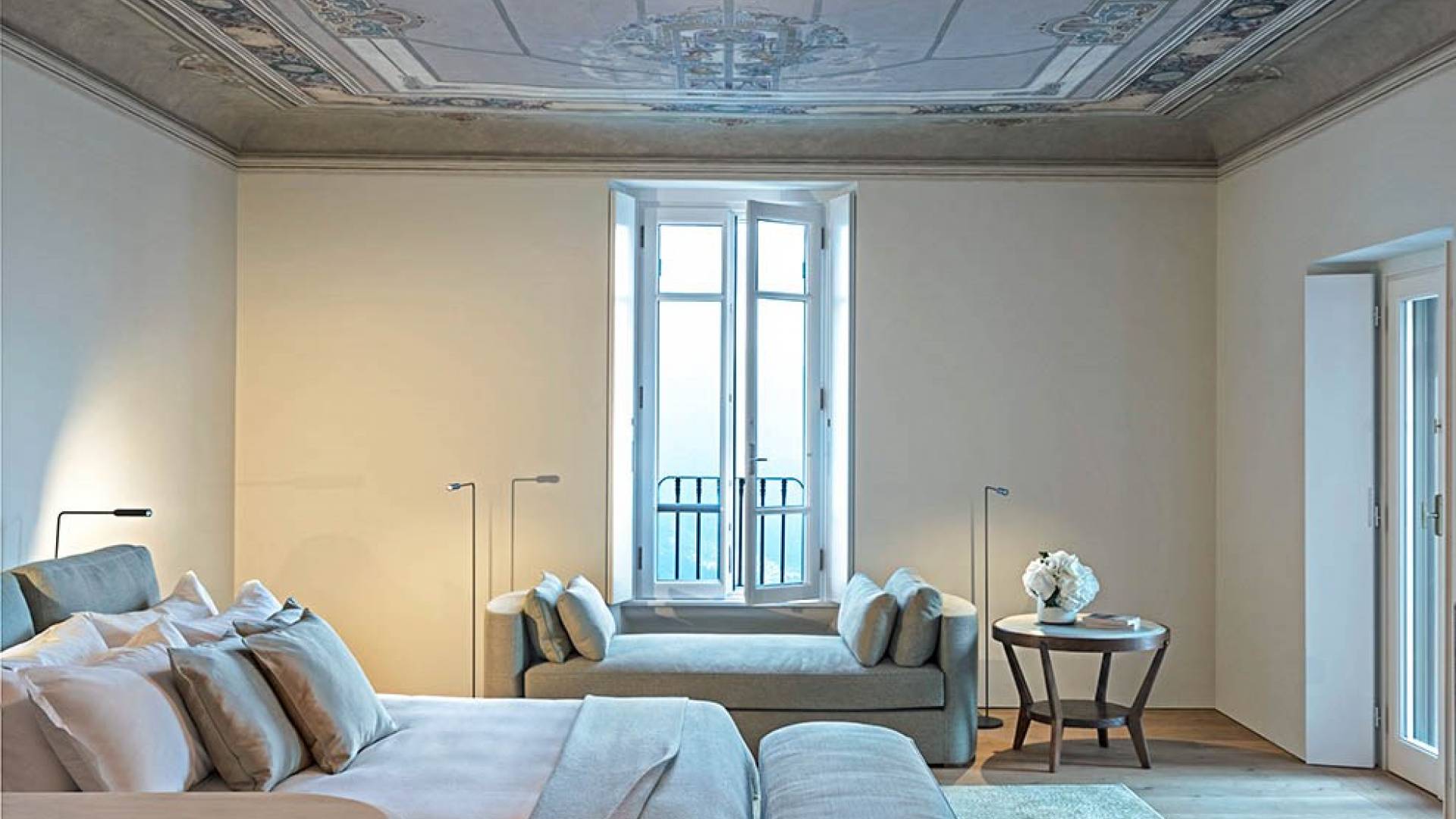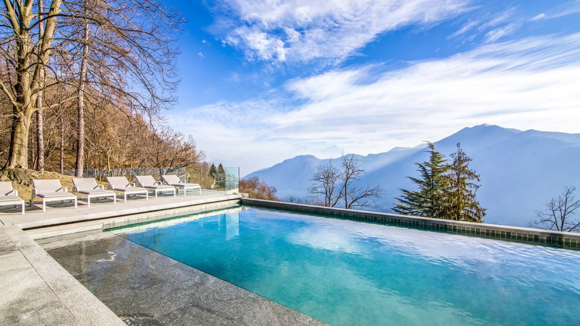 The views from south facing Villa Peduzzi are truly stunning – a combination of a wide blue lake and green mountain vistas rounded off with glorious golden sunsets. These can be enjoyed from the balconies off every bedroom, the villa’s main surrounding terrace, and the extraordinary pool house with its green roof and infinity pool. Also making the most of this aspect are an exceptional yoga/wellness room that has been carved out of the cliff face and the rooftop terraces, bar, and entertainment area.