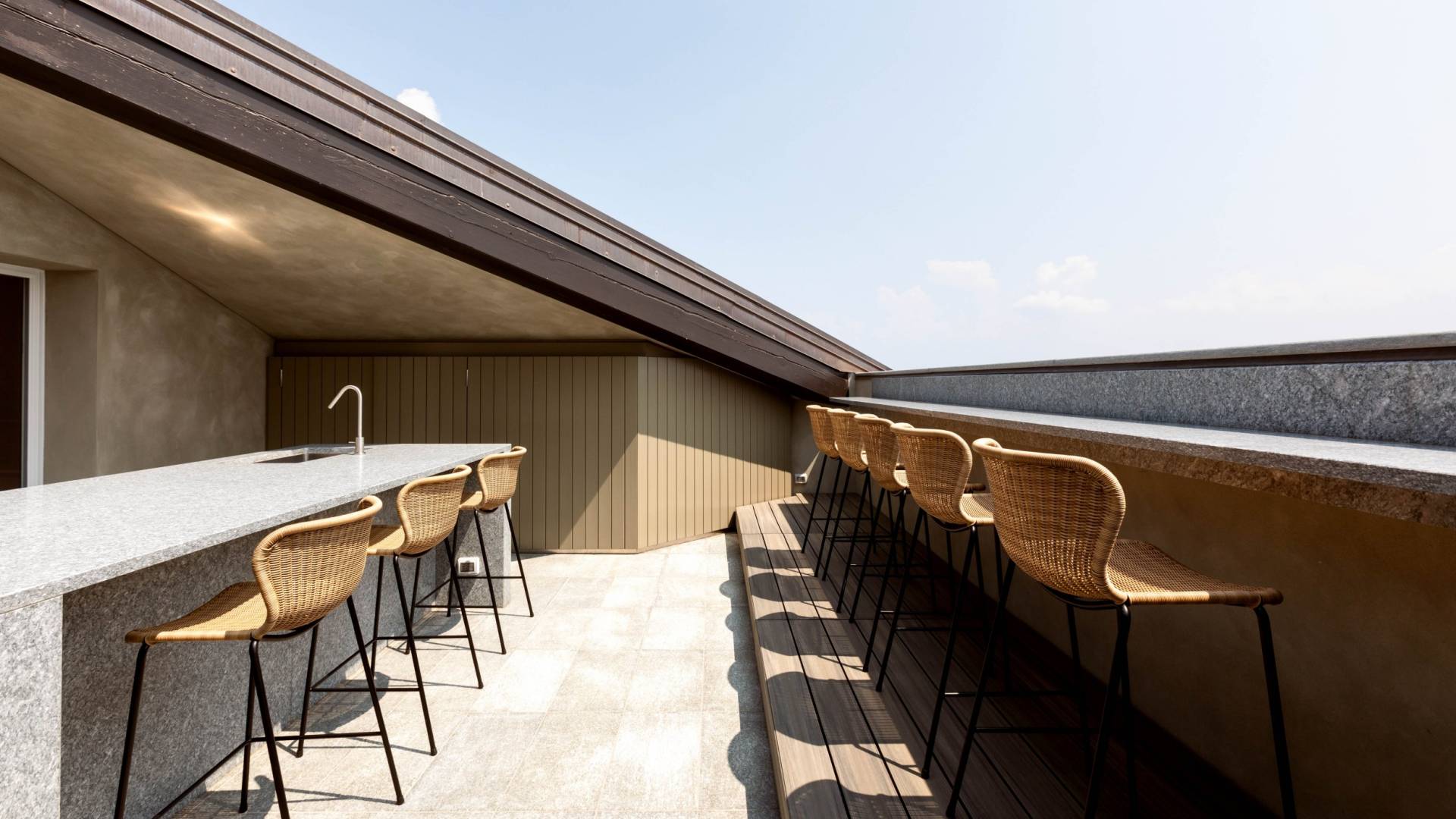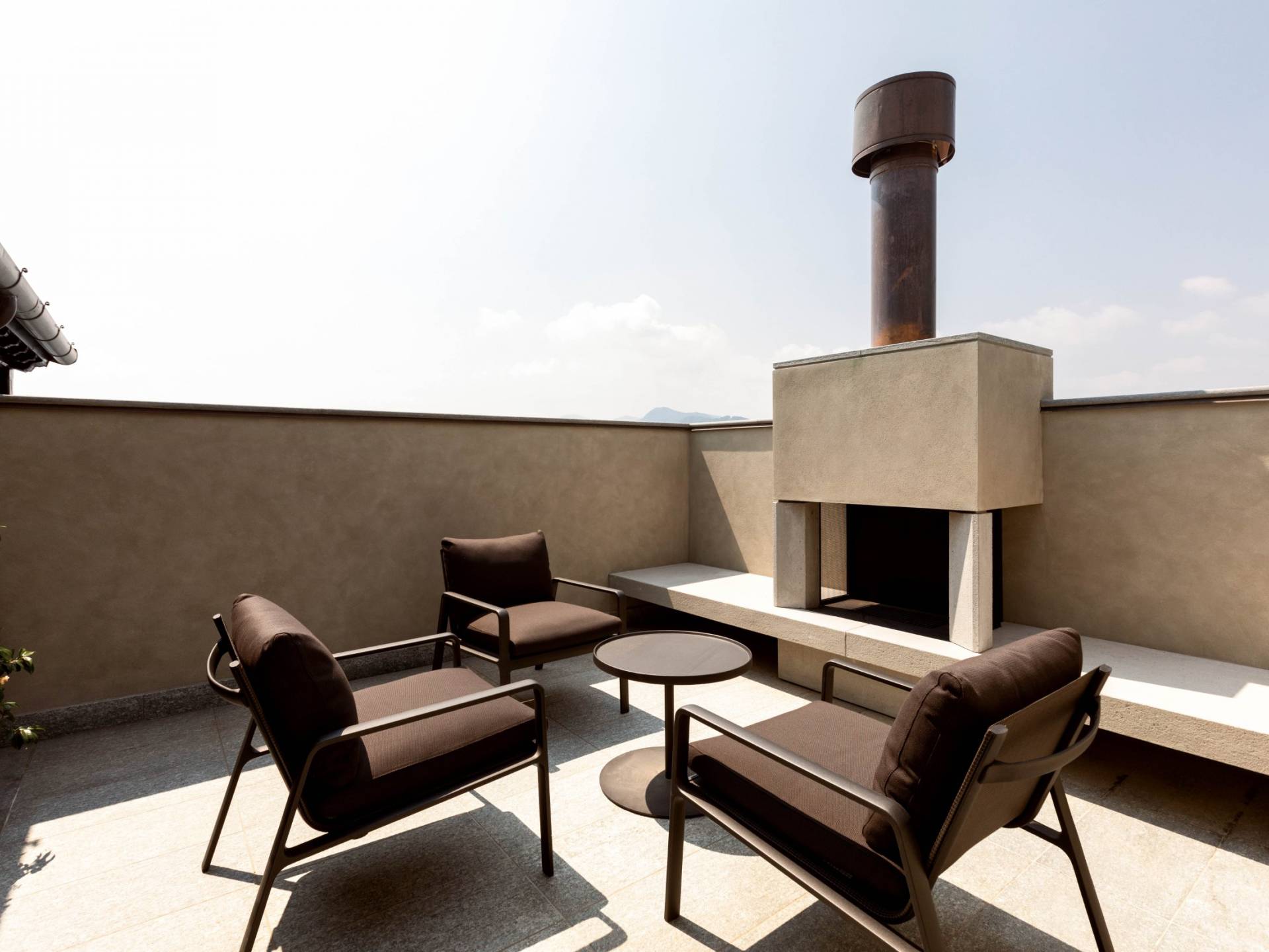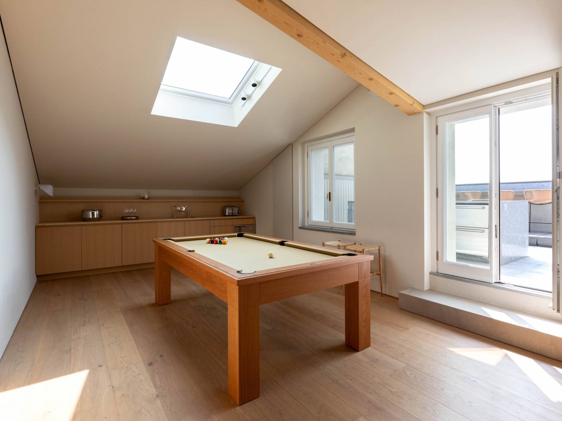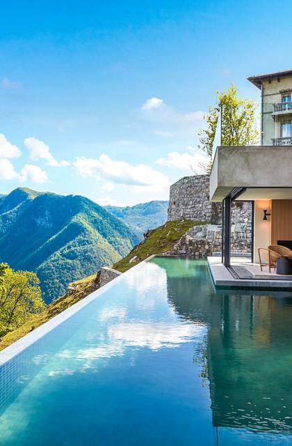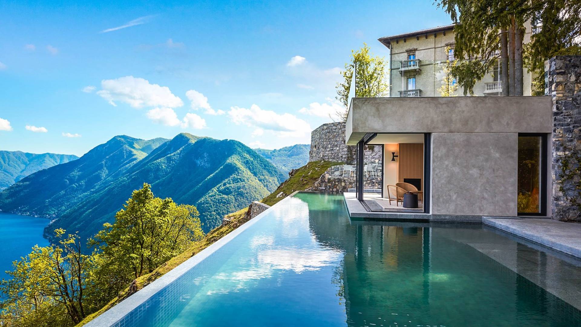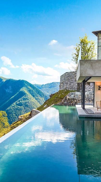 The views from south facing Villa Peduzzi are truly stunning – a combination of a wide blue lake and green mountain vistas rounded off with glorious golden sunsets. These can be enjoyed from the balconies off every bedroom, the villa’s main surrounding terrace, and the extraordinary pool house with its green roof and infinity pool. Also making the most of this aspect are an exceptional yoga/wellness room that has been carved out of the cliff face and the rooftop terraces, bar, and entertainment area.
