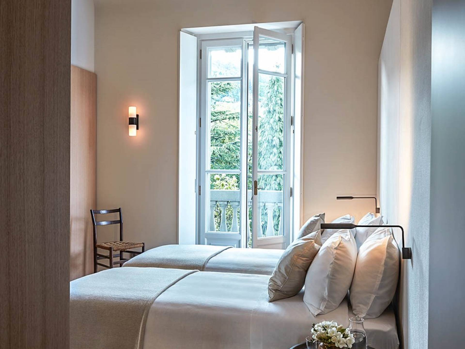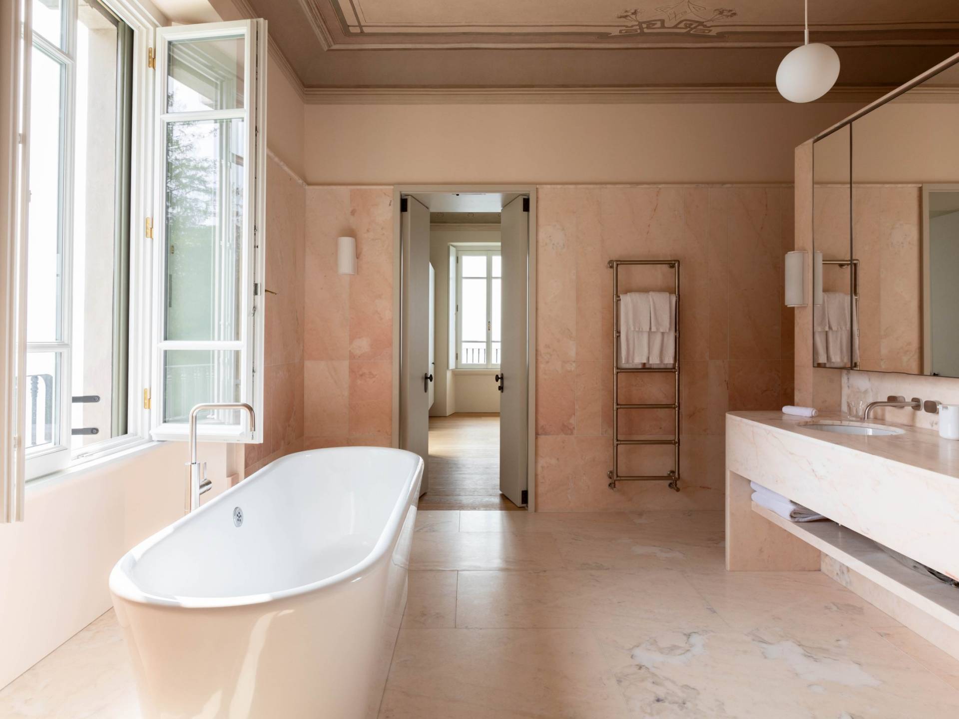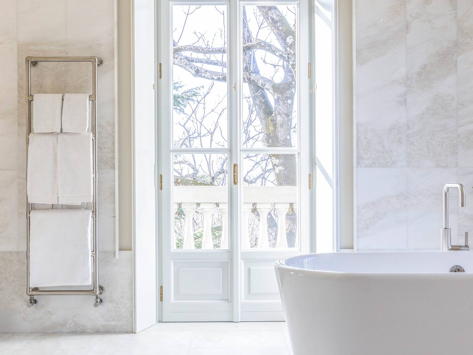 The large south-facing Lombardy Suite enjoys a balcony and a terrace, both overlooking the lake. A dressing room and a modern bathroom complete the ensemble. The Tuscany Suite also faces the lake and is joined to the East facing Veneto Suite by a large shared bathroom. Both suites have balconies enjoying lake views. The West-facing Liguria Suite also has a balcony to enjoy the mountain views and the sunsets. The large bathroom is a lovely space to unwind before dinner.