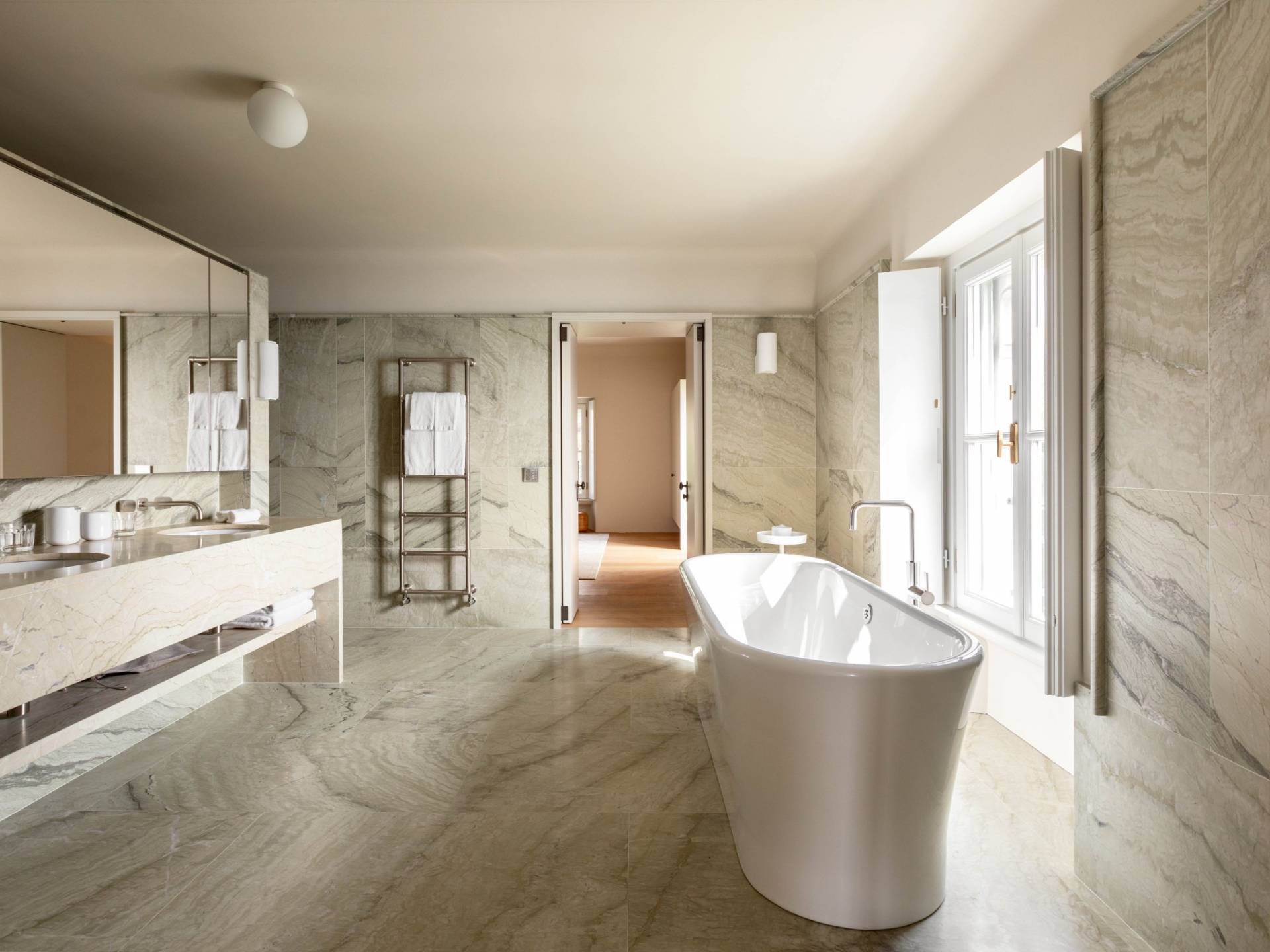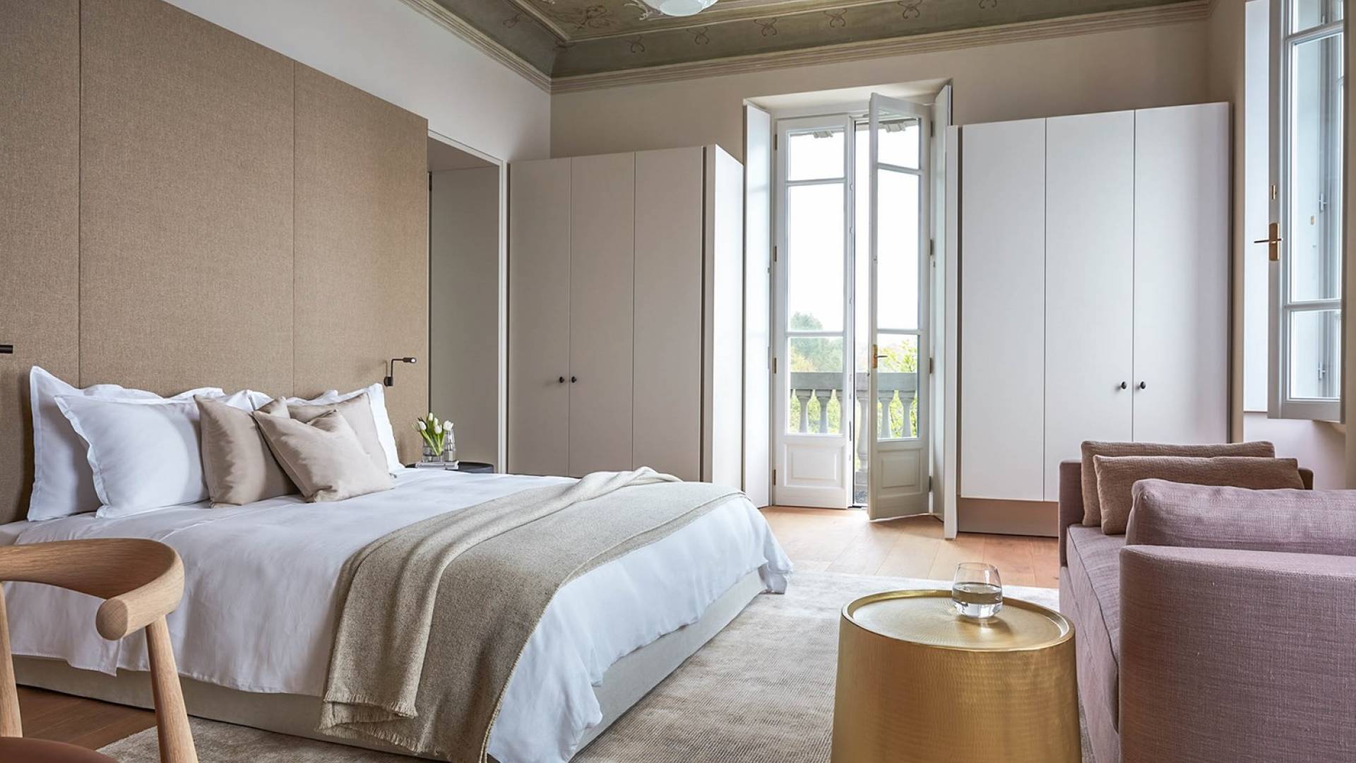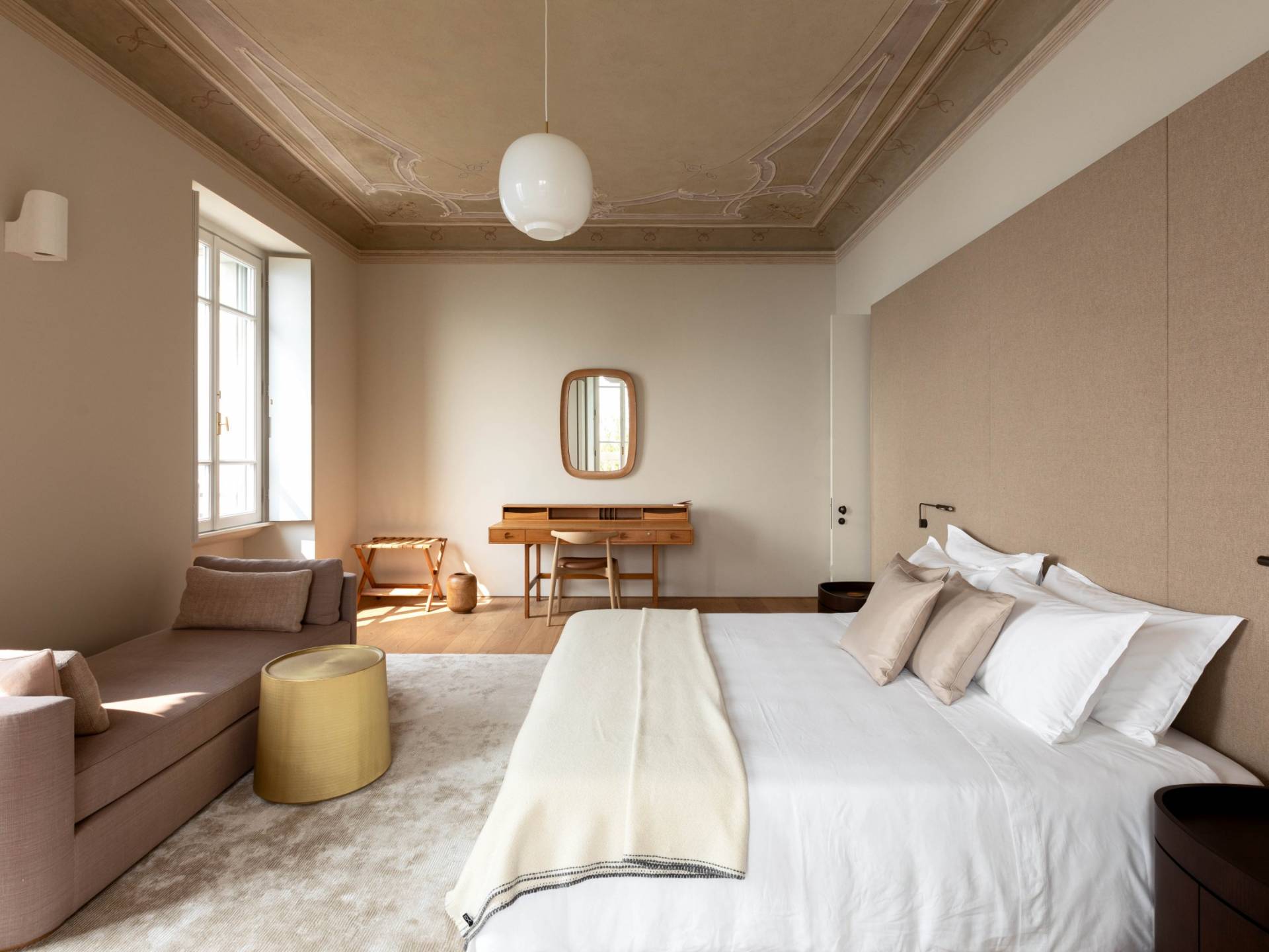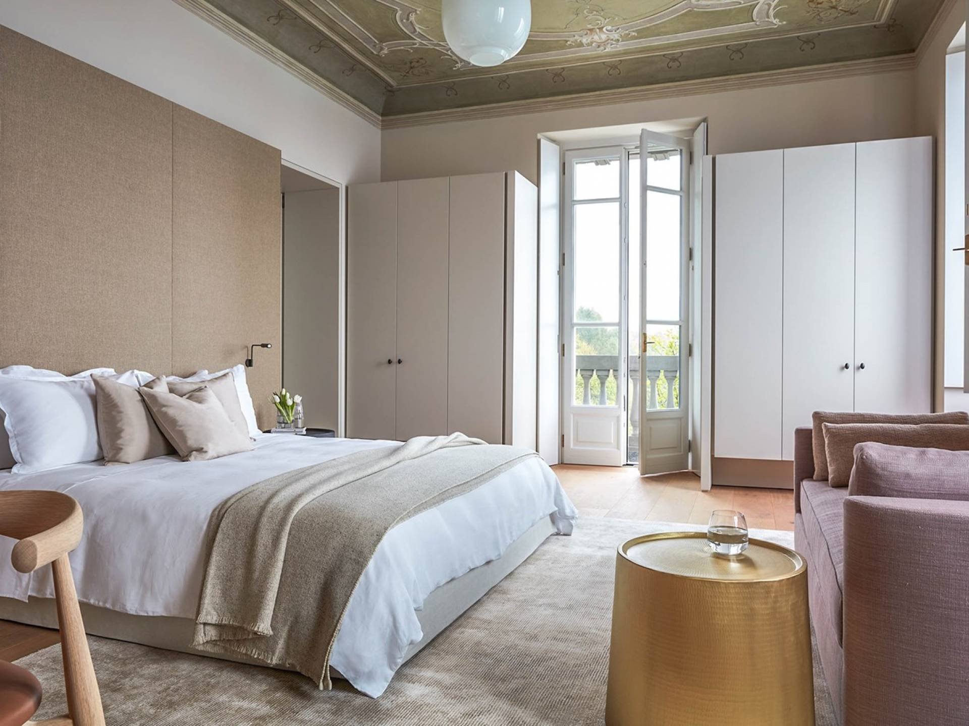 The large south-facing Lombardy Suite enjoys a balcony and a terrace, both overlooking the lake. A dressing room and a modern bathroom complete the ensemble. The Tuscany Suite also faces the lake and is joined to the East facing Veneto Suite by a large shared bathroom. Both suites have balconies enjoying lake views. The West-facing Liguria Suite also has a balcony to enjoy the mountain views and the sunsets. The large bathroom is a lovely space to unwind before dinner.
