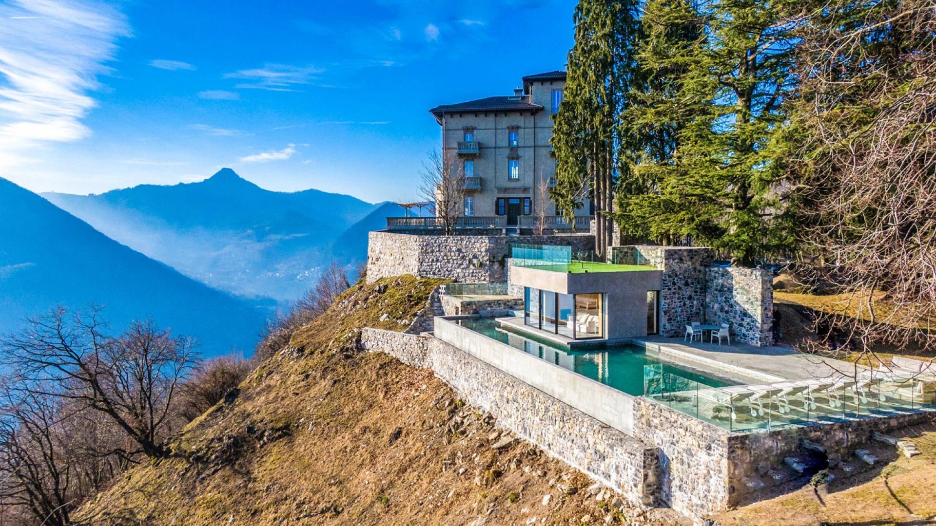 Villa Peduzzi Lake Como is a luxury villa rental with 9 bedrooms and a private pool. Overlooking Lake Como and occupying the site of a former medieval watchtower, Villa Peduzzi commands one of the finest views in Europe. The liberty-style villa, built-in 1909, has been fully restored to exceptional standards, offering 1,231 sqm of living space. This includes 9 double bedrooms (7 ensuites); drawing-room; living room; dining room; kitchen; study; media room, bar; 2 roof terraces, yoga/wellness room; pool house and entertainment area.