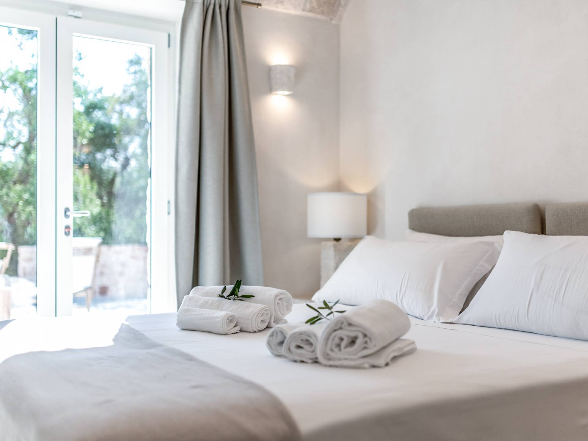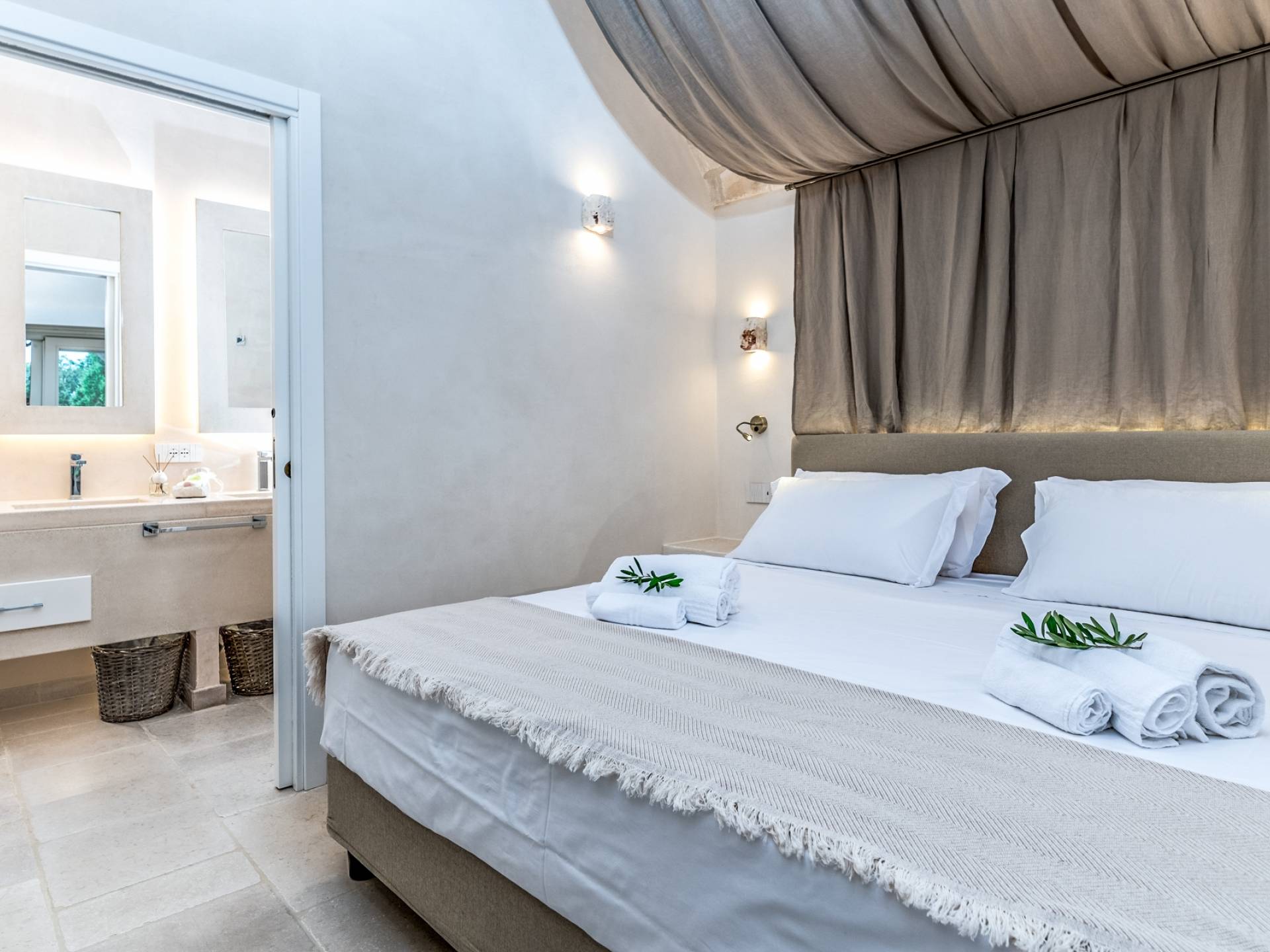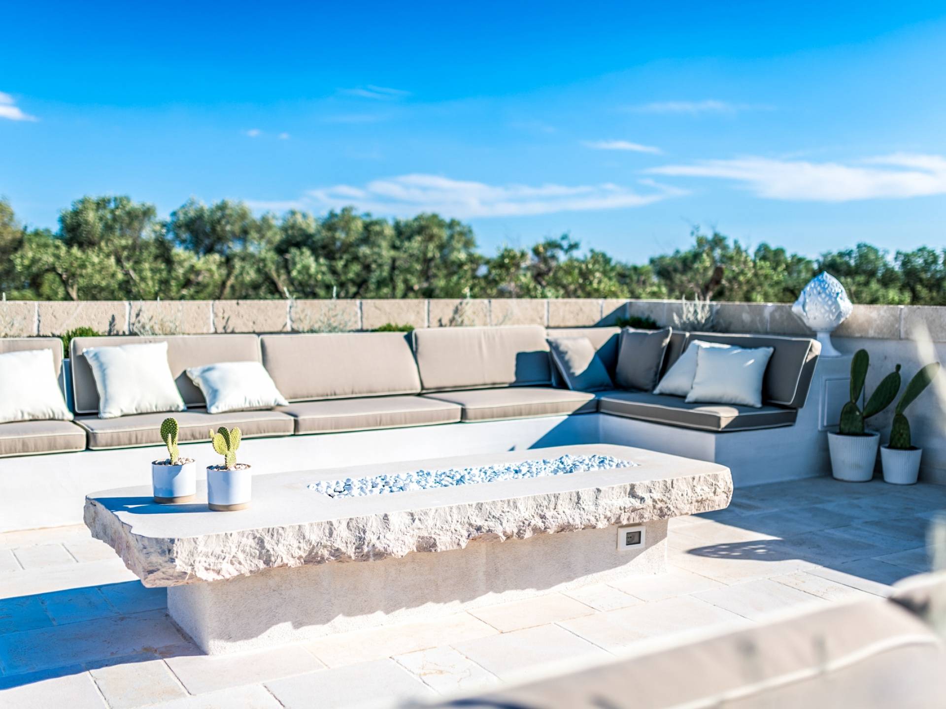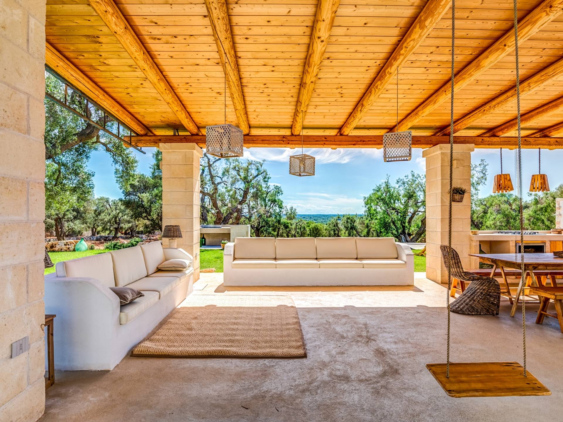 It can accommodate up to 12 people in six double bedrooms. Of the latest construction, the villa consists of 3 different areas: the main residence, with two bedrooms with en suite bathroom (consisting of double sinks and shower with two shower heads), kitchen, and living room. The dependence with the typical trullo with a romantic atmosphere and three bedrooms (all with private bathroom), two of which are communicating. In total there are 6 bedrooms. All the rooms are equipped with independent air conditioning and heating; The three bedrooms in the annex and the trullo have underfloor heating.