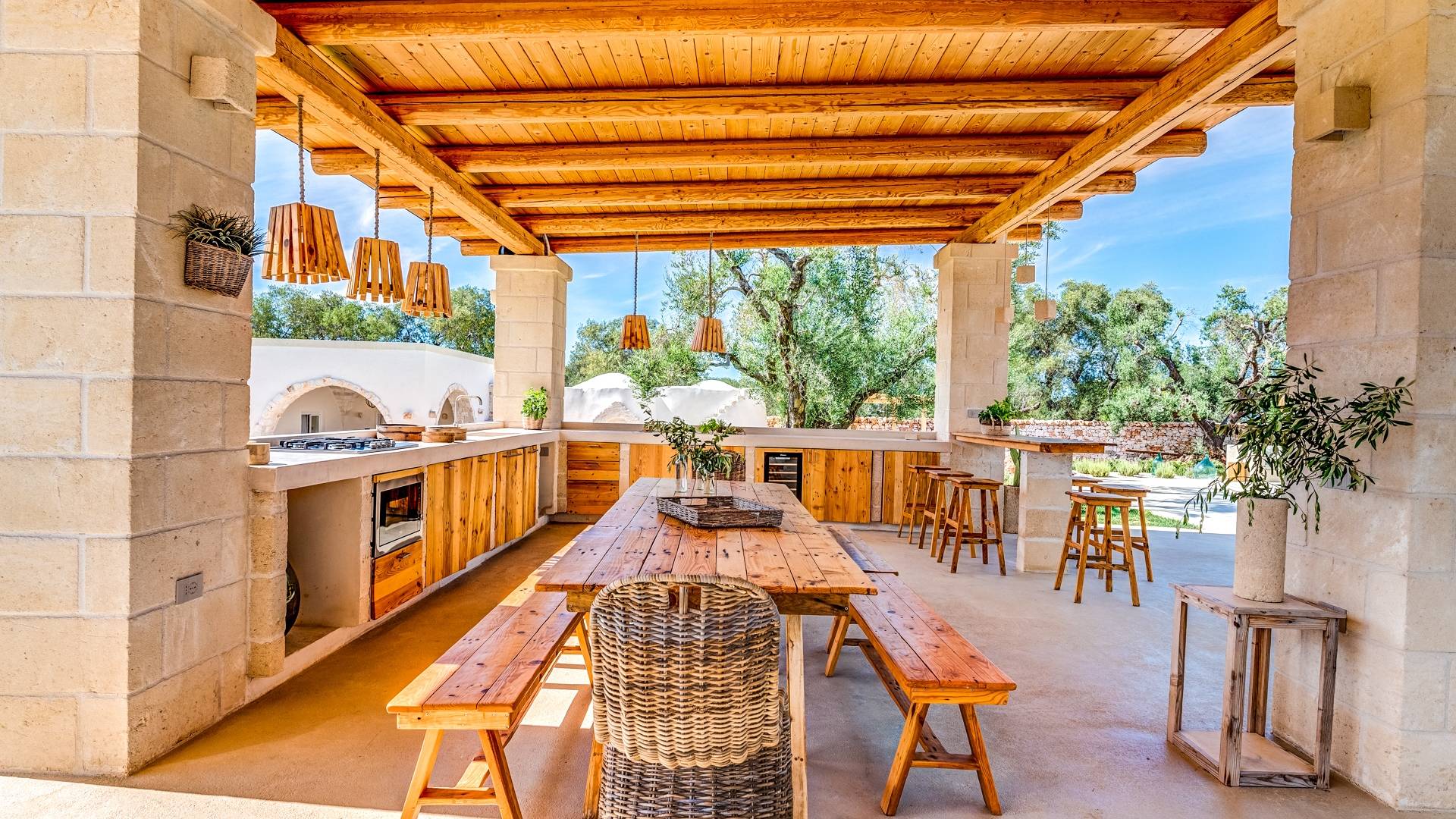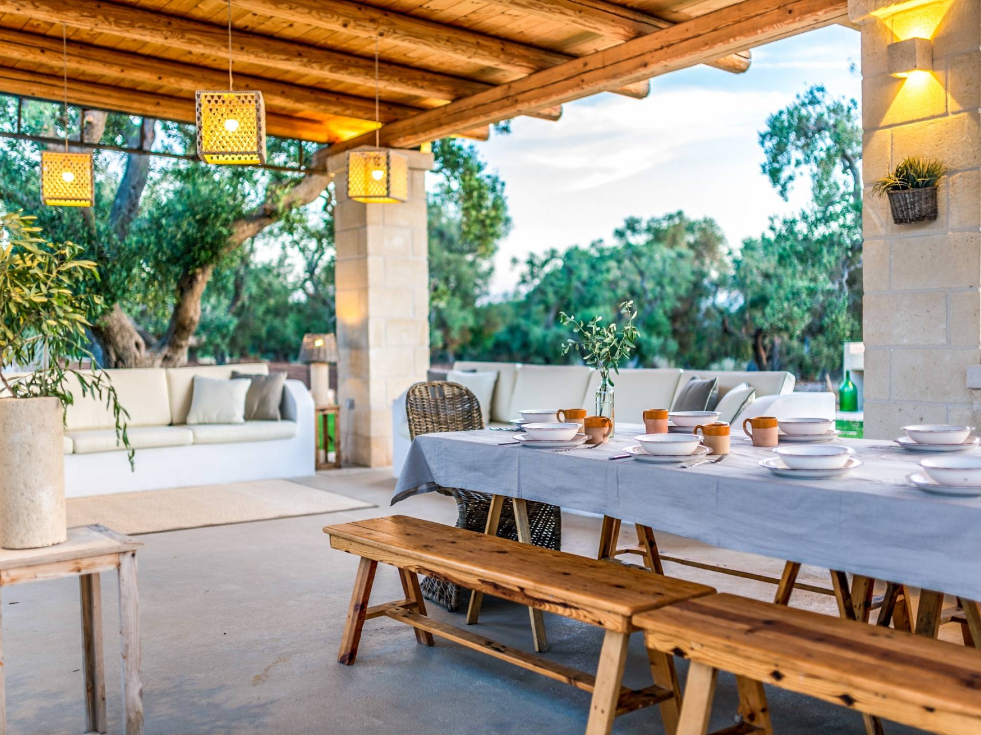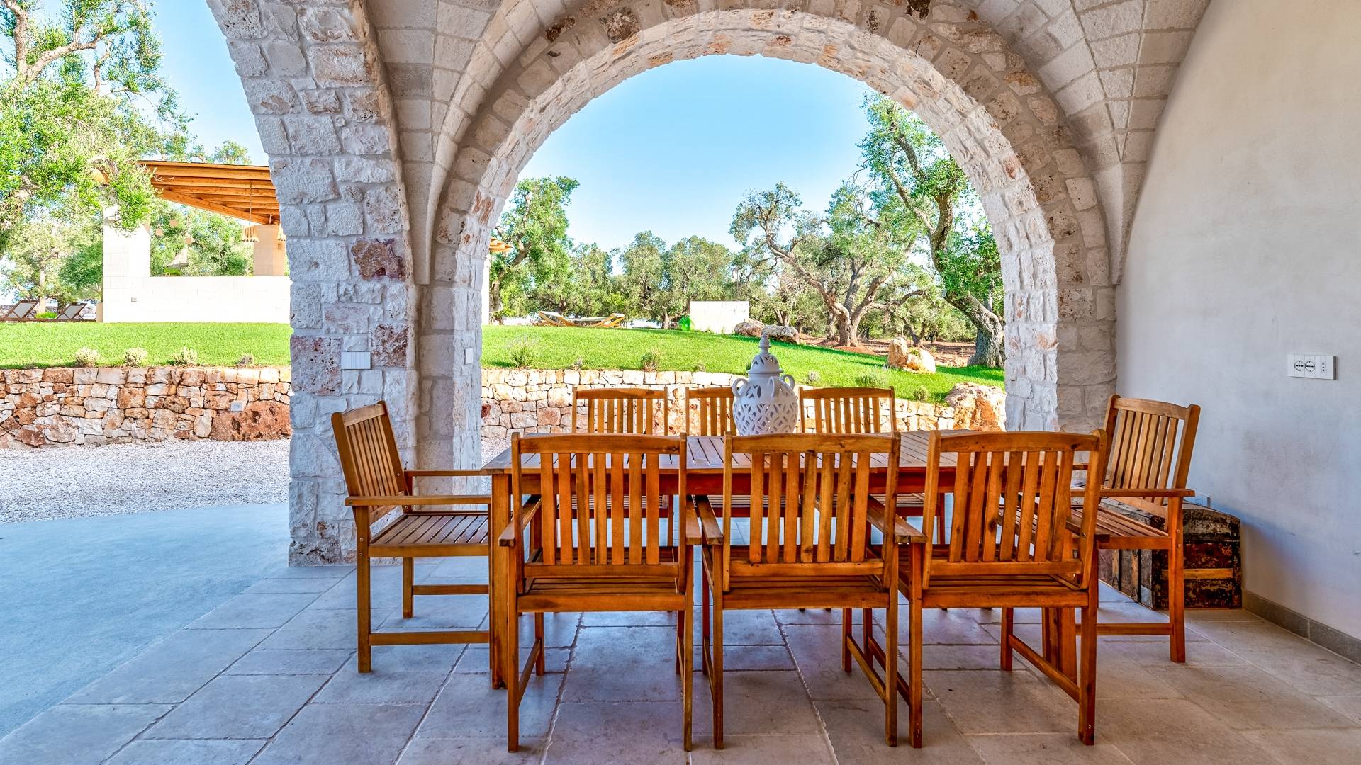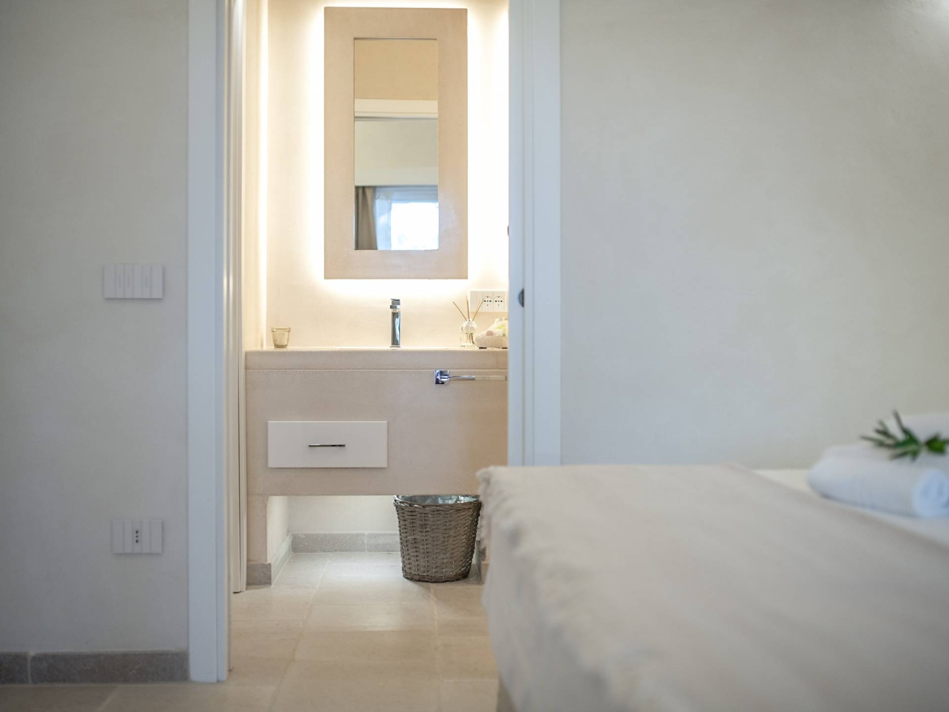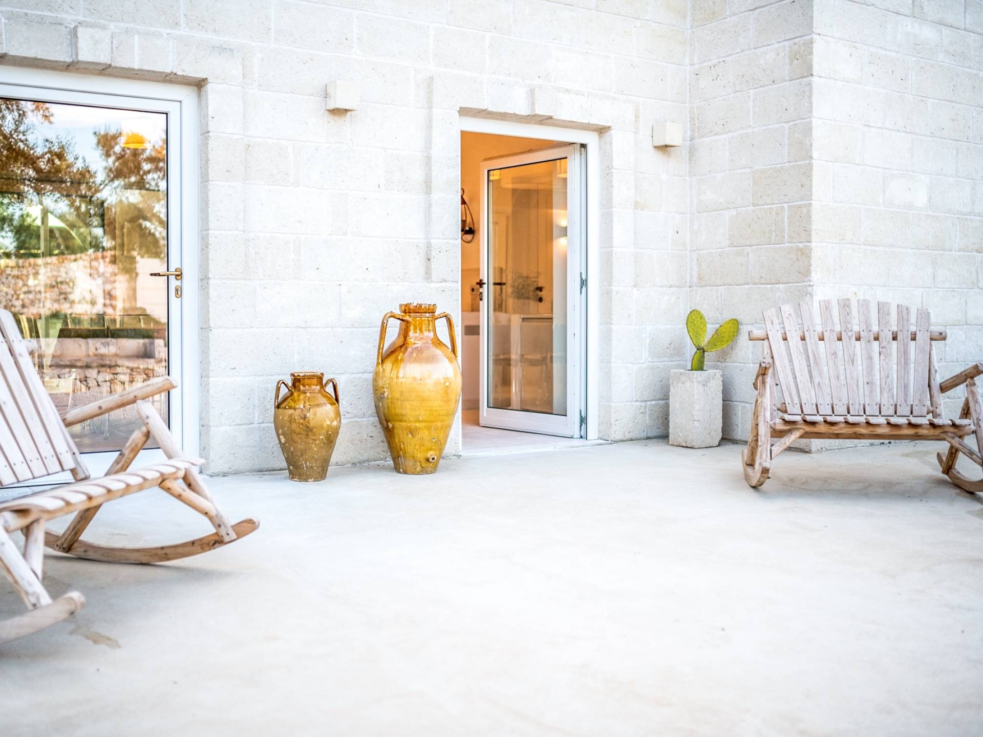 It can accommodate up to 12 people in six double bedrooms. Of the latest construction, the villa consists of 3 different areas: the main residence, with two bedrooms with en suite bathroom (consisting of double sinks and shower with two shower heads), kitchen, and living room. The dependence with the typical trullo with a romantic atmosphere and three bedrooms (all with private bathroom), two of which are communicating. In total there are 6 bedrooms. All the rooms are equipped with independent air conditioning and heating; The three bedrooms in the annex and the trullo have underfloor heating.