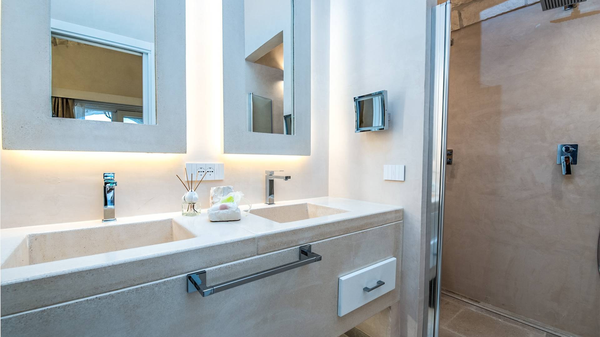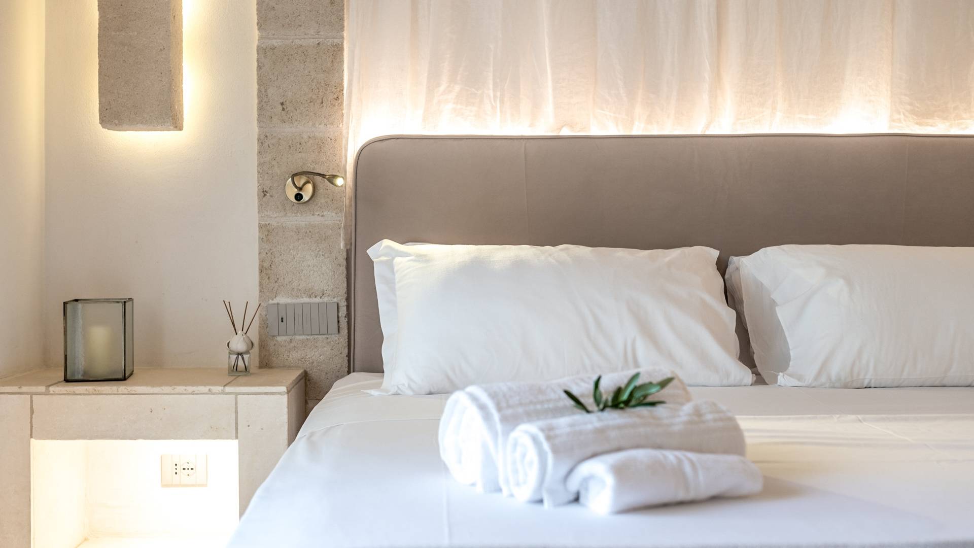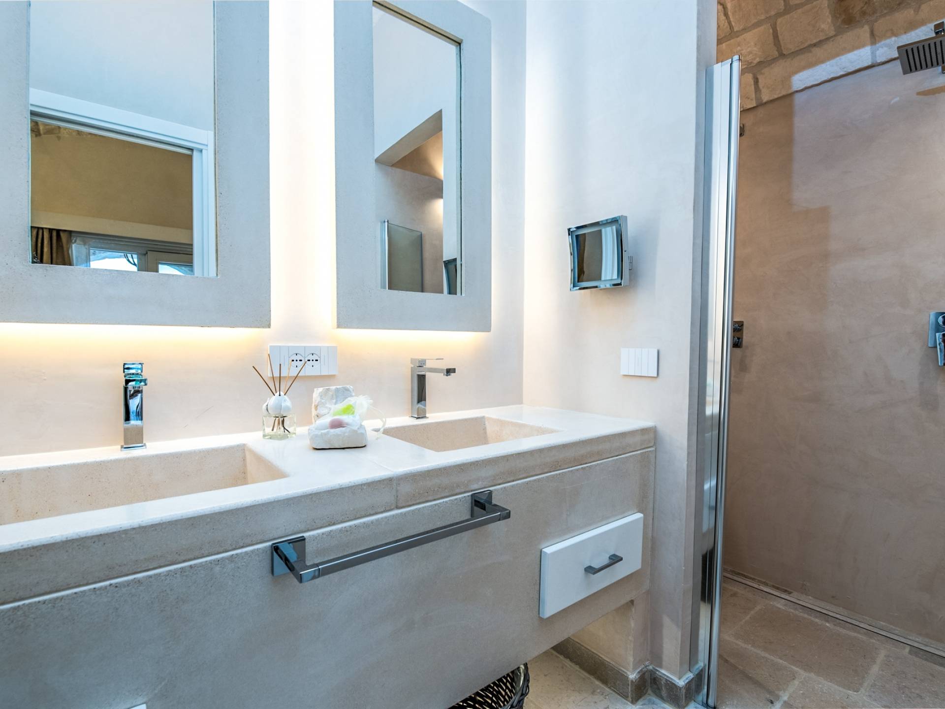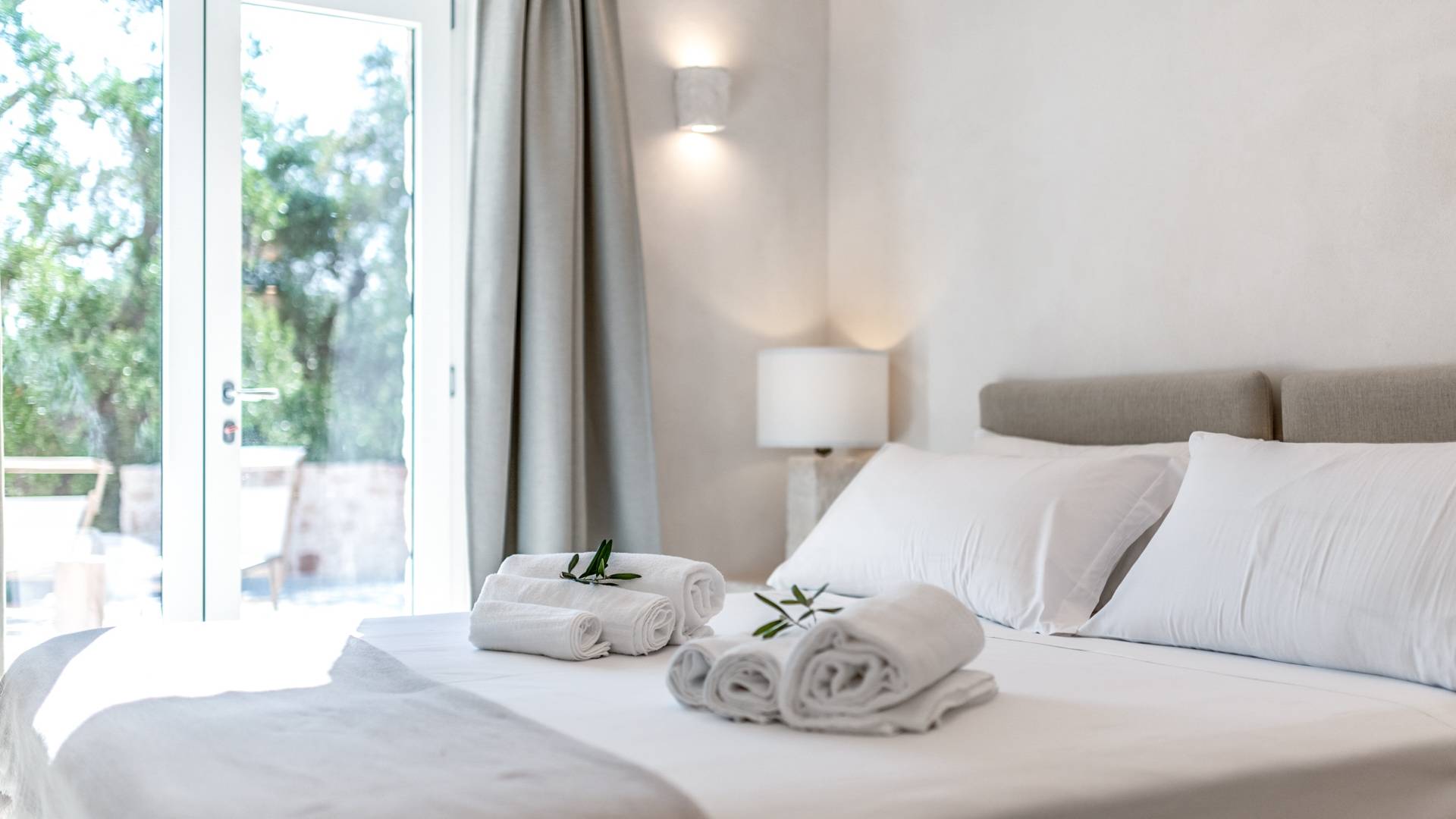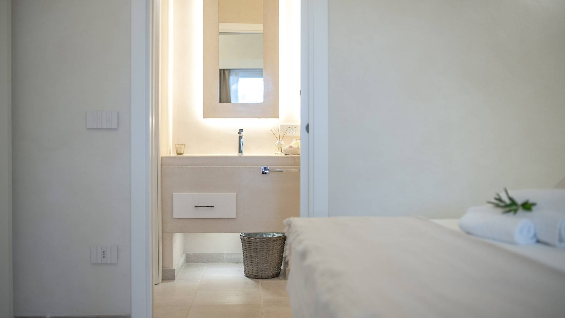 It can accommodate up to 12 people in six double bedrooms. Of the latest construction, the villa consists of 3 different areas: the main residence, with two bedrooms with en suite bathroom (consisting of double sinks and shower with two shower heads), kitchen, and living room. The dependence with the typical trullo with a romantic atmosphere and three bedrooms (all with private bathroom), two of which are communicating. In total there are 6 bedrooms. All the rooms are equipped with independent air conditioning and heating; The three bedrooms in the annex and the trullo have underfloor heating.