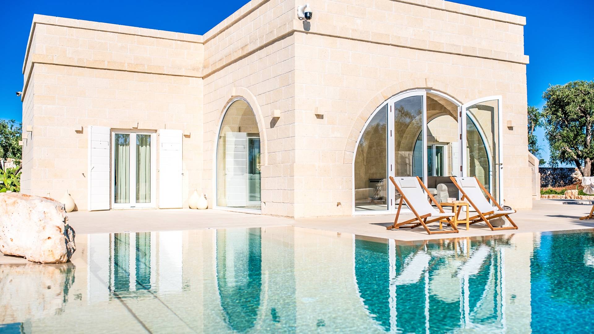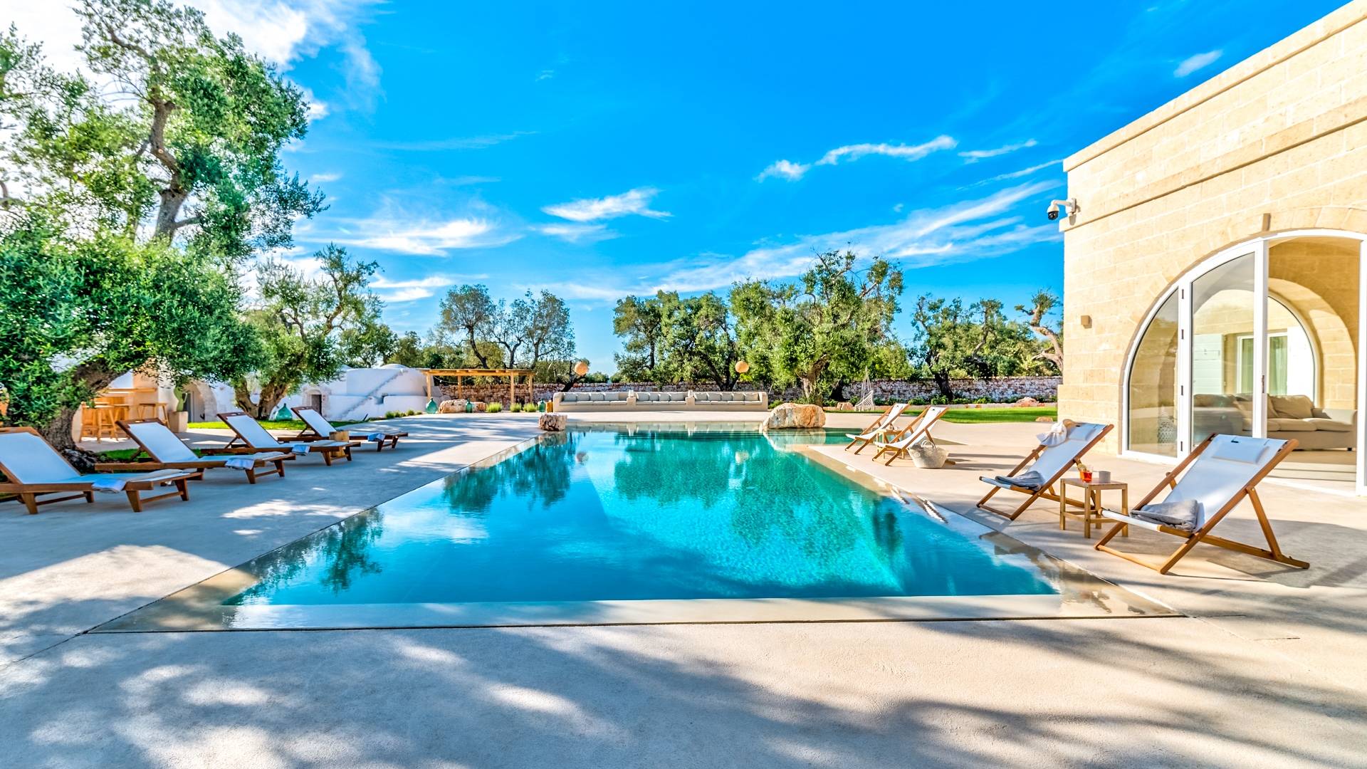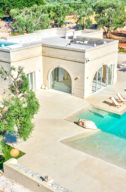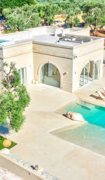 Ludovica is an exclusive villa, where elegance, luxury, great comforts, and "small" practical details have been skilfully harmonized for a truly unforgettable holiday. The atmosphere, the furnishings, and the finishes, the two swimming pools (one of which is heated) with hydromassage system and microbubbles, and more make Villa Ludovica an ideal place to spend your holidays in Puglia with friends or family.