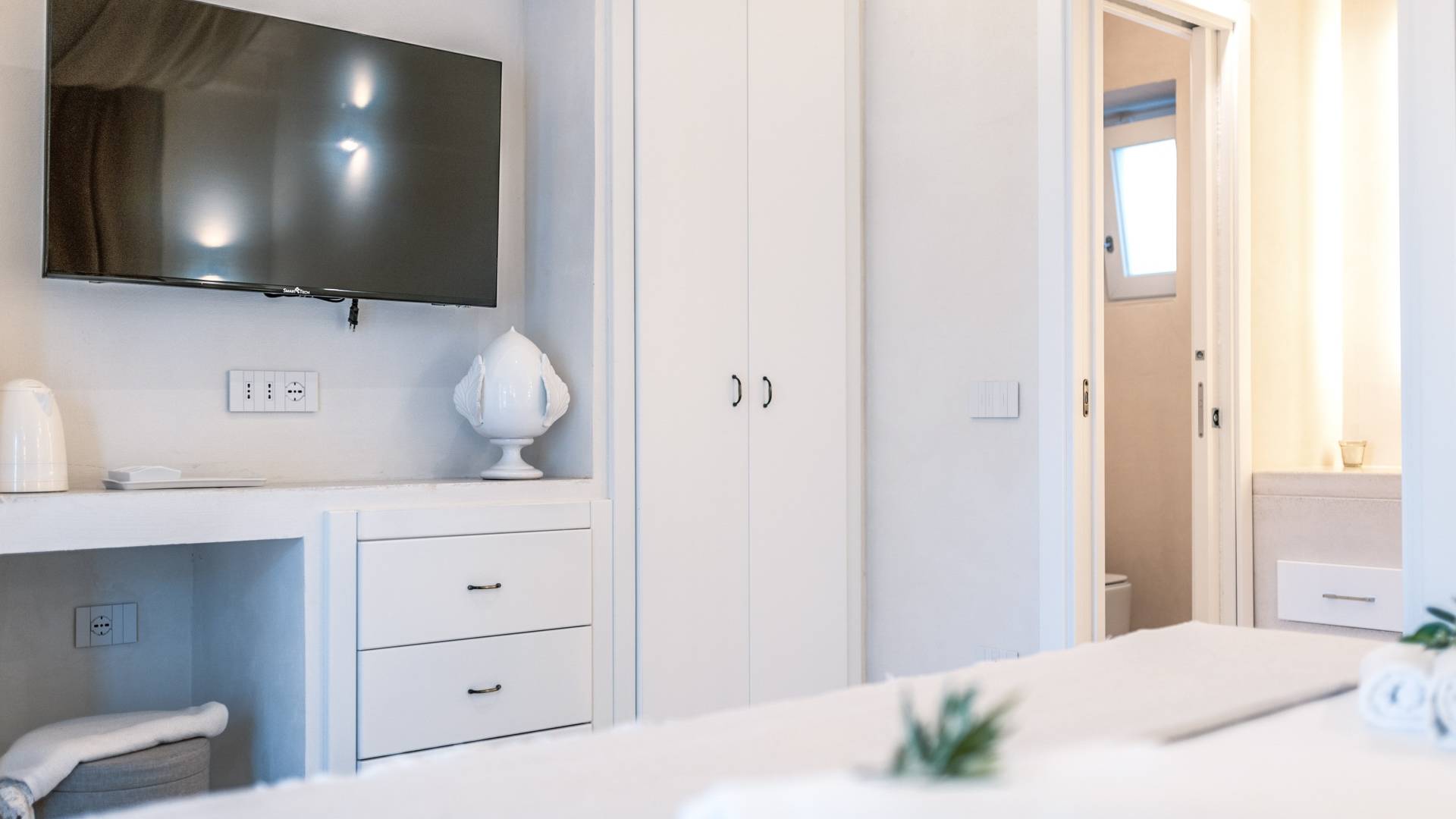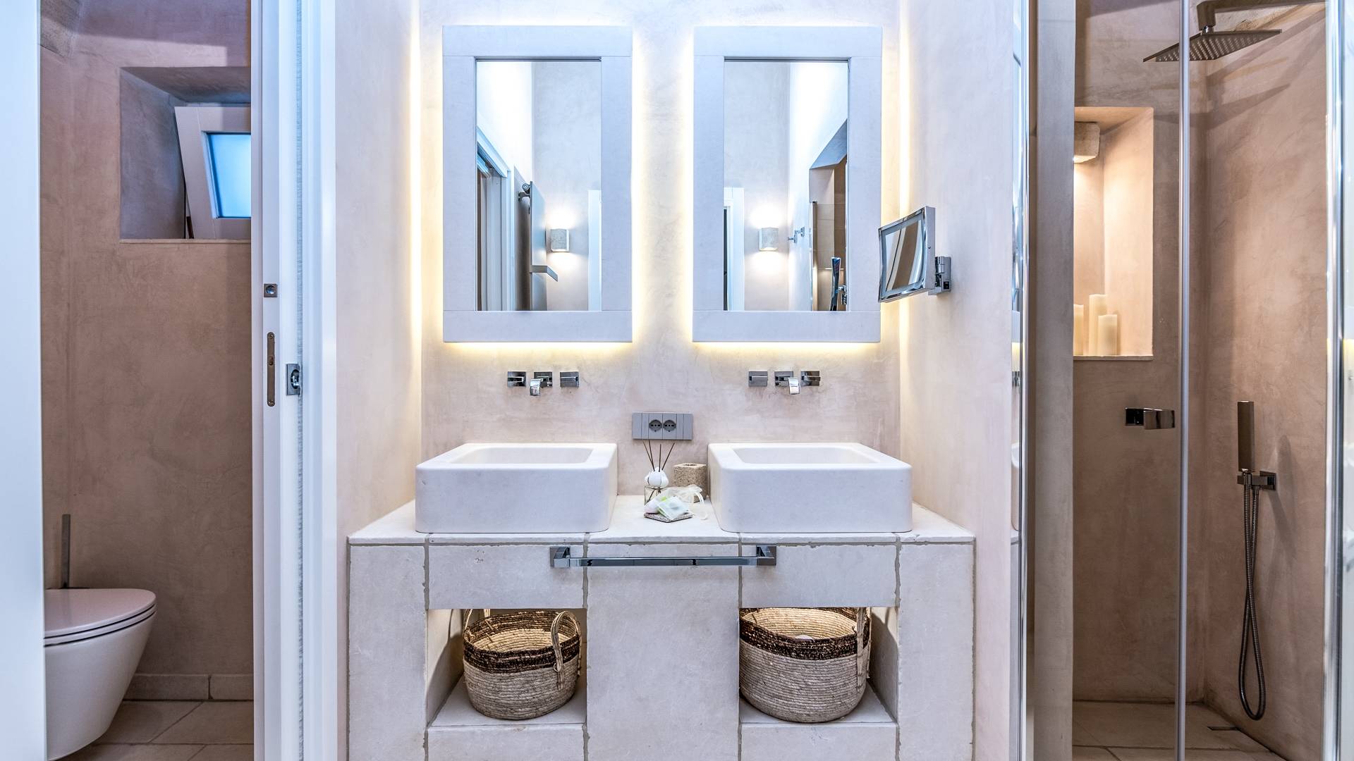 The amenities of the luxury rental cover even the most demanding visitor, having all the comforts that one would expect to find in a modern luxurious residence. From the fully equipped kitchen to the comfortable and air-conditioned rooms, everything has been designed and created to offer you an unforgettable stay experience. Leave the doors and windows open to enjoy the glorious sun that floods the house and the magic of the sea that can only be seen in the distance from the roof when the sky is clear spreading out in front of you as well as the beautiful sunset! Away from any kind of noise and with a constant breeze of fresh air, this luxurious holiday rental will offer you a unique and memorable vacation.